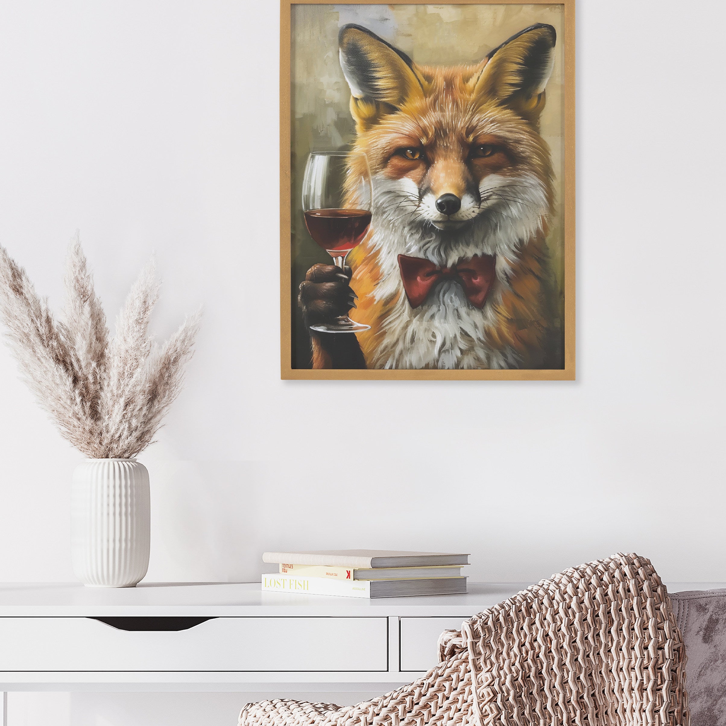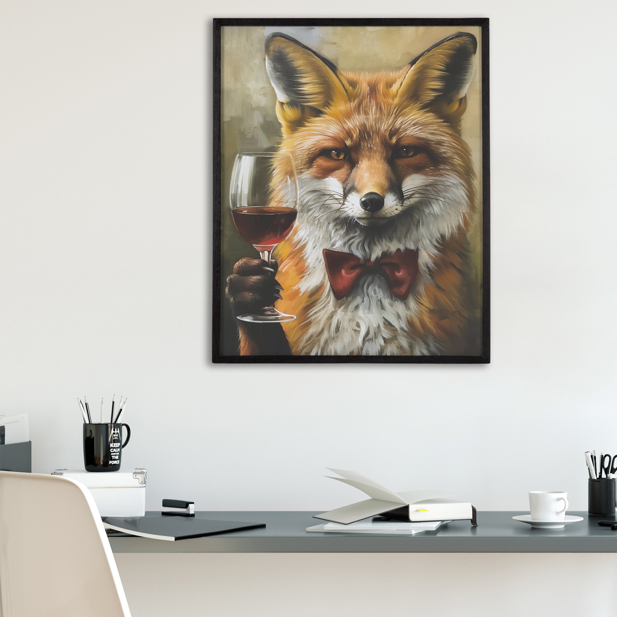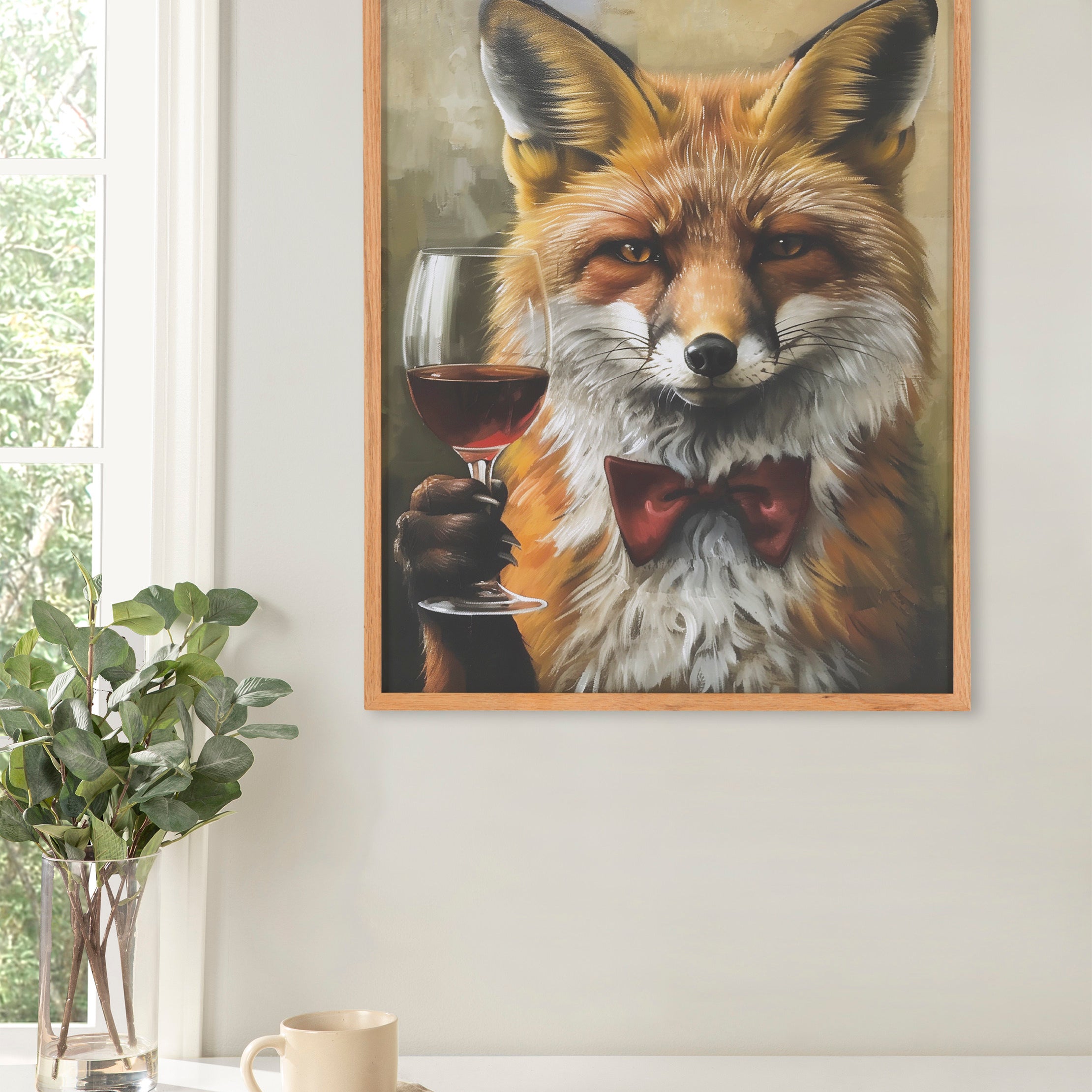 Featuring a charming fox at a wine tasting, this whimsical artwork adds a touch of humor and charm to any room. Printed in the USA in Waunakee, Wisconsin, this modern framed wall art is sure to bring joy to your space. Our design team curates art that will fit perfectly in any room of your home. Printed on semi-gloss paper made of responsibly sourced wood fibers and framed with a simple solid wood gallery frame, this wall art is easy to display on the wall and will match any décor style. Showcase this curated art in your living room, bedroom, home office, kitchen, bathroom, nursery, or anywhere you want to bring a little beauty and charm to your walls. Specializing in home décor, we are continually bringing timeless works of art for the traditional decorator as well as trend-forward pieces for that eclectic art lover. Our high-quality framed wall art also makes excellent gifts for birthdays, holidays, or housewarming parties.