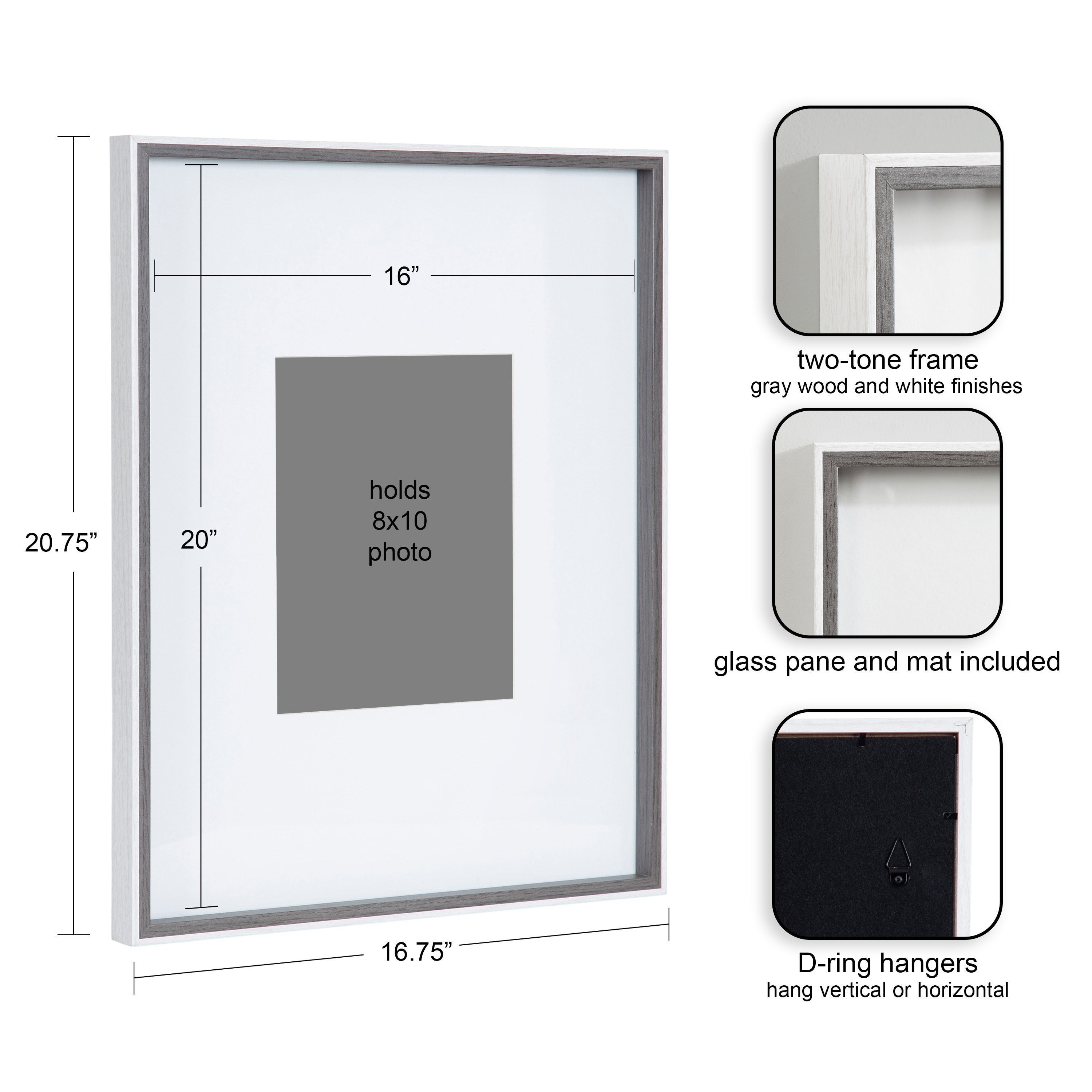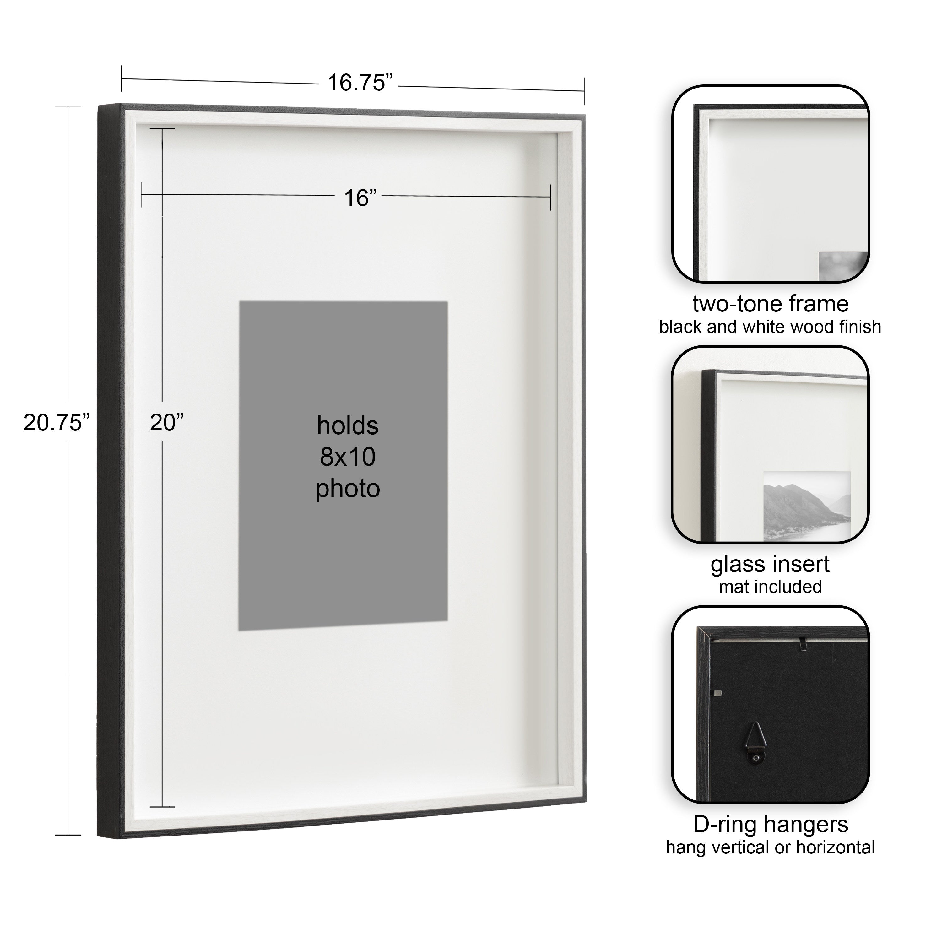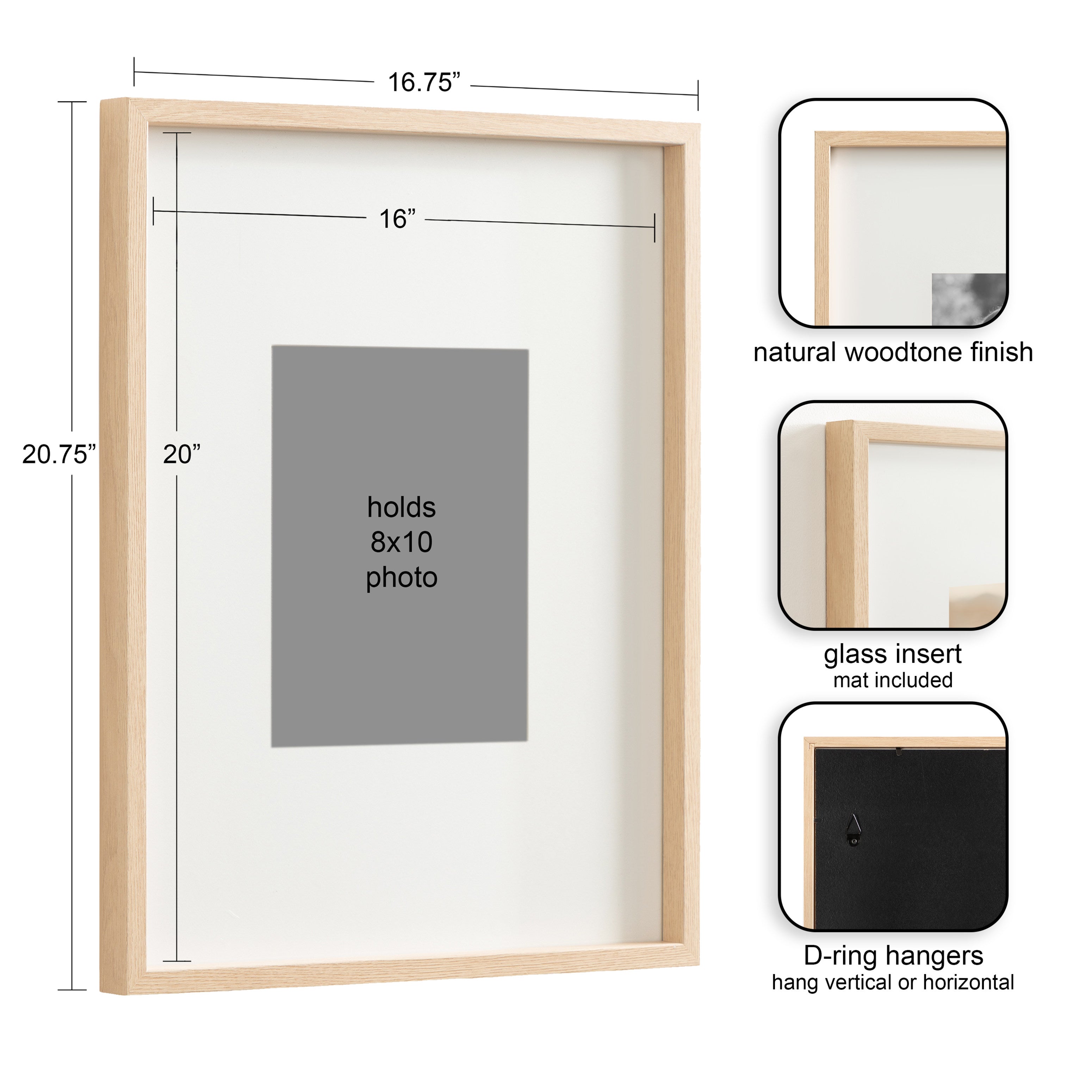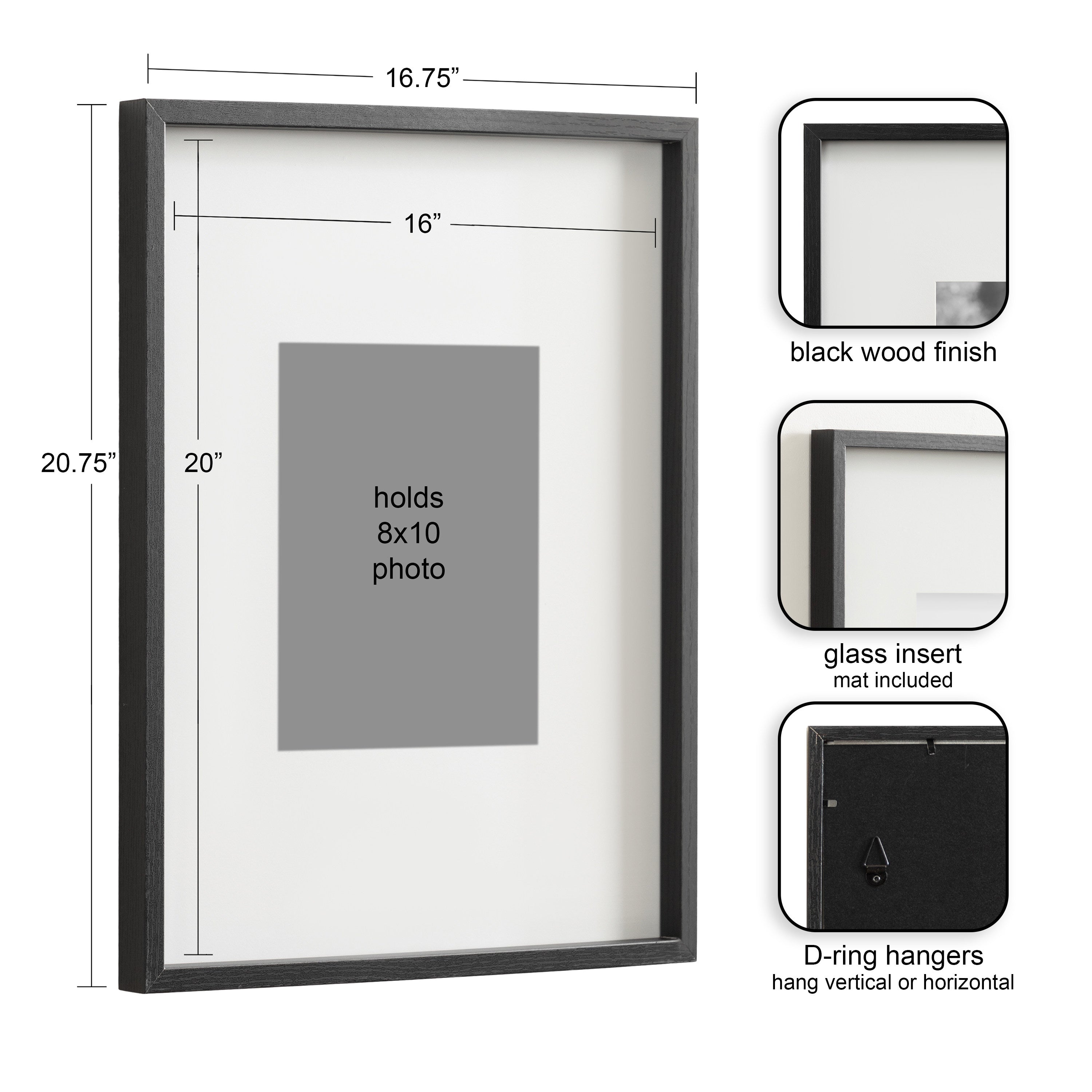 - Can be displayed with or without removable mats