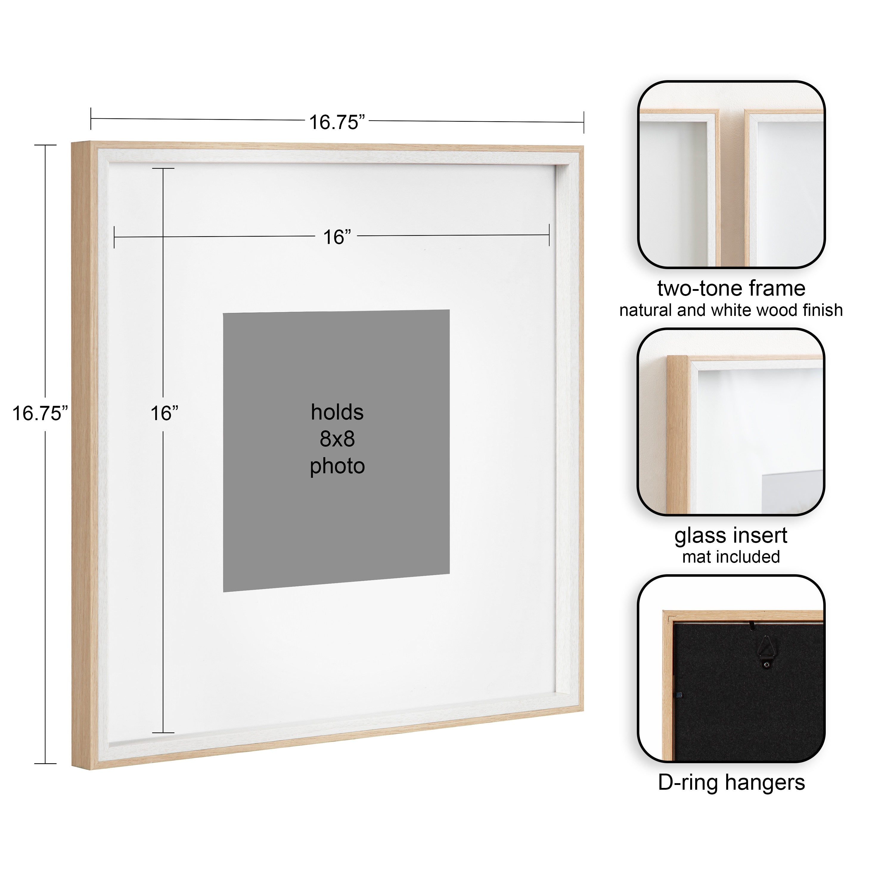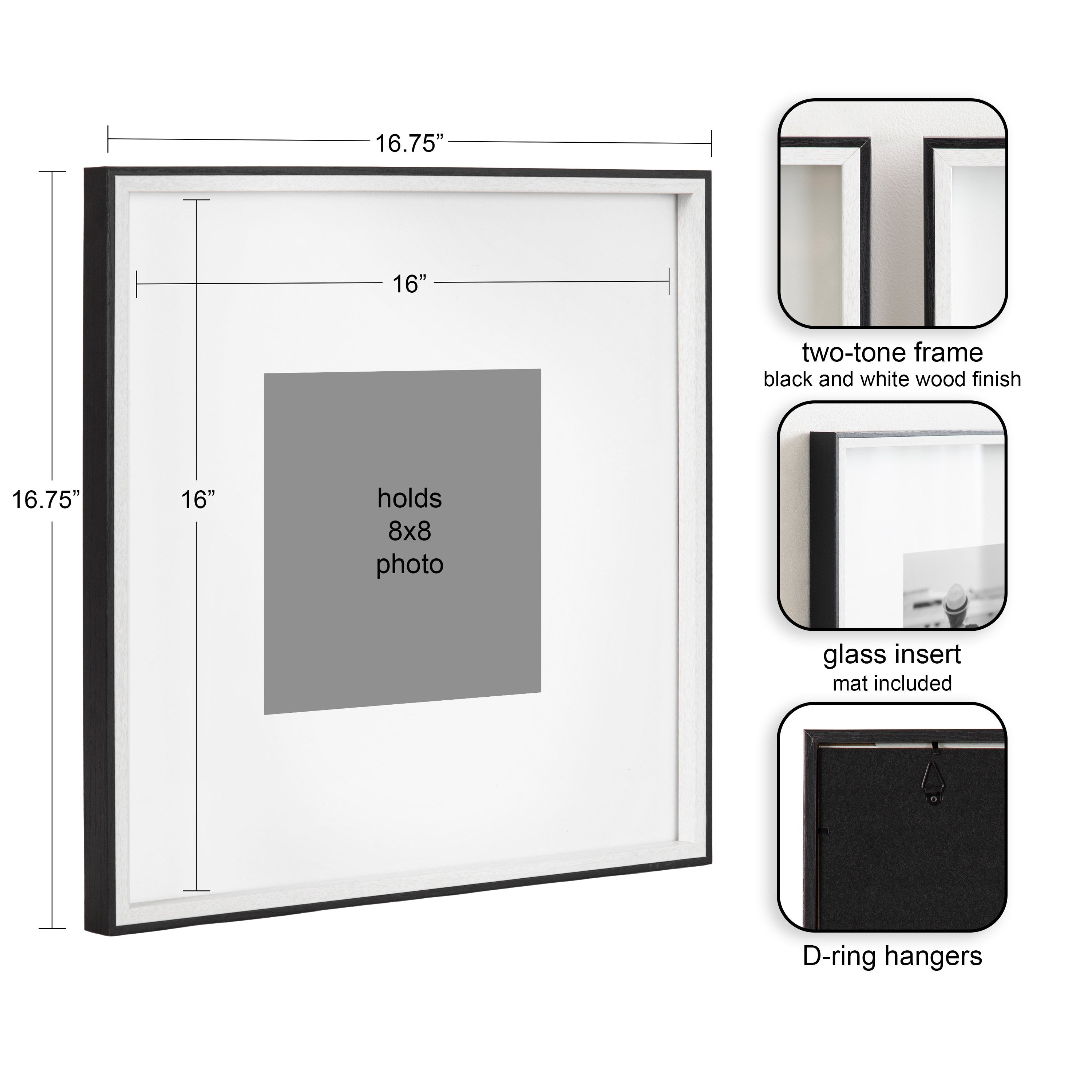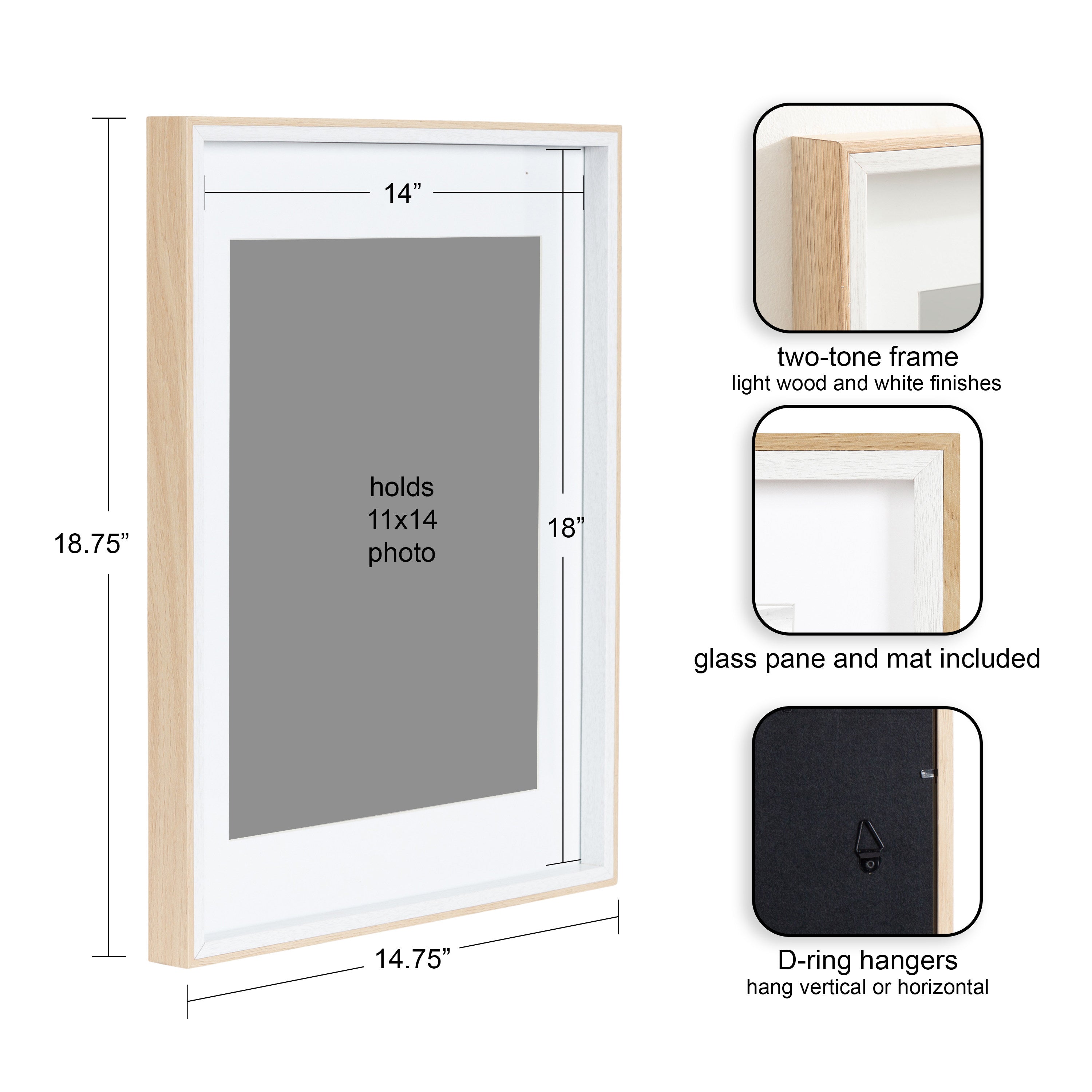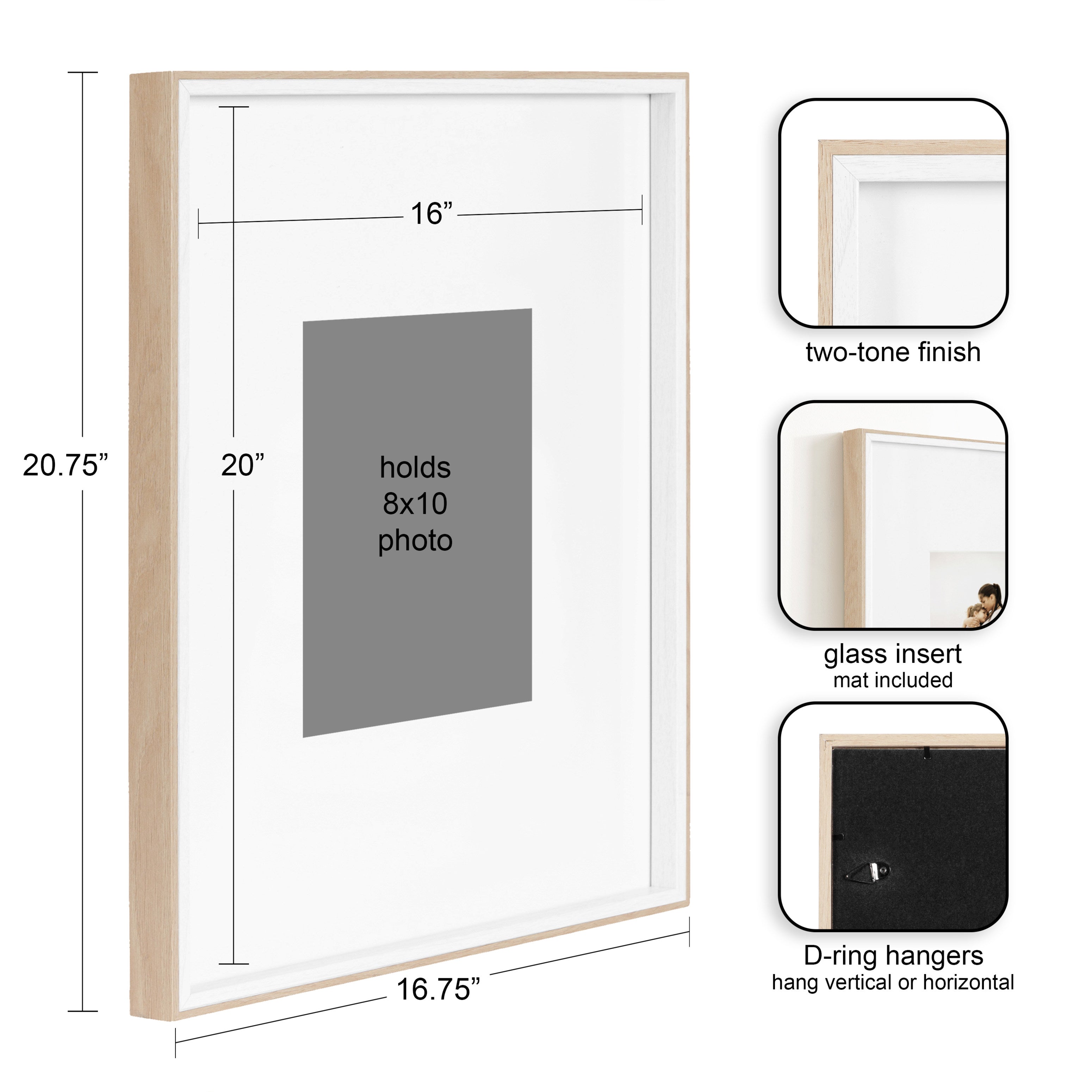 - Can be displayed with or without removable mats