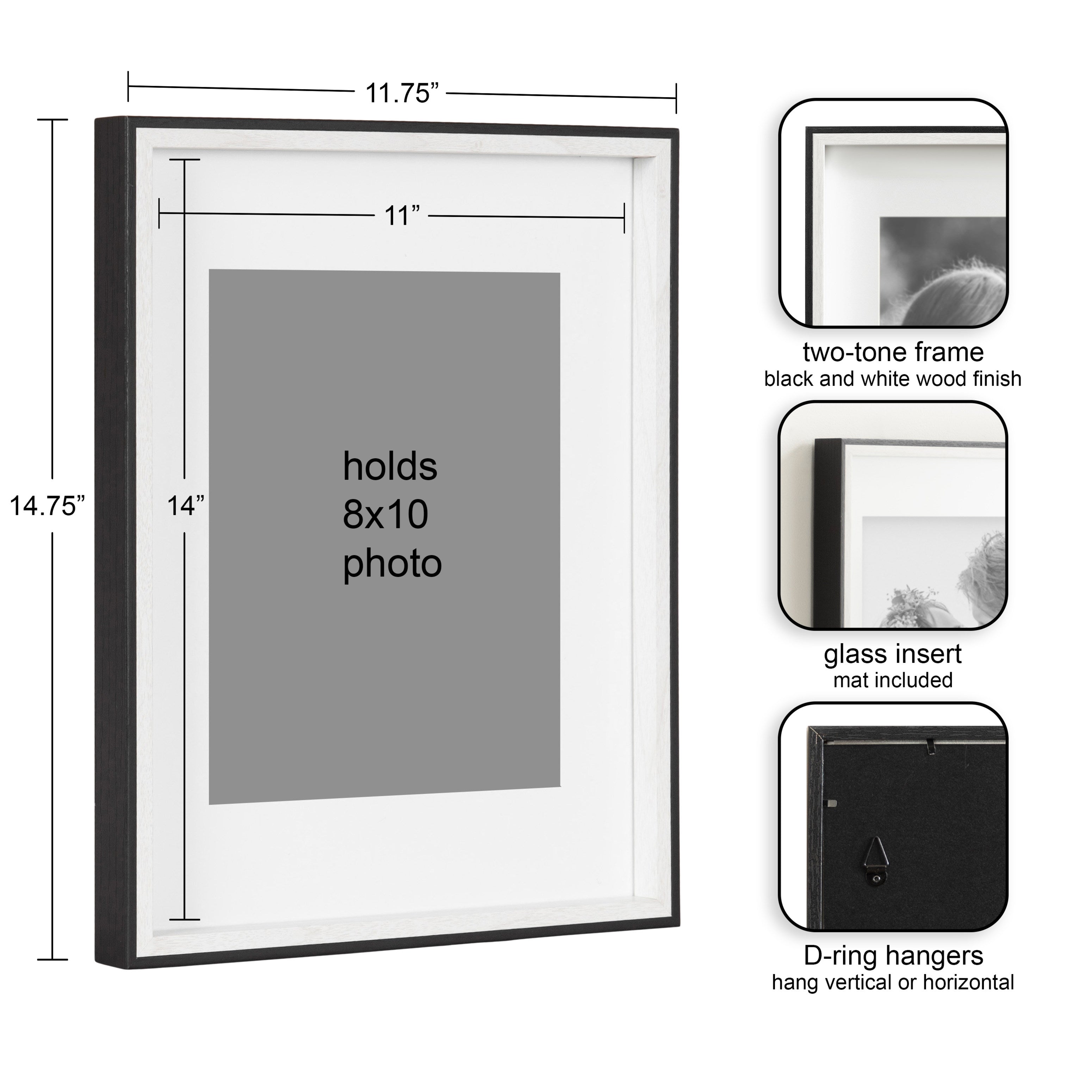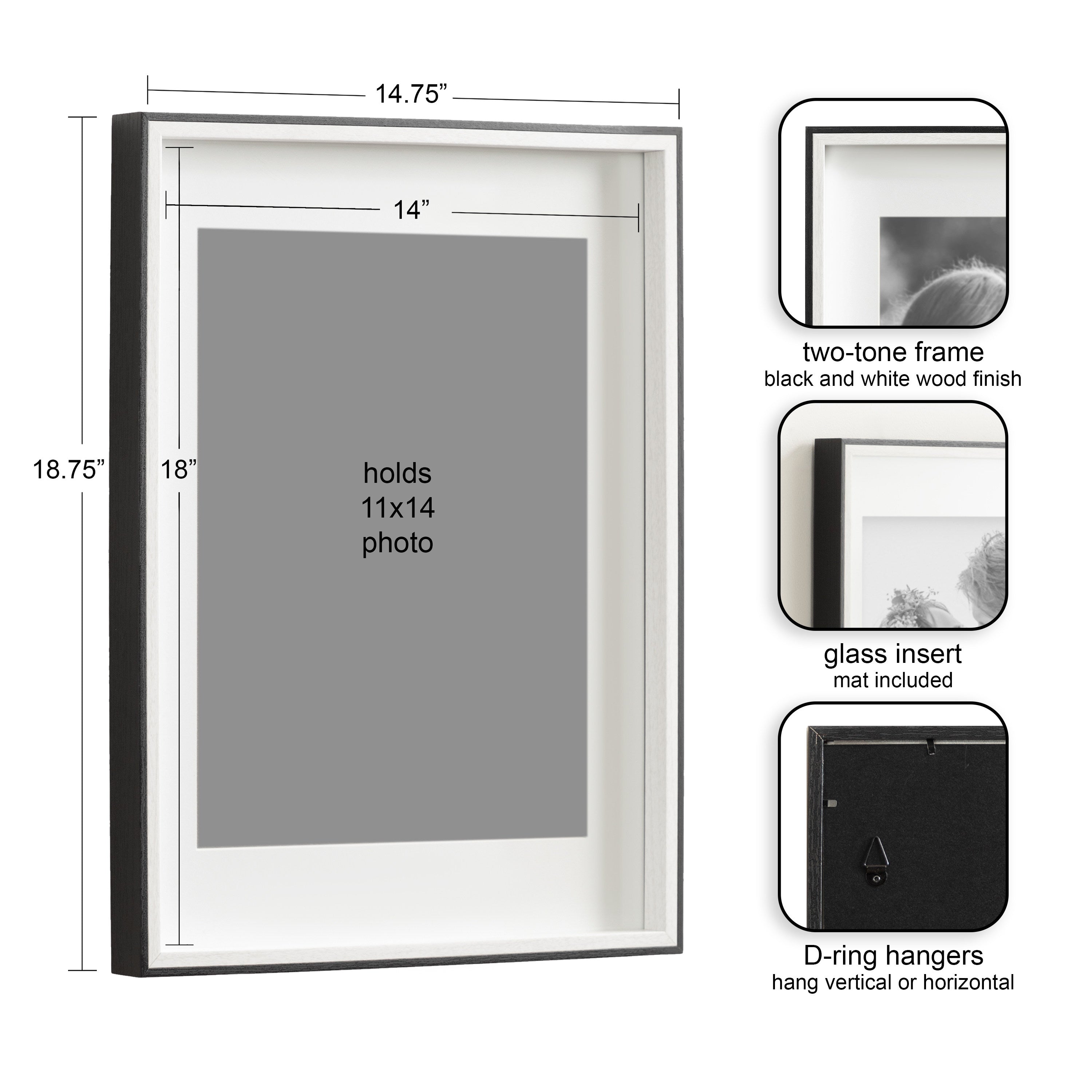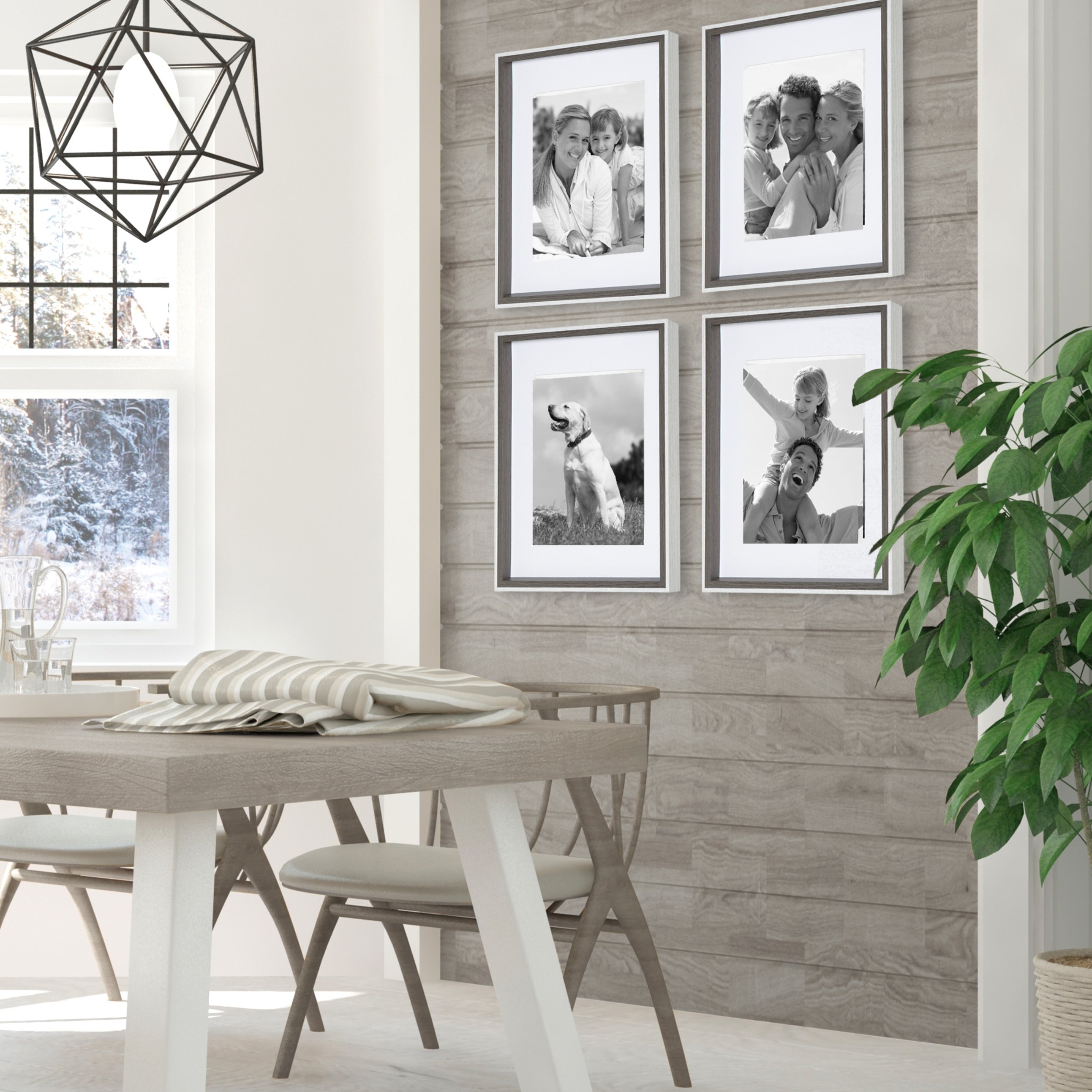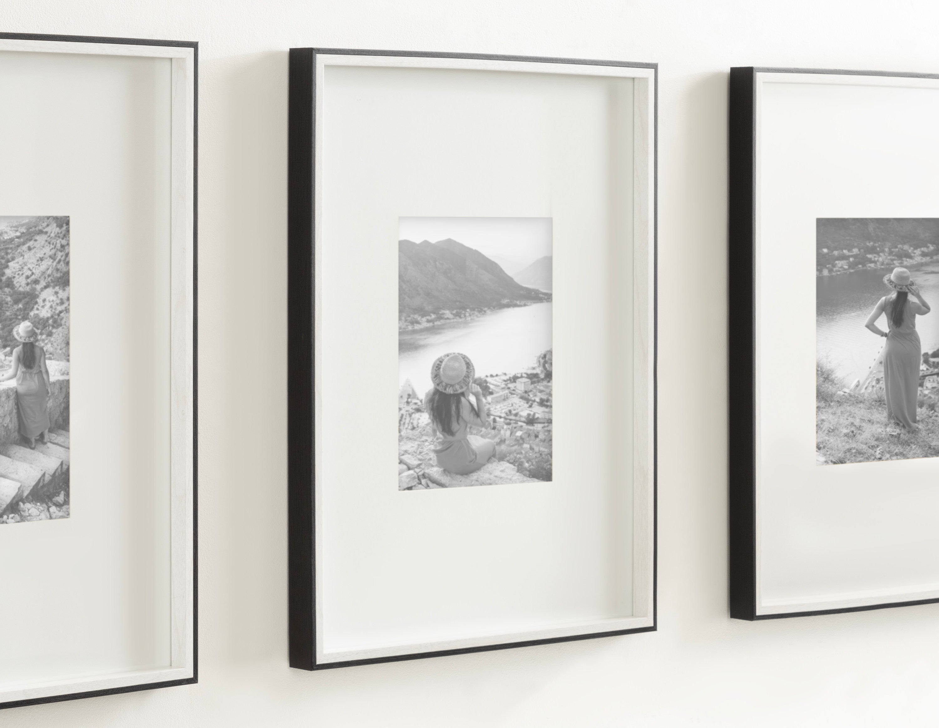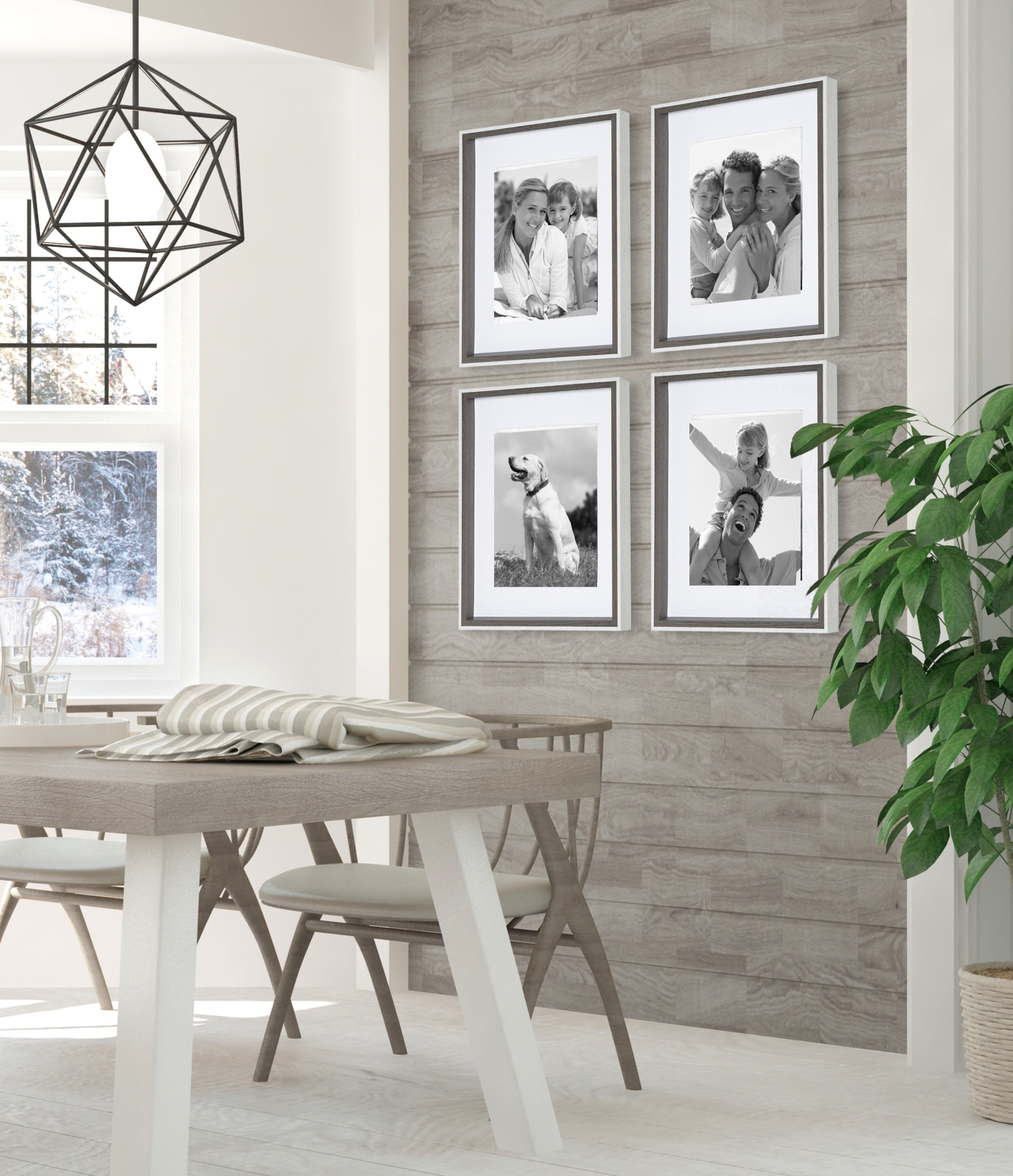 Celebrate your most treasured family moments and memories in a wall display that perfectly preserves them for years to come. The Gibson transitional frame set is meant to showcase your family pictures forever while seamlessly fitting into any decor theme. This set has two toned finishes, inspired by the straight forward simplicity of Scandinavian design. This gives the Gibson frame set a transitional aesthetic that fits in well anywhere you decide to put it. Our transitional frames also mount your photos under glass to keep them protected from everyday wear, ensuring that your precious memories last for generations to come.