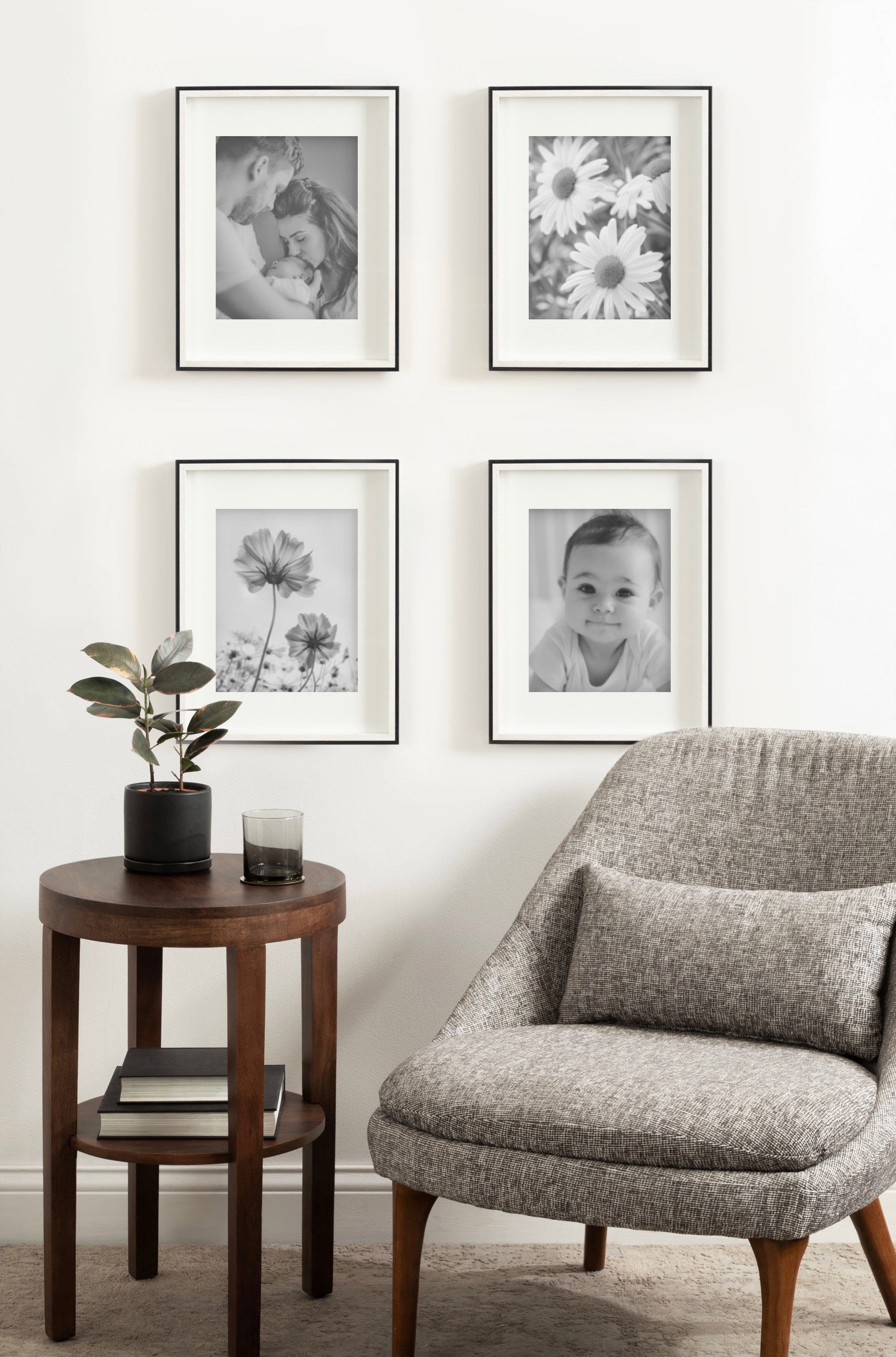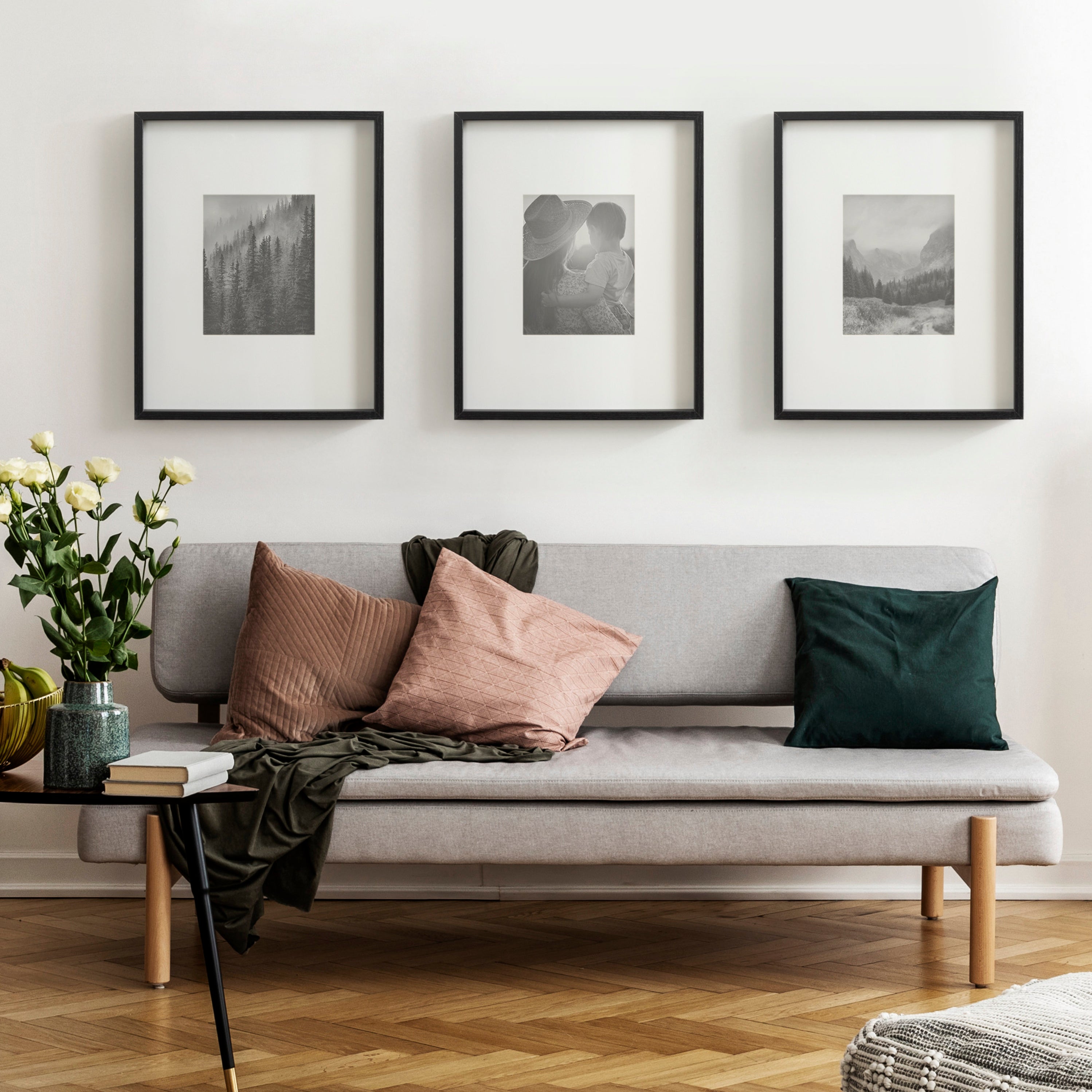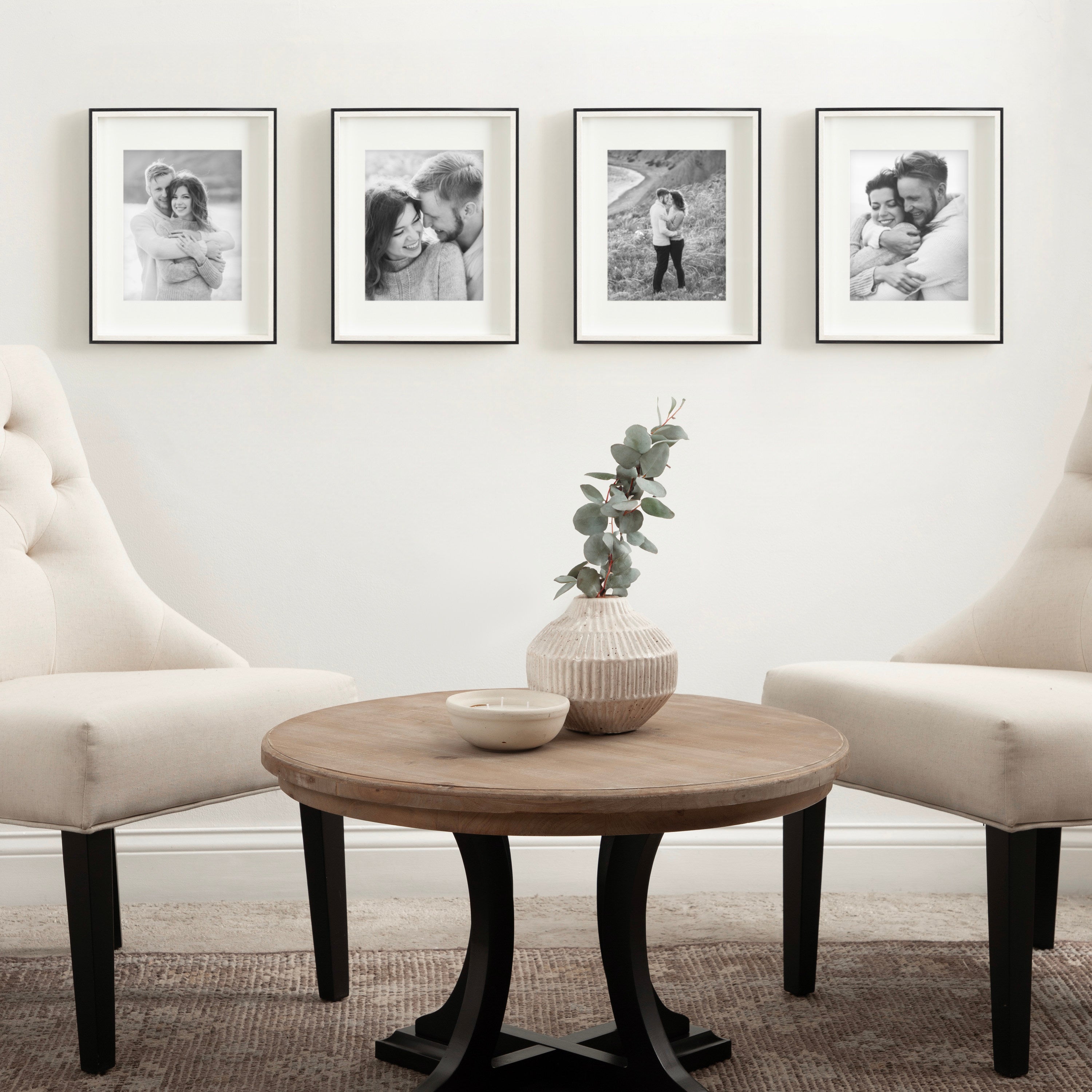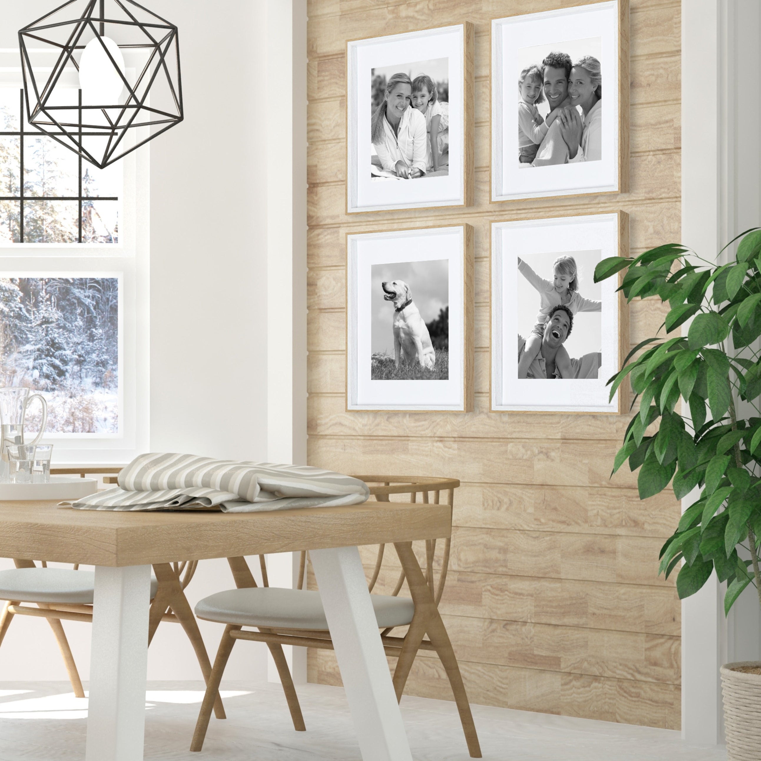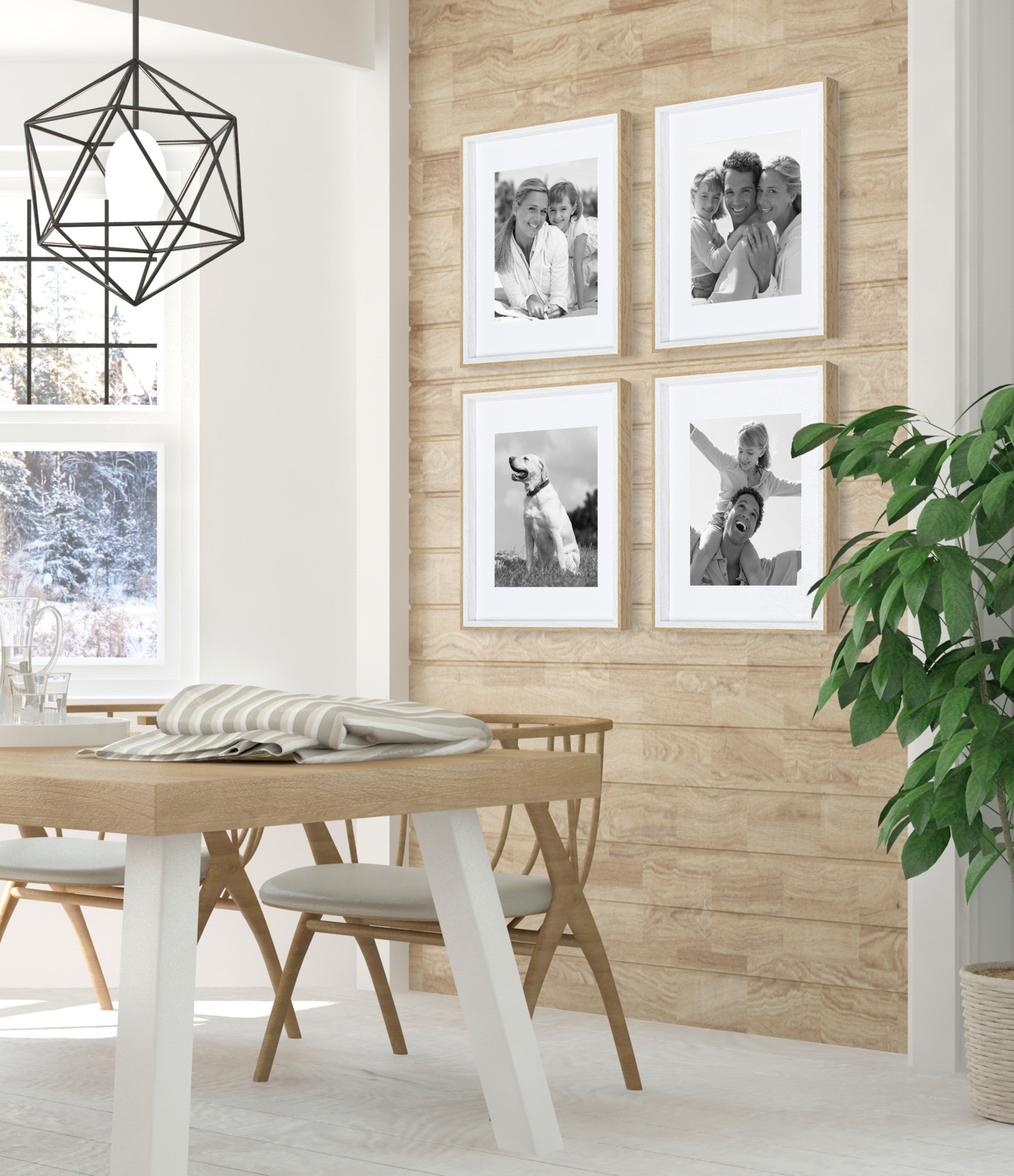 Celebrate your most treasured family moments and memories in a wall display that perfectly preserves them for years to come. The Gibson transitional frame set is meant to showcase your family pictures forever while seamlessly fitting into any decor theme. This set has two toned finishes, inspired by the straight forward simplicity of Scandinavian design. This gives the Gibson frame set a transitional aesthetic that fits in well anywhere you decide to put it. Our transitional frames also mount your photos under glass to keep them protected from everyday wear, ensuring that your precious memories last for generations to come.