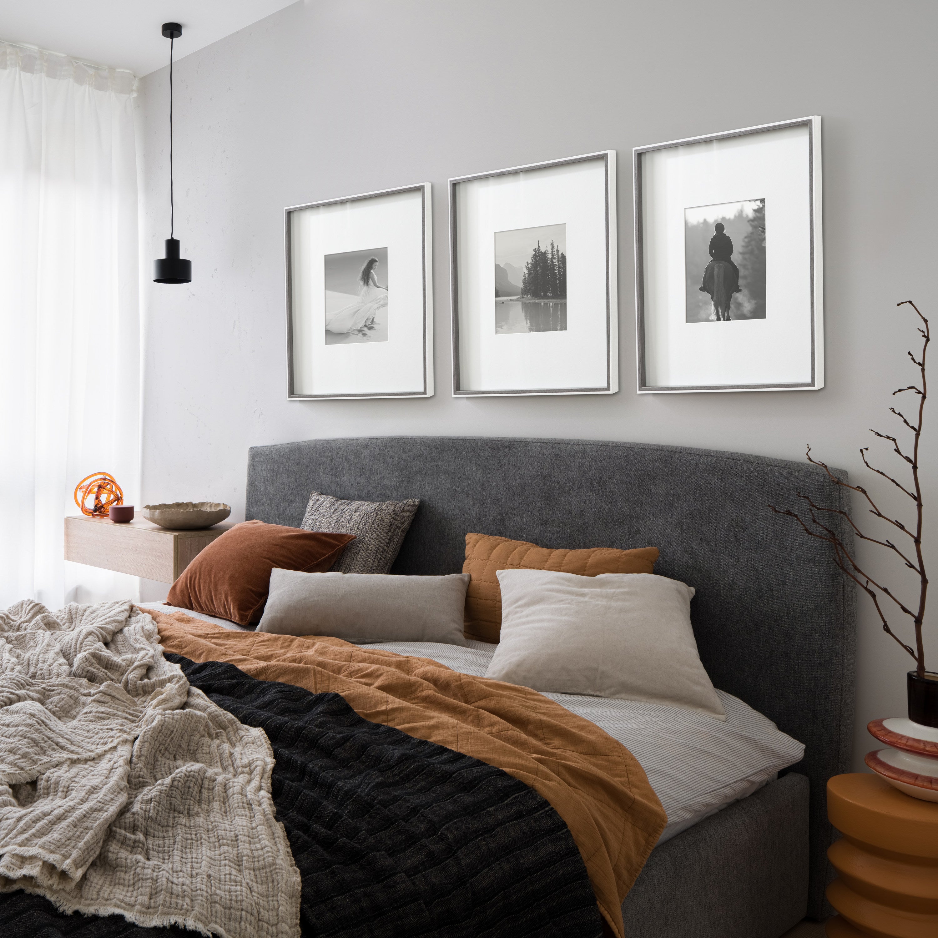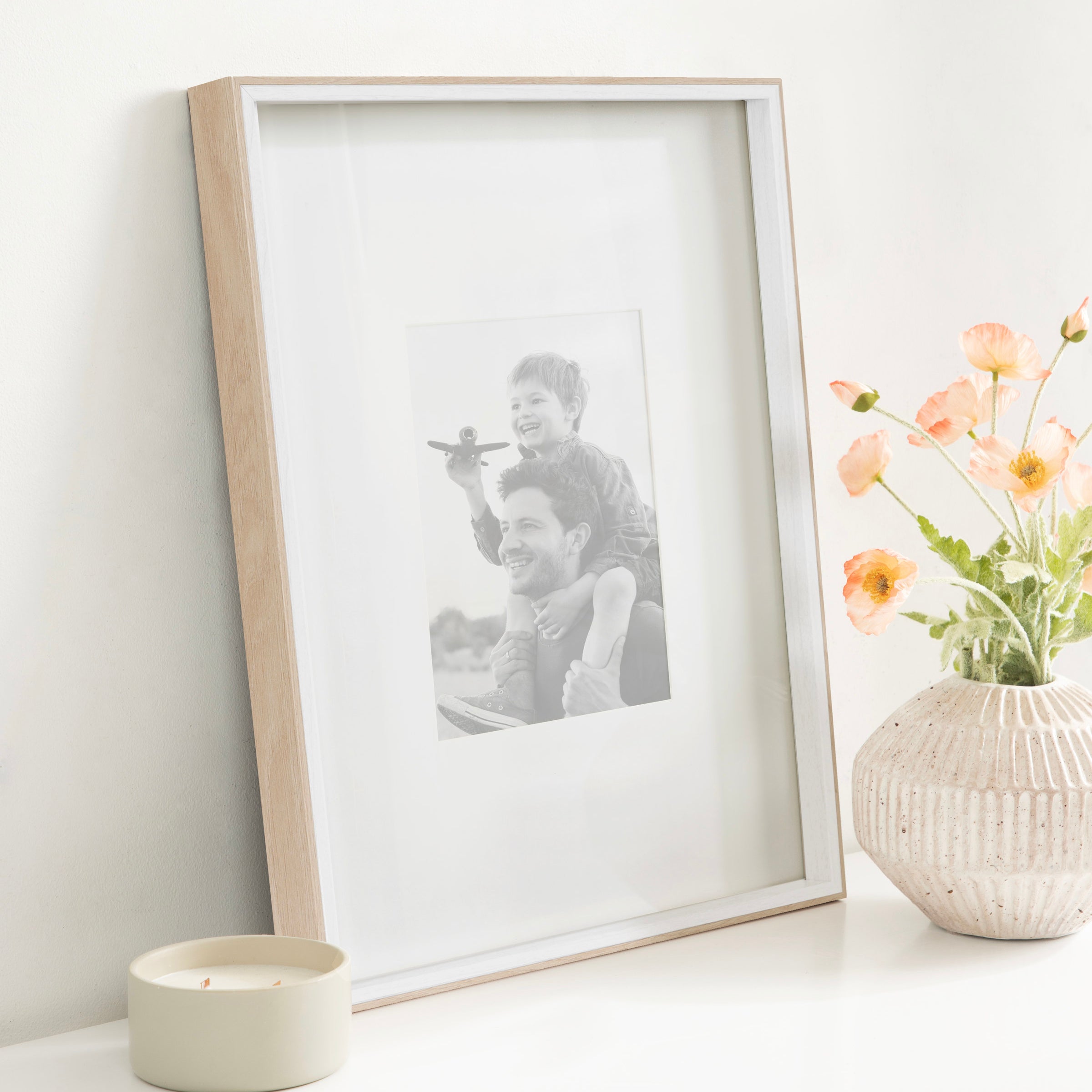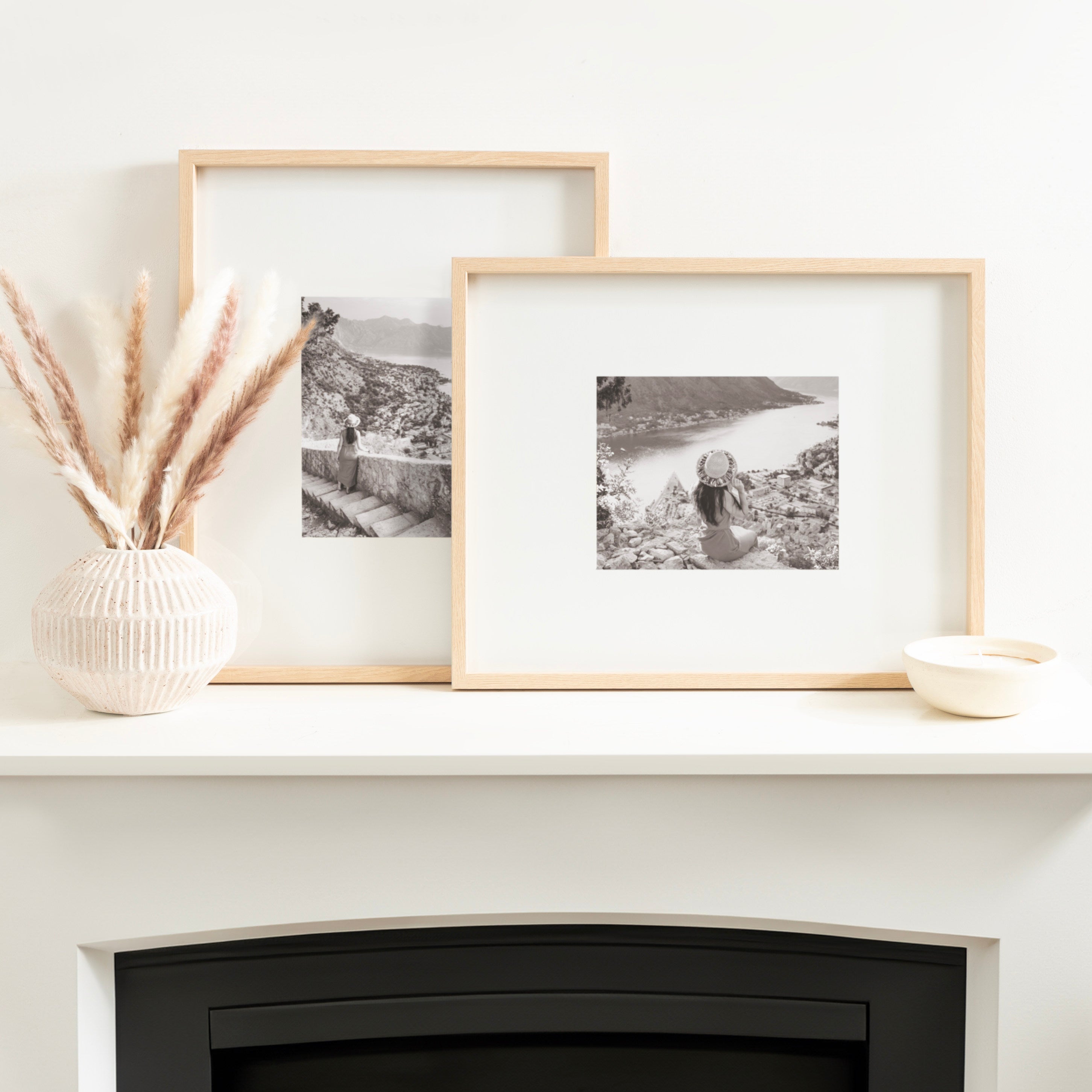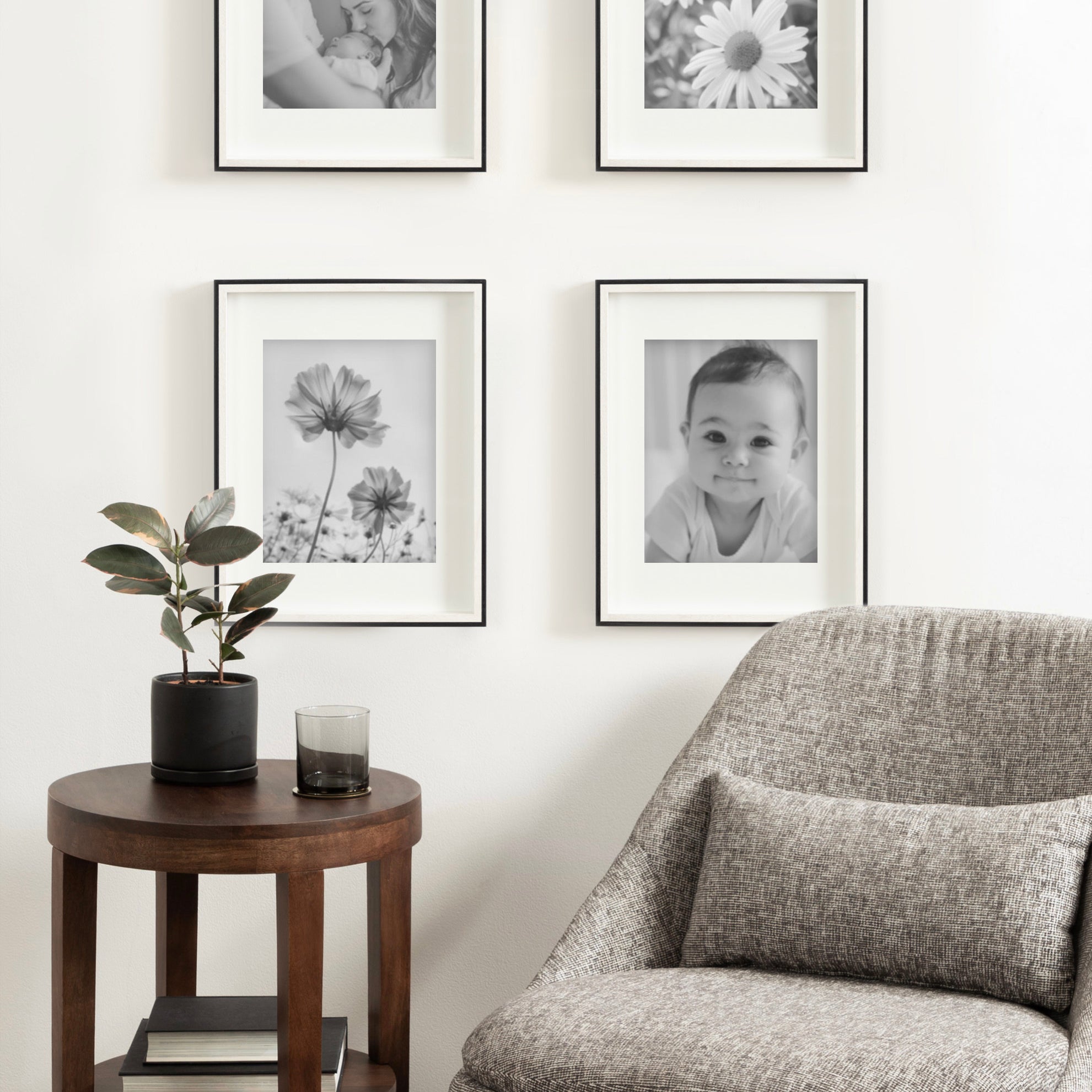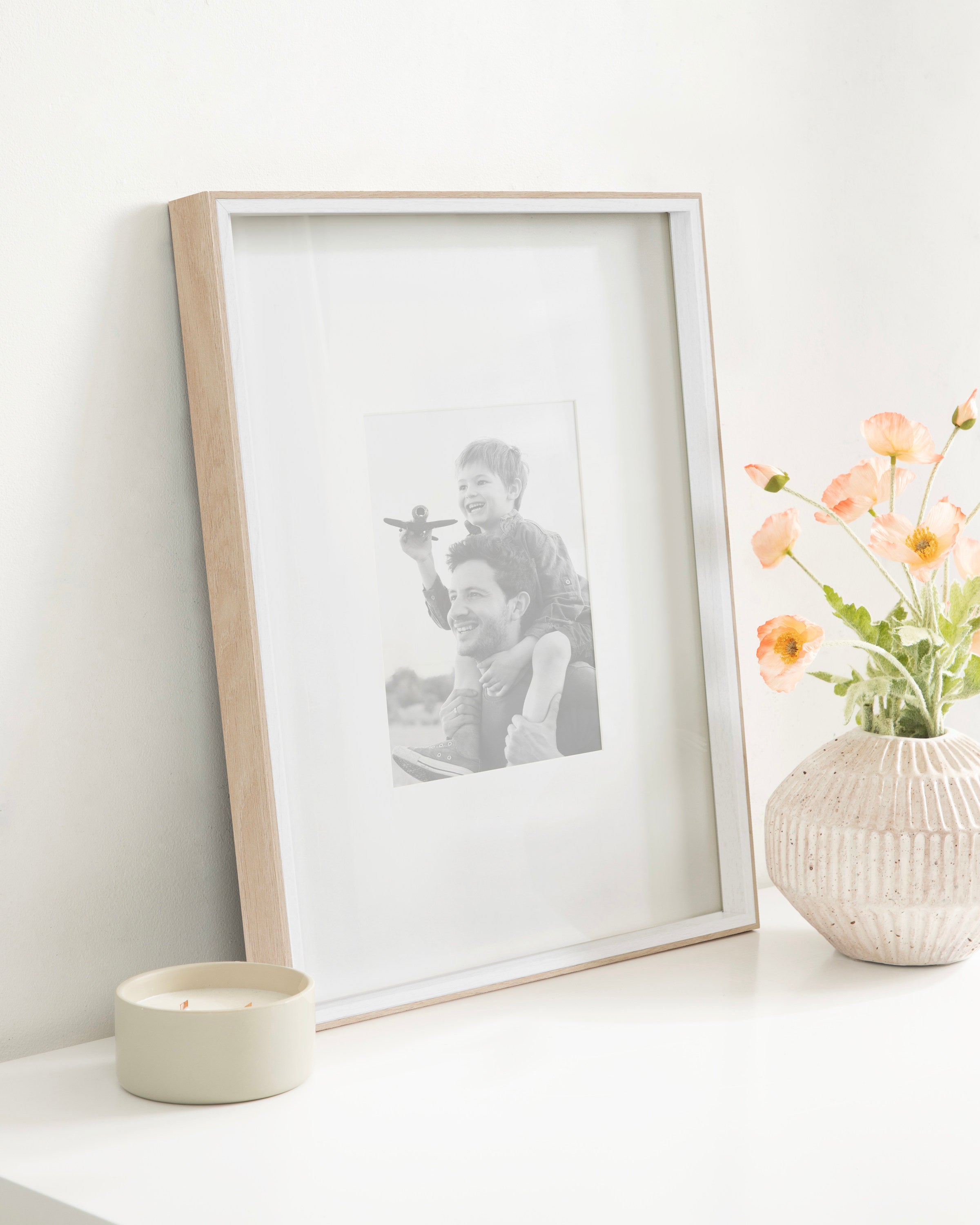 Celebrate your most treasured family moments and memories in a wall display that perfectly preserves them for years to come. The Gibson transitional frame set is meant to showcase your family pictures forever while seamlessly fitting into any decor theme. This set has two toned finishes, inspired by the straight forward simplicity of Scandinavian design. This gives the Gibson frame set a transitional aesthetic that fits in well anywhere you decide to put it. Our transitional frames also mount your photos under glass to keep them protected from everyday wear, ensuring that your precious memories last for generations to come.
