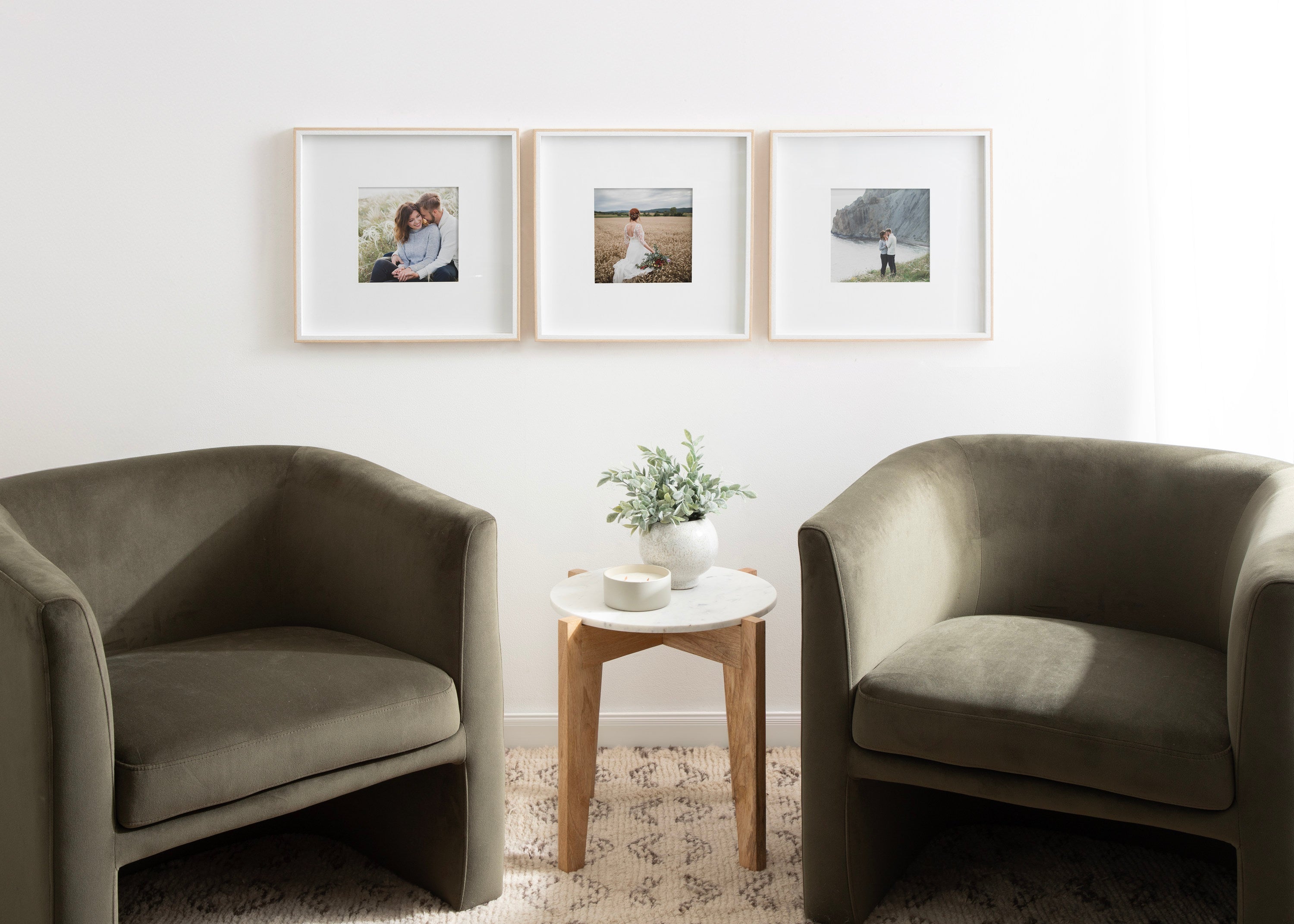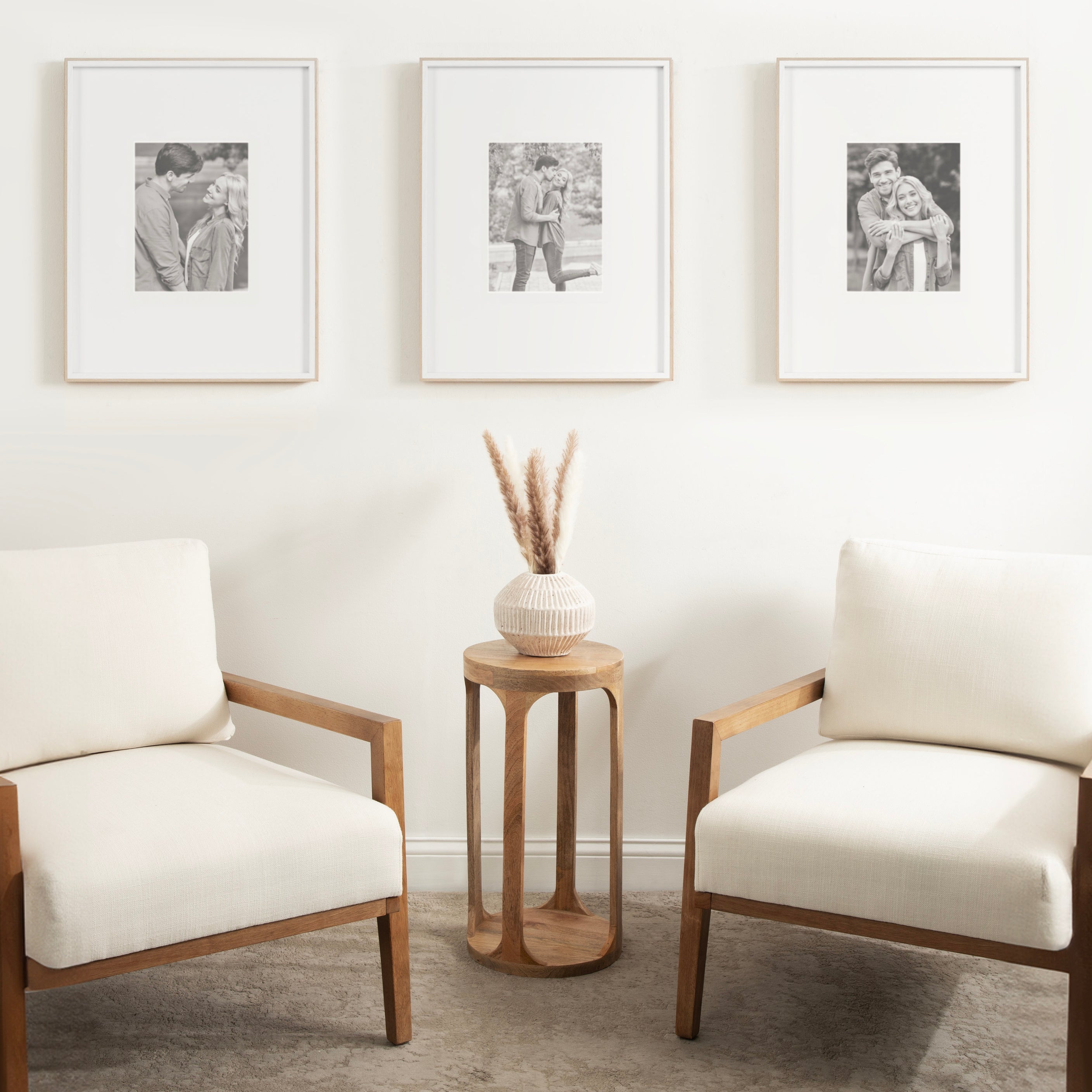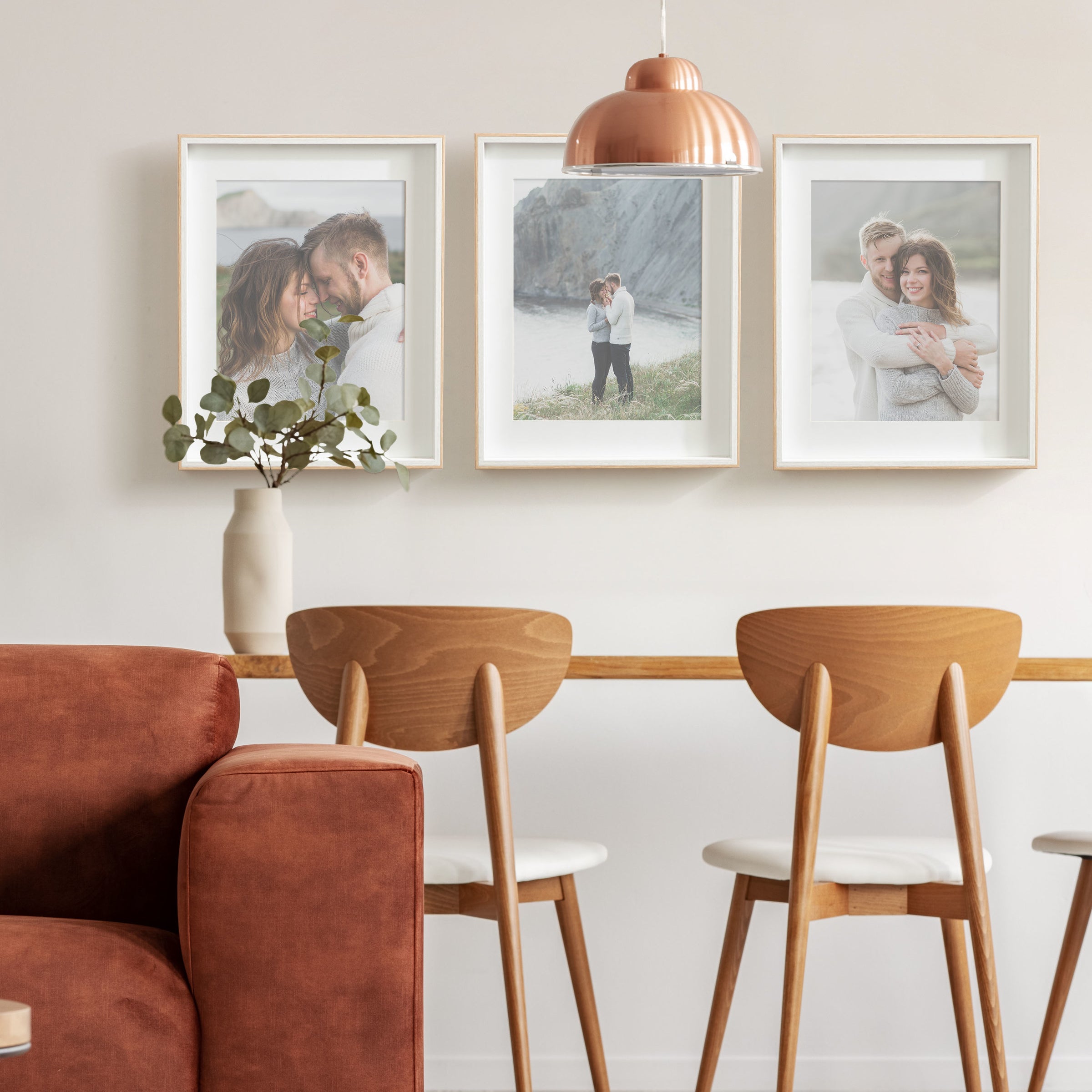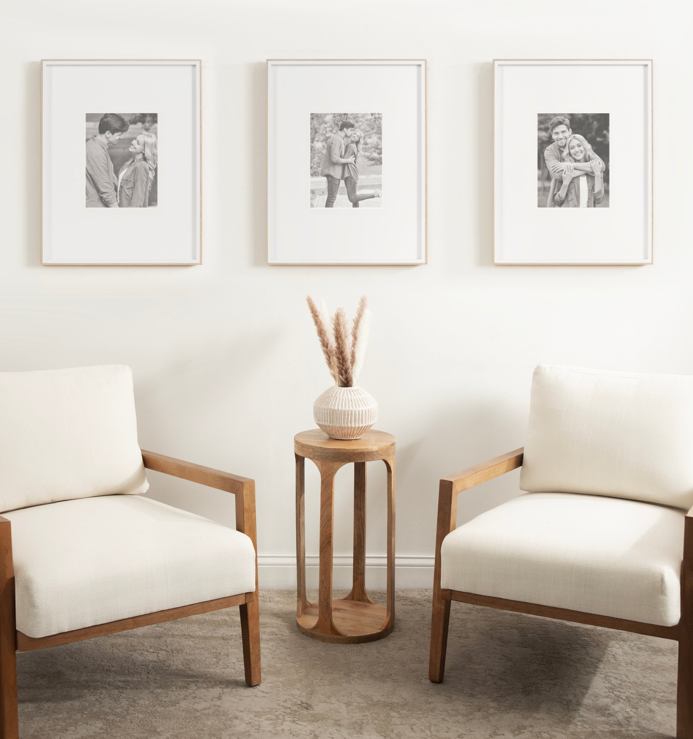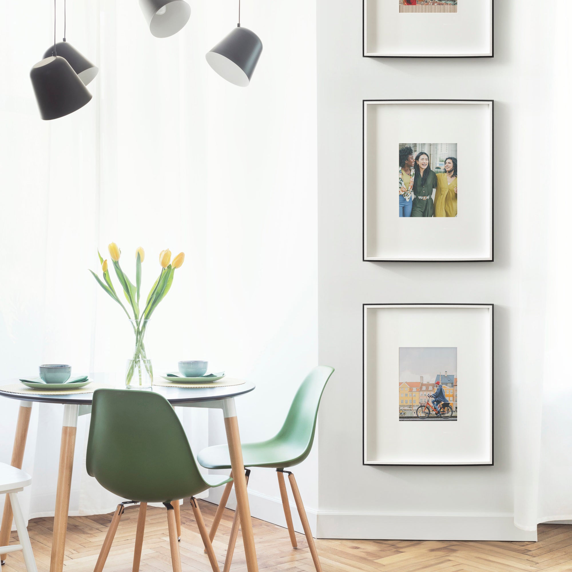 Celebrate your most treasured family moments and memories in a wall display that perfectly preserves them for years to come. The Gibson transitional frame set is meant to showcase your family pictures forever while seamlessly fitting into any decor theme. This set has two toned finishes, inspired by the straight forward simplicity of Scandinavian design. This gives the Gibson frame set a transitional aesthetic that fits in well anywhere you decide to put it. Our transitional frames also mount your photos under glass to keep them protected from everyday wear, ensuring that your precious memories last for generations to come.