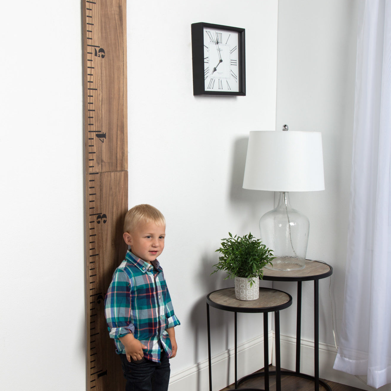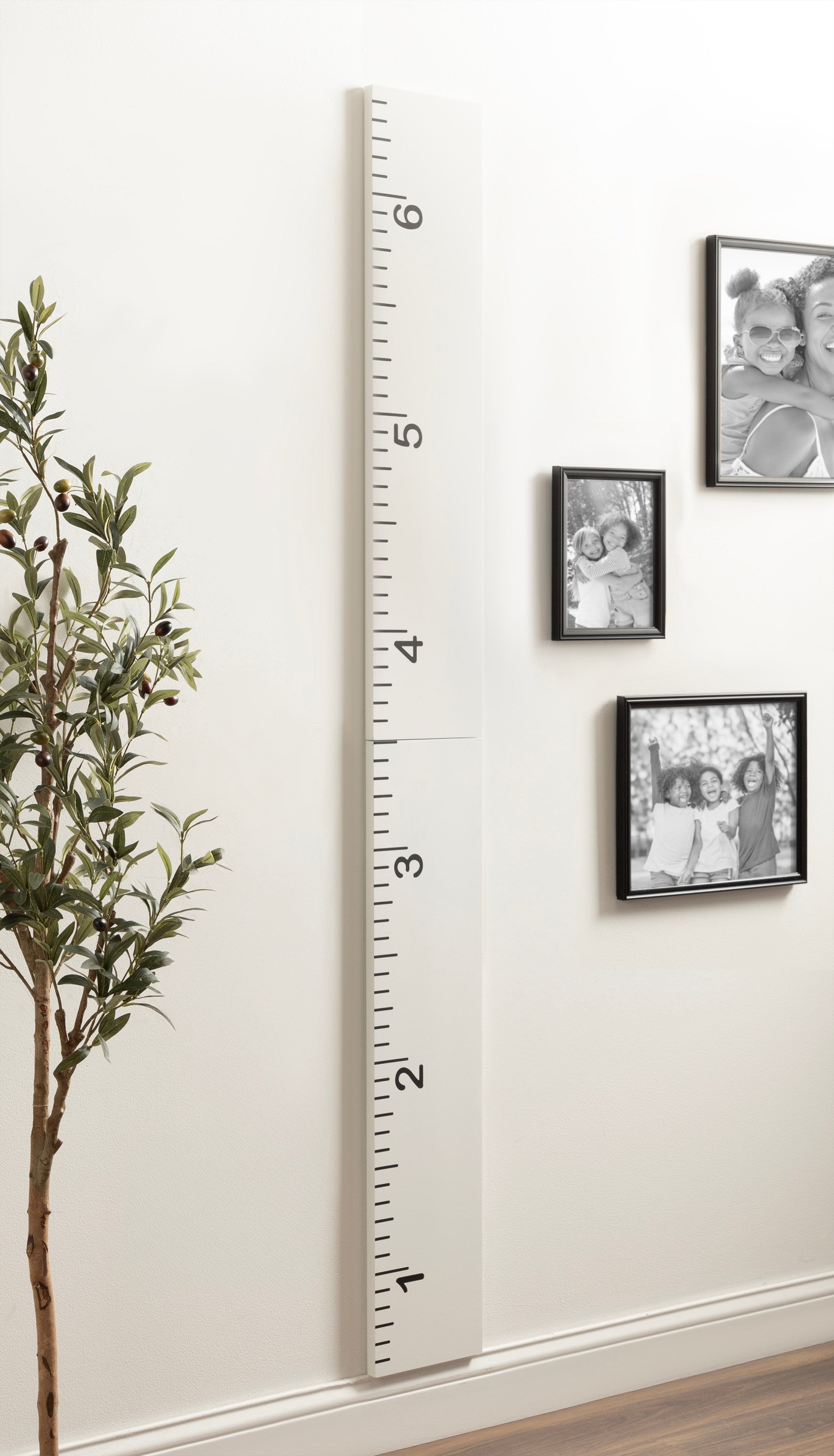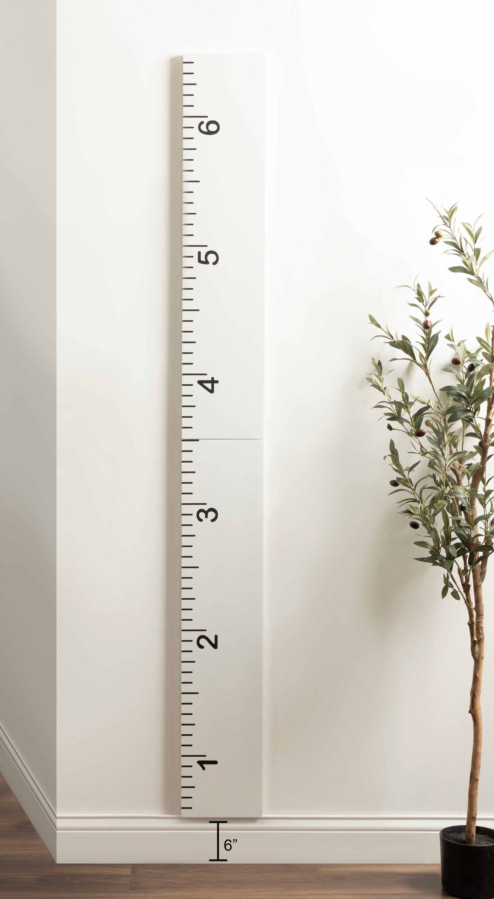 You and your child will love to celebrate growth in charming style with this wall ruler growth chart. To ensure accurate measurements, this growth chart is intended to be mounted to the wall six inches off the ground. That will allow you to measure up to 6.5 feet as the ruler itself is six feet tall. This allows you to hang it on walls that have baseboards with no issue. The overall dimensions are 8 inches wide, 0.75 inches deep, and 72 inches high. The ruler ships fully assembled, simply unfold the hinge and hang the ruler on your wall to start measuring. Hang this ruler in a kitchen, entryway, or child's bedroom and have fun measuring your child's growth in style! Attached to the back of this growth chart is a metal keyhole hanger, making wall mounting both simple and secure.