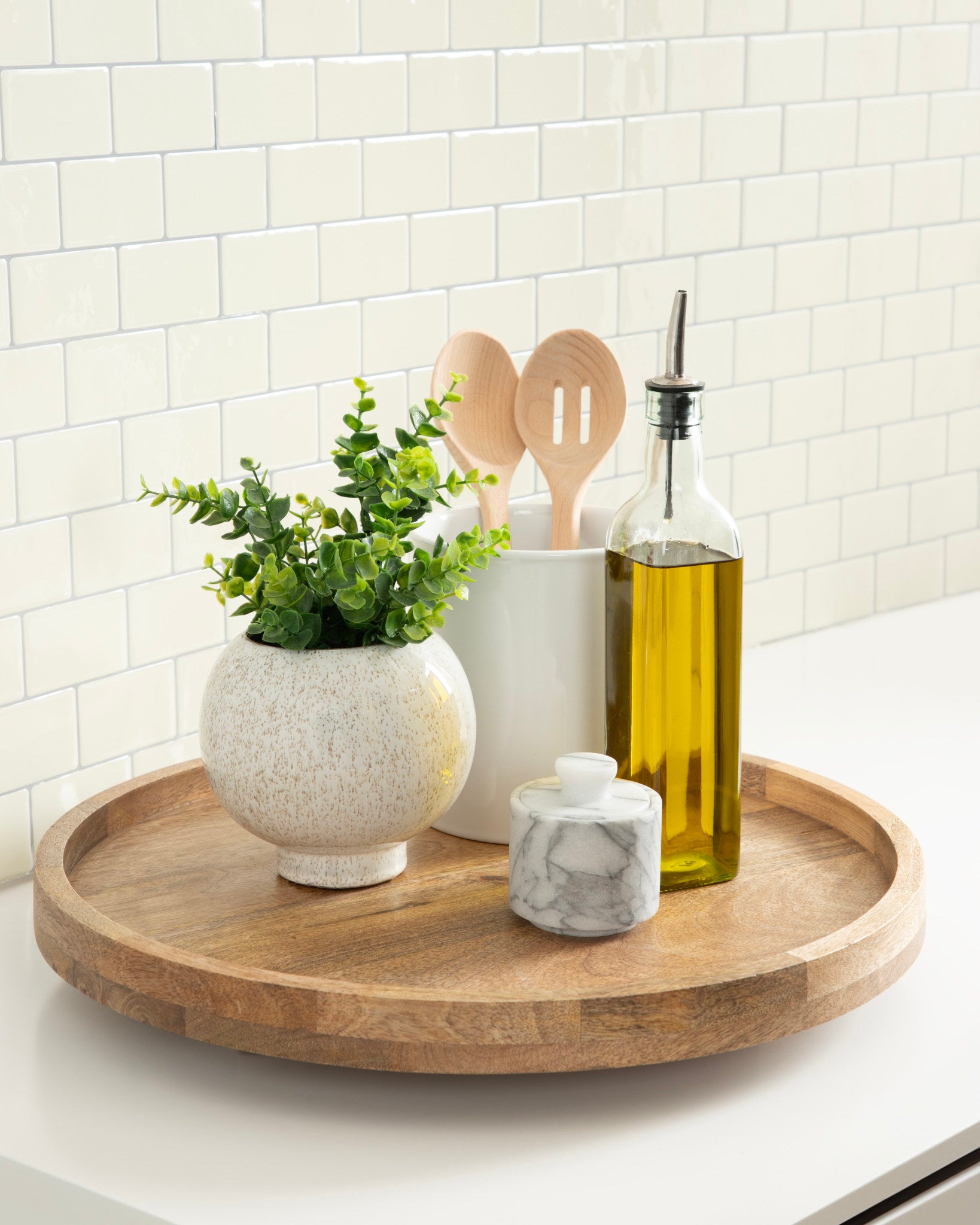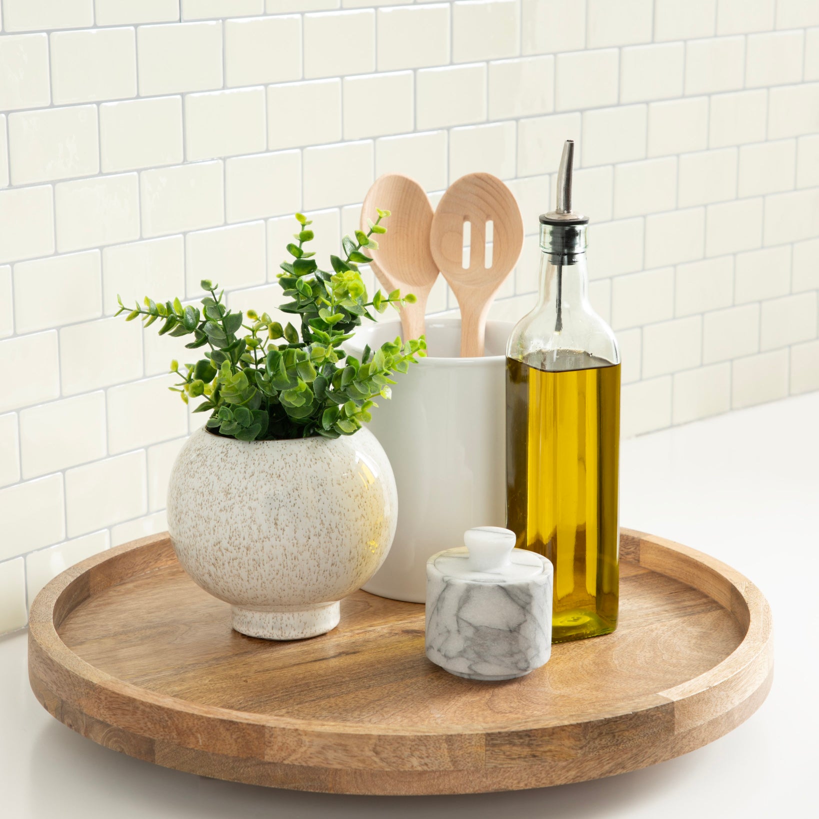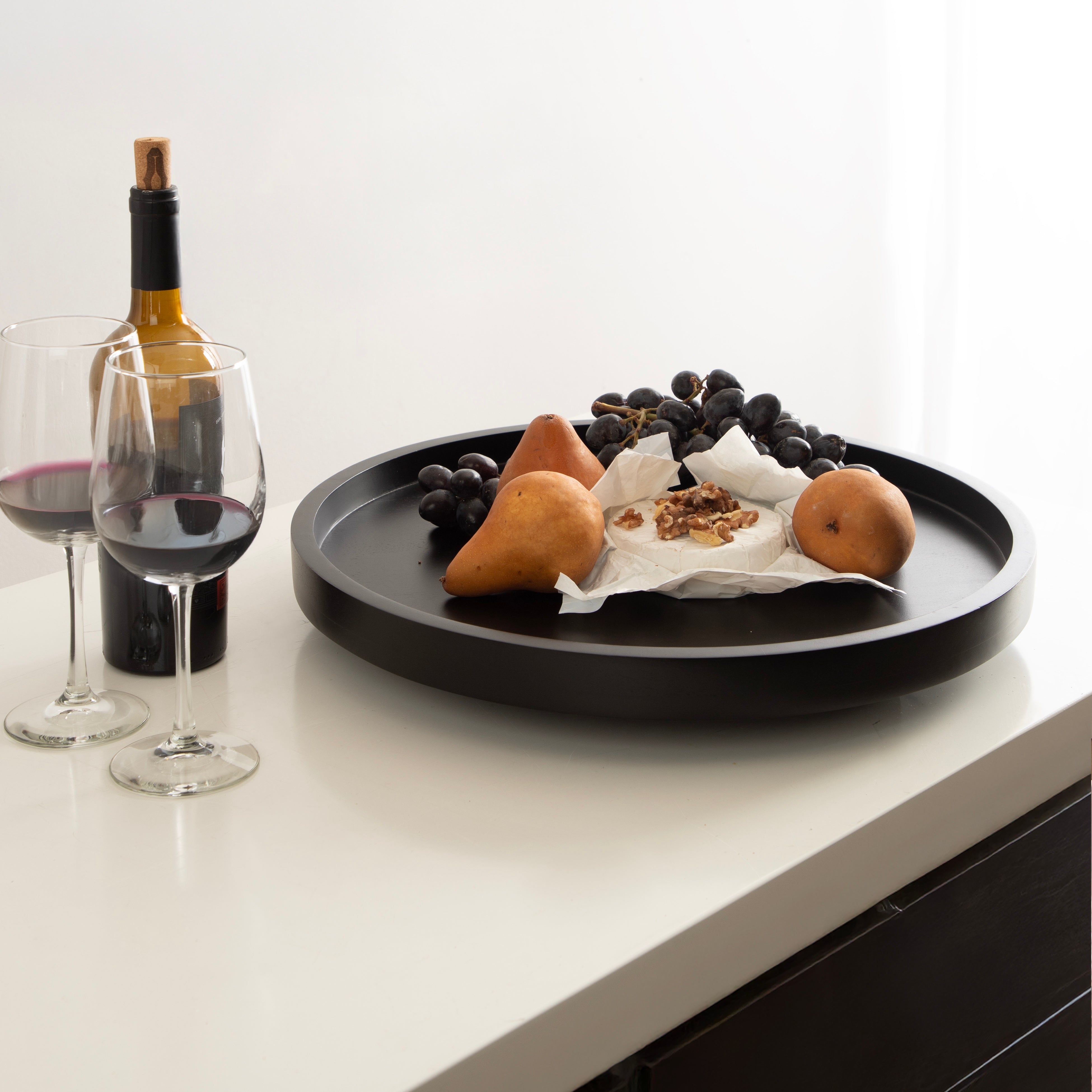 This circular Lazy Susan tray is a highly versatile accent that is great as a food-safe dining table serving tray or as a decor piece on your kitchen countertops. Say goodbye to the hassle of rummaging through cluttered cabinets; simply give the tray a gentle spin, and everything you need is right at your fingertips. The smooth rotation ensures effortless movement, while the sturdy base keeps your items secure, preventing any accidental spills. This circular under-sink organizer is not just limited to the kitchen; it's perfect for bathroom cabinets, office desks, or even as a centerpiece on your dining table. Arrange condiments, spices, and cooking essentials in the kitchen, or keep toiletries, beauty products, and cleaning supplies in order under the bathroom sink.