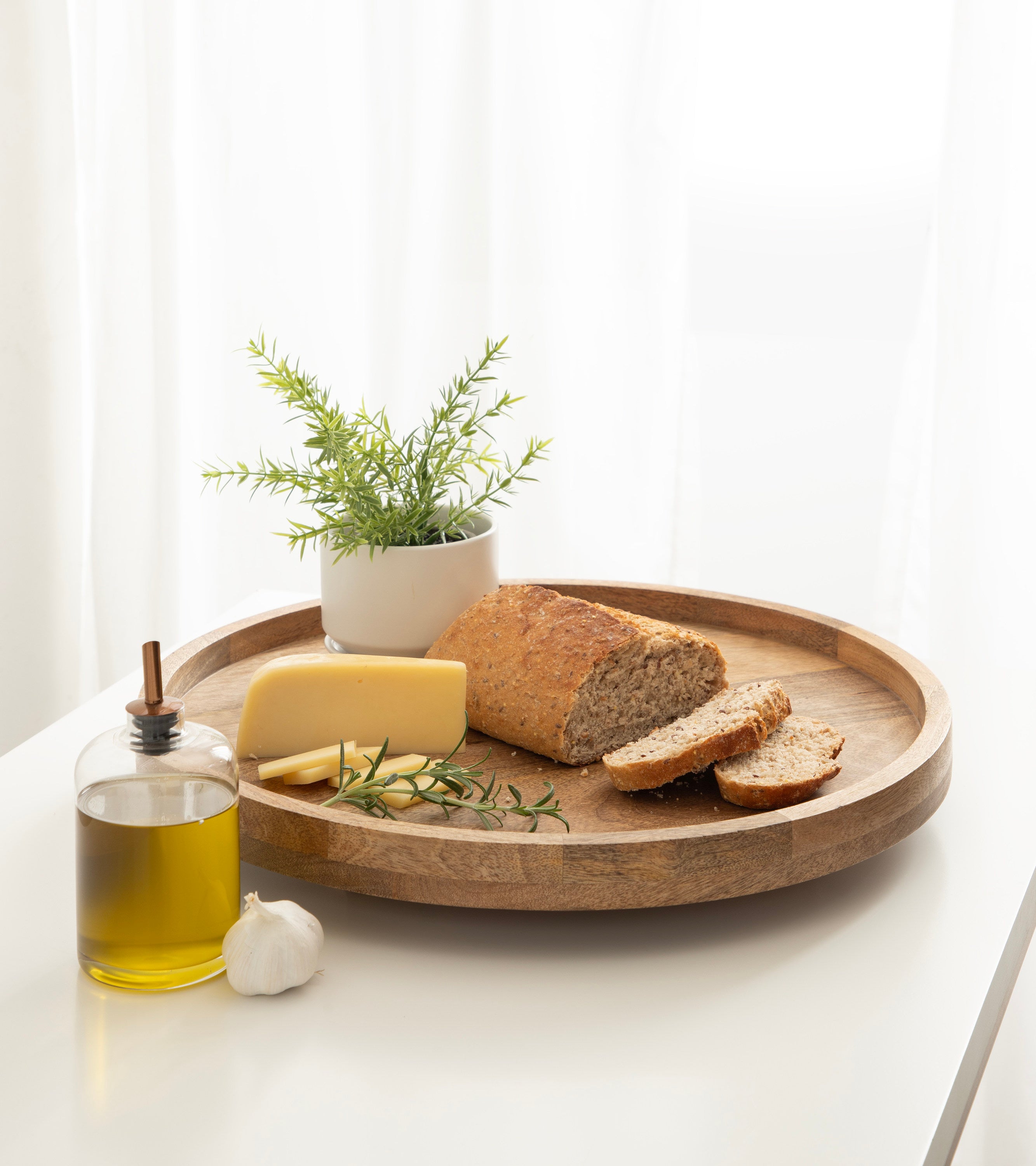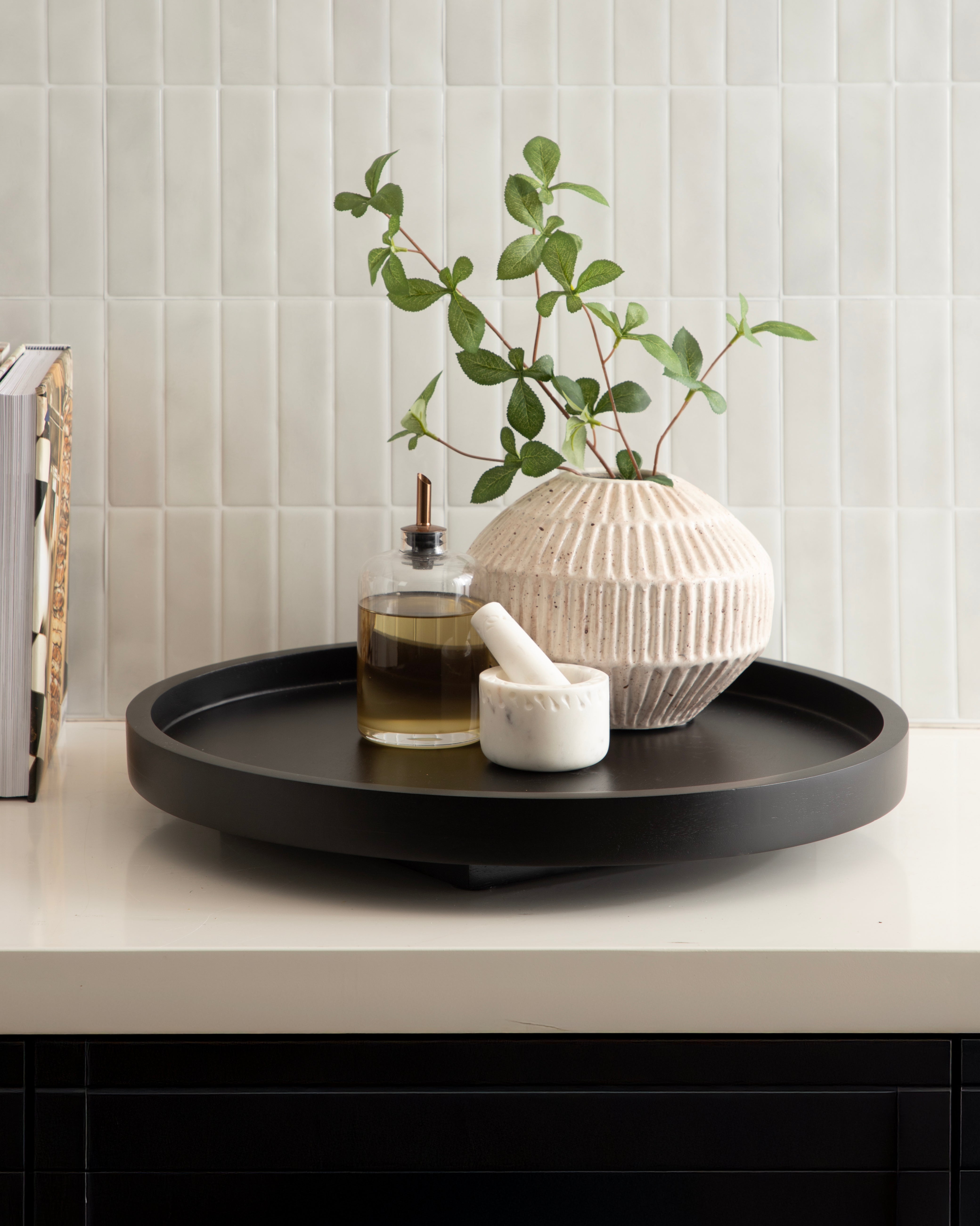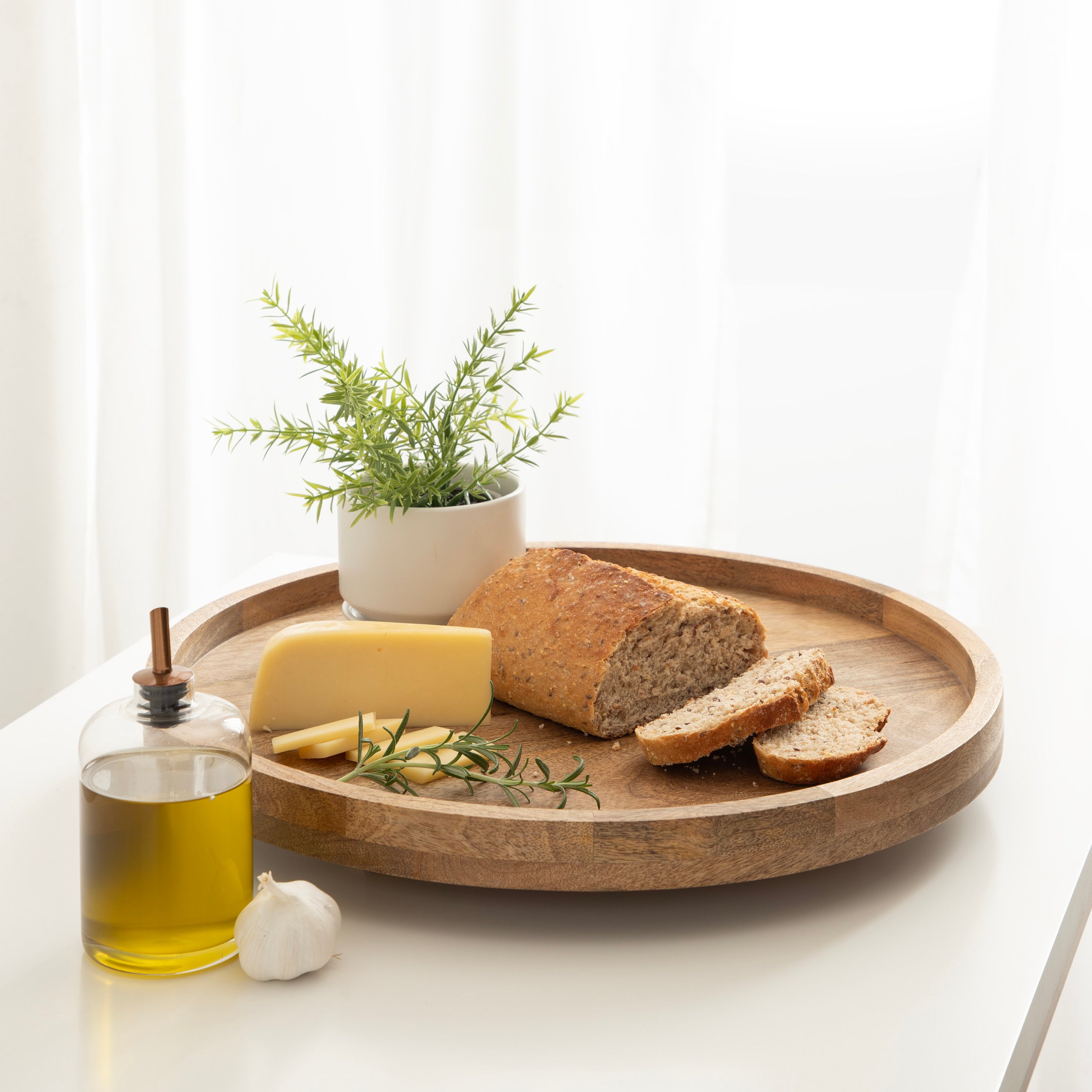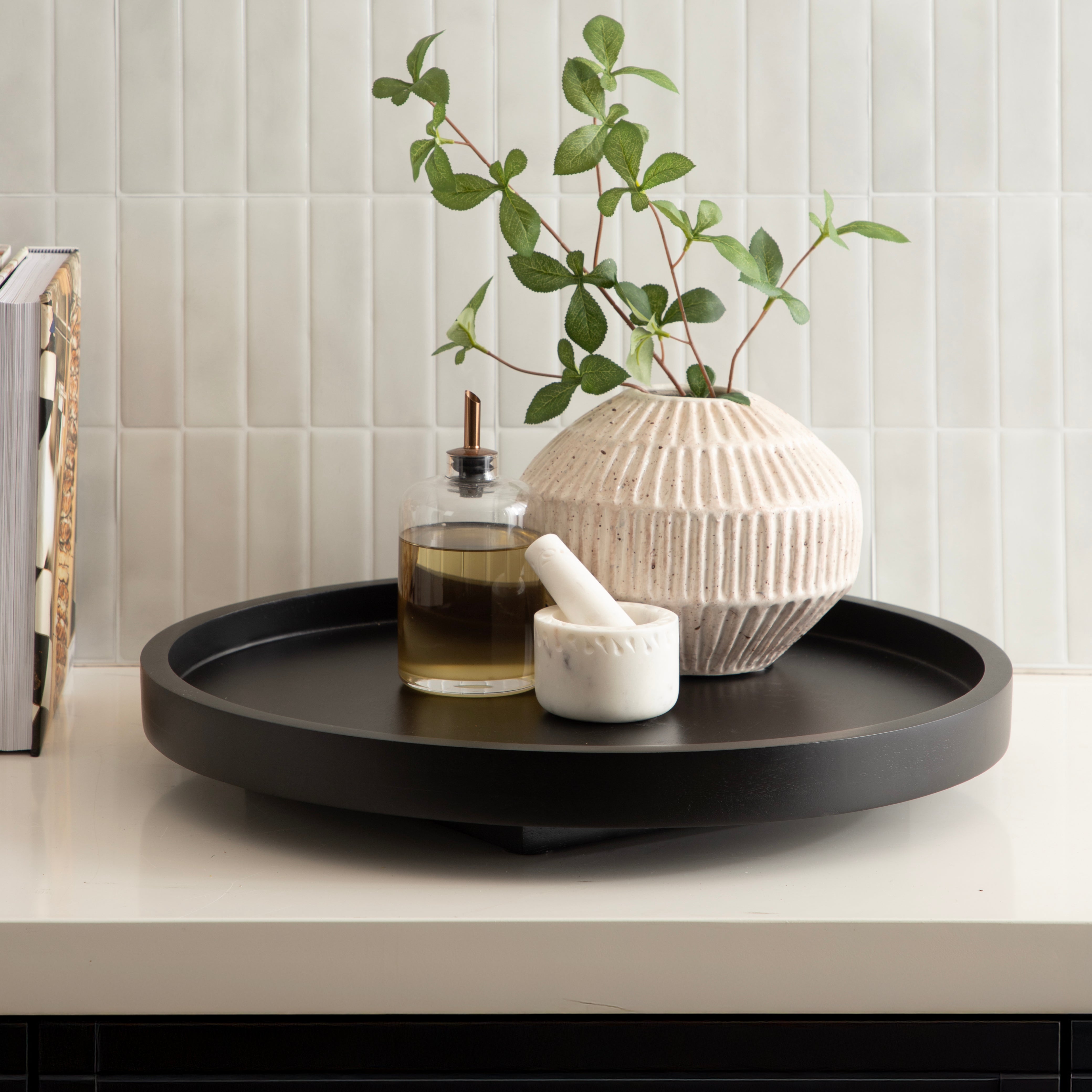 This circular Lazy Susan tray is a highly versatile accent that is great as a food-safe dining table serving tray or as a decor piece on your kitchen countertops. Say goodbye to the hassle of rummaging through cluttered cabinets; simply give the tray a gentle spin, and everything you need is right at your fingertips. The smooth rotation ensures effortless movement, while the sturdy base keeps your items secure, preventing any accidental spills. This circular under-sink organizer is not just limited to the kitchen; it's perfect for bathroom cabinets, office desks, or even as a centerpiece on your dining table. Arrange condiments, spices, and cooking essentials in the kitchen, or keep toiletries, beauty products, and cleaning supplies in order under the bathroom sink.
