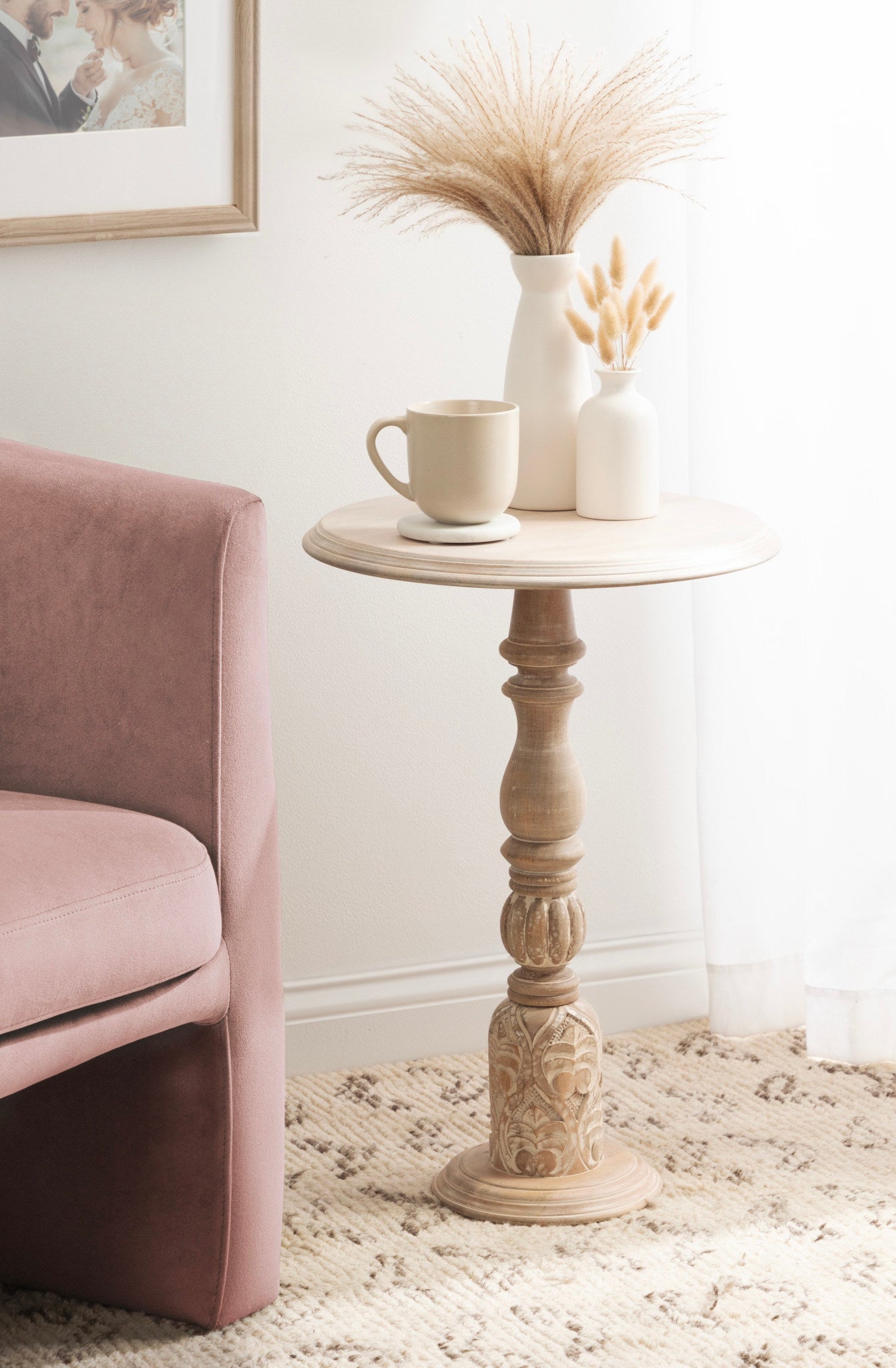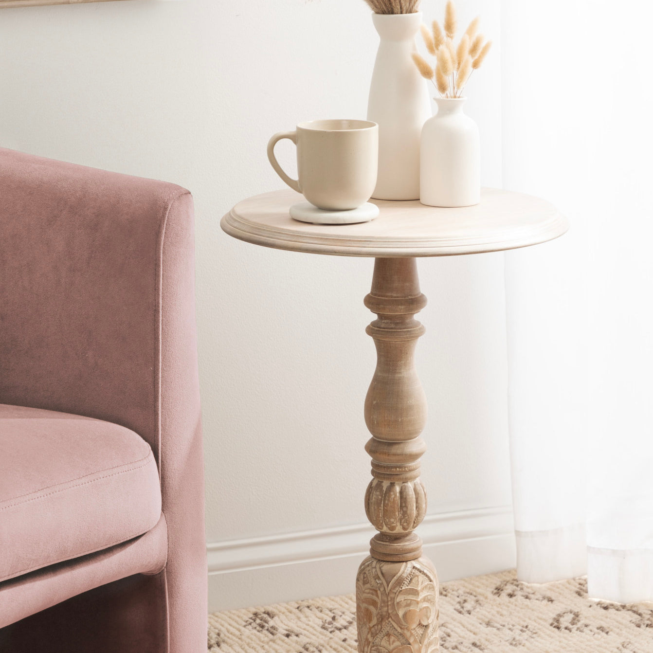 Introducing our beautifully crafted Hingham wooden side table, the perfect addition to any living room, home office, or sunroom. Made from high-quality mango wood, this table offers a stylish turned leg and a sturdy, reliable surface to hold your drinks, plants, or any items you may need within reach. The mango wood construction ensures that it can withstand regular use and will feature unique variations within the woodgrain based on its organic wood structure. Plus, its versatile size makes it easy to move around and store when not in use.