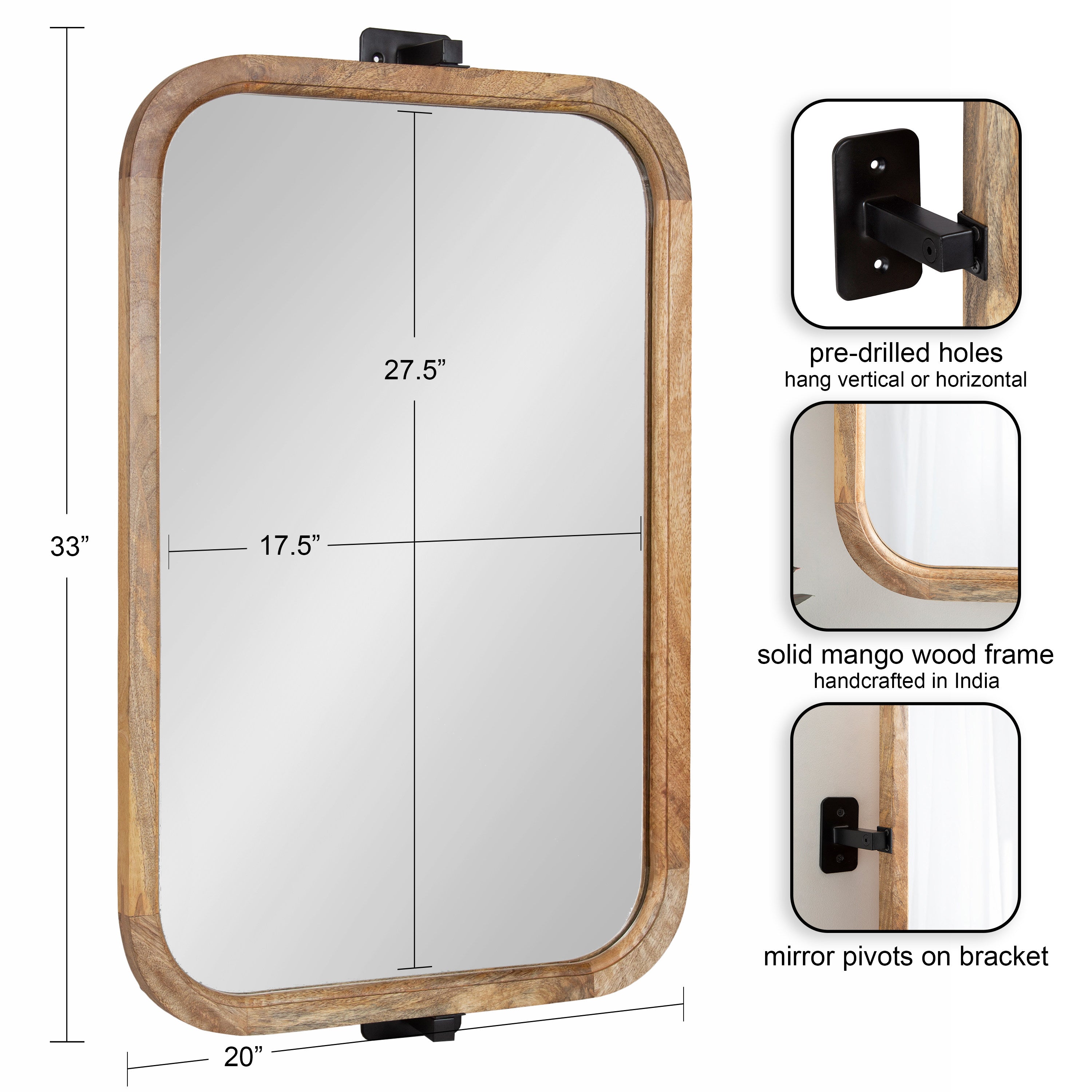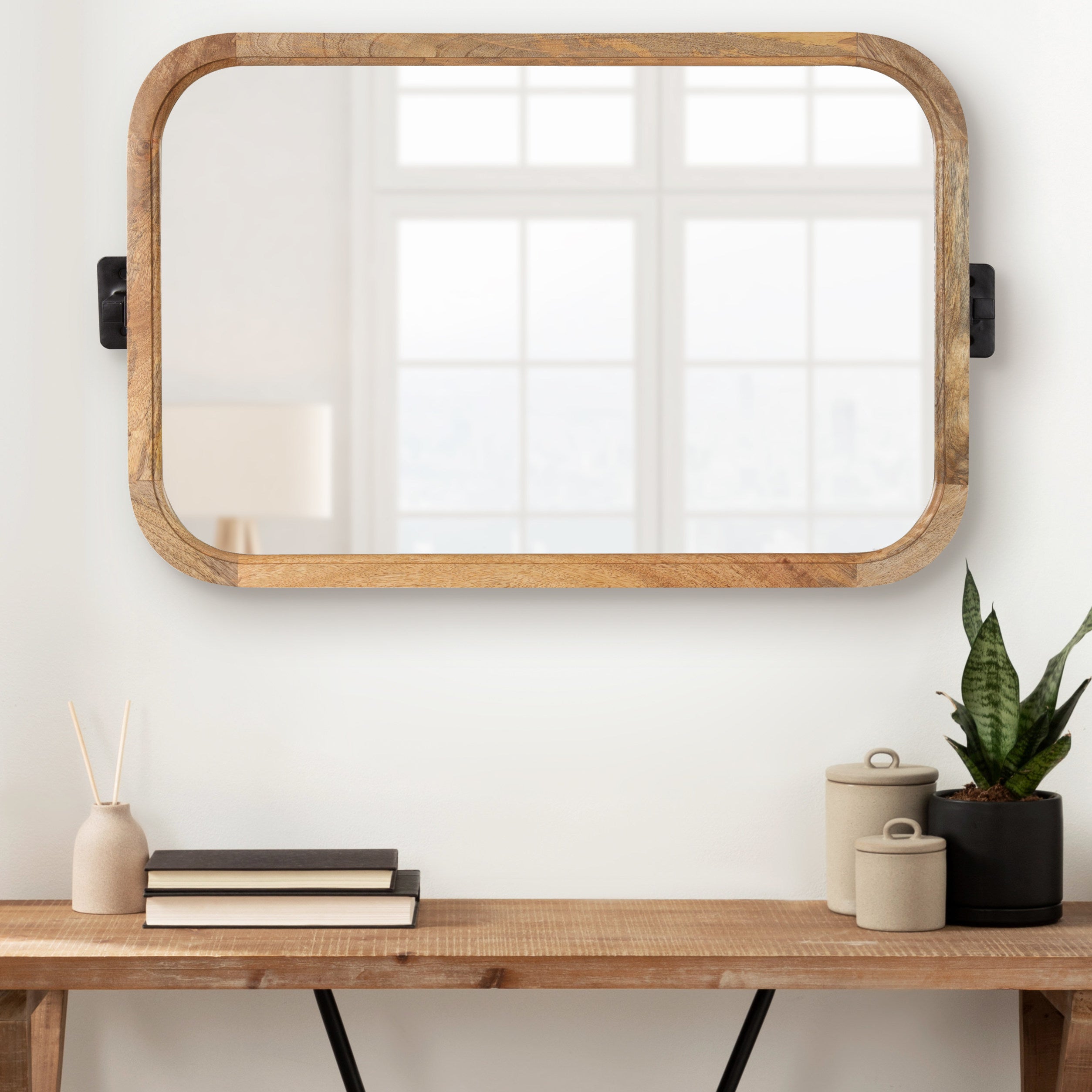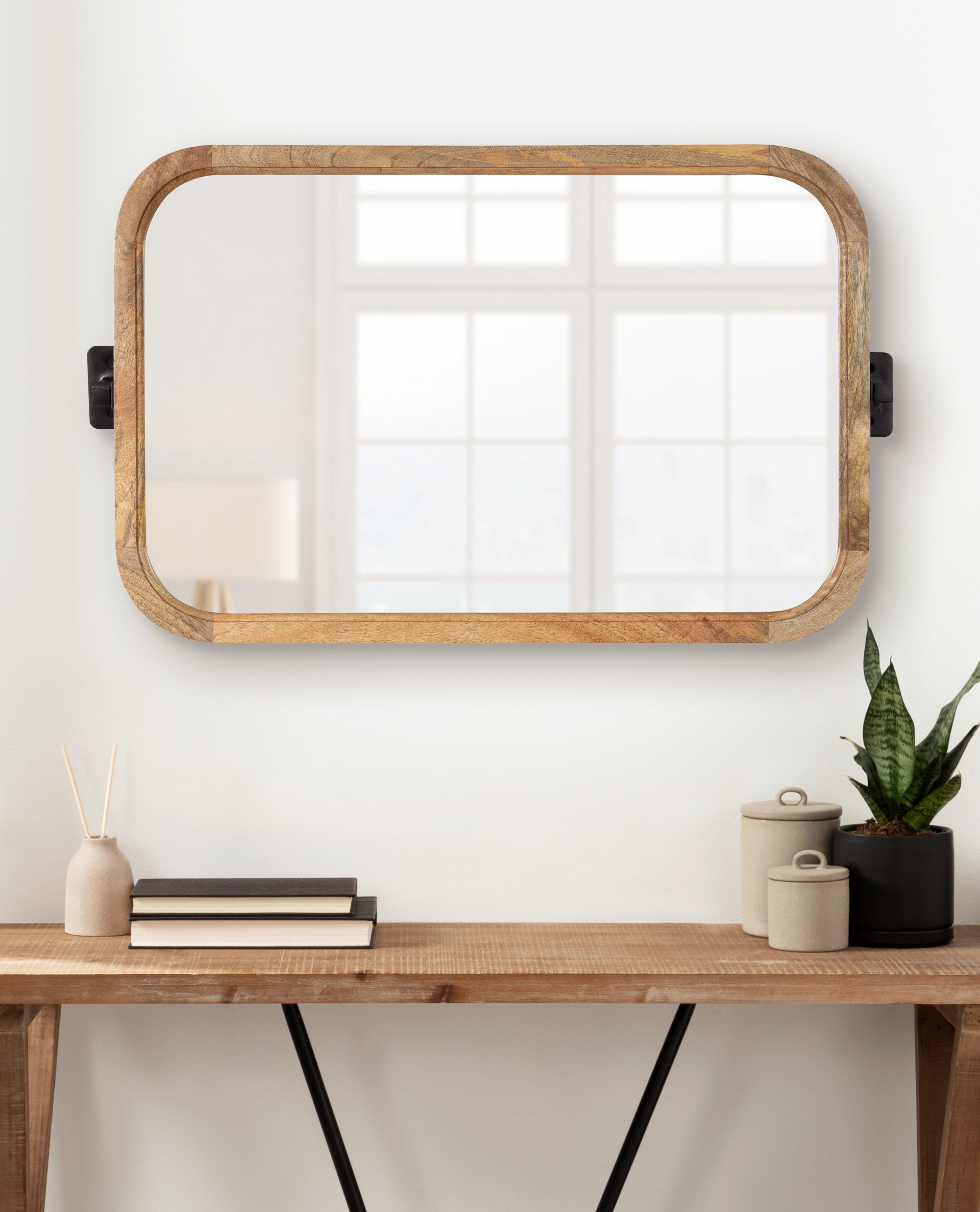 The Hogan pivot mirror is a visually captivating element to introduce to your wall decor. This mirror is handcrafted in India from wood, making each piece distinct in wood grain. The rounded rectangle shape presents a soft design with a large size that commands attention. The two brackets on either side of this mirror allow it to adjust at the perfect angle to illuminate your home just right and emphasize natural light sources. Feature the Hogan mirror above your vanity, mantle, console, dresser, or bed, making your space feel more open while showcasing your chic yet transitional style.