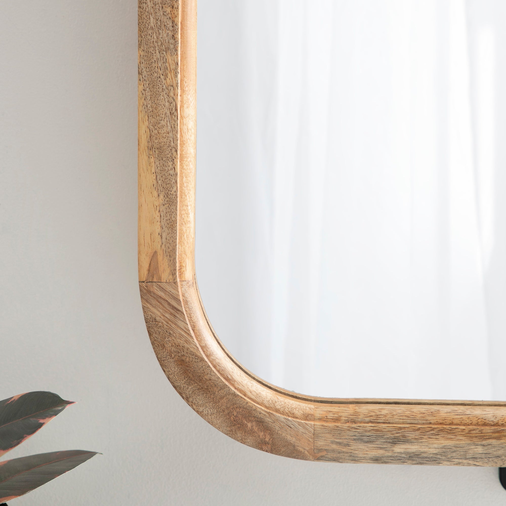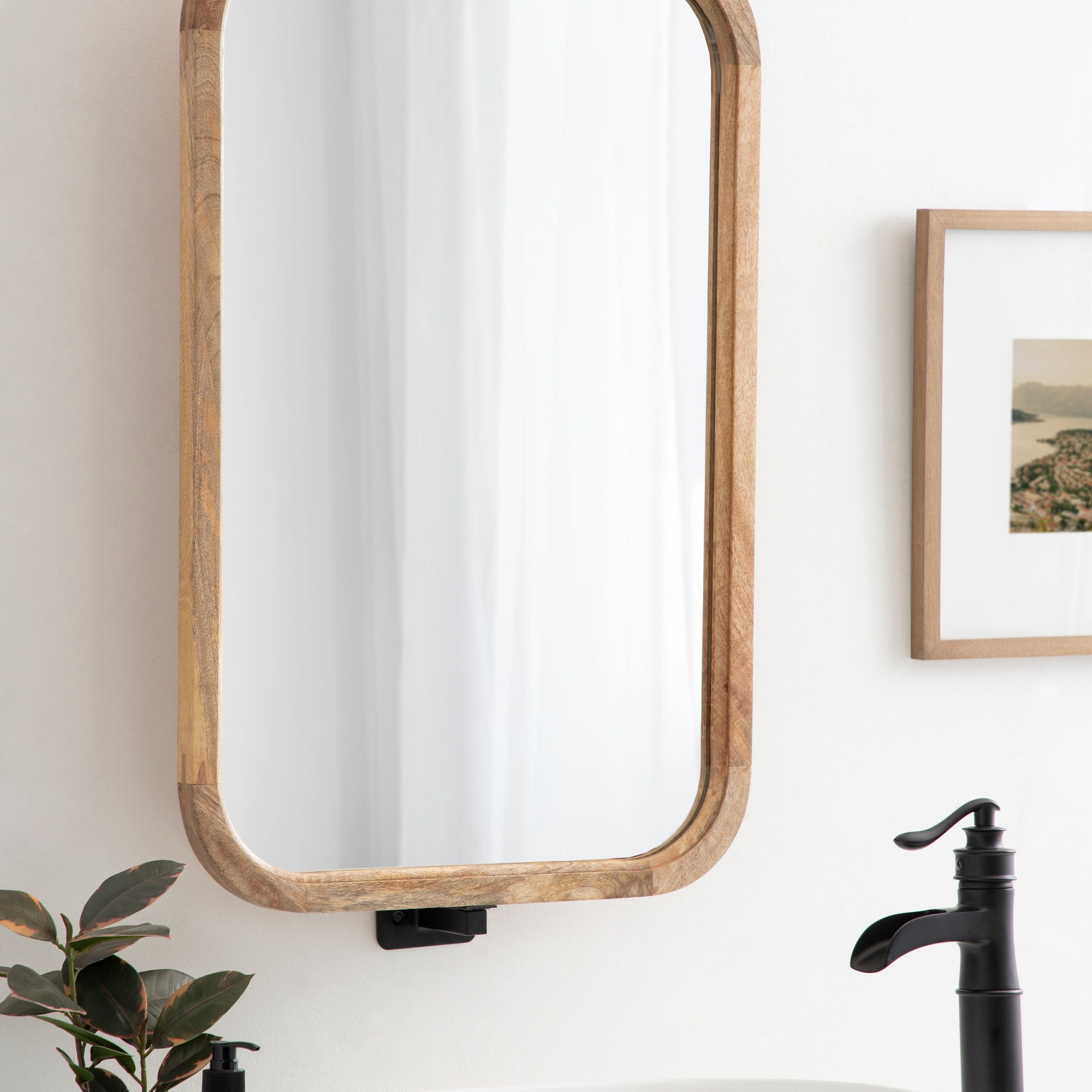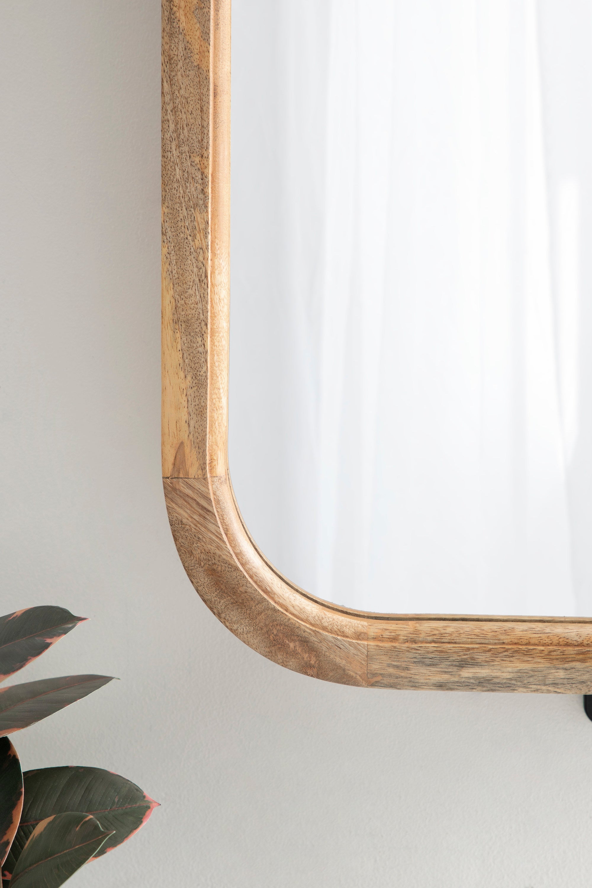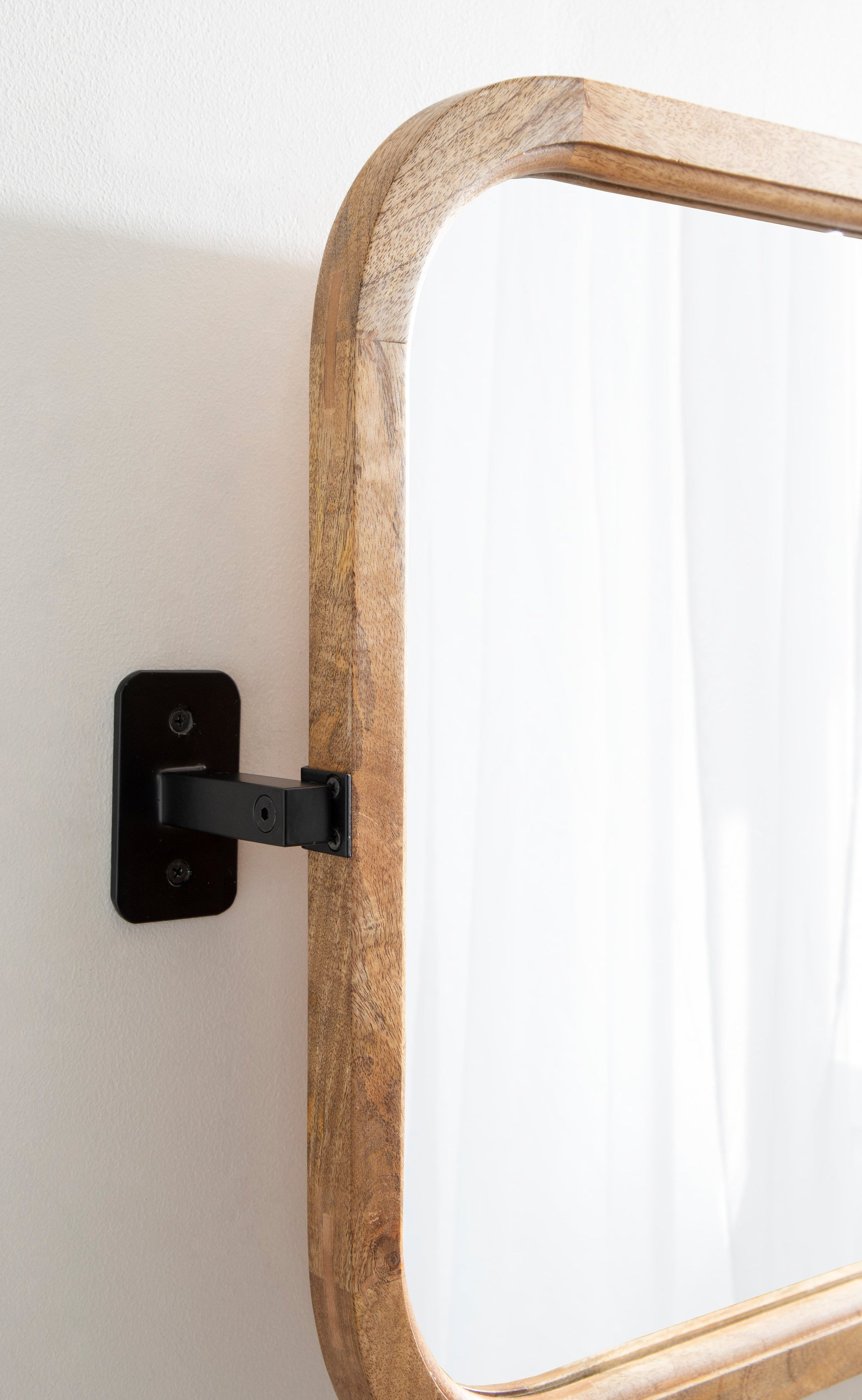 The Hogan pivot mirror is a visually captivating element to introduce to your wall decor. This mirror is handcrafted in India from wood, making each piece distinct in wood grain. The rounded rectangle shape presents a soft design with a large size that commands attention. The two brackets on either side of this mirror allow it to adjust at the perfect angle to illuminate your home just right and emphasize natural light sources. Feature the Hogan mirror above your vanity, mantle, console, dresser, or bed, making your space feel more open while showcasing your chic yet transitional style.