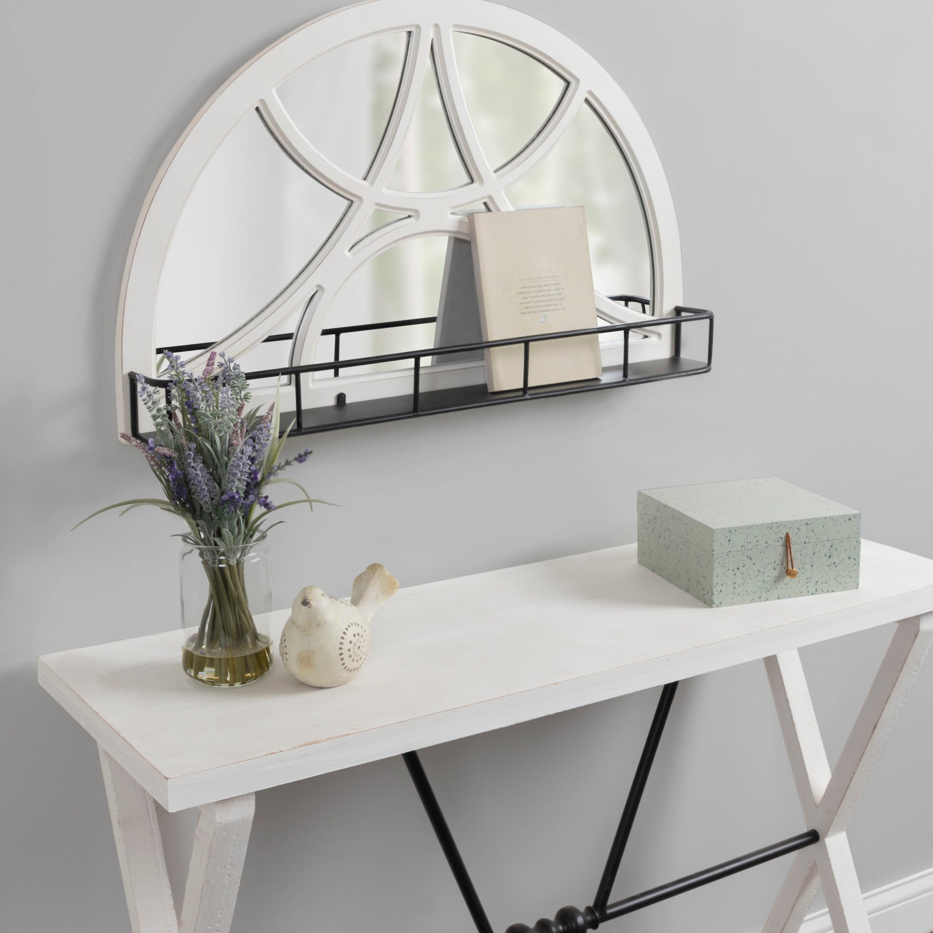 Hollowday Wood Framed Arched Wall Mirror with Shelf