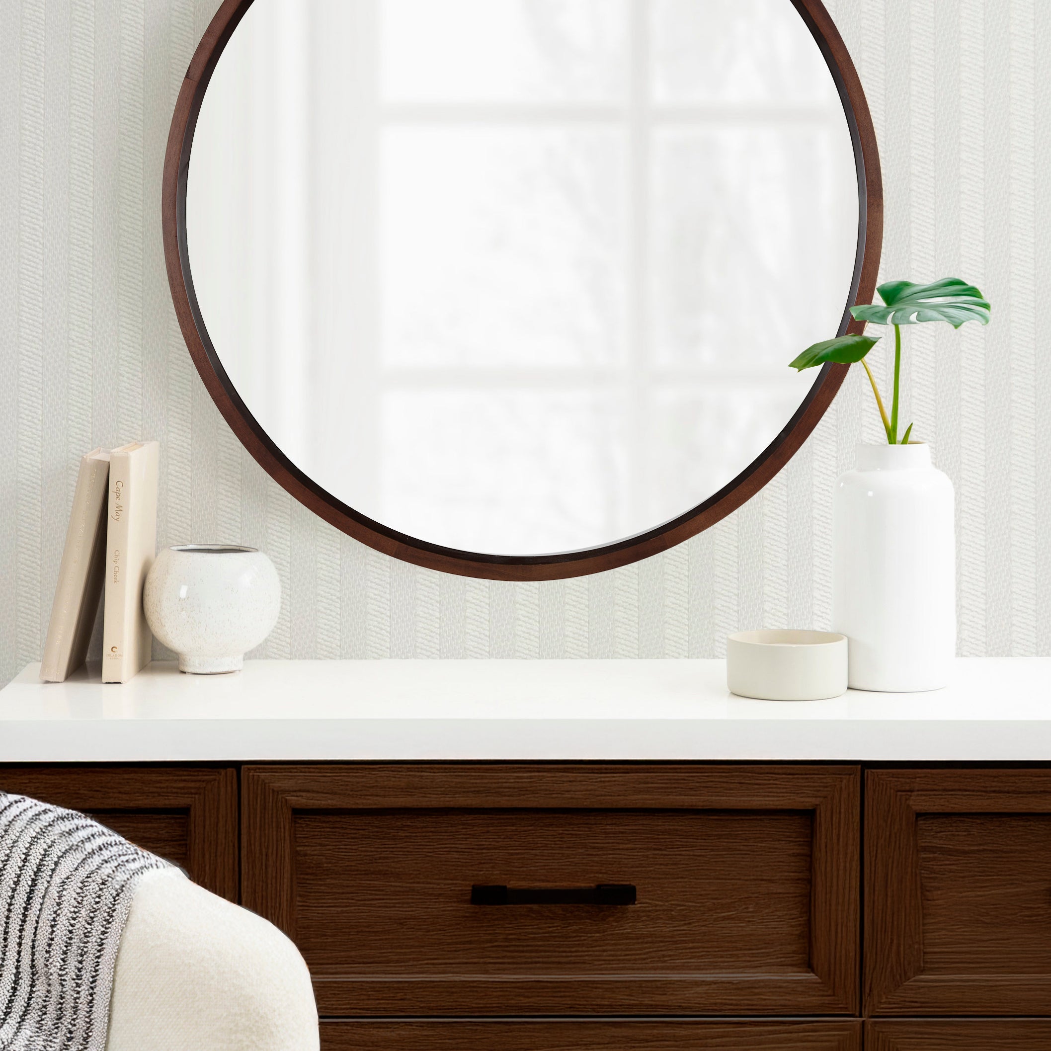 Hutton Round Wood Wall Mirror