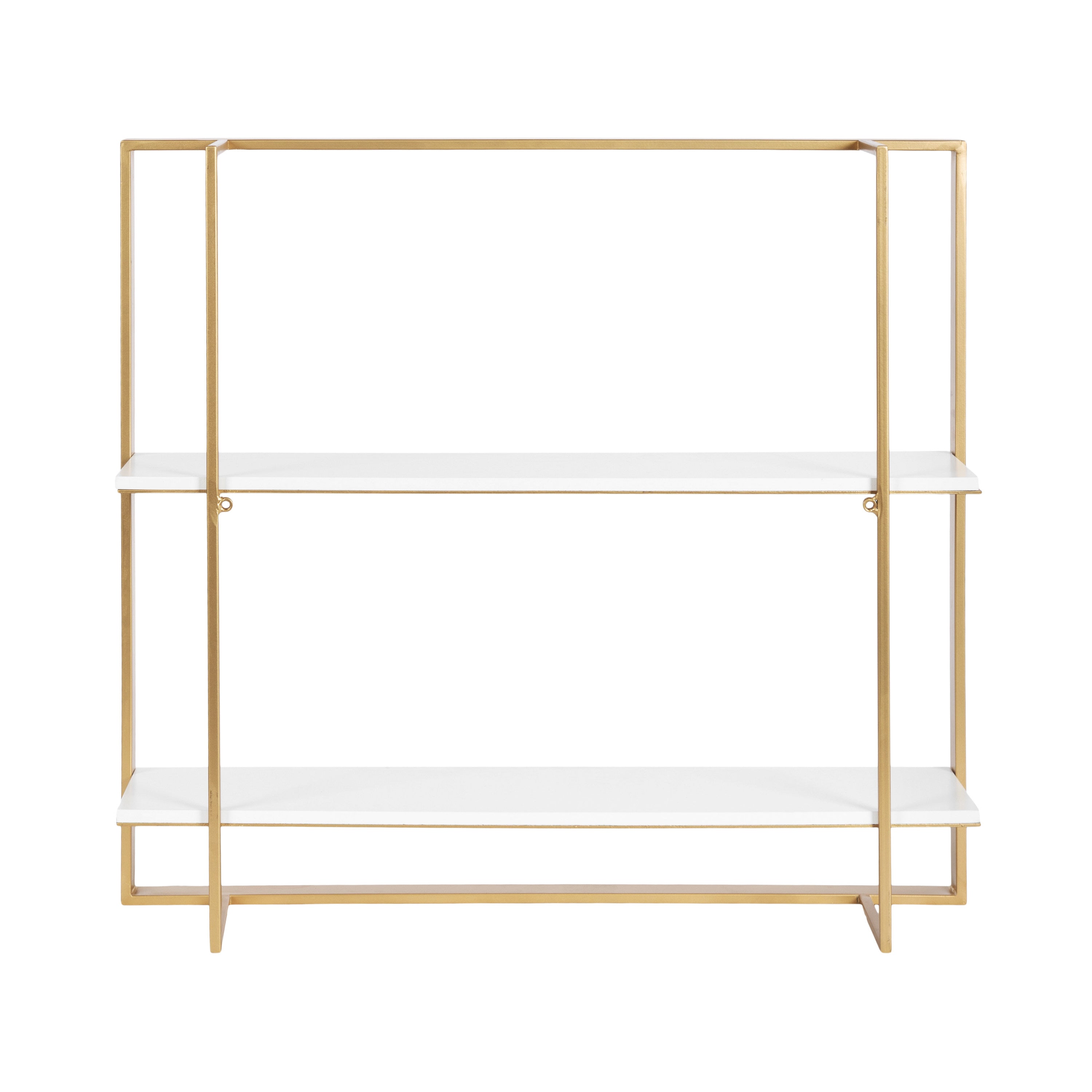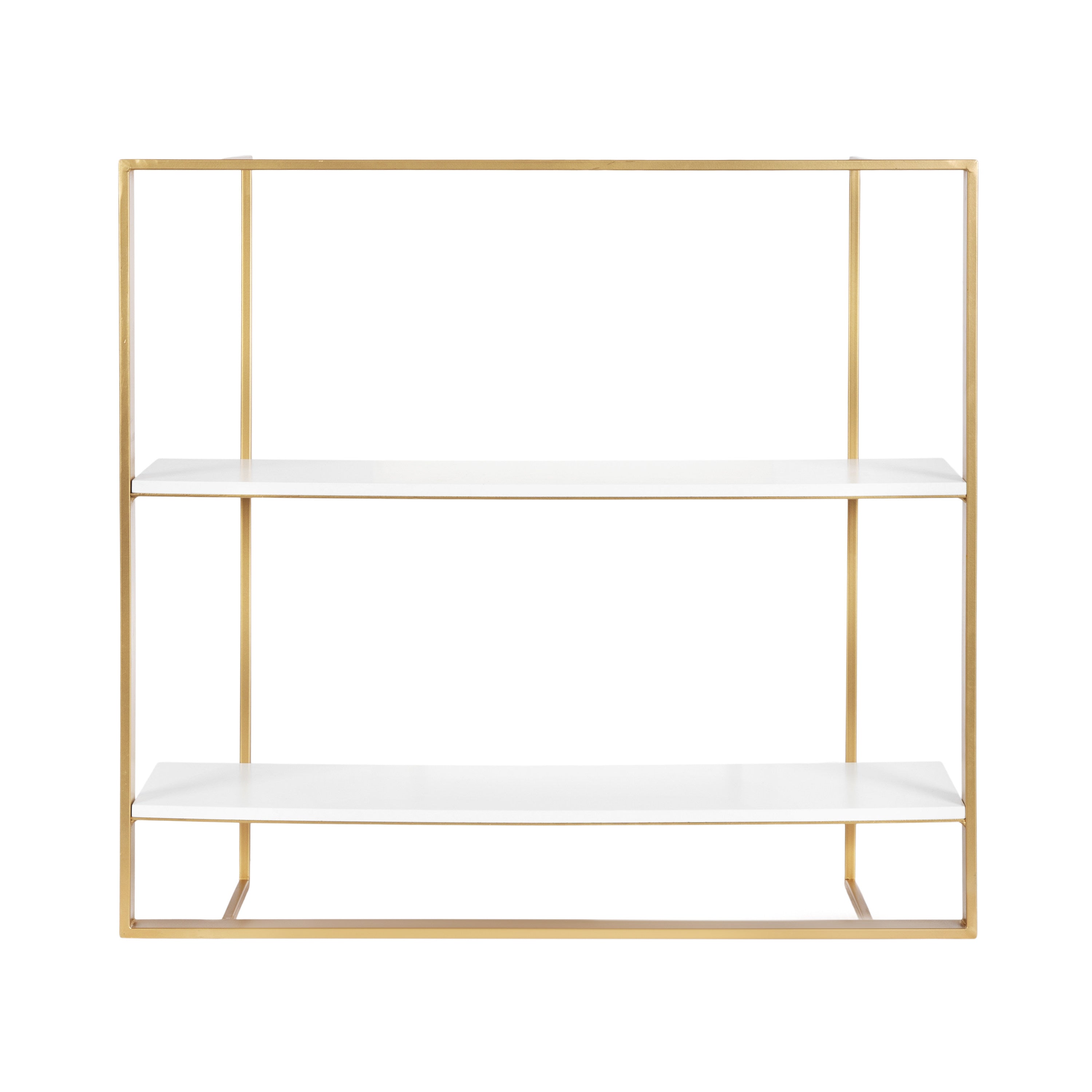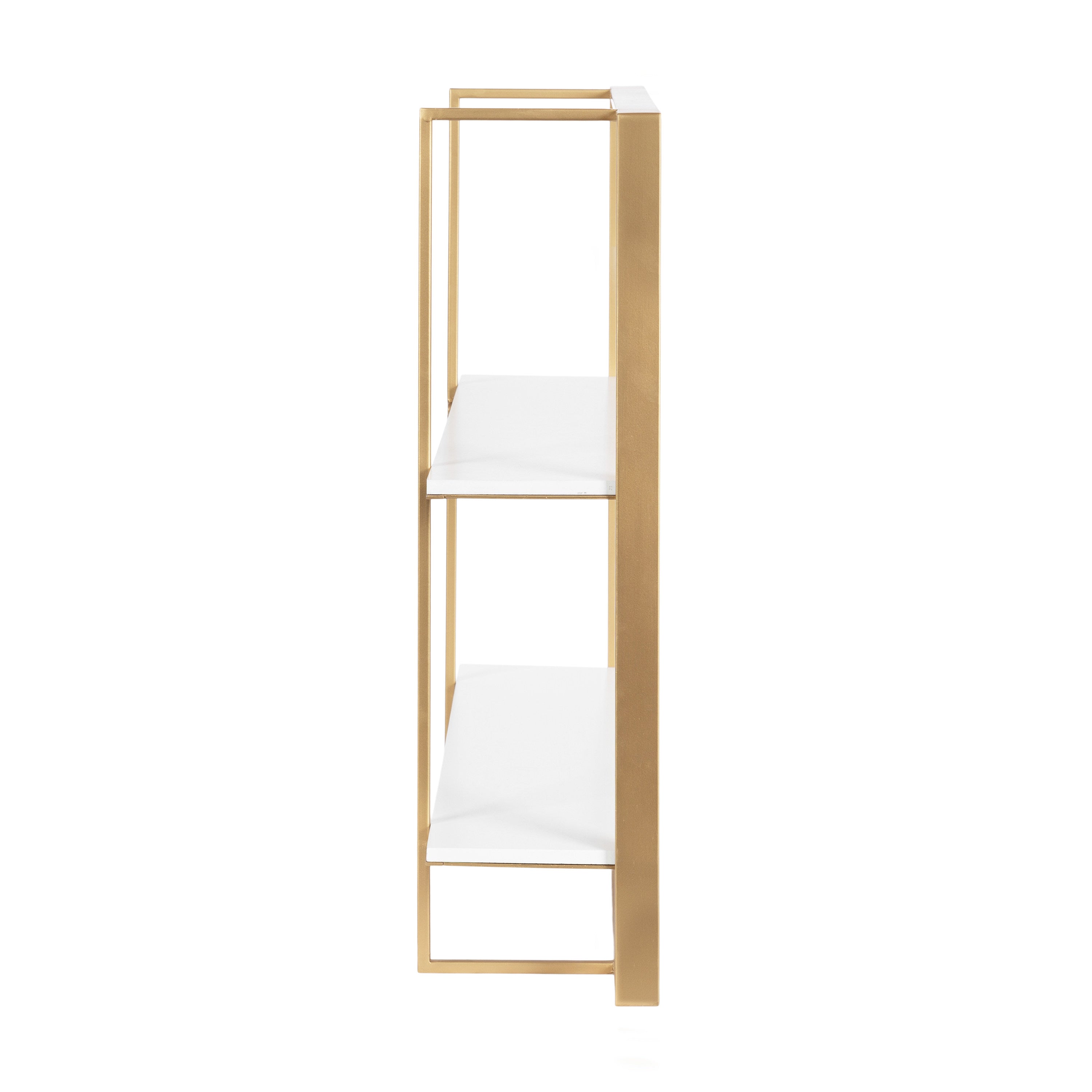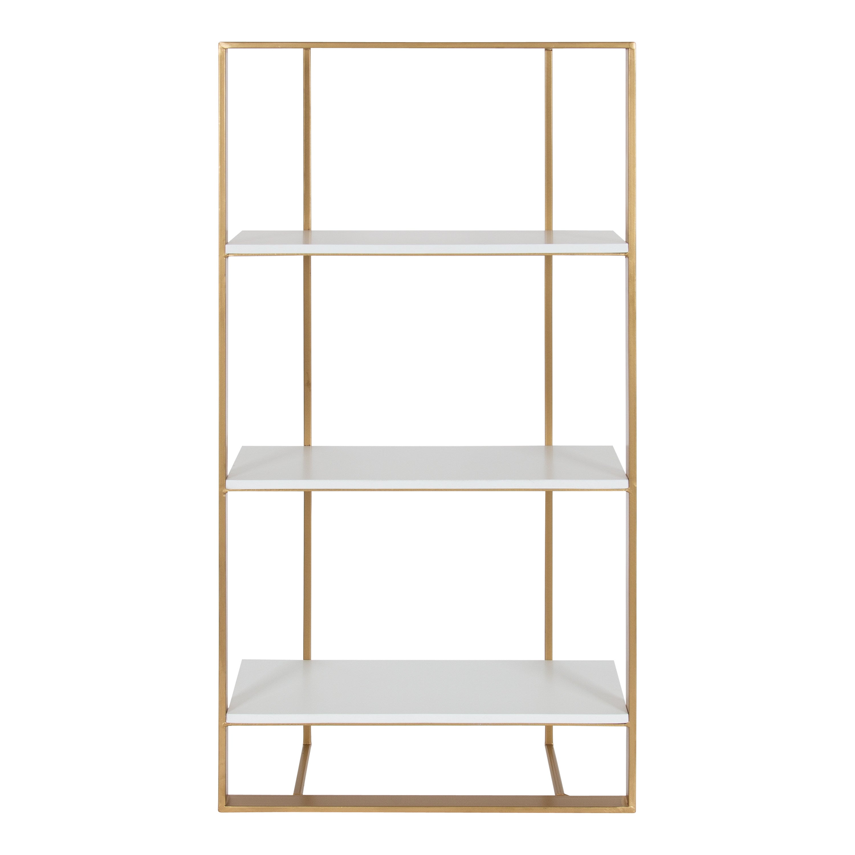 The Kercheval wood shelf brings an elegant solution to your de-cluttering needs. This three-tier shelf includes a mid-century modern design, with a metal frame and wood shelves. Save some space in your home or office by adding your novelties, plants, and photos to each shelf. It serves as an easy storage or display area for your kitchen, bathroom, office, bedroom, entryway or living room.