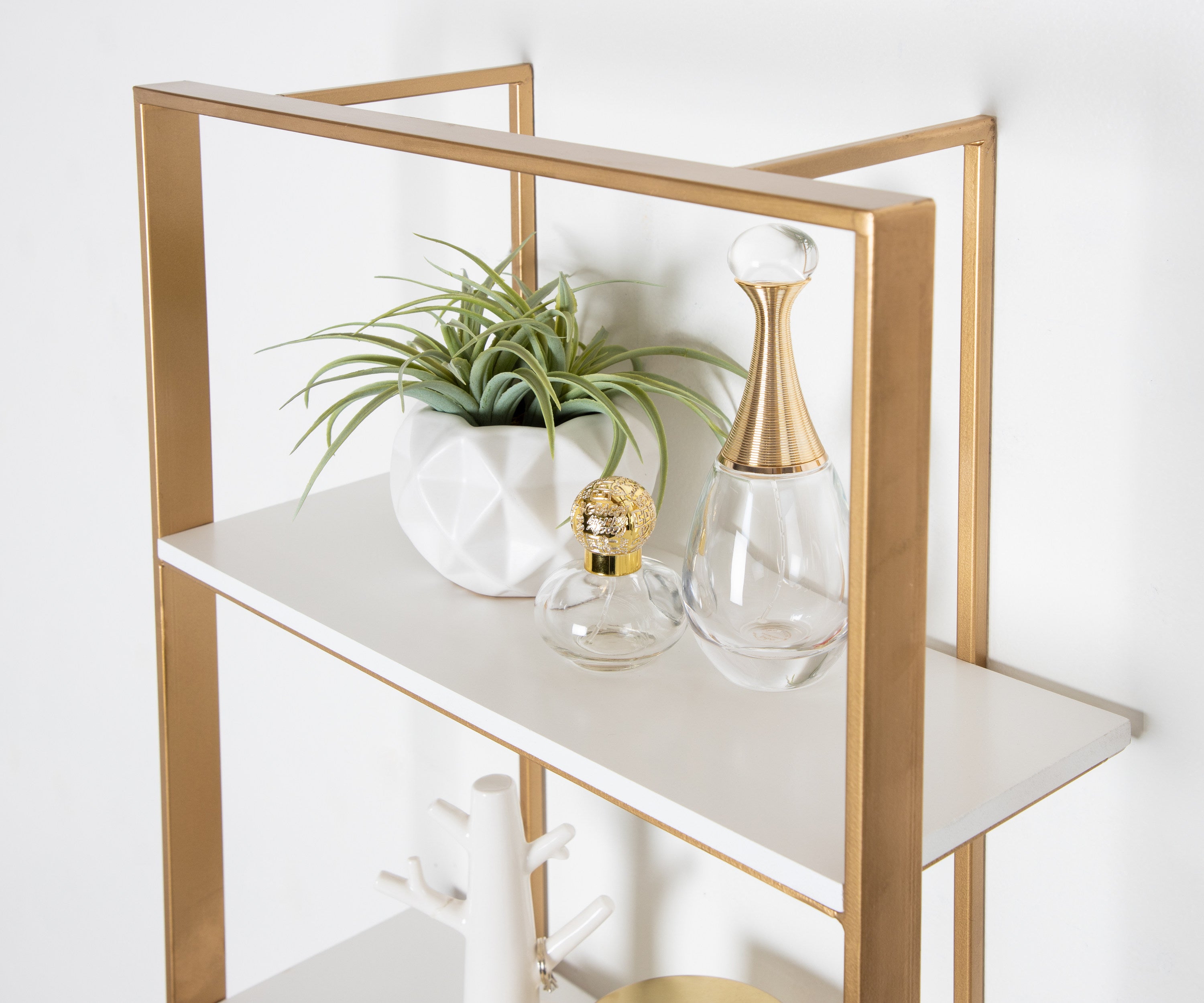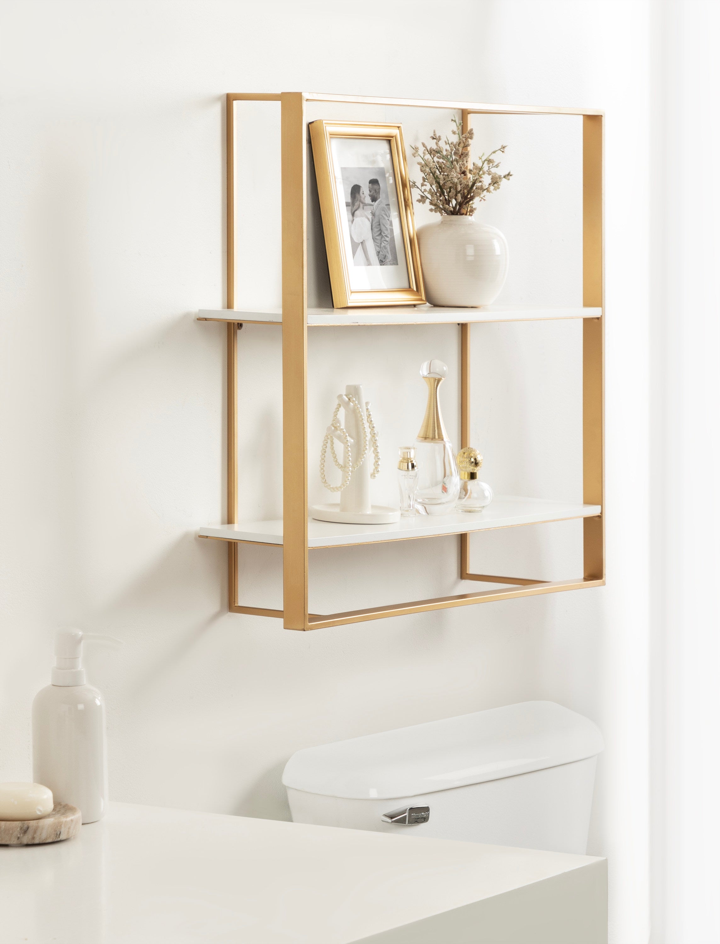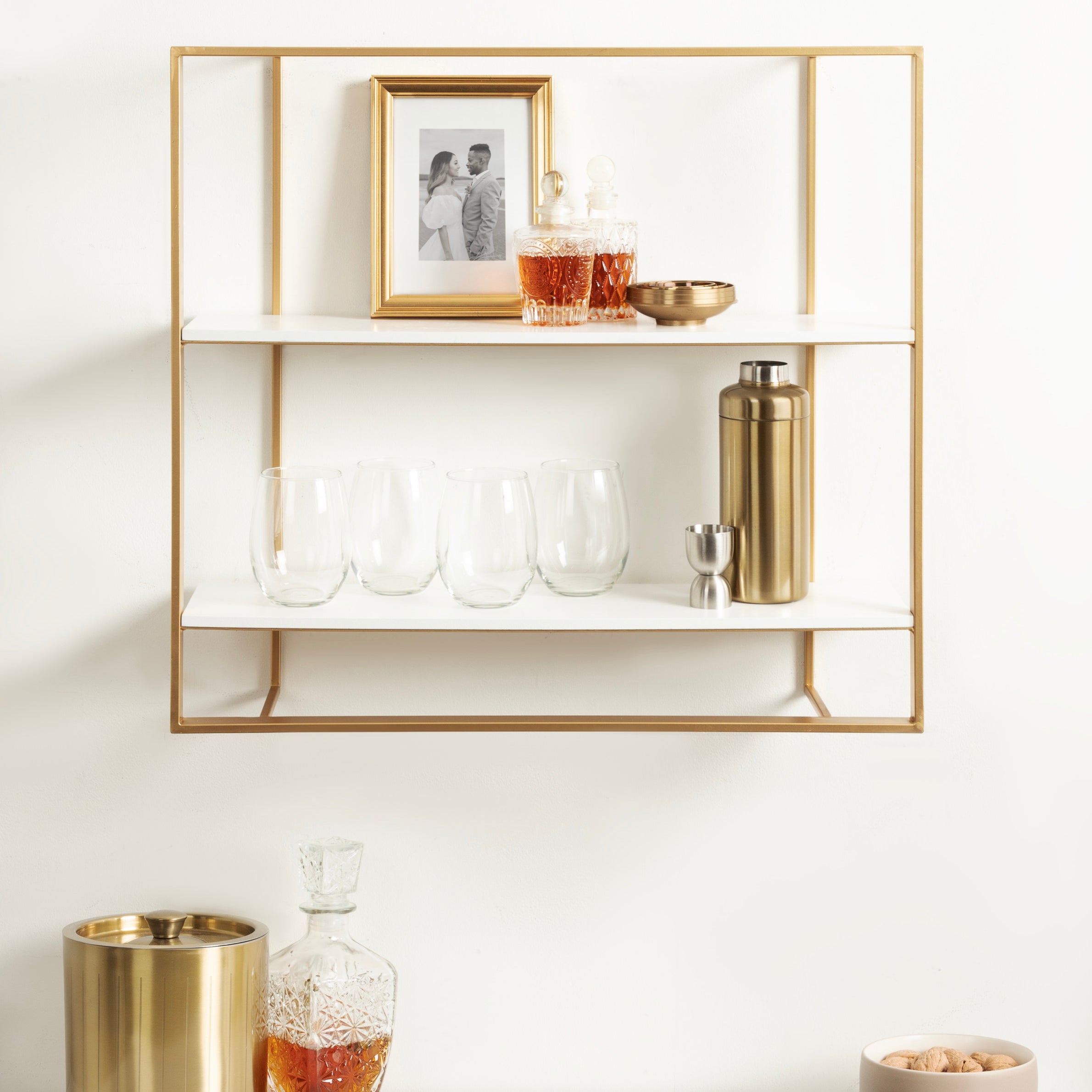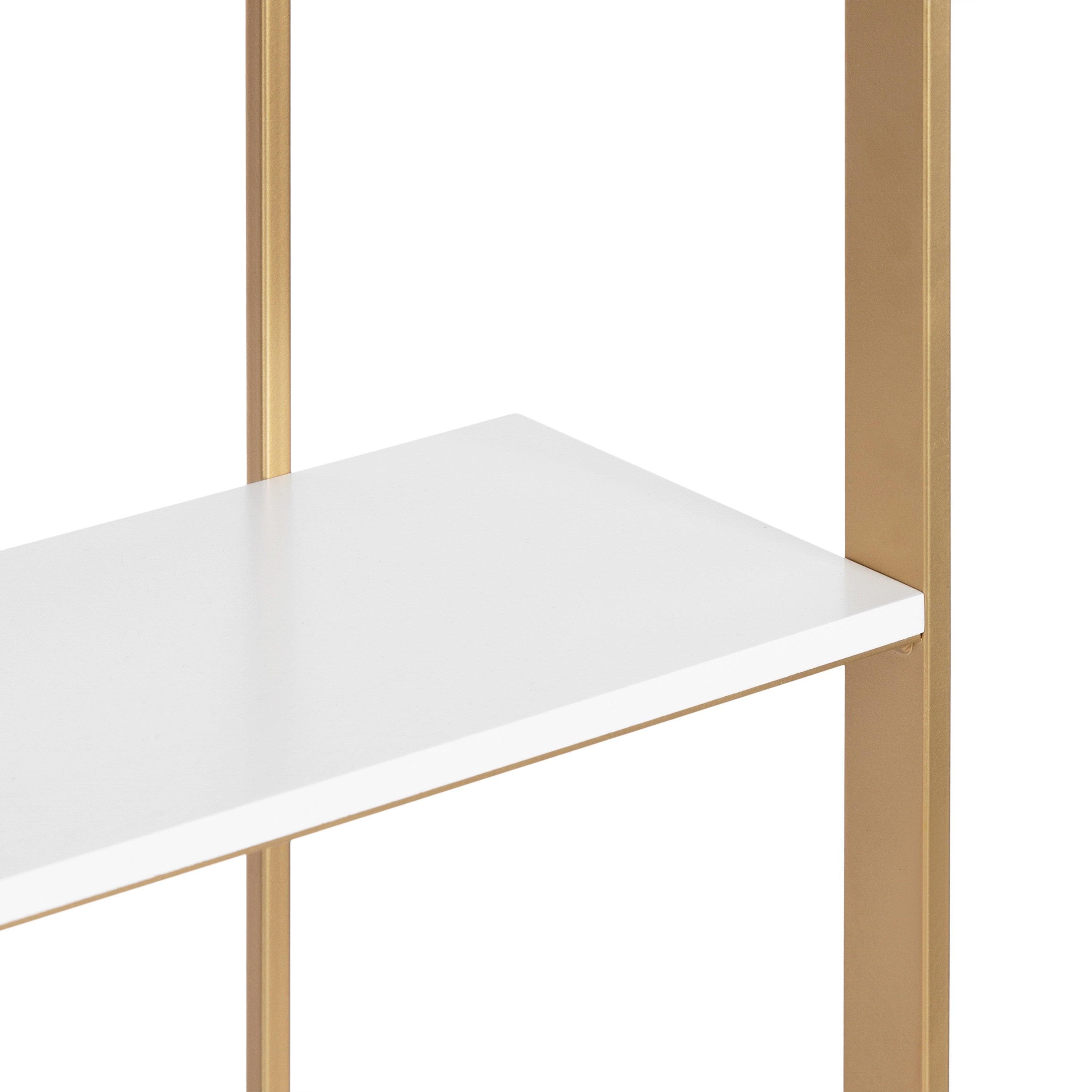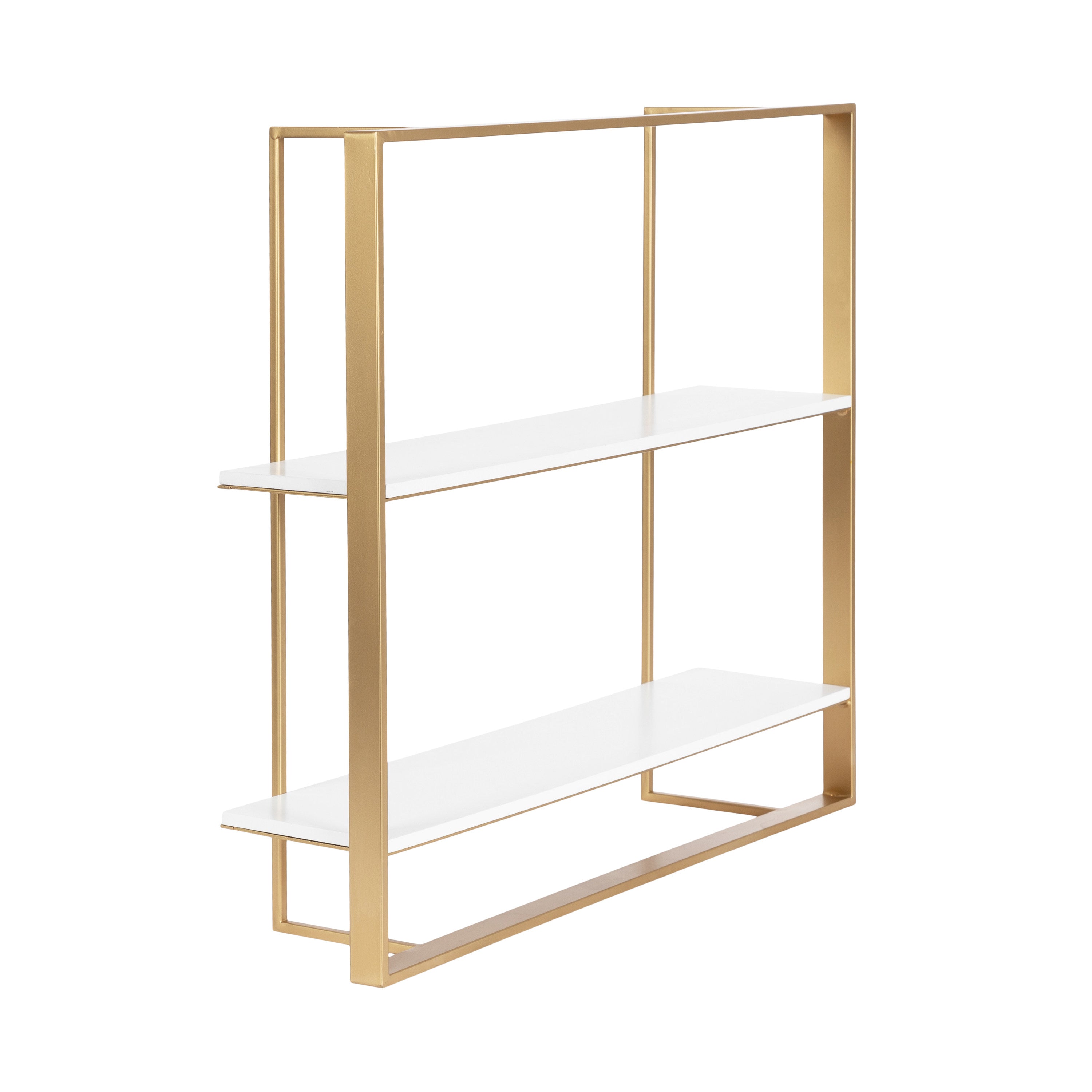 The Kercheval wood shelf brings an elegant solution to your de-cluttering needs. This three-tier shelf includes a mid-century modern design, with a metal frame and wood shelves. Save some space in your home or office by adding your novelties, plants, and photos to each shelf. It serves as an easy storage or display area for your kitchen, bathroom, office, bedroom, entryway or living room.