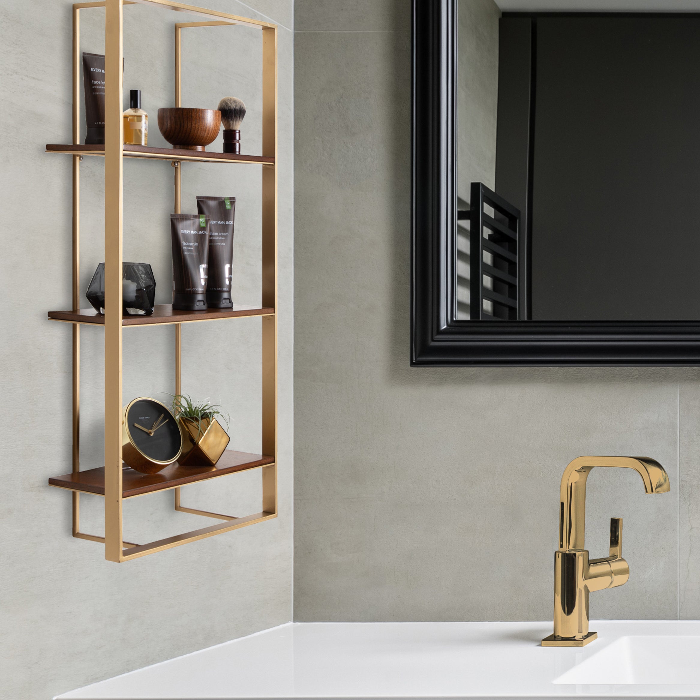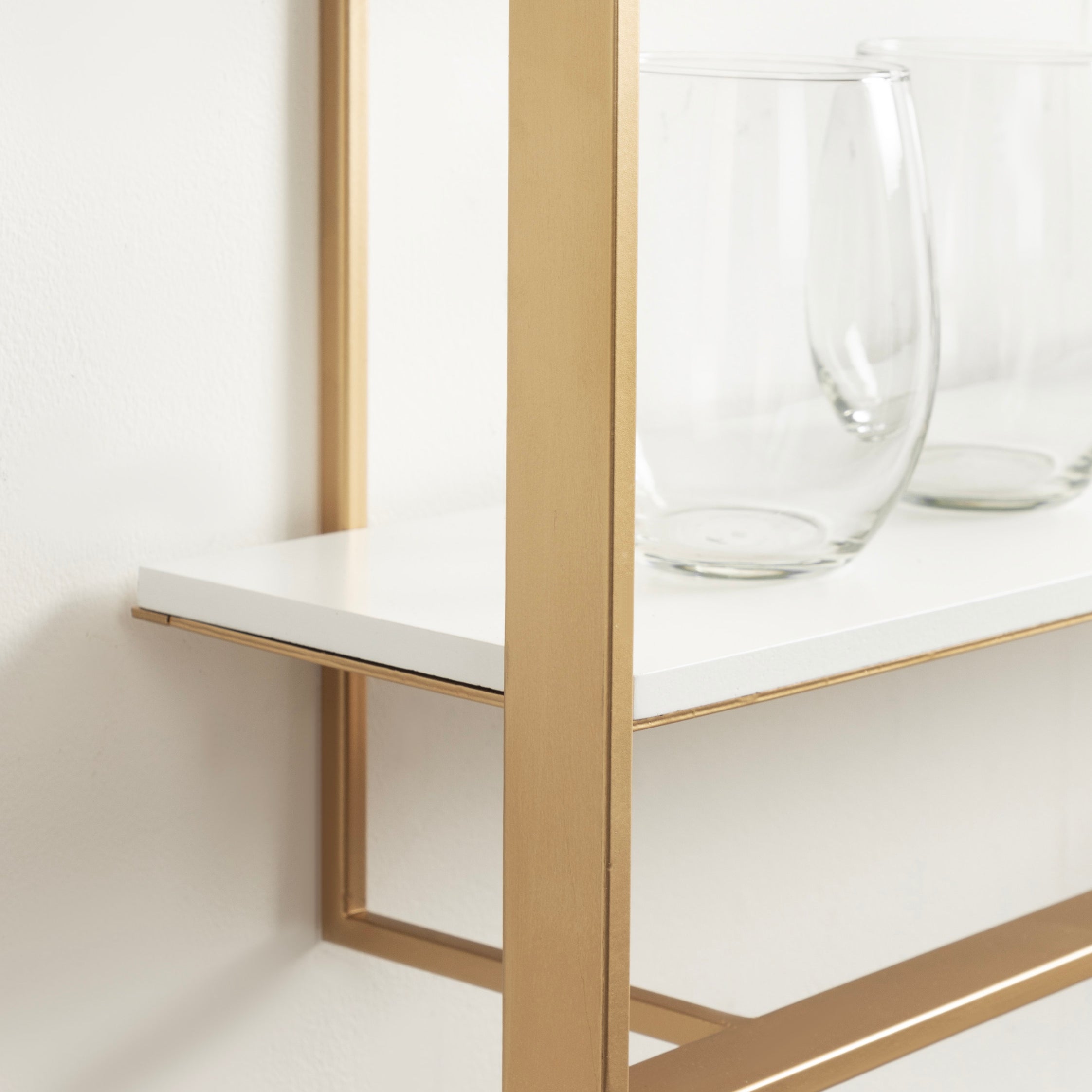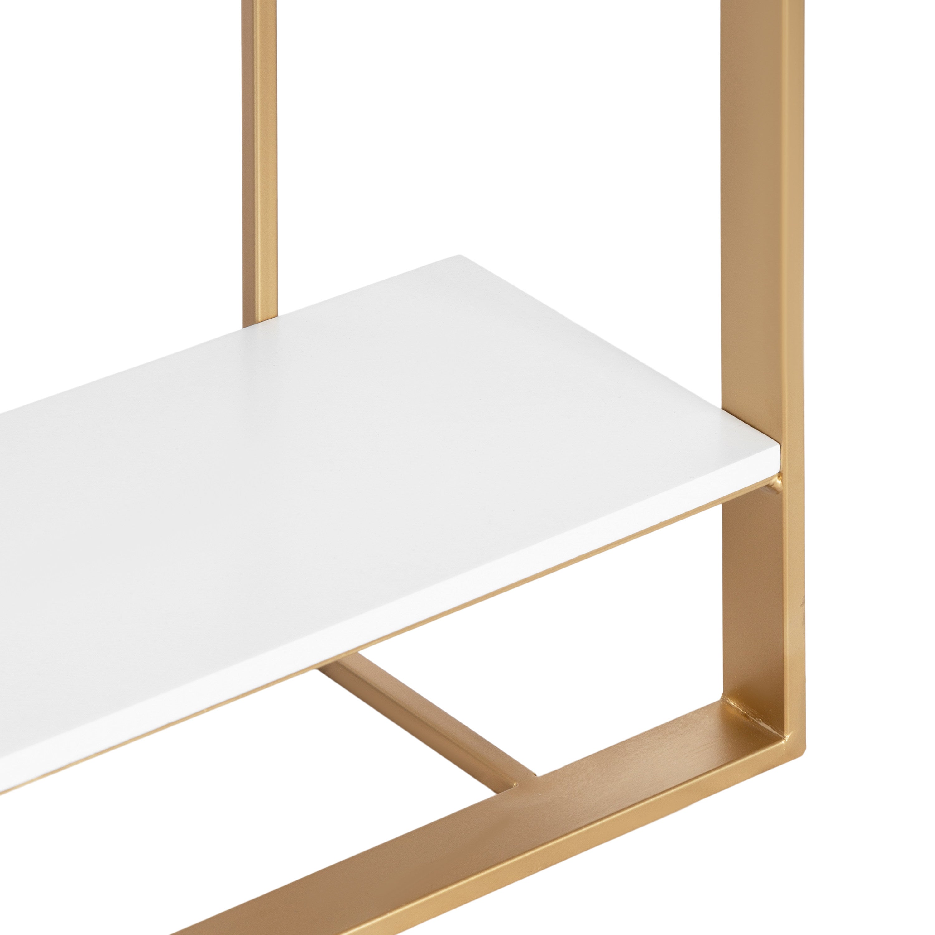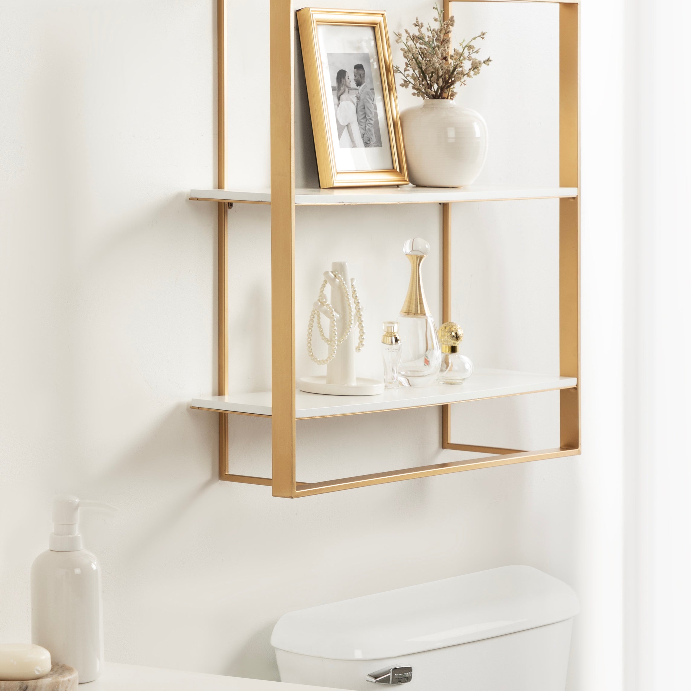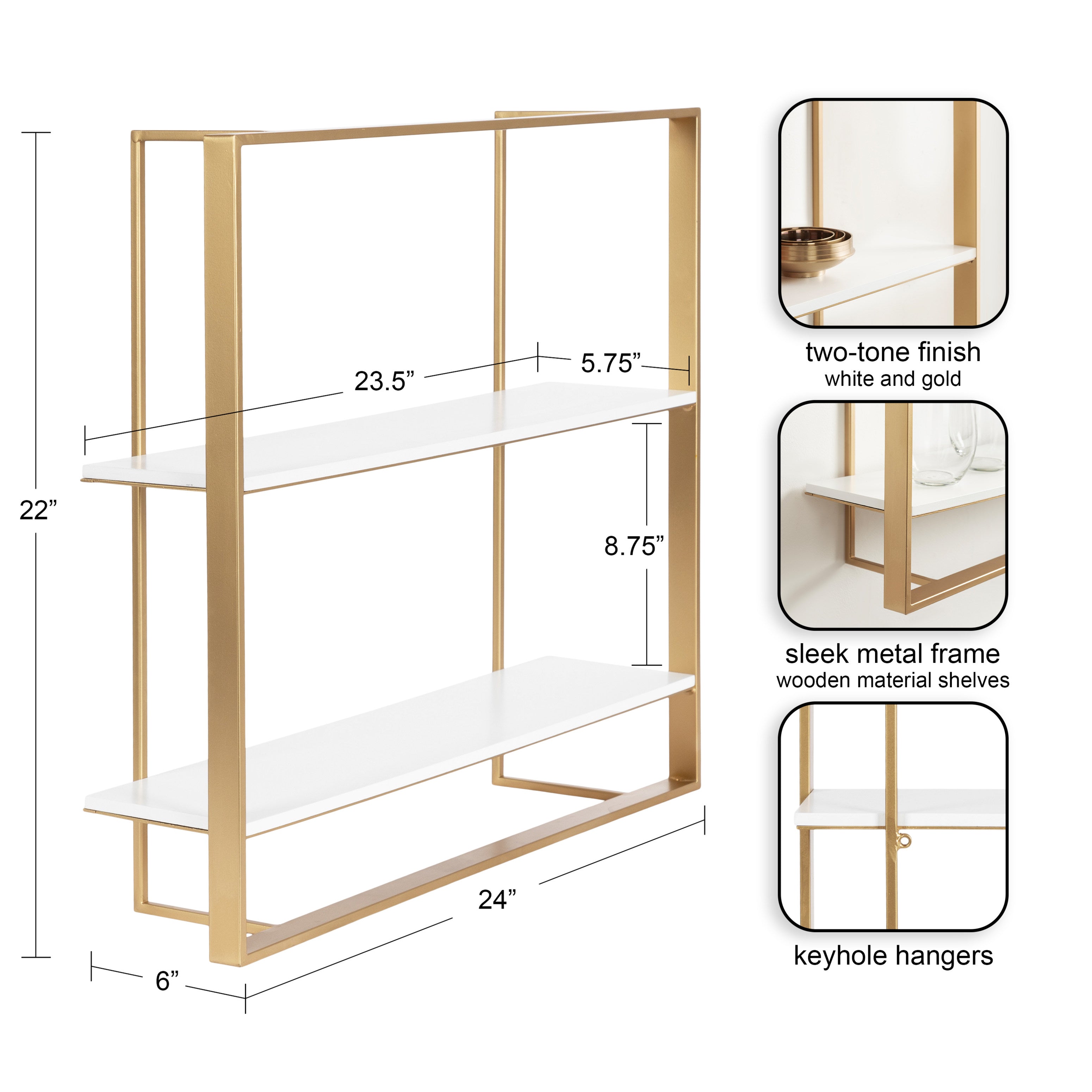 The Kercheval wood shelf brings an elegant solution to your de-cluttering needs. This three-tier shelf includes a mid-century modern design, with a metal frame and wood shelves. Save some space in your home or office by adding your novelties, plants, and photos to each shelf. It serves as an easy storage or display area for your kitchen, bathroom, office, bedroom, entryway or living room.