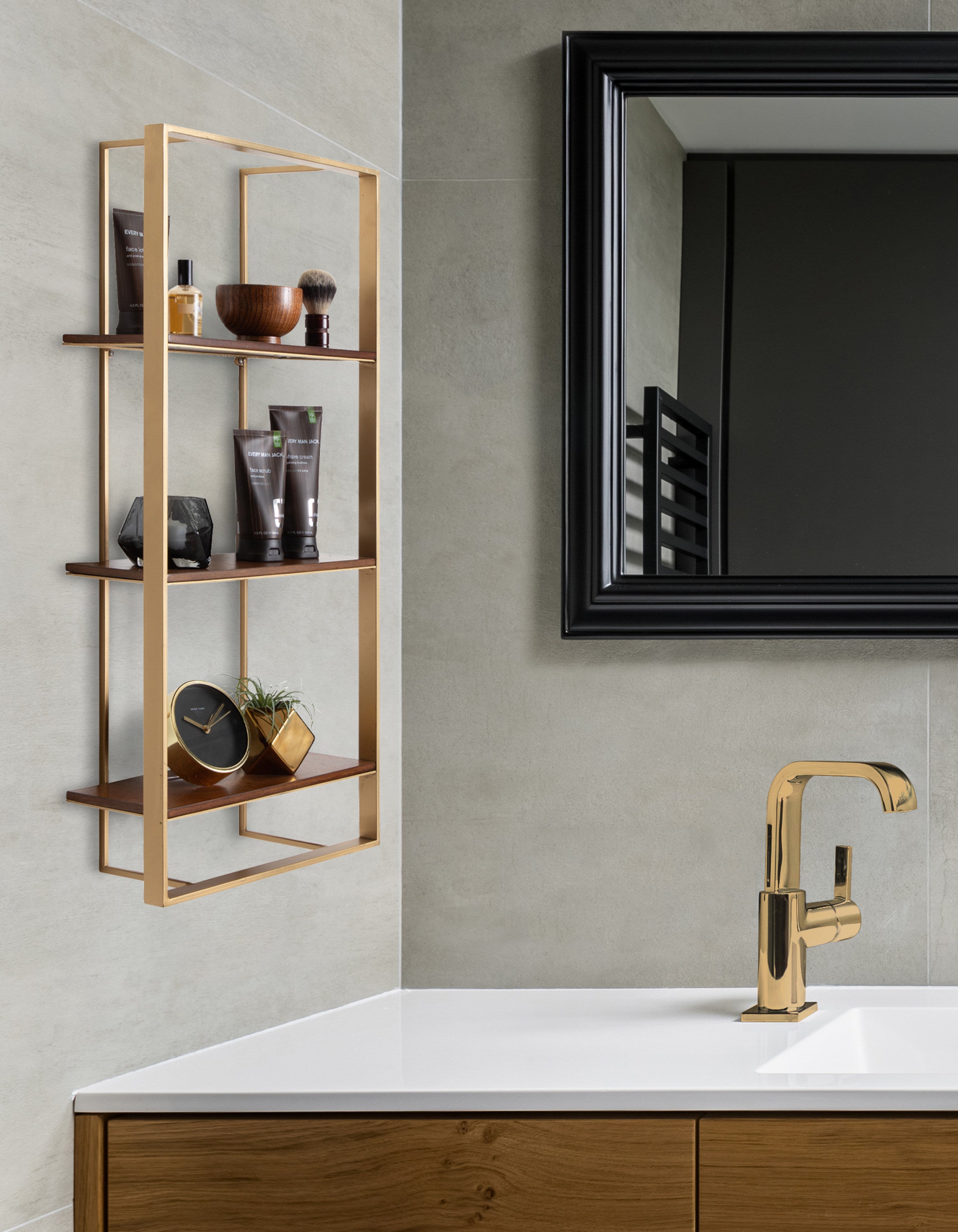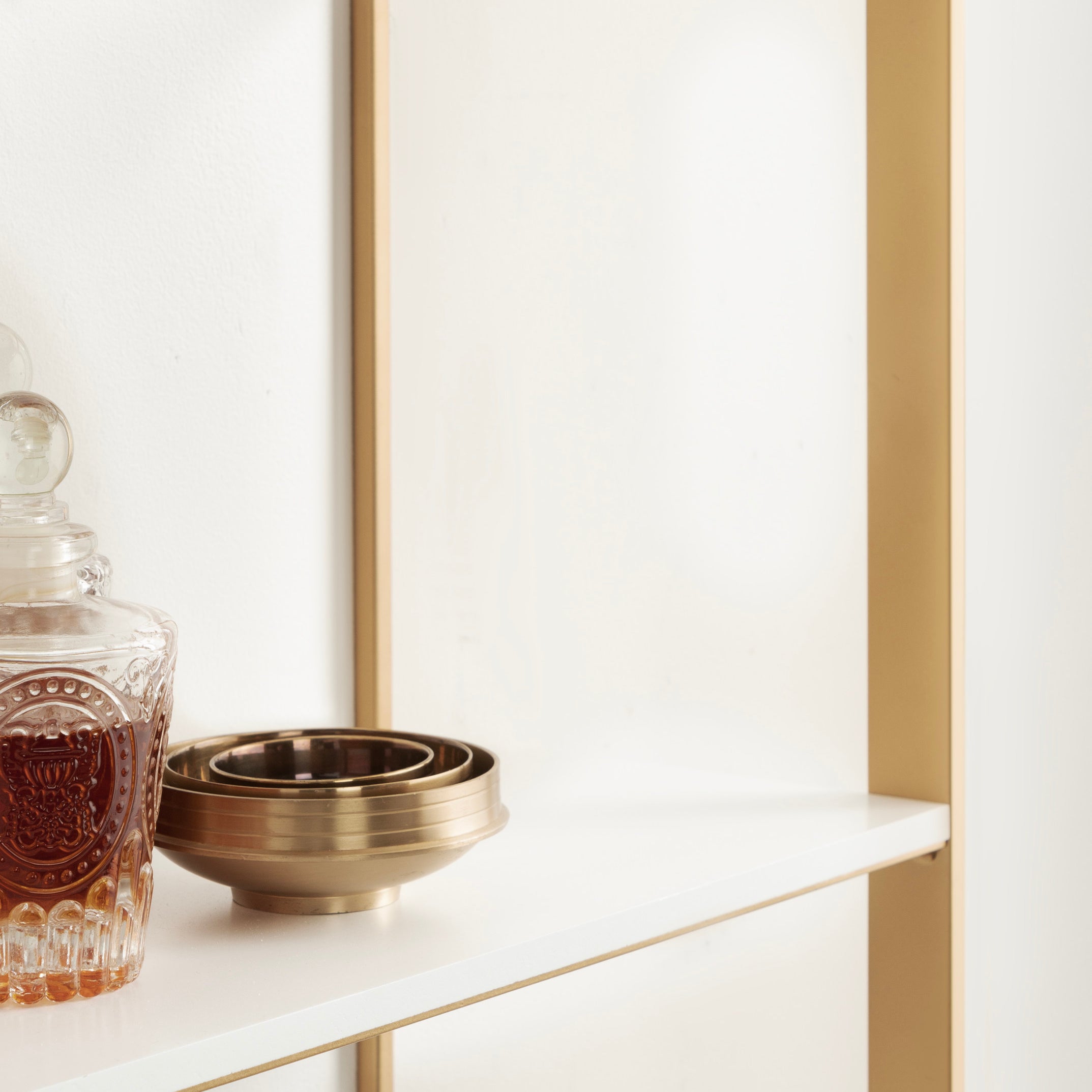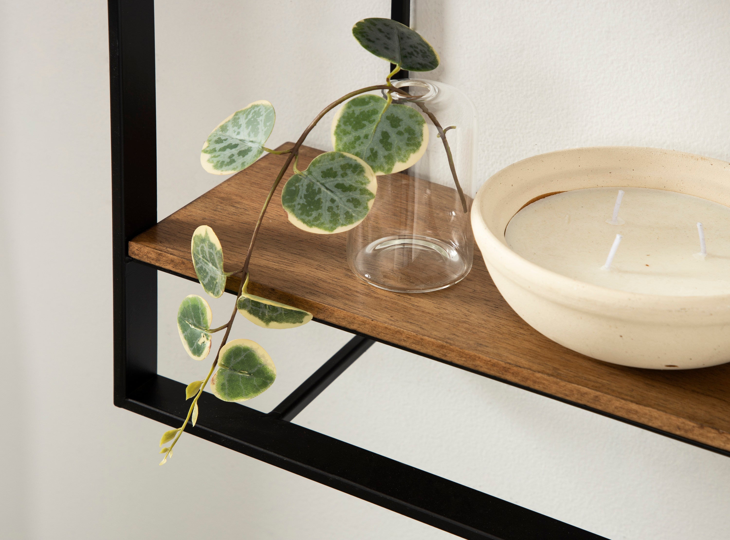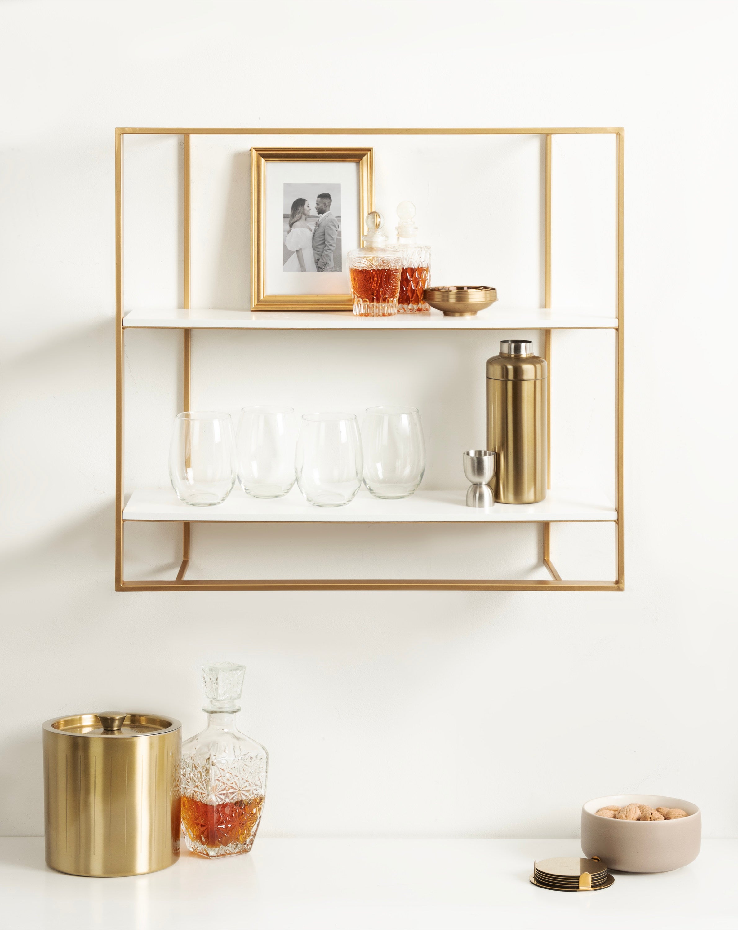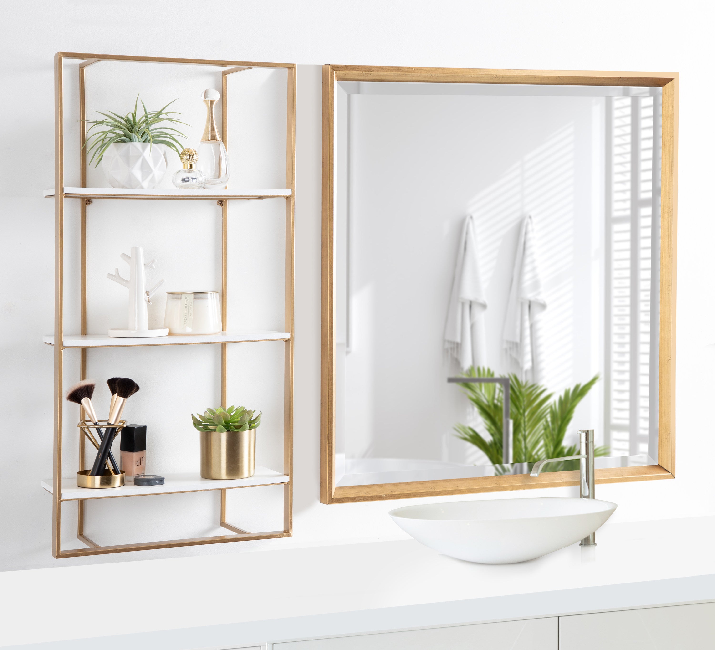 The Kercheval wood shelf brings an elegant solution to your de-cluttering needs. This three-tier shelf includes a mid-century modern design, with a metal frame and wood shelves. Save some space in your home or office by adding your novelties, plants, and photos to each shelf. It serves as an easy storage or display area for your kitchen, bathroom, office, bedroom, entryway or living room.