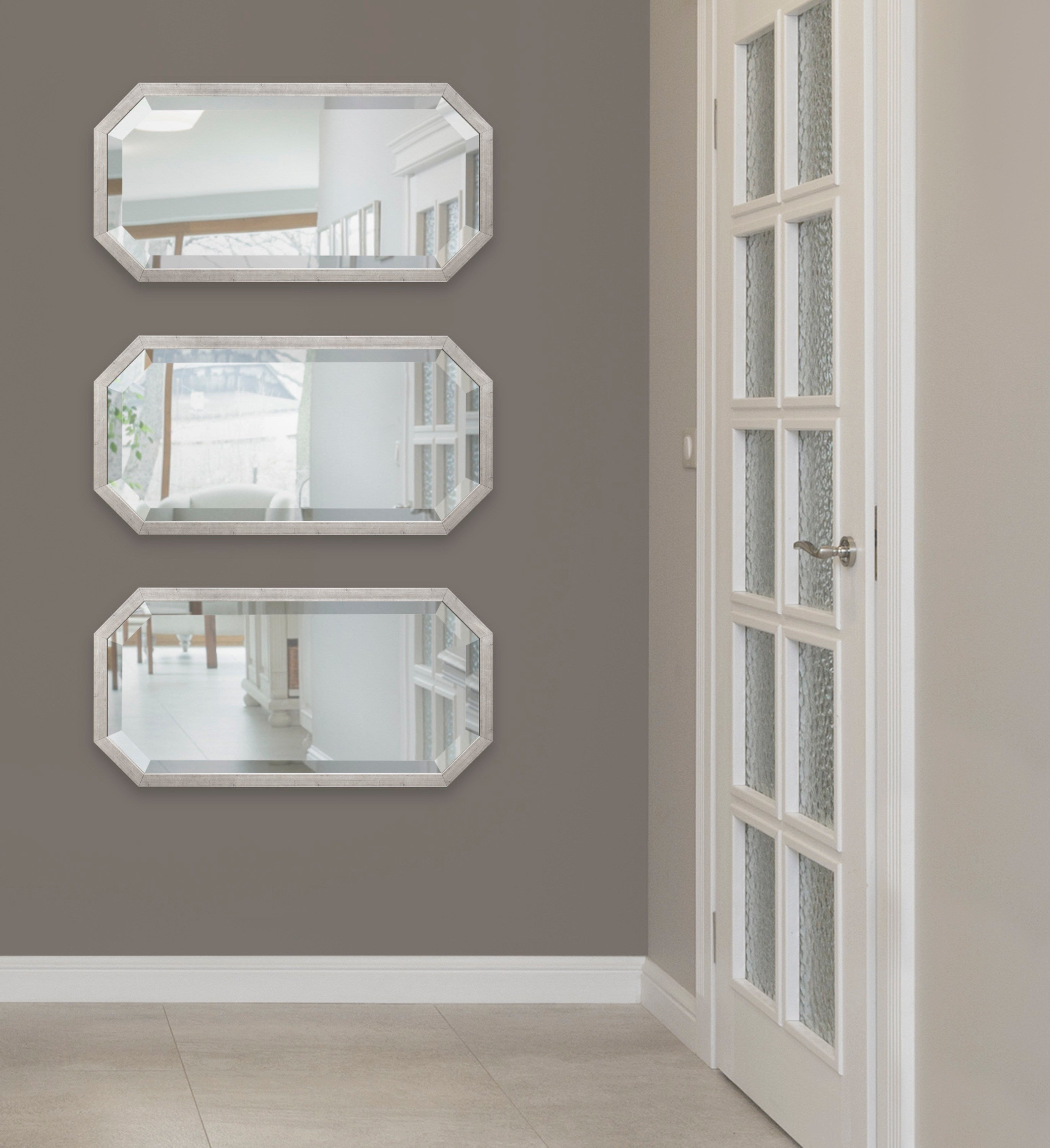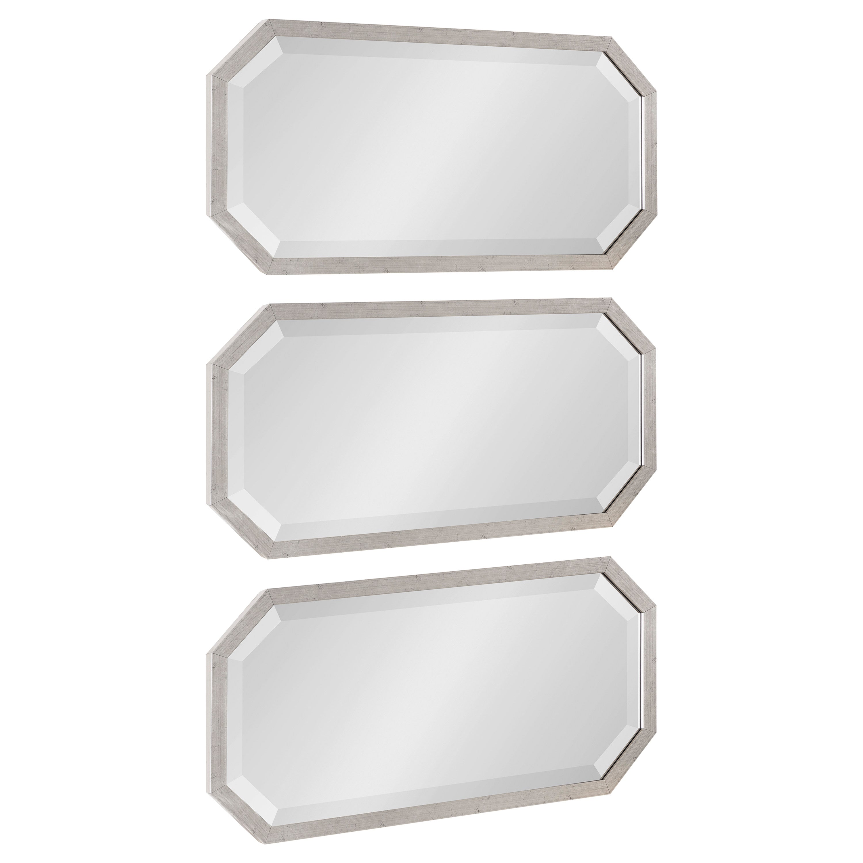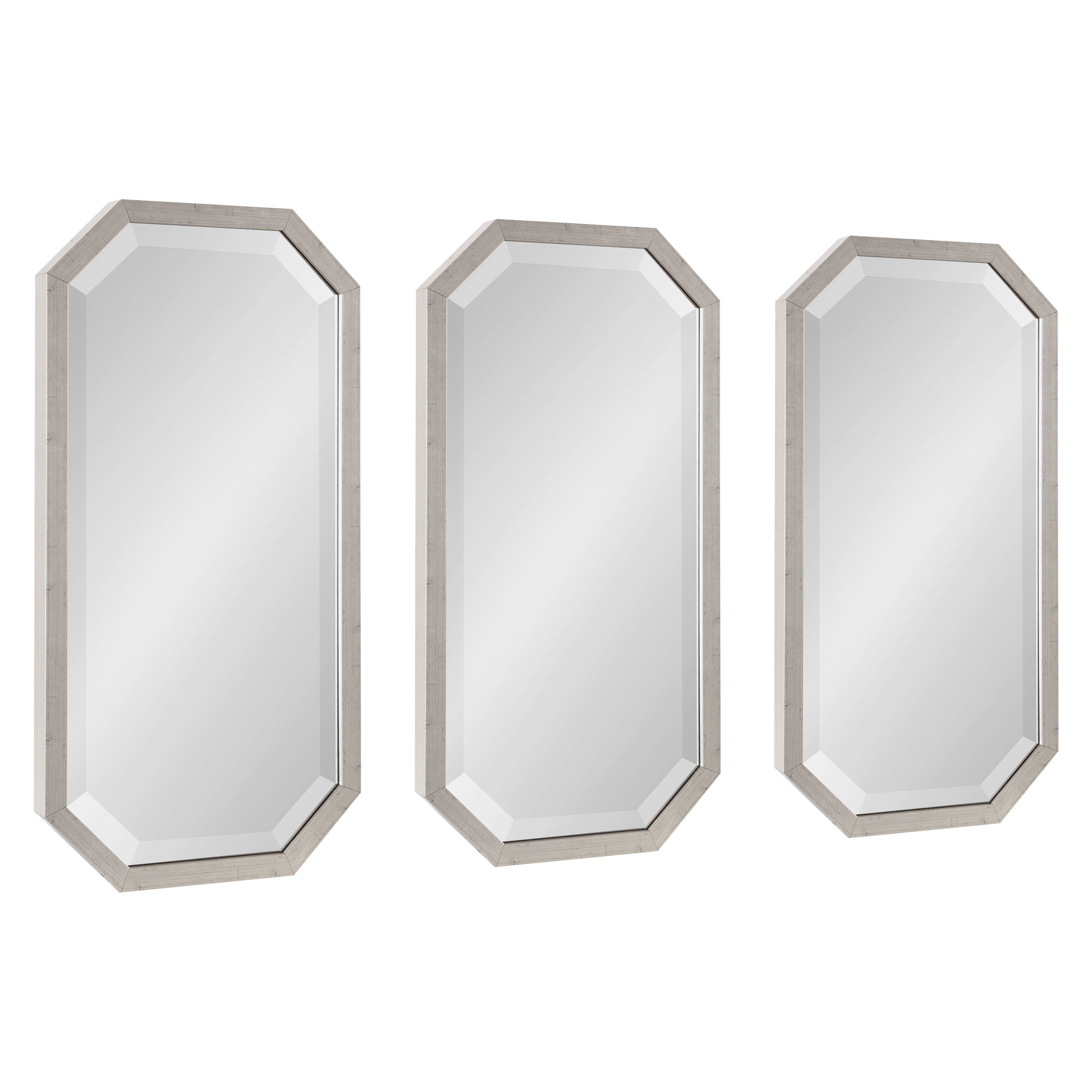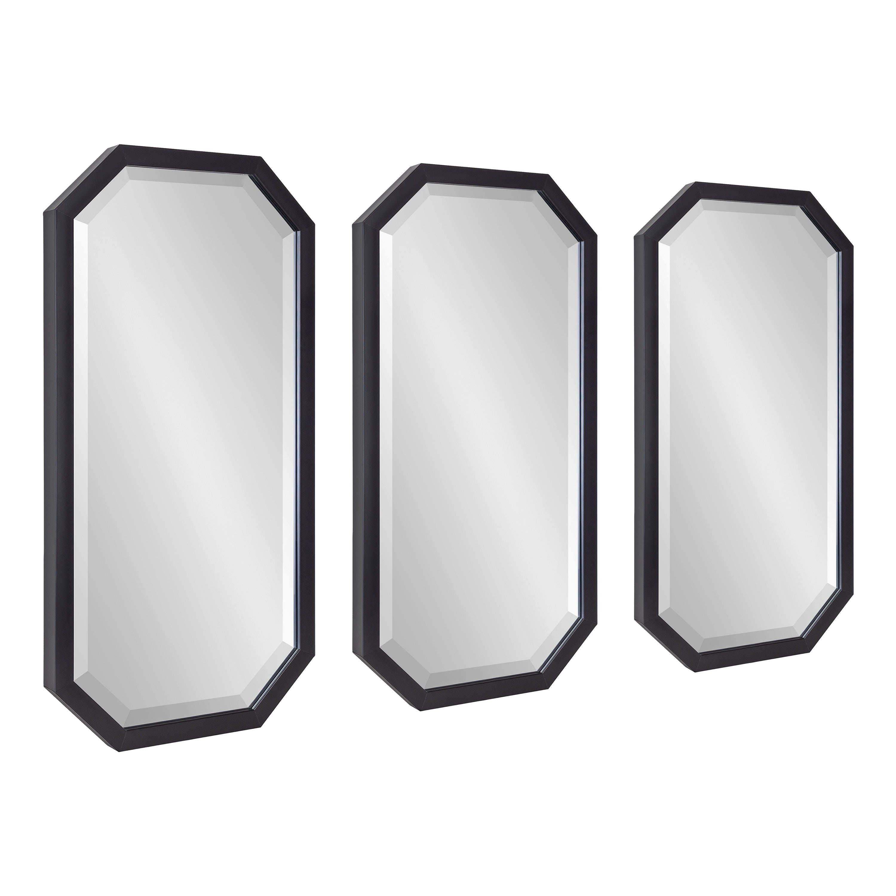 Decorate your home with a cohesive collection of mirrors with the Laverty wall mirror set. In a set of three, this collection features a longer octagonal shape, making them excellent for hanging together or separately in your home.