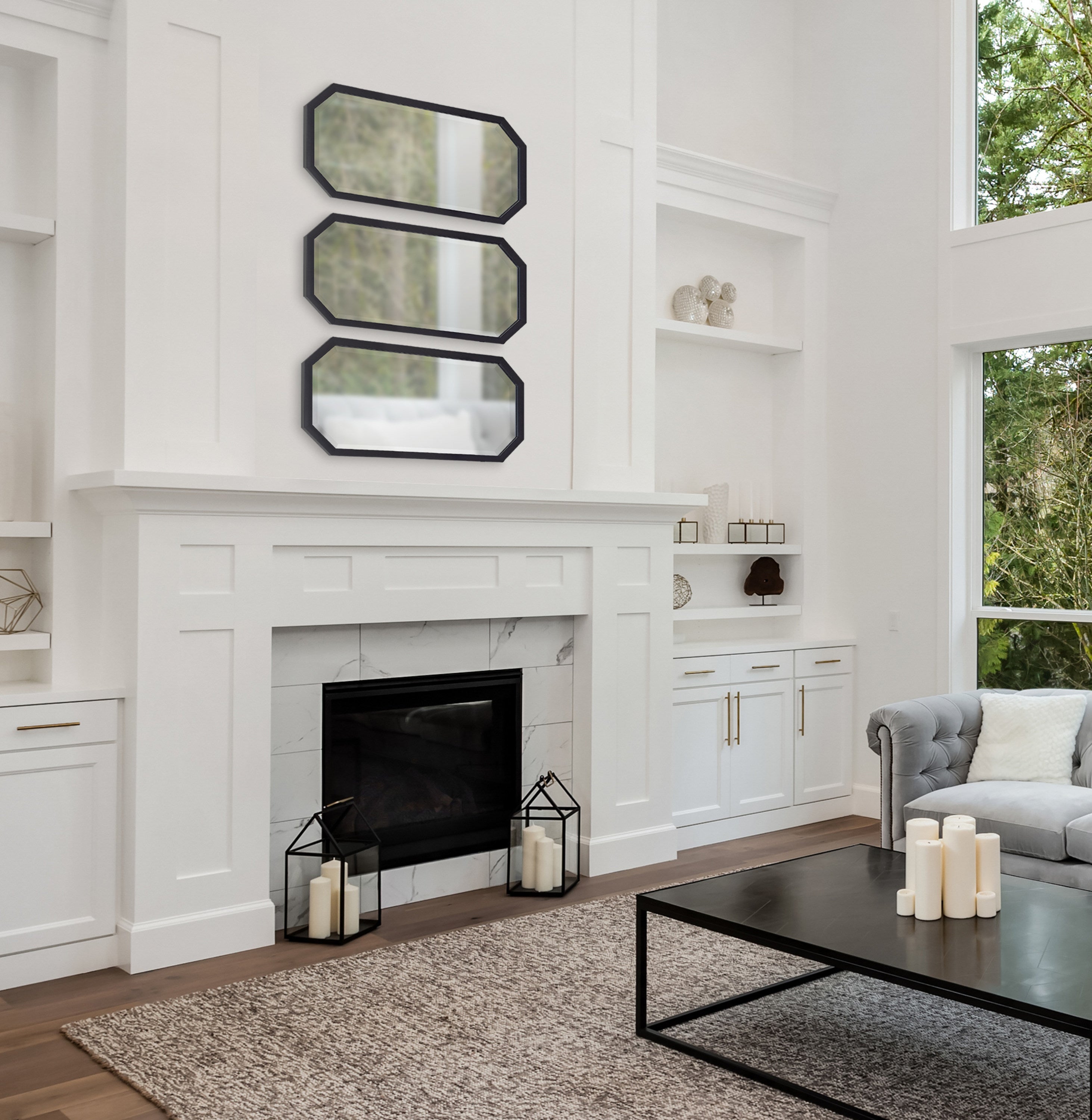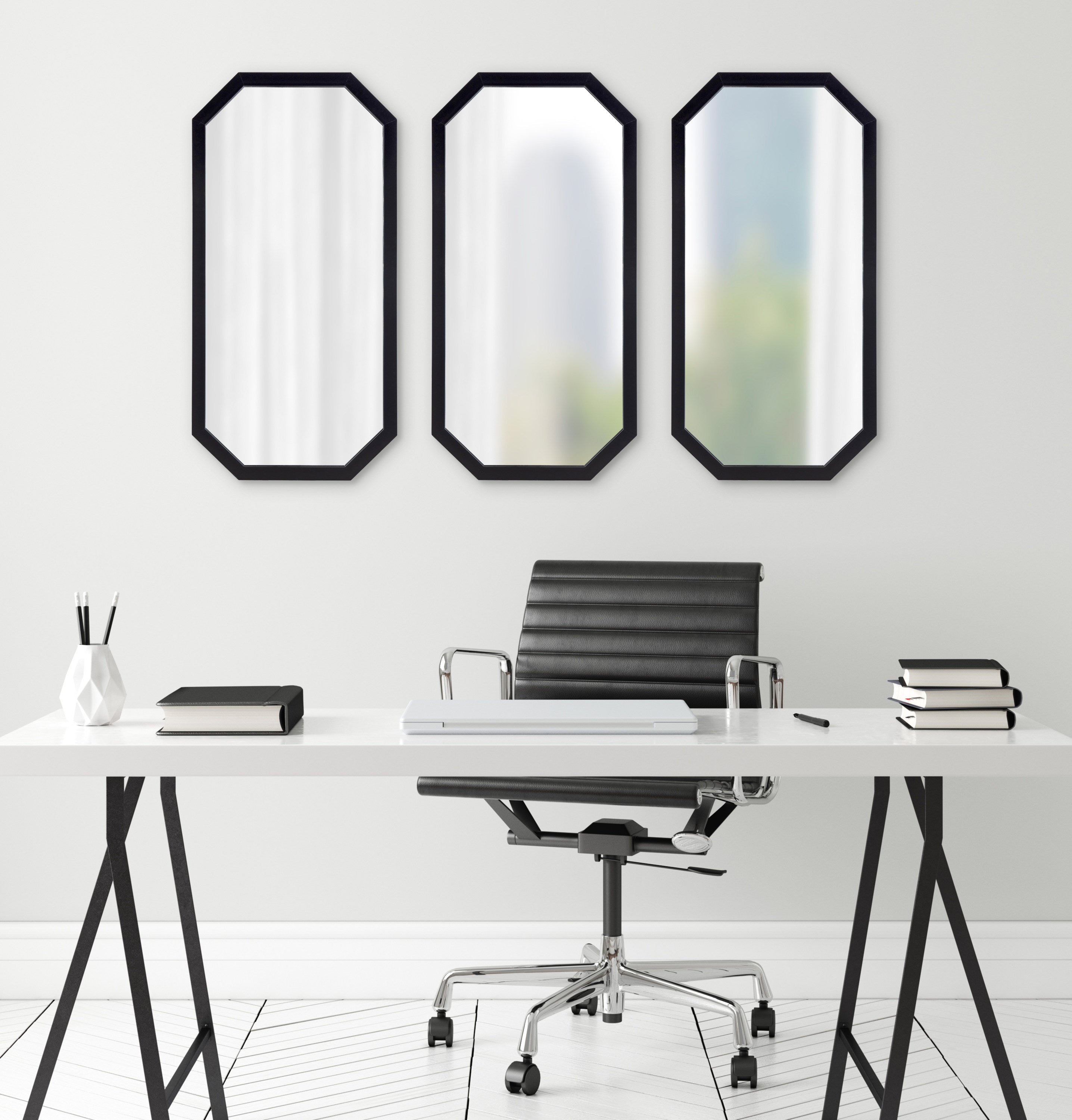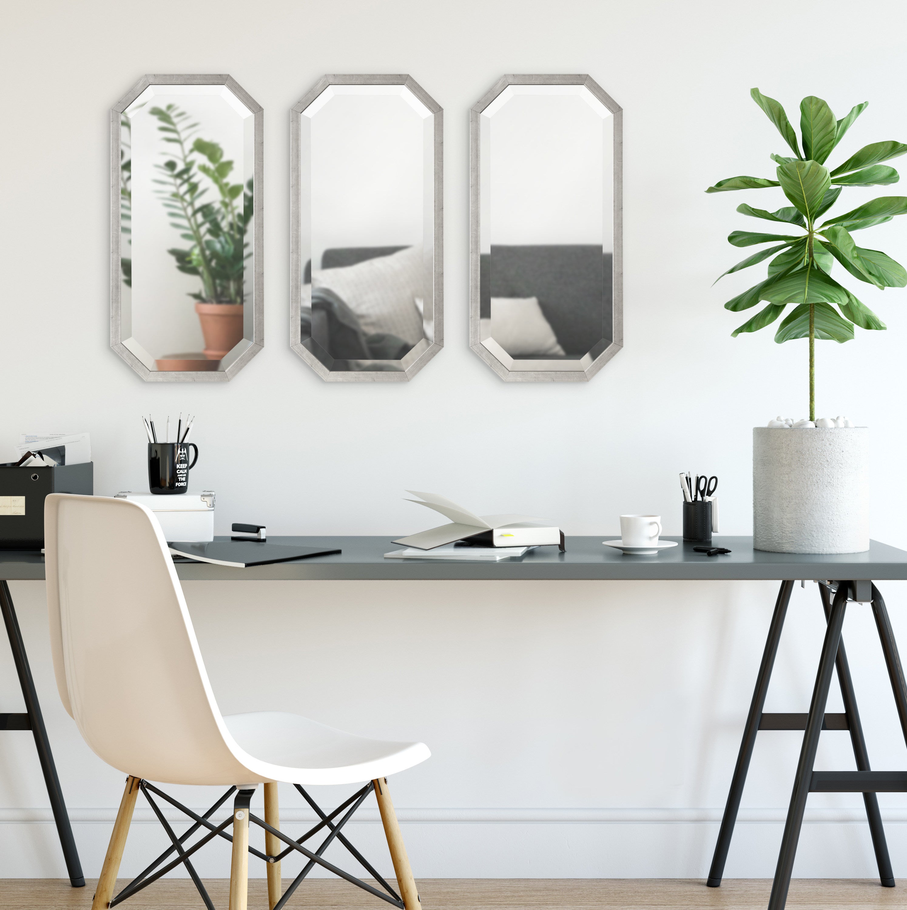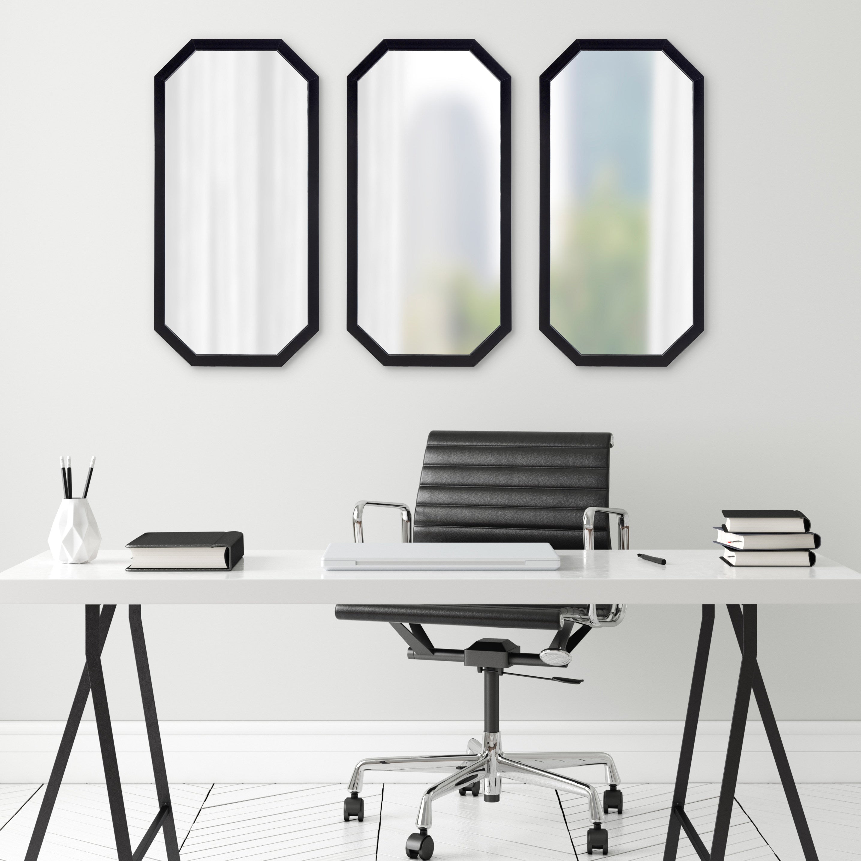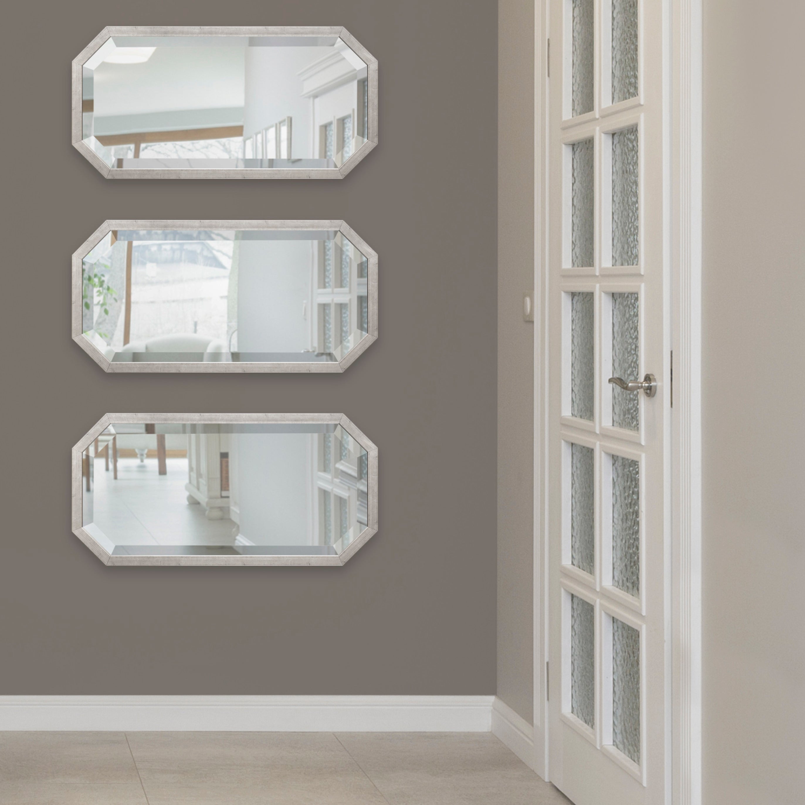 Decorate your home with a cohesive collection of mirrors with the Laverty wall mirror set. In a set of three, this collection features a longer octagonal shape, making them excellent for hanging together or separately in your home.