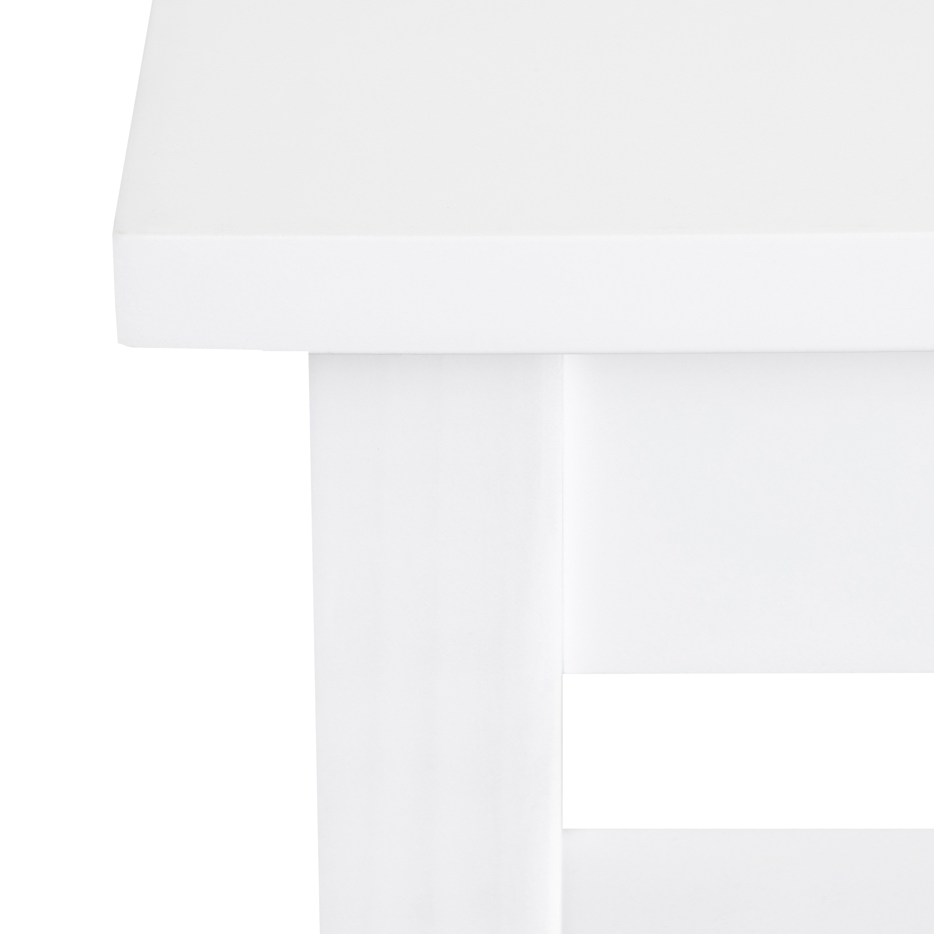 - Crafted of solid and manufactured wood with painted satin finish for lasting durability