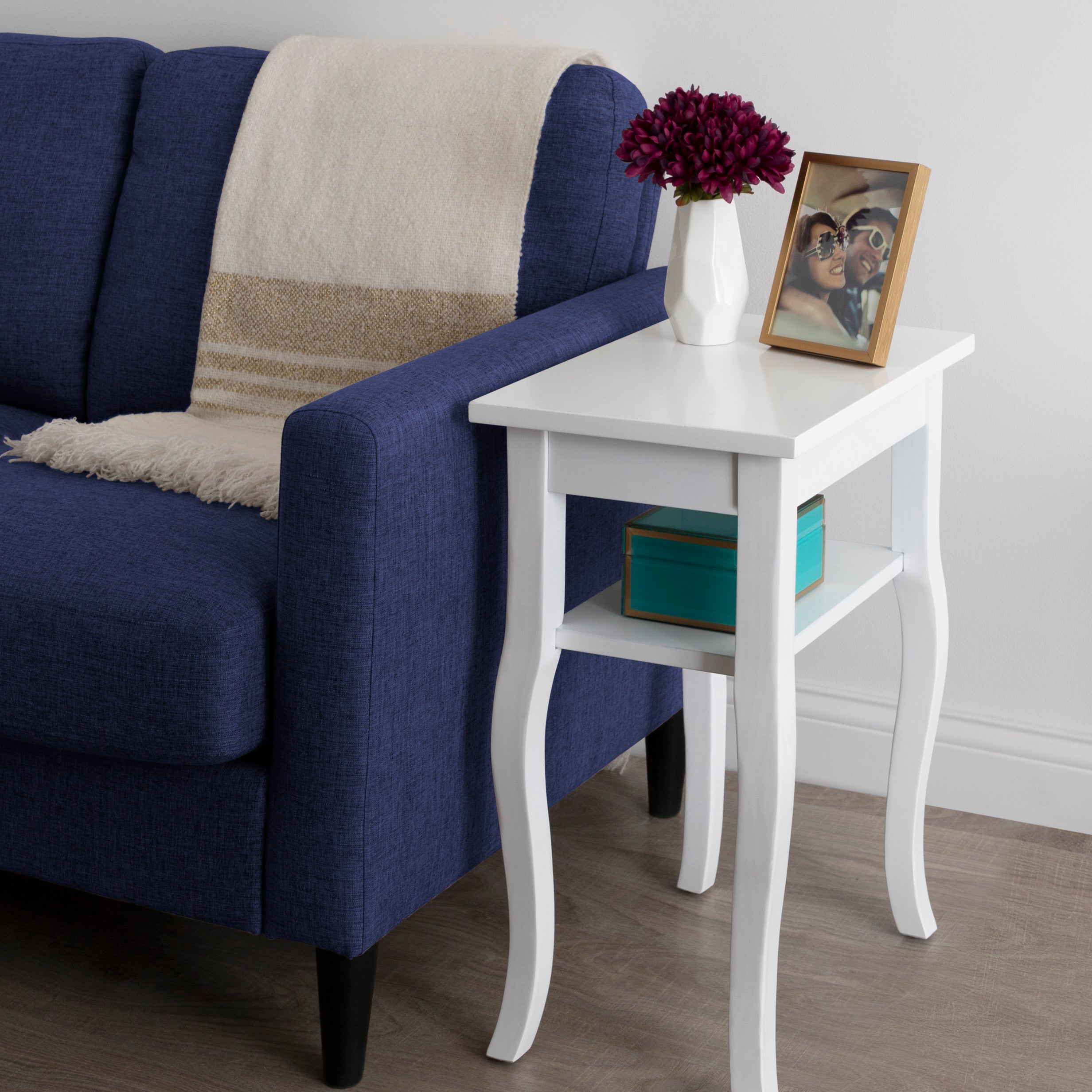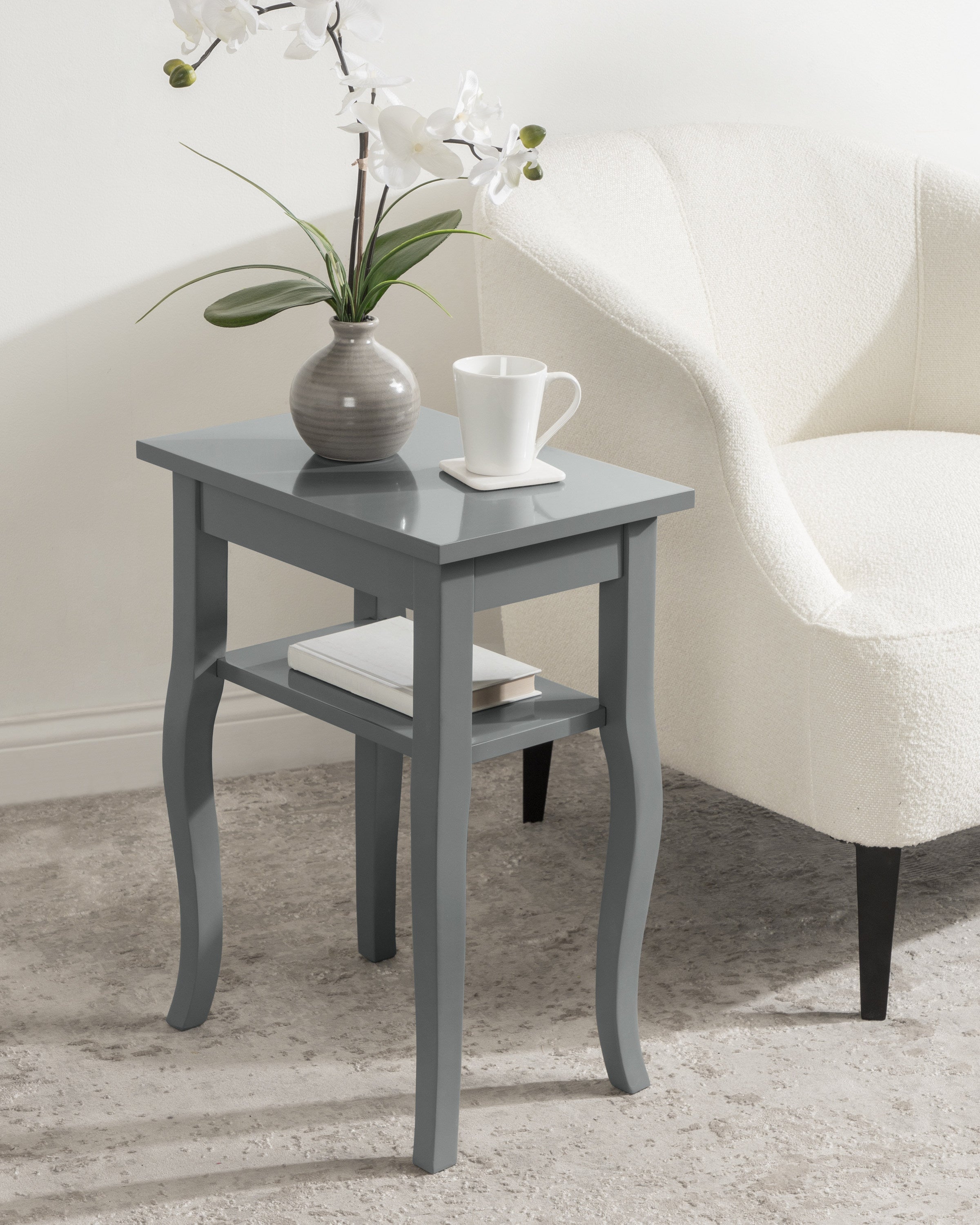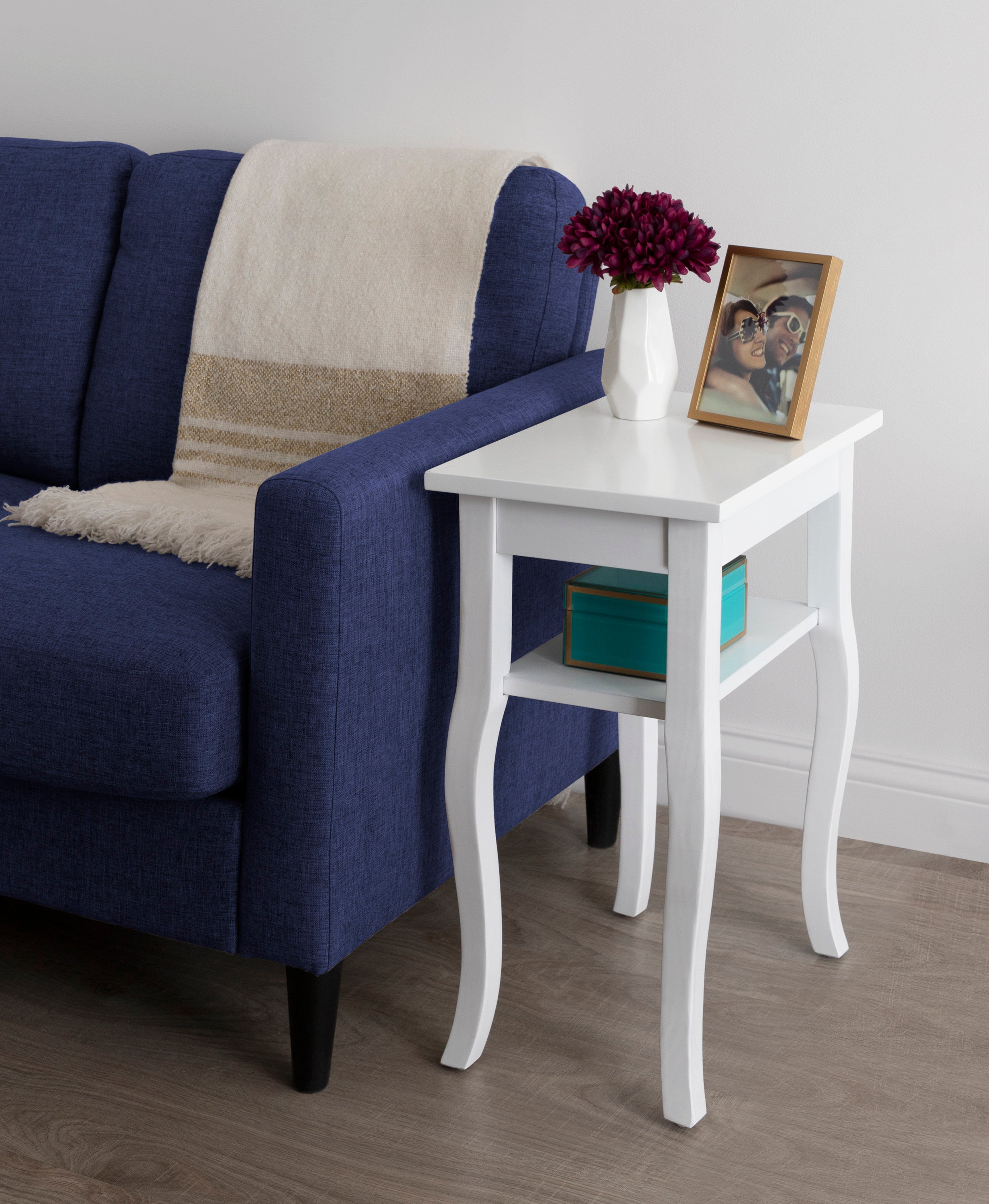 Obtain a sophisticated, timeless side table with a compact design in the Lillian narrow side table. The Lillian table features an updated finish and a lower shelf for additional storage. It offers a dramatic shape and a compact size, with a stature that's just the right height for beside a bed or sofa. Store knickknacks, photos, media remotes, and more on the elegant tabletop surface, with the lower shelf storing small novels and other things you want within arms' reach.