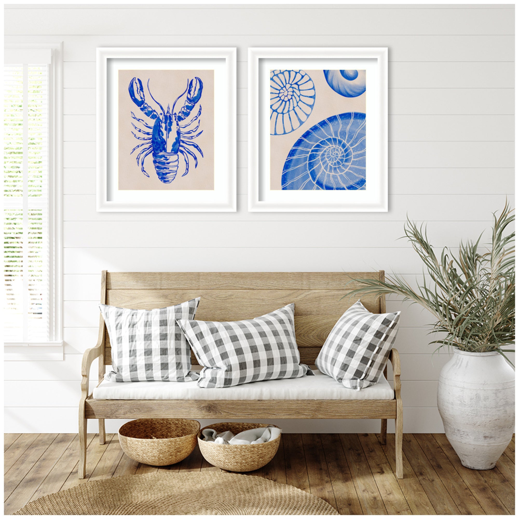 Lobster & Ocean Charms 2 Piece Framed Wall Art Print Set by Nikita Jariwala