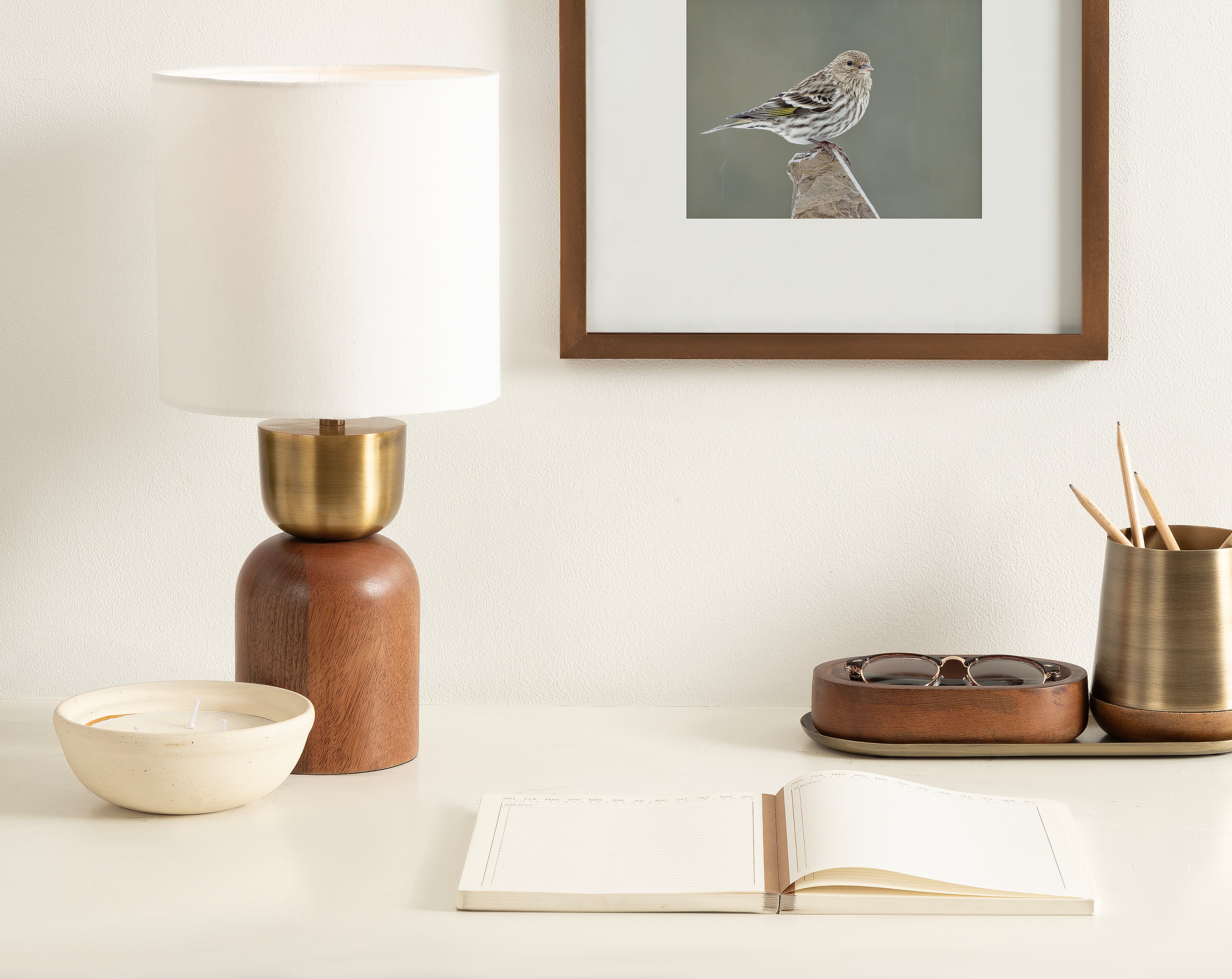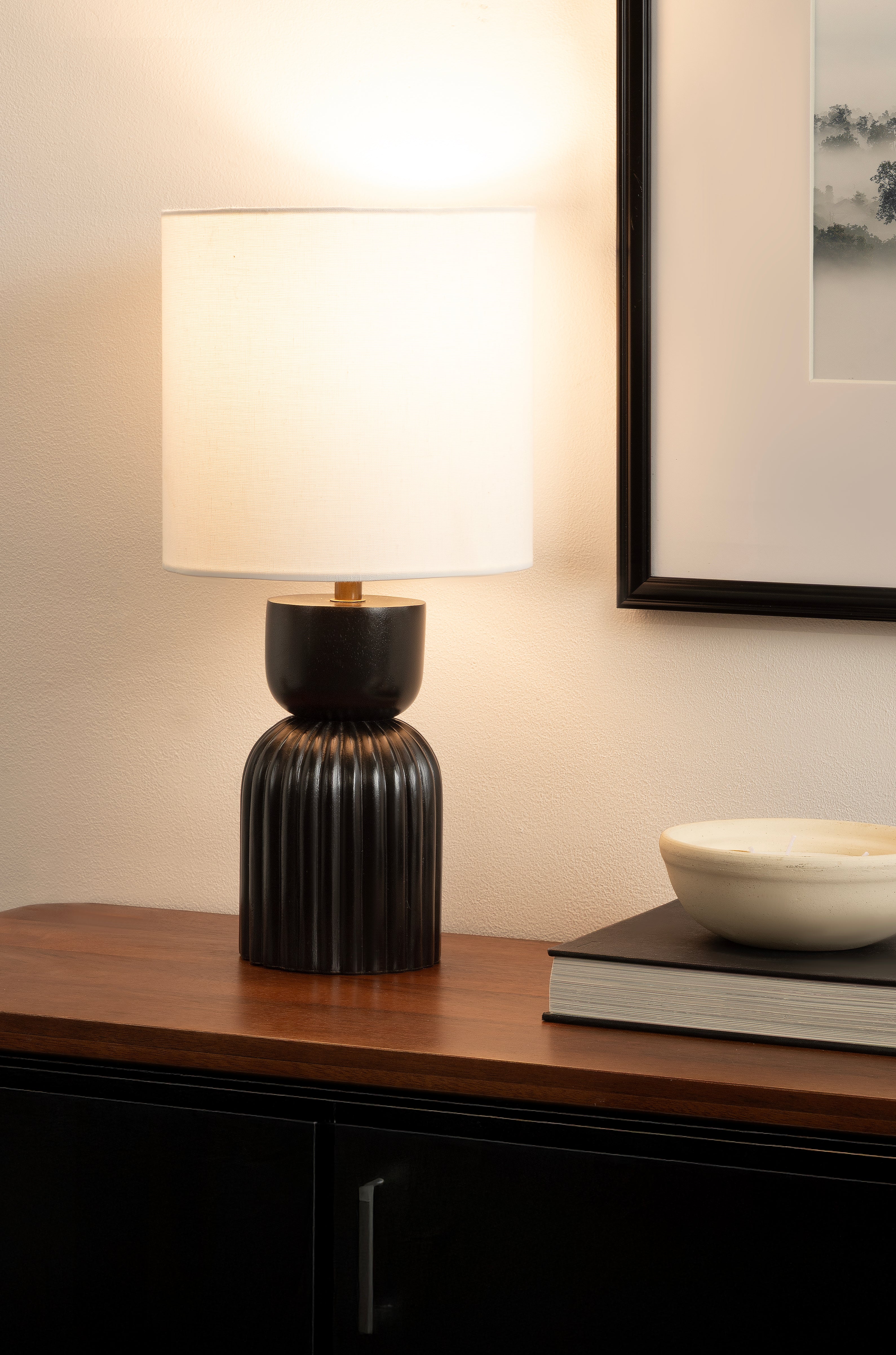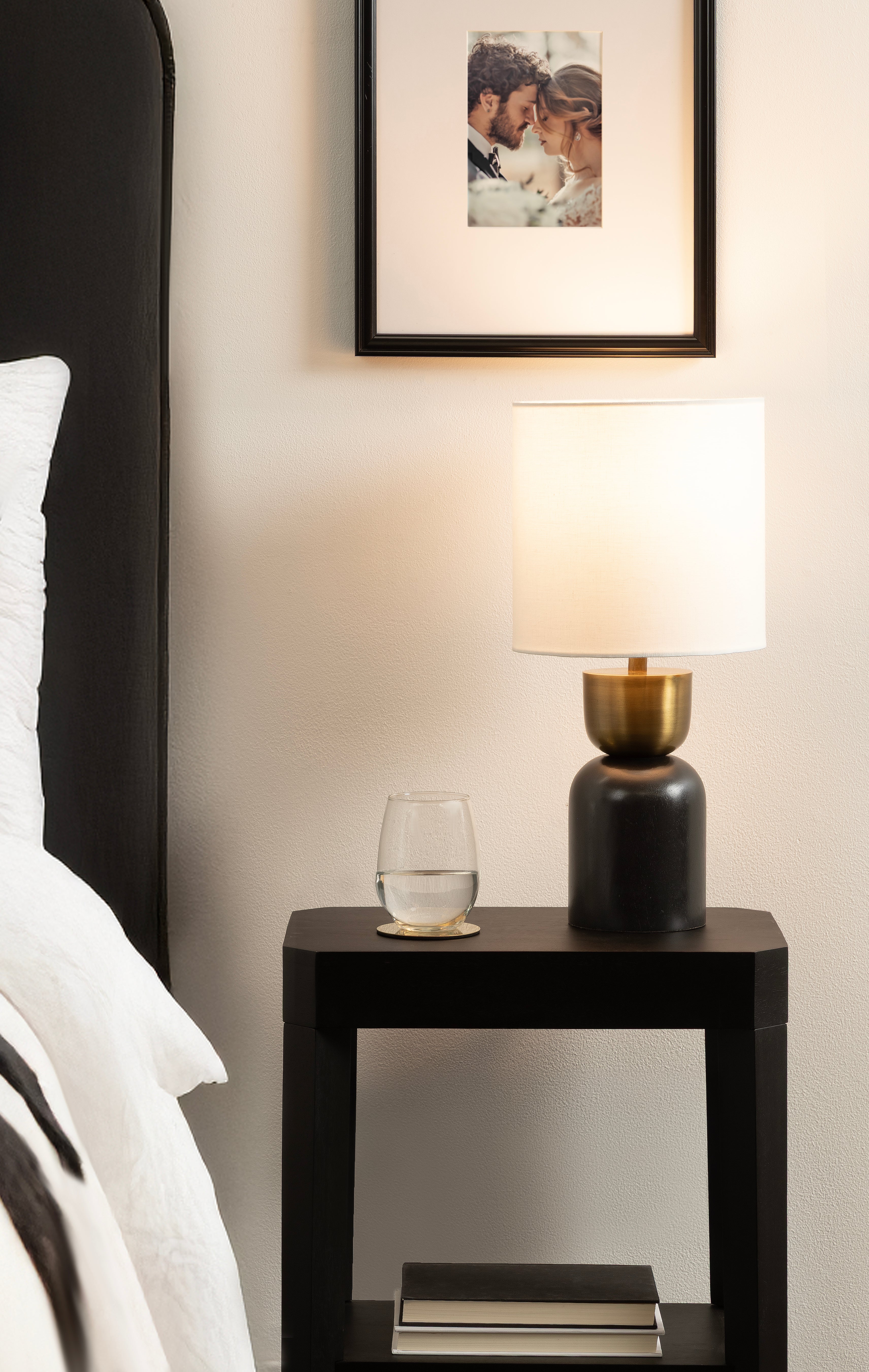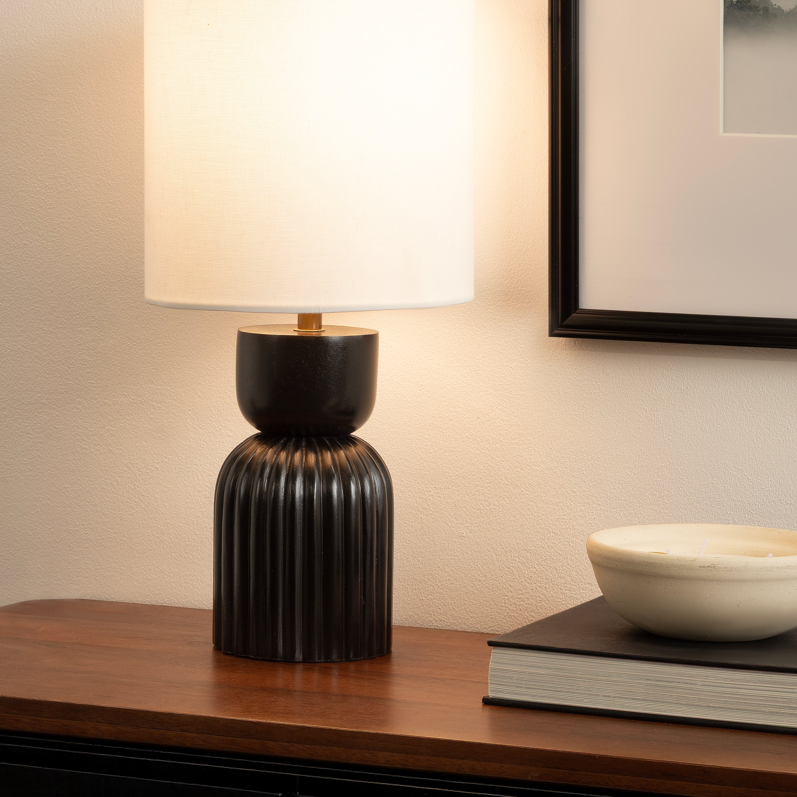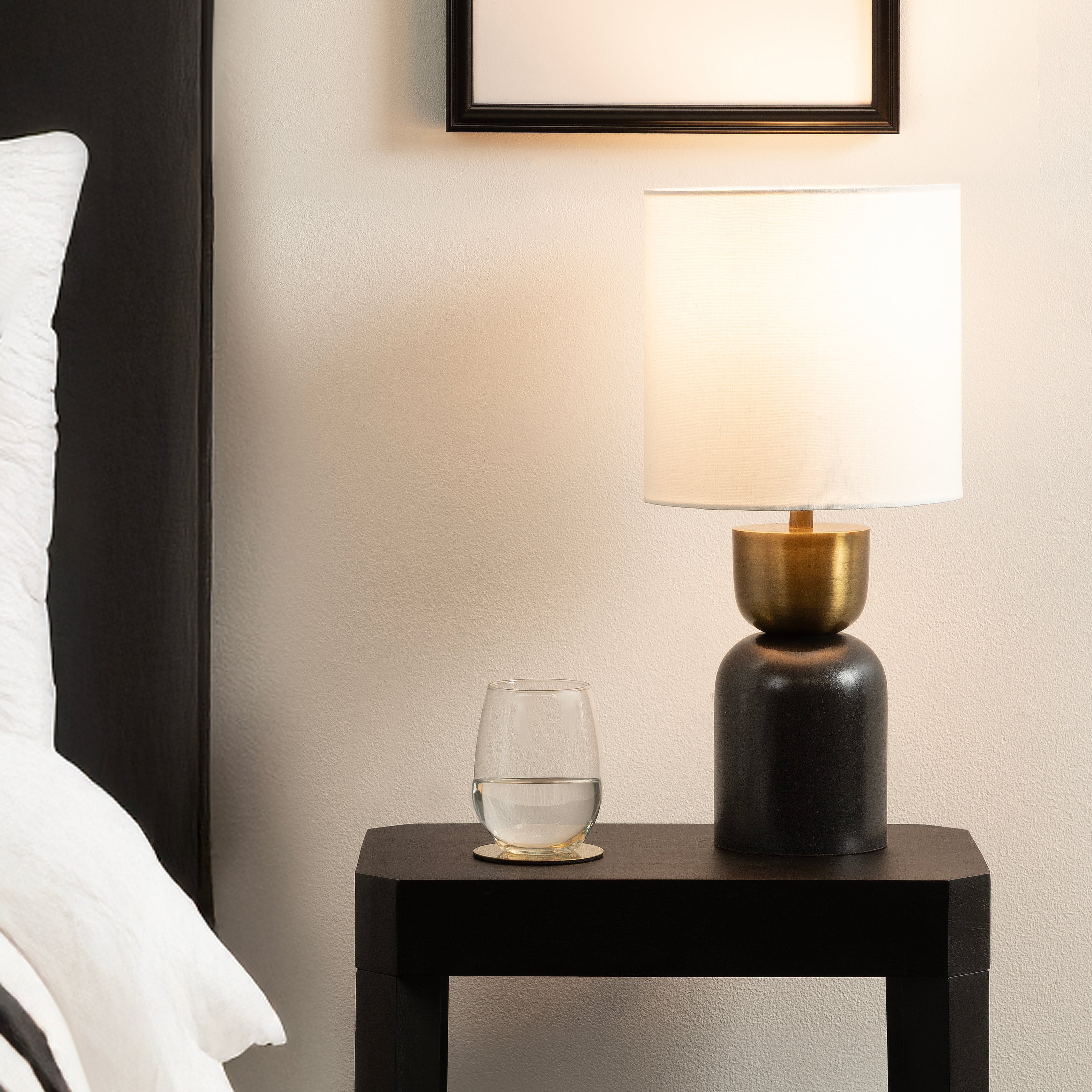Elevate your home lighting with the Marley bedside table lamp from Kate and Laurel—a sculptural piece that blends functional design with contemporary decor. The sculptural hourglass base adds an artistic flair, making it both a decorative object and a source of light. Topped with a soft white linen drum shade, the Marley lamp diffuses light softly, creating a warm and inviting atmosphere perfect for bedrooms, living rooms, or home offices. Whether placed on a nightstand, console table, or desk, this lamp provides both style and substance. Designed for easy use with a standard E26 bulb (not included) that is up to 60 watts for an incandescent bulb or a 9W LED bulb, it's the perfect balance of practicality and elevated design. A UL-Certified product, this tabletop lamp can be used without worry. Add a modern edge to your space with this bold yet refined lighting piece.