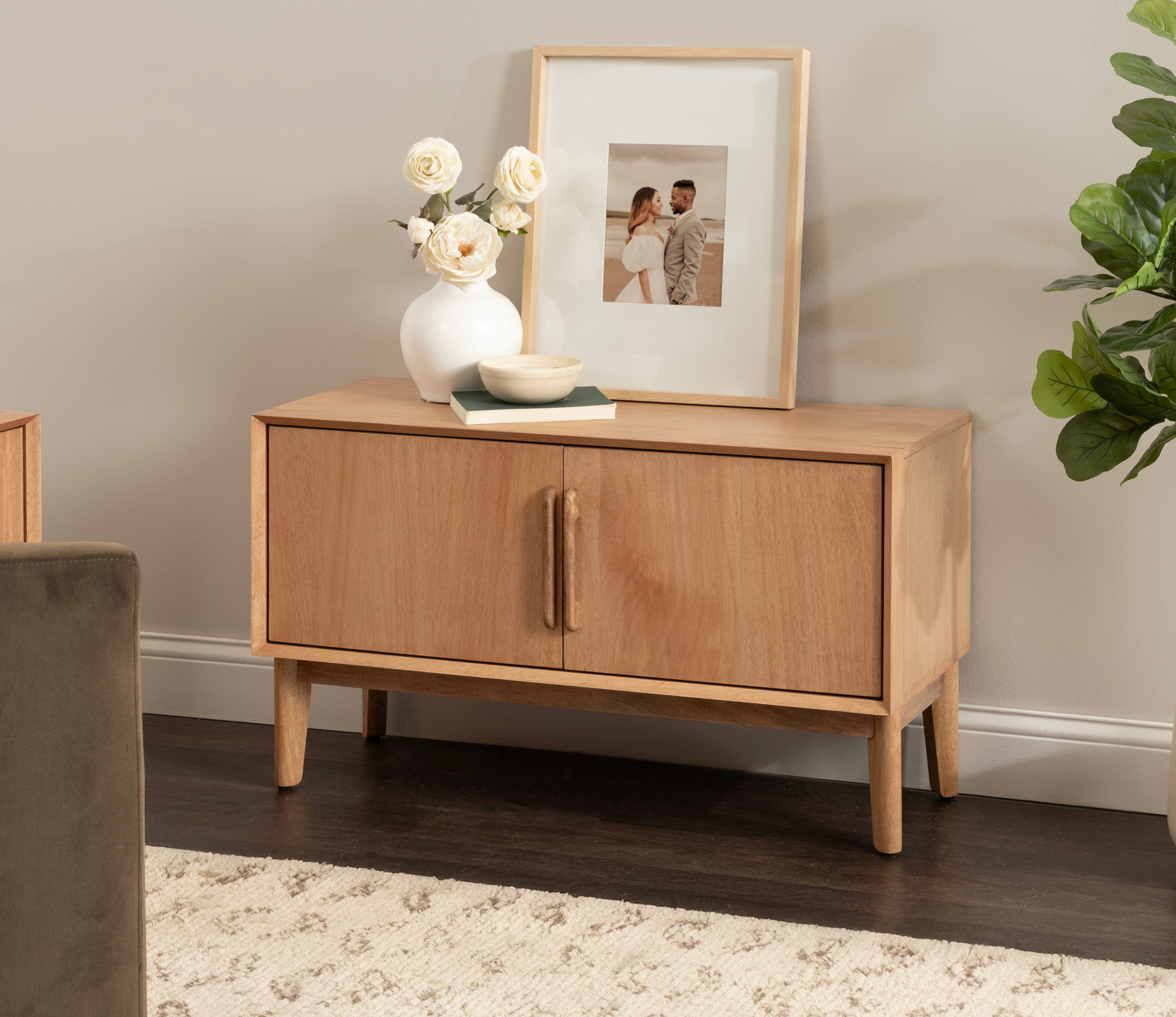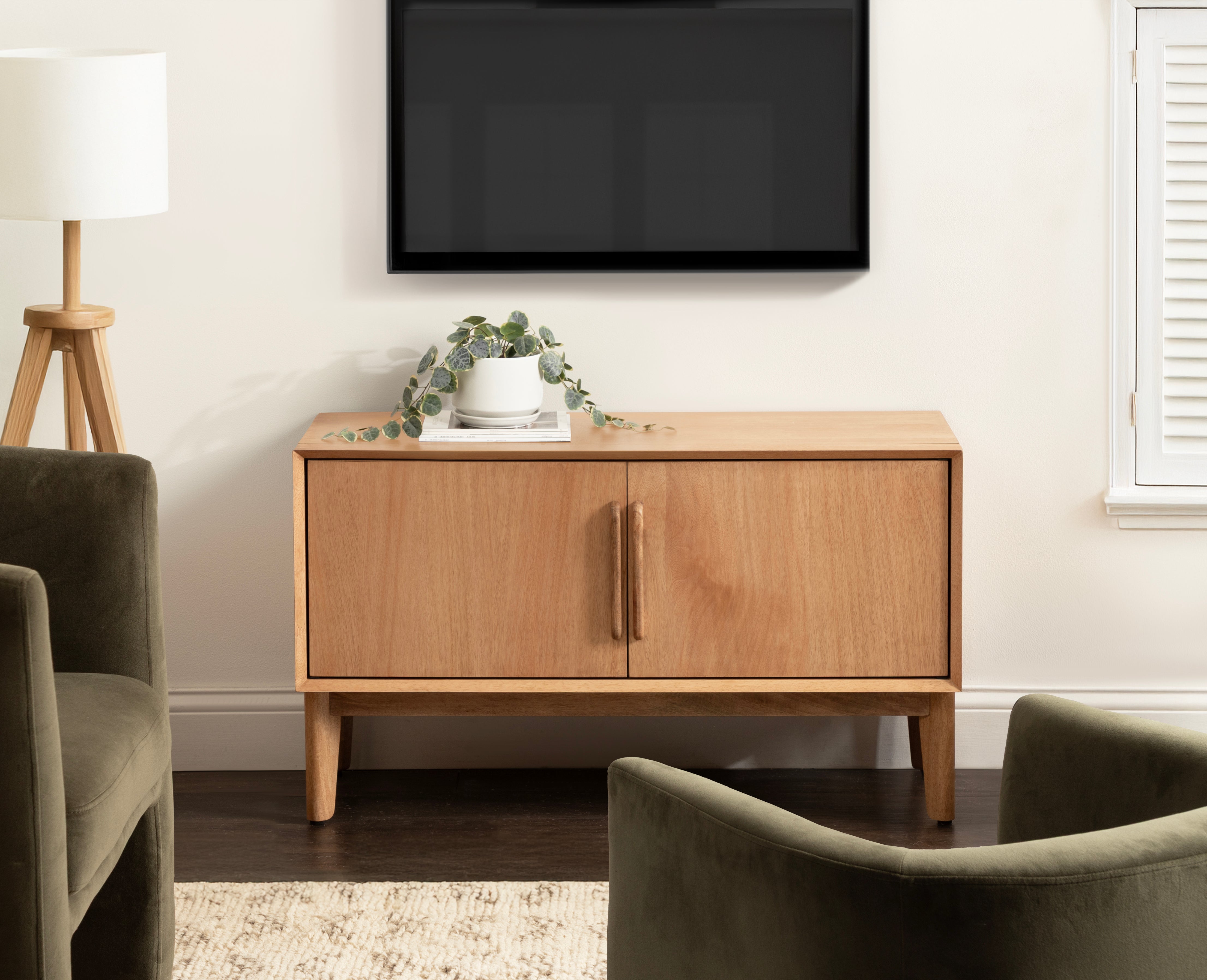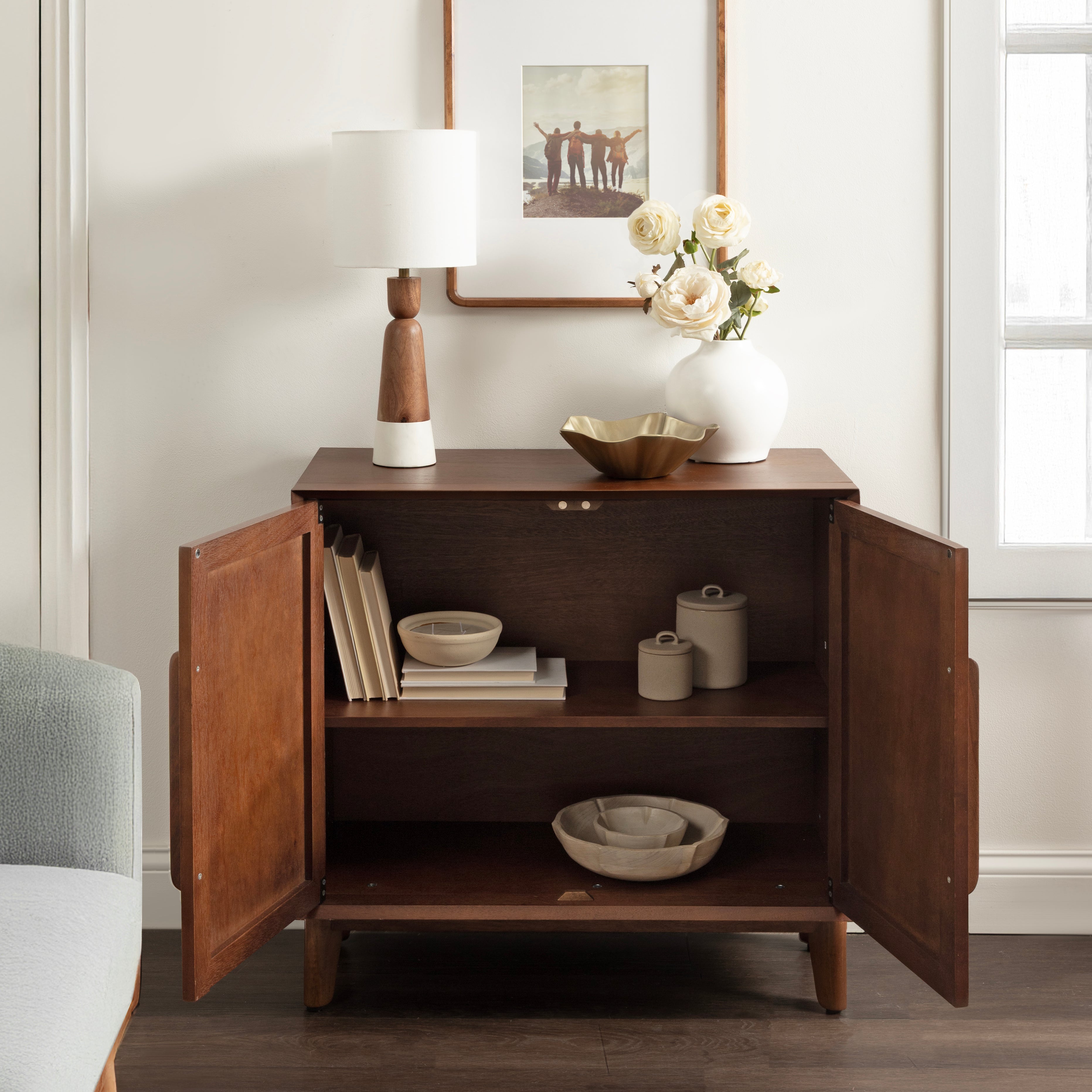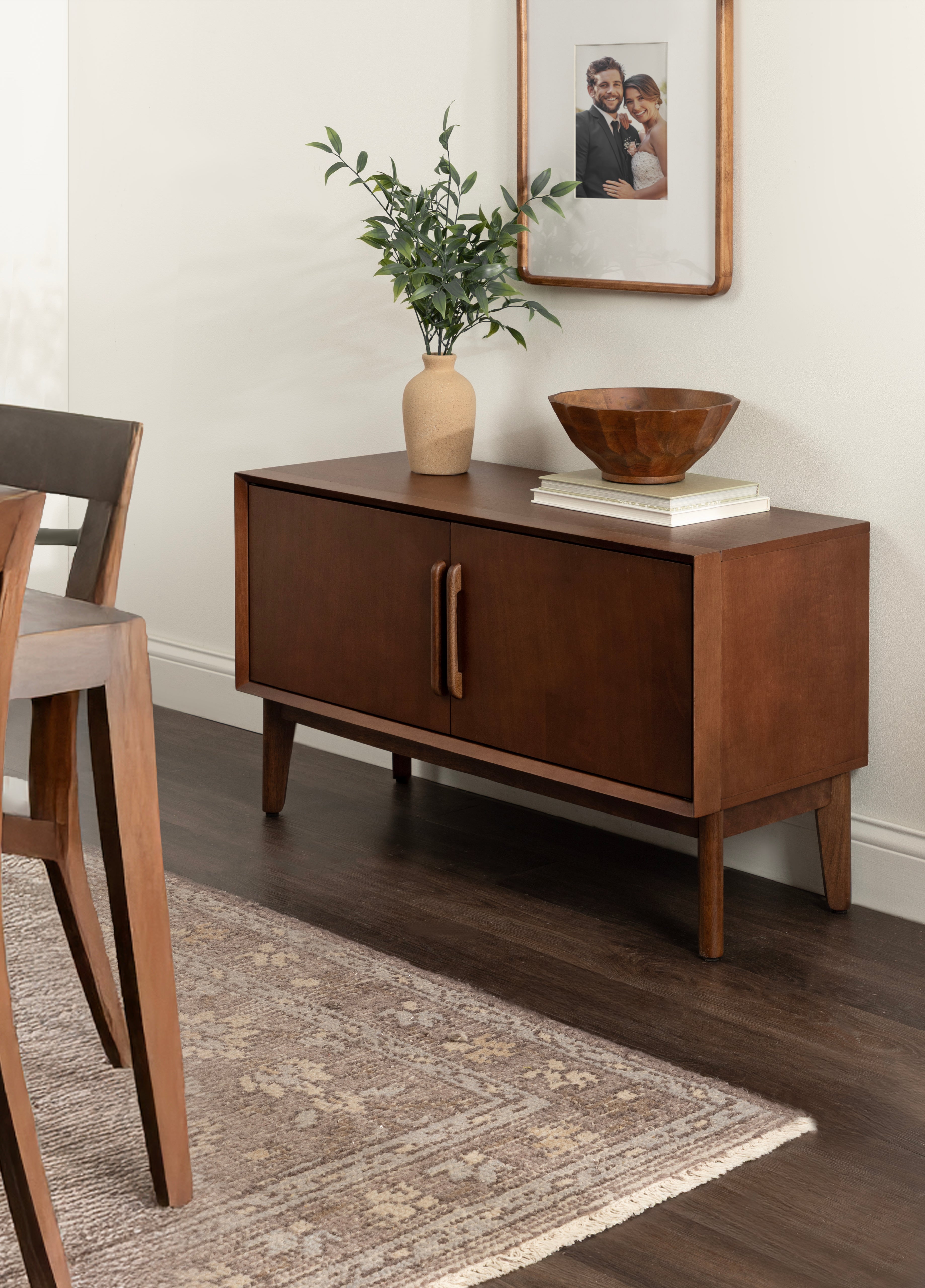 Elevate your home with the Kate and Laurel McCutcheon storage cabinet, a statement piece that blends timeless craftsmanship with versatile functionality. This elegant cabinet is expertly constructed from a careful blend of sturdy wooden material and mango wood, offering natural durability and a warm, organic texture that enhances any space. Designed with a transitional aesthetic, the McCutcheon cabinet complements both modern and classic interiors. Use it as a TV stand, sideboard buffet, or bar storage cabinet—the adjustable interior shelf provides flexible organization for media components, serveware, or bar essentials. Whether styled beneath a wall-mounted television, used to anchor a dining area, or serving as a refined storage buffet, this versatile console delivers beauty and practicality in one. Use the included instructions to assemble this accent cabinet simply and securely.