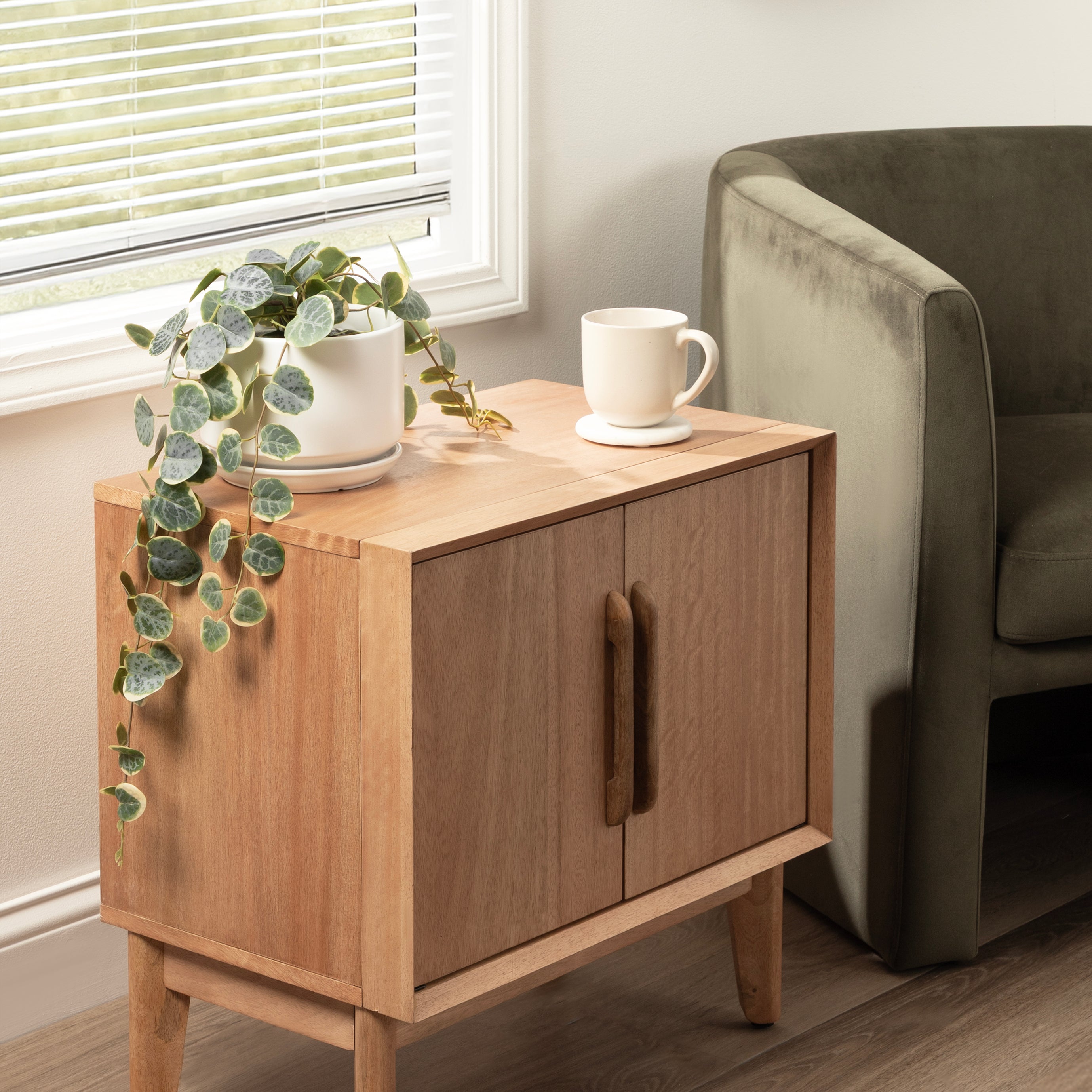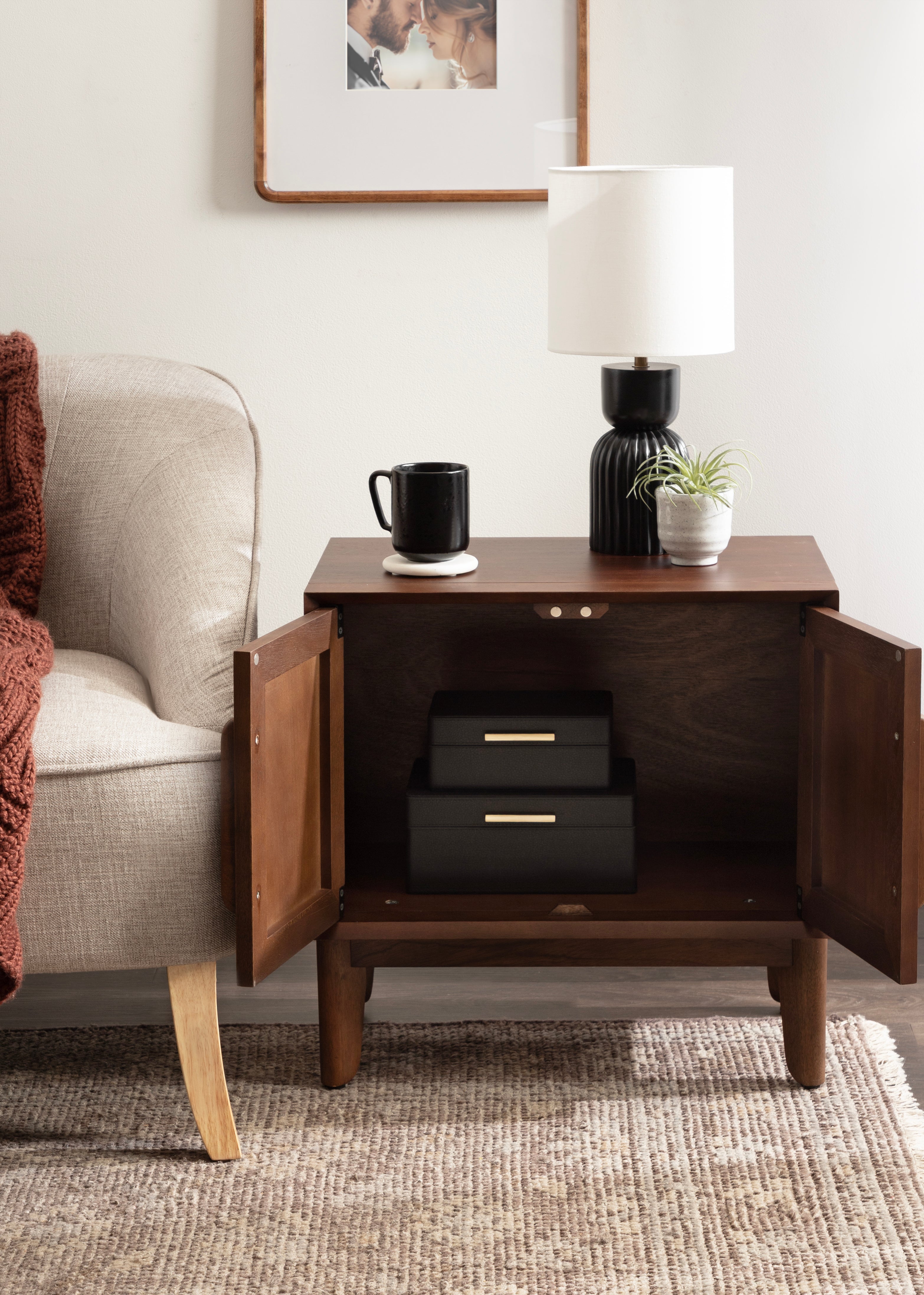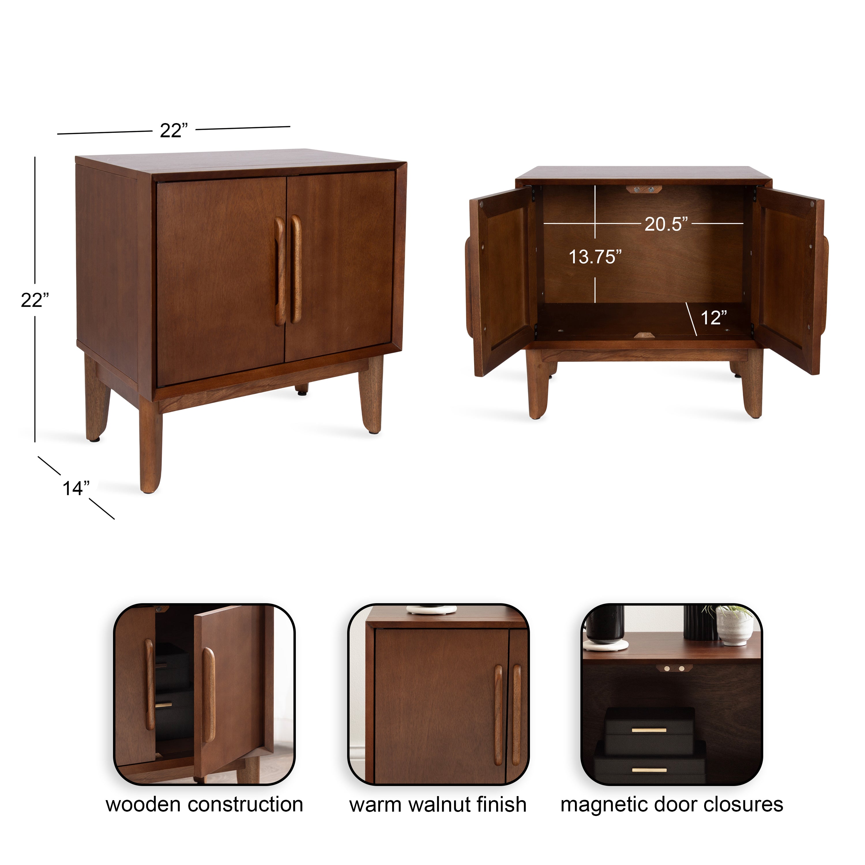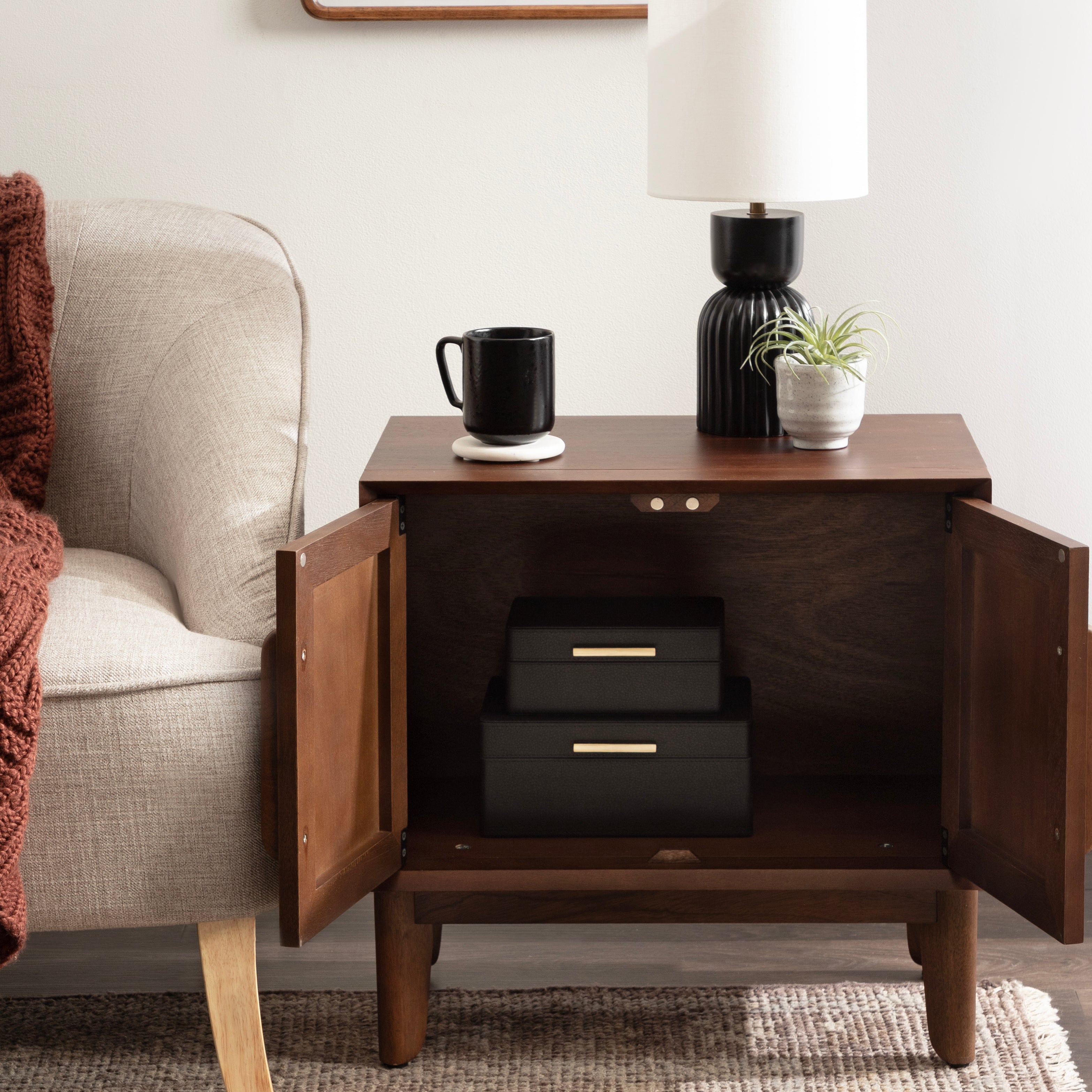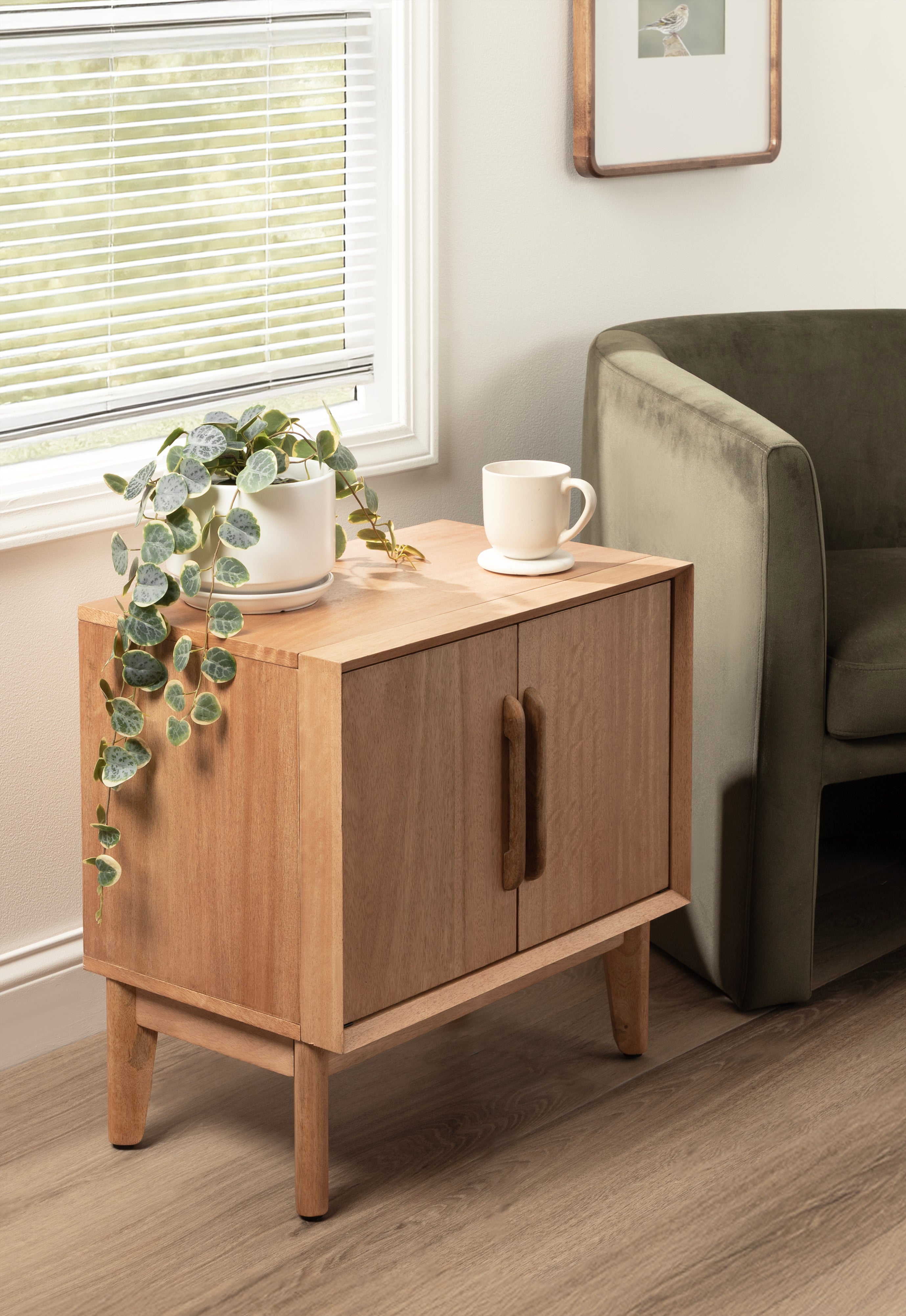 Introducing the Kate and Laurel McCutcheon wooden side table, a versatile and stylish piece that combines functionality and modern design. This beautifully crafted nightstand features a stunning wood finish, a functional storage cabinet design, and a sizable tabletop, offering ample storage space for your bedside essentials. Throughout, this charming side table is a refined design and delightful finishes. Constructed with high-quality materials, this side table is built to last. Crafted from a blend of mango wood and sturdy wooden material in India, each woodgrain and table is truly one-of-a-kind. The wooden cabinet design adds extra storage space and is perfect for storing magazines, books, or other items you want to keep within reach. Use it in your living room, bedroom, or home office for a functional and stylish addition to your space.