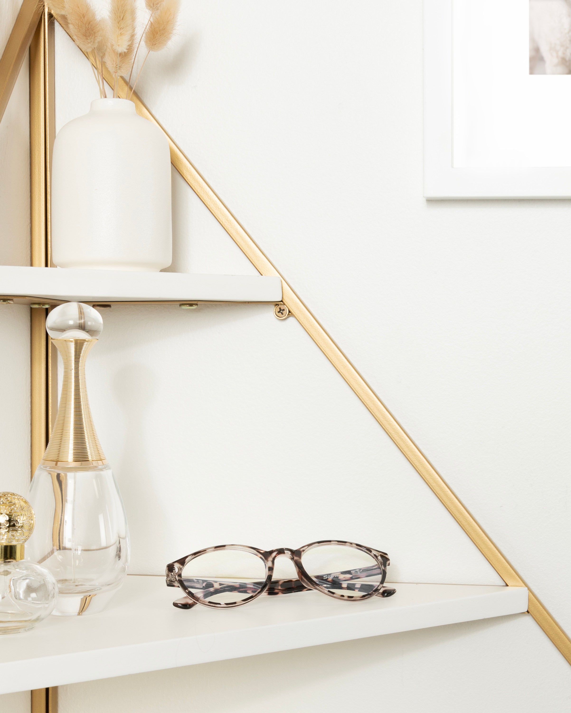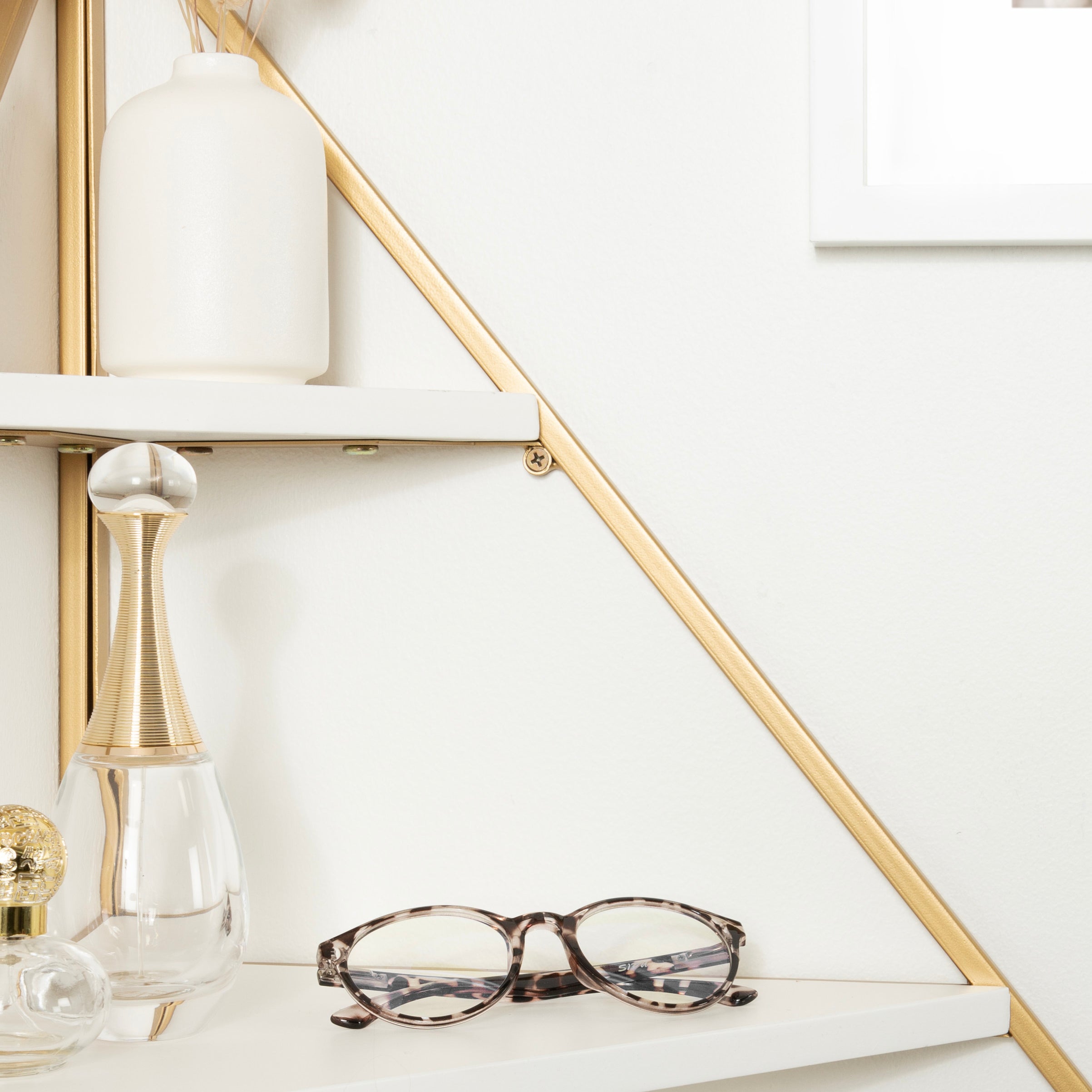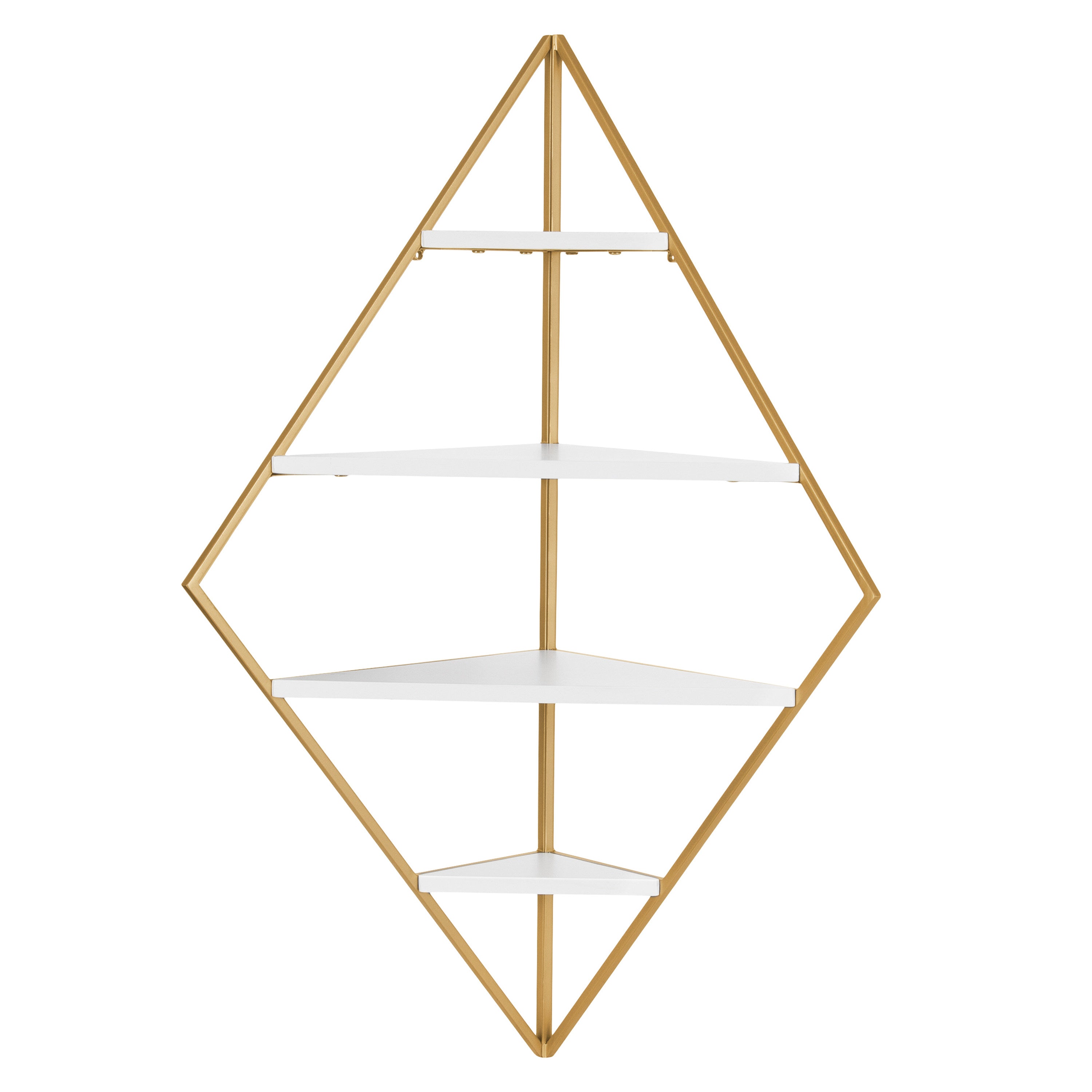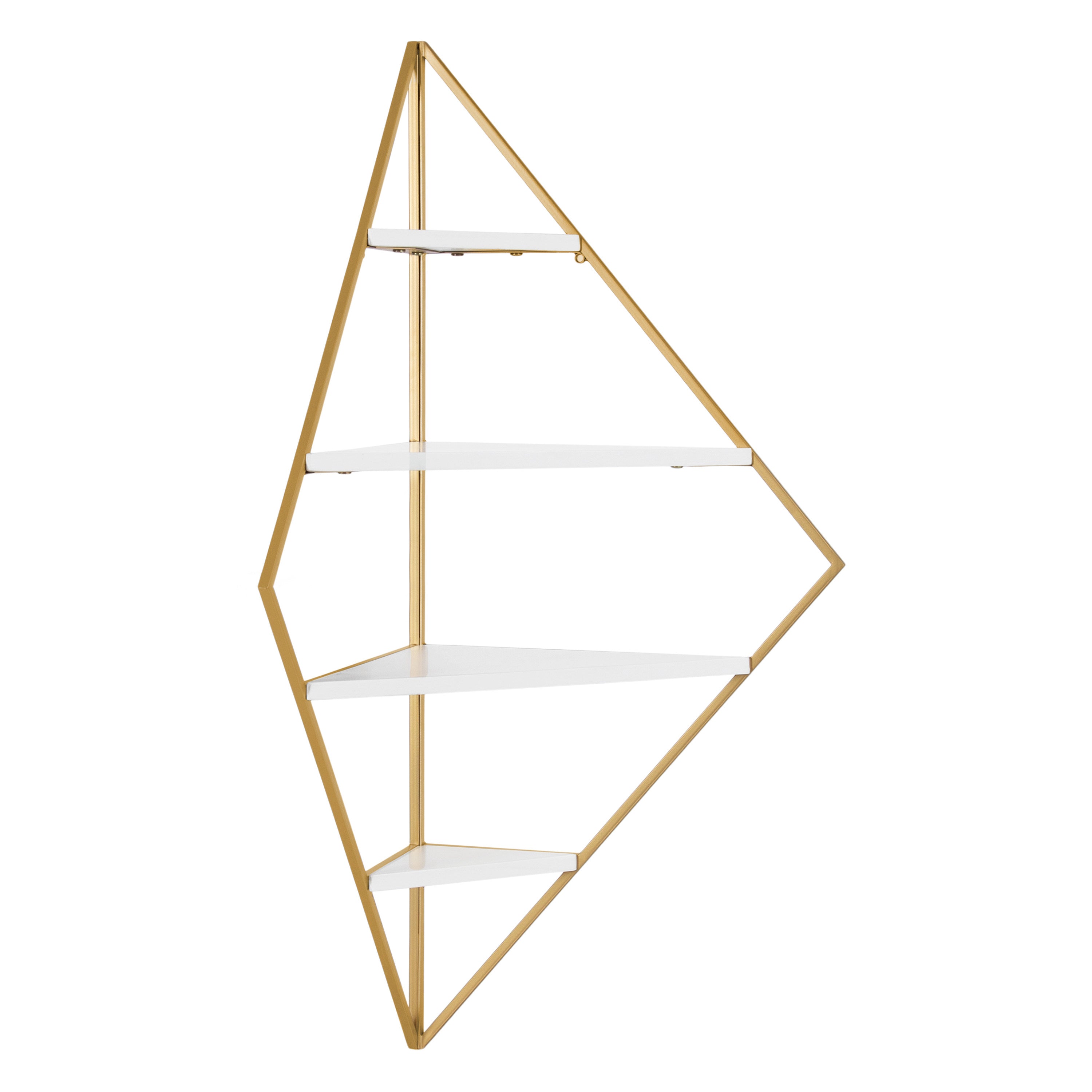 Beautiful modern design with a real artistic appeal is what makes this floating corner shelf so unique. Constructed with a sturdy metal frame and cascading wooden shelf boards, it will look great displaying a variety of decor collections including photo frames, small plants, or books. Hang it in a corner of your living room, bedroom, home office, or even your bathroom to add stylish storage to any space in your home or office. Its space-saving corner shelf design is perfect for an apartment or college dorm that needs all the storage it can get!