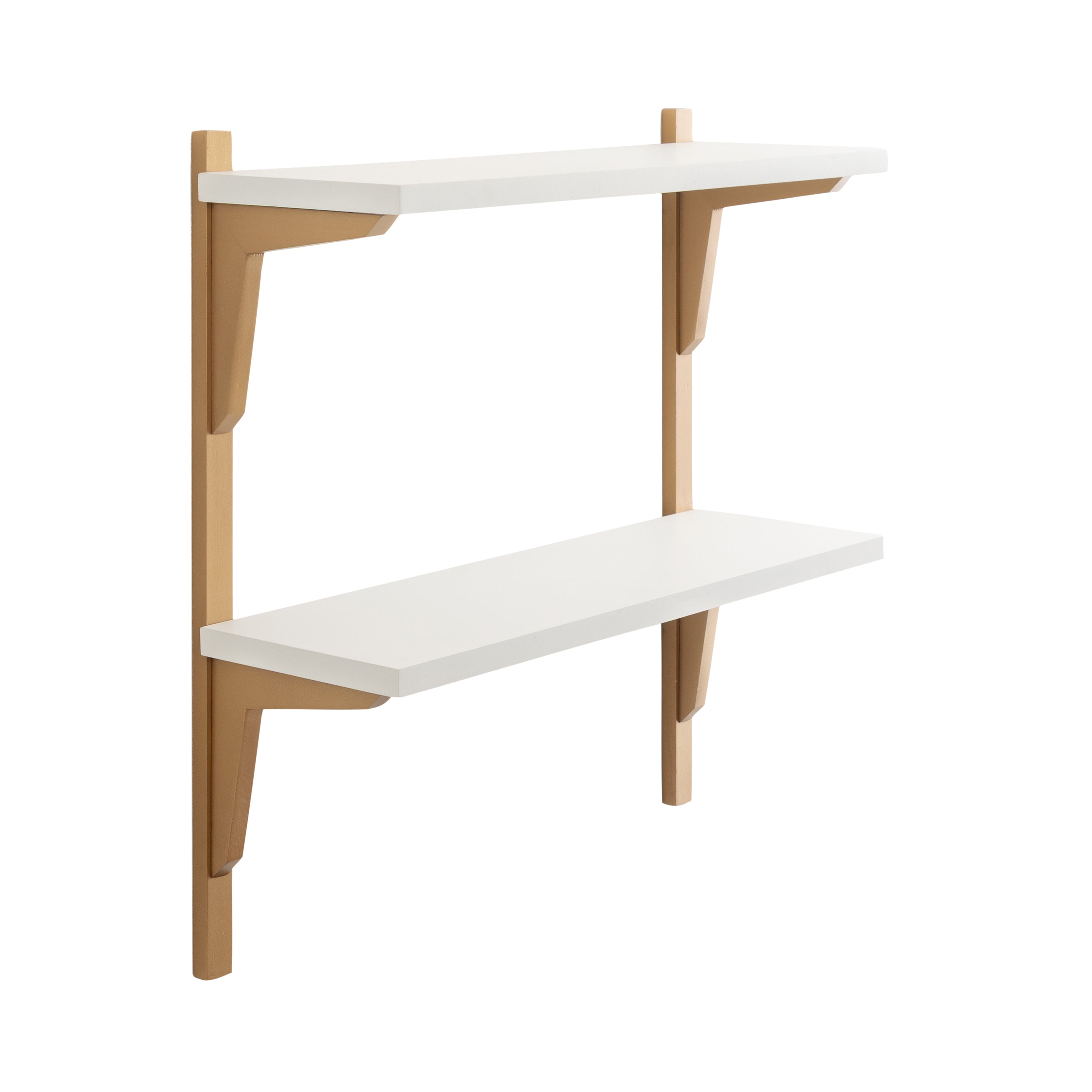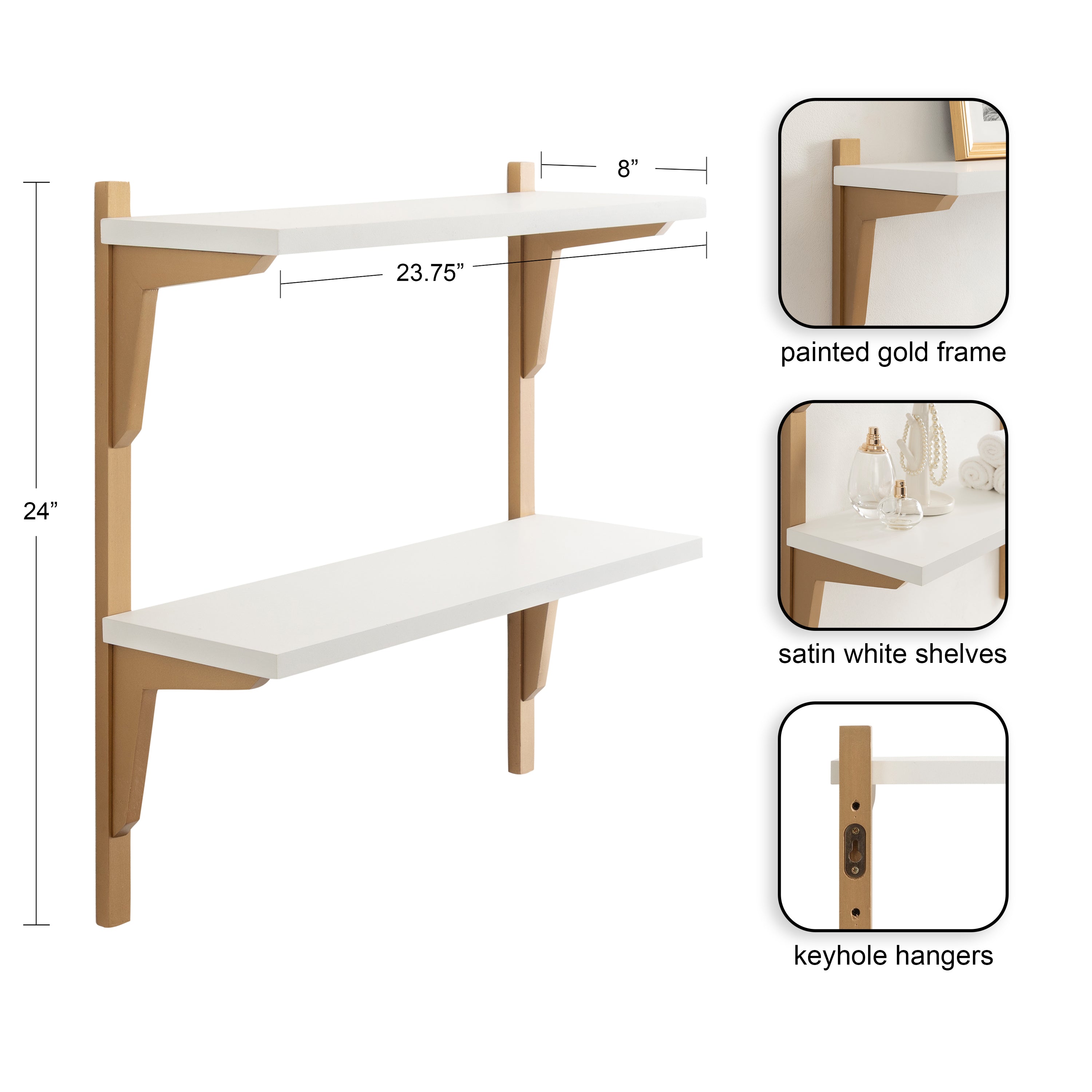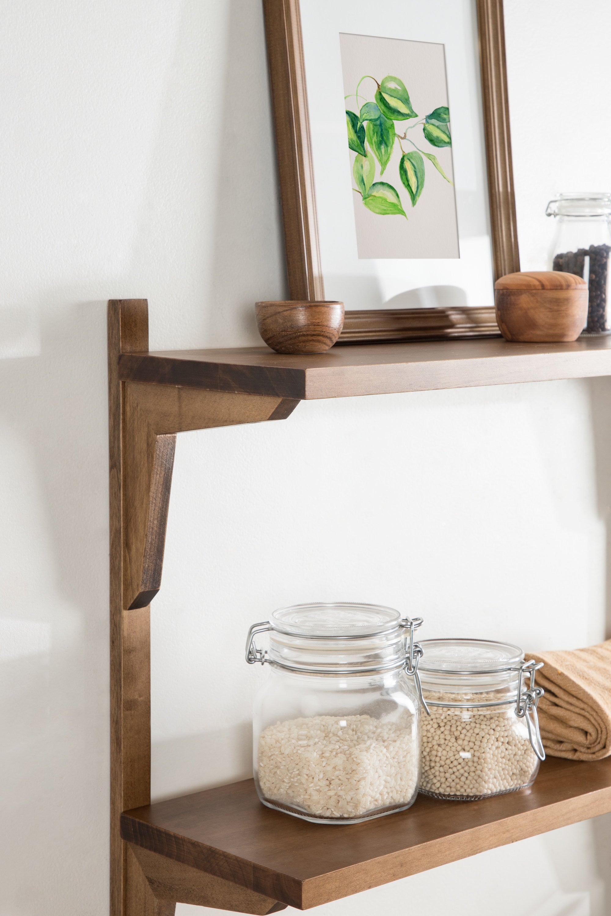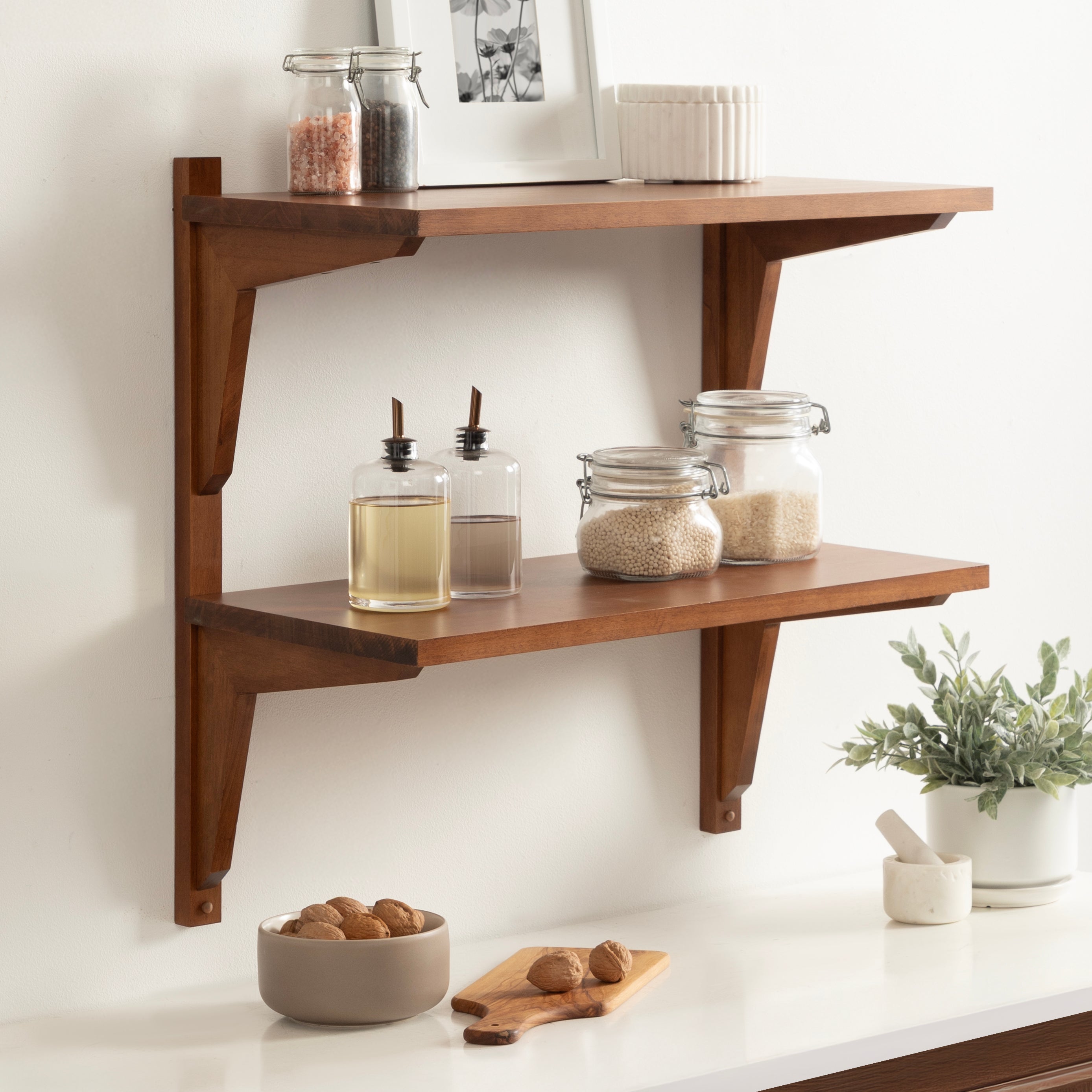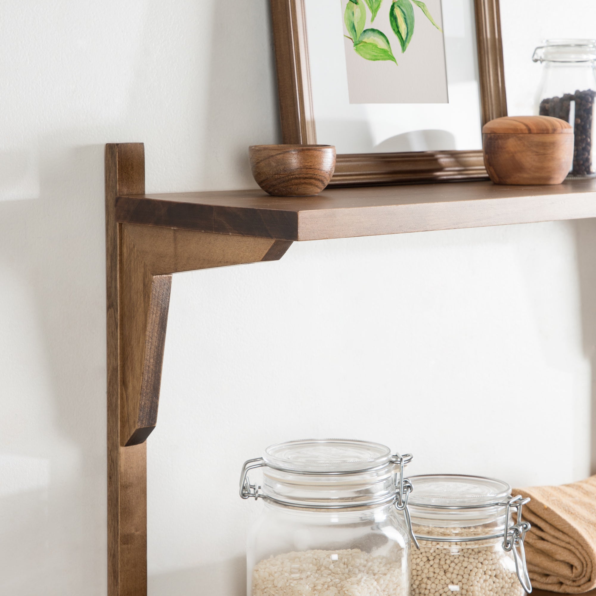 Add classic style to your home with the Meridian shelf. The transitional-yet-modern design features two tiers within brackets, giving you a refined, minimal quality. The sleek finish gives it a transitional look that makes it blend seamlessly into any entryway, living room, dining room, bedroom, bathroom, or kitchen decor. Use it to display your favorite small plants, keepsakes, and photos, or use it as a kitchen spice rack and baking shelf.