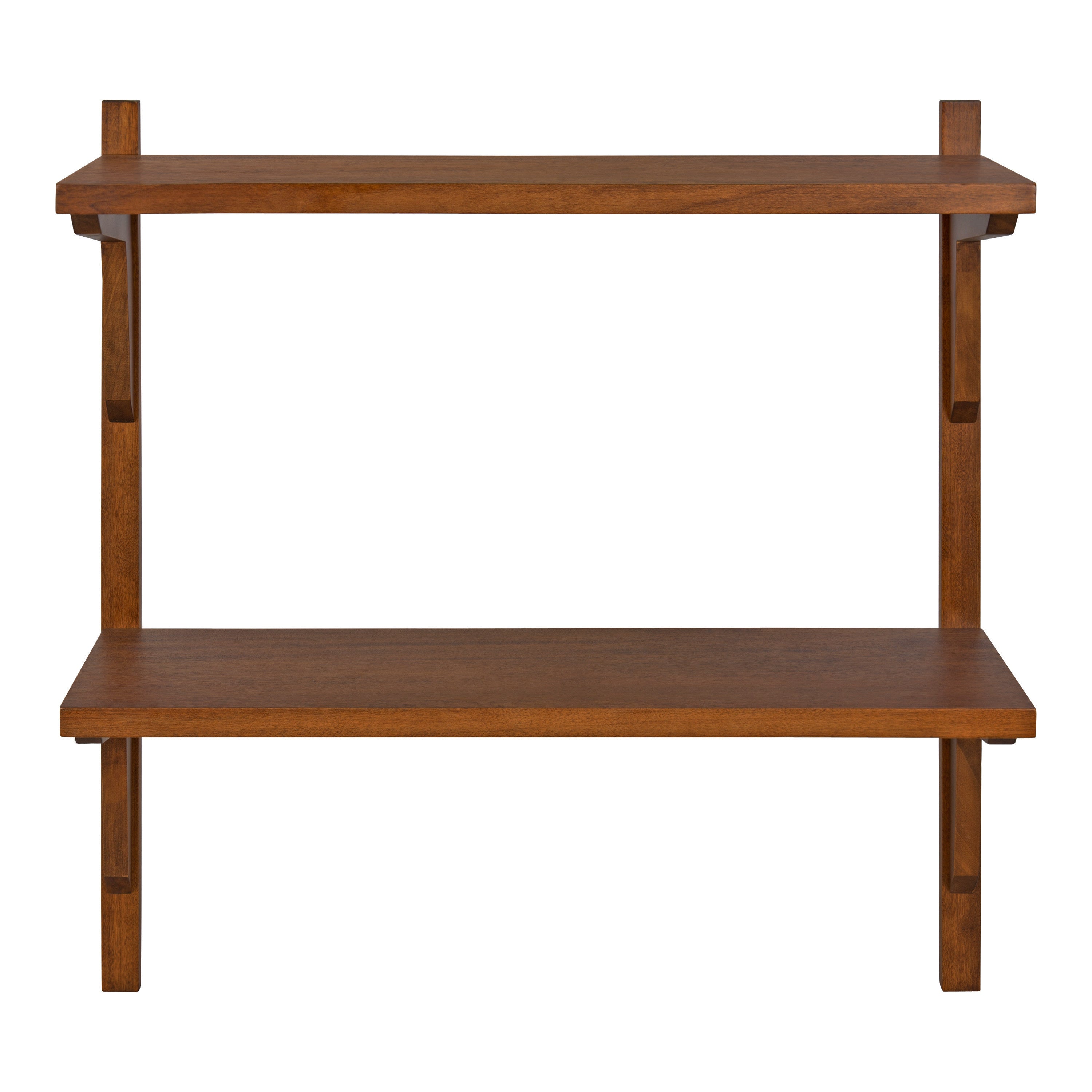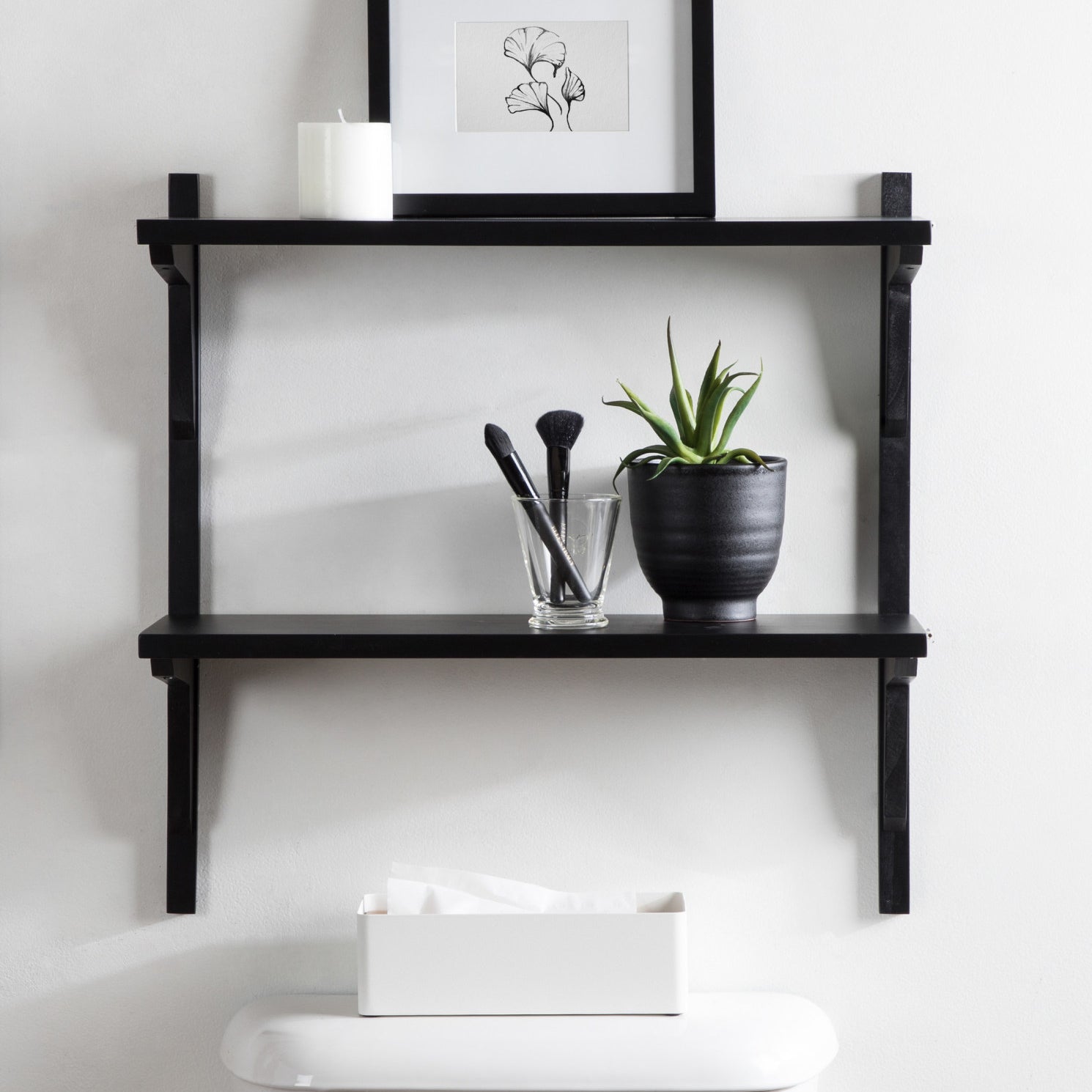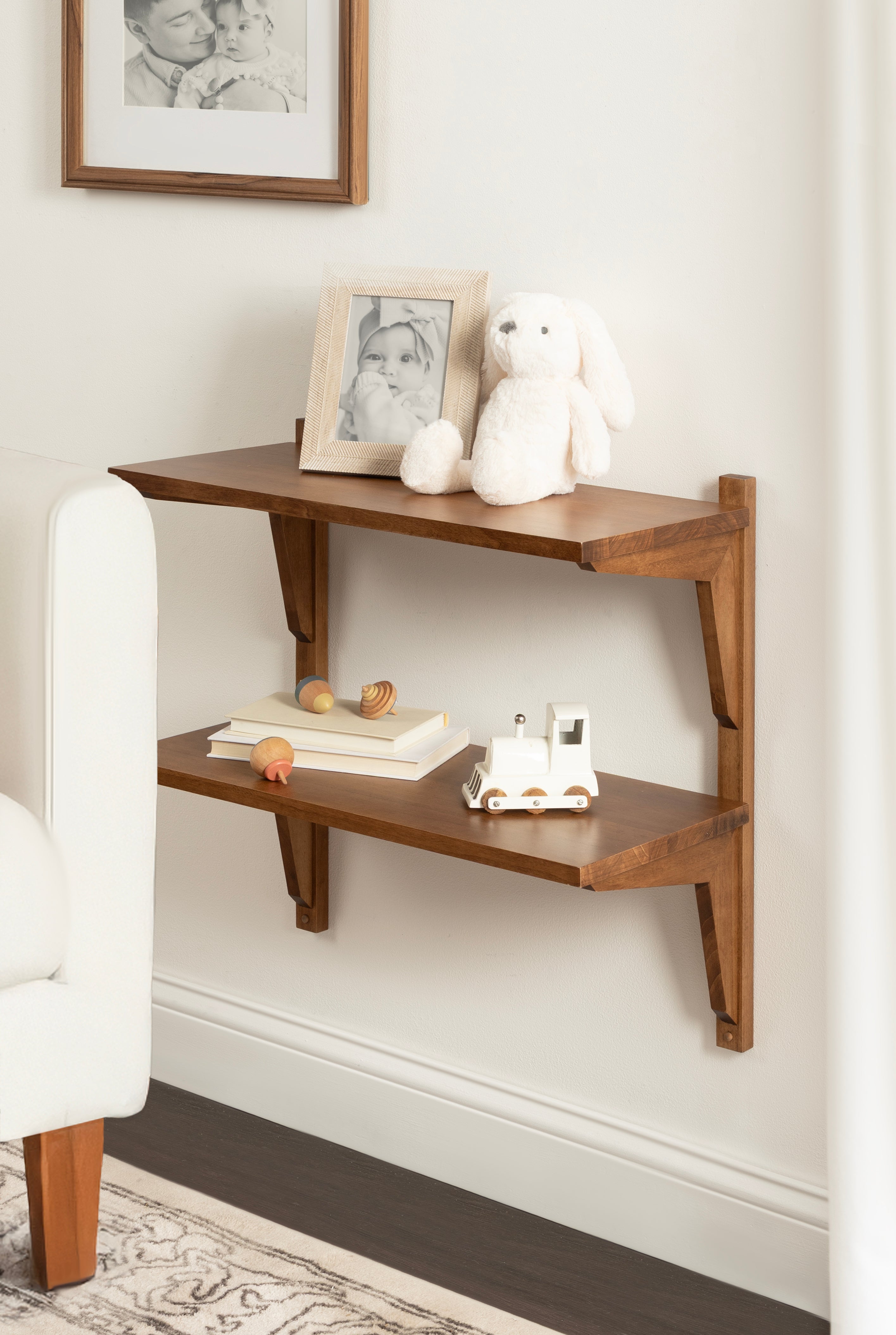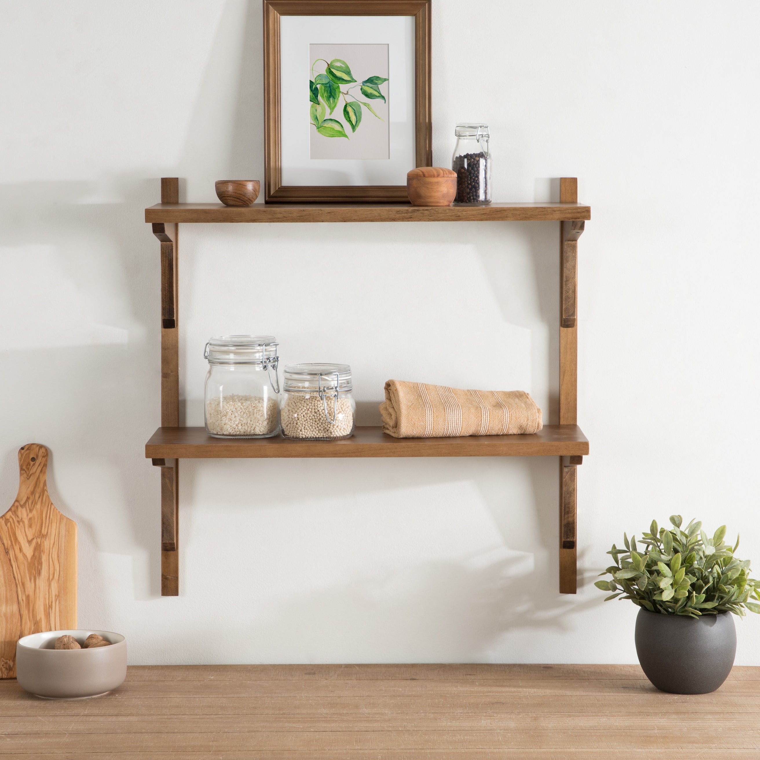 Add classic style to your home with the Meridian shelf. The transitional-yet-modern design features two tiers within brackets, giving you a refined, minimal quality. The sleek finish gives it a transitional look that makes it blend seamlessly into any entryway, living room, dining room, bedroom, bathroom, or kitchen decor. Use it to display your favorite small plants, keepsakes, and photos, or use it as a kitchen spice rack and baking shelf.