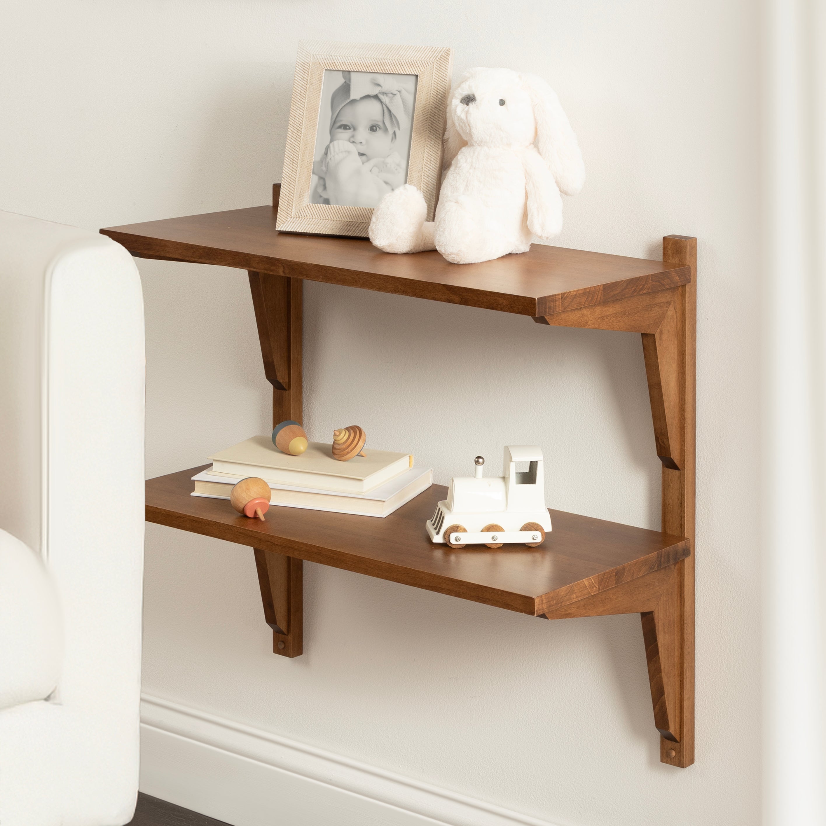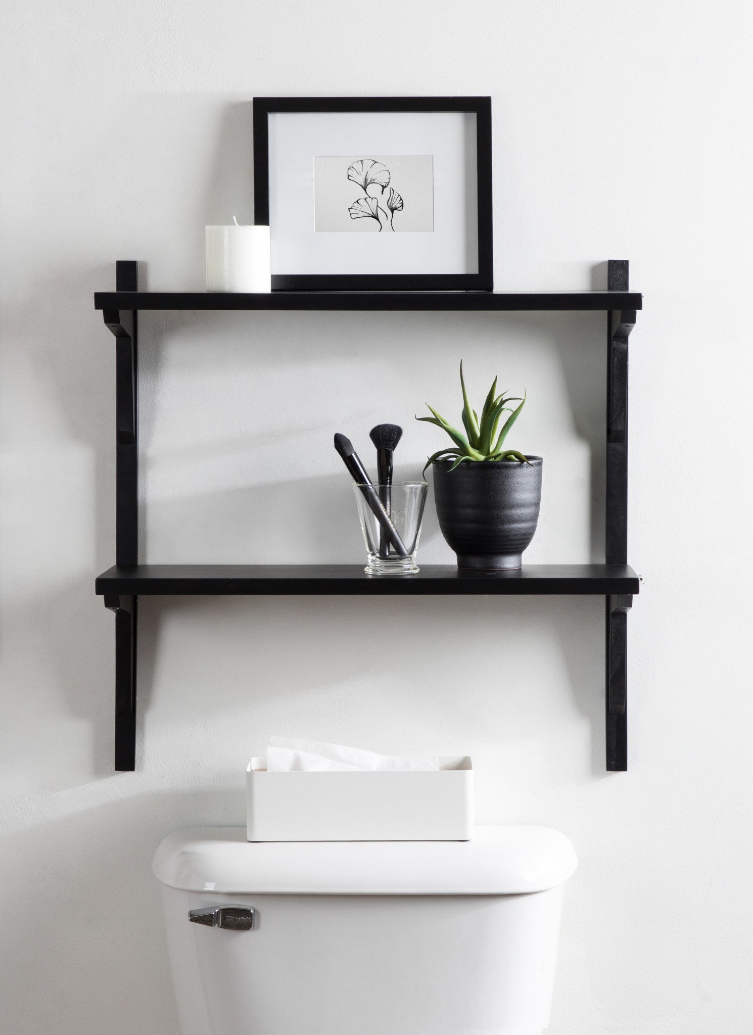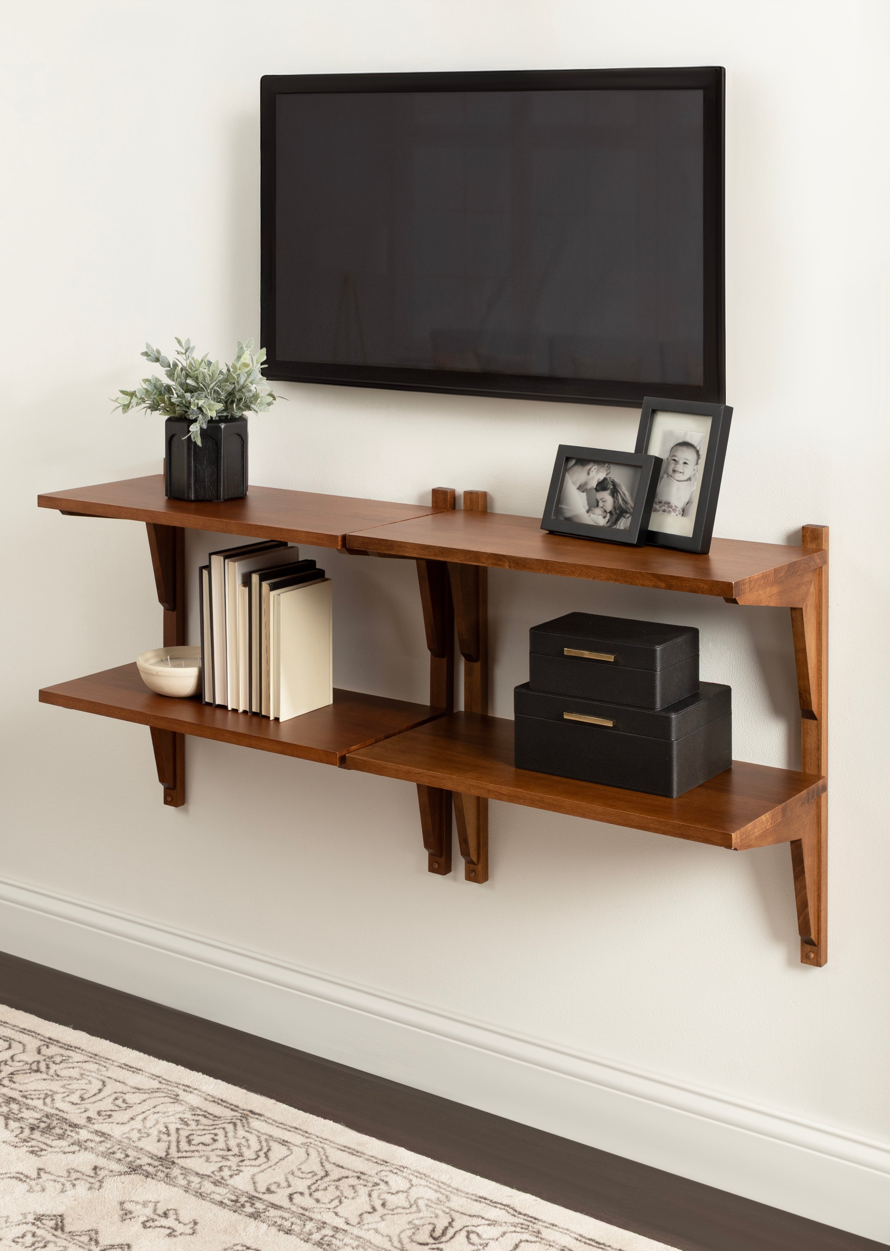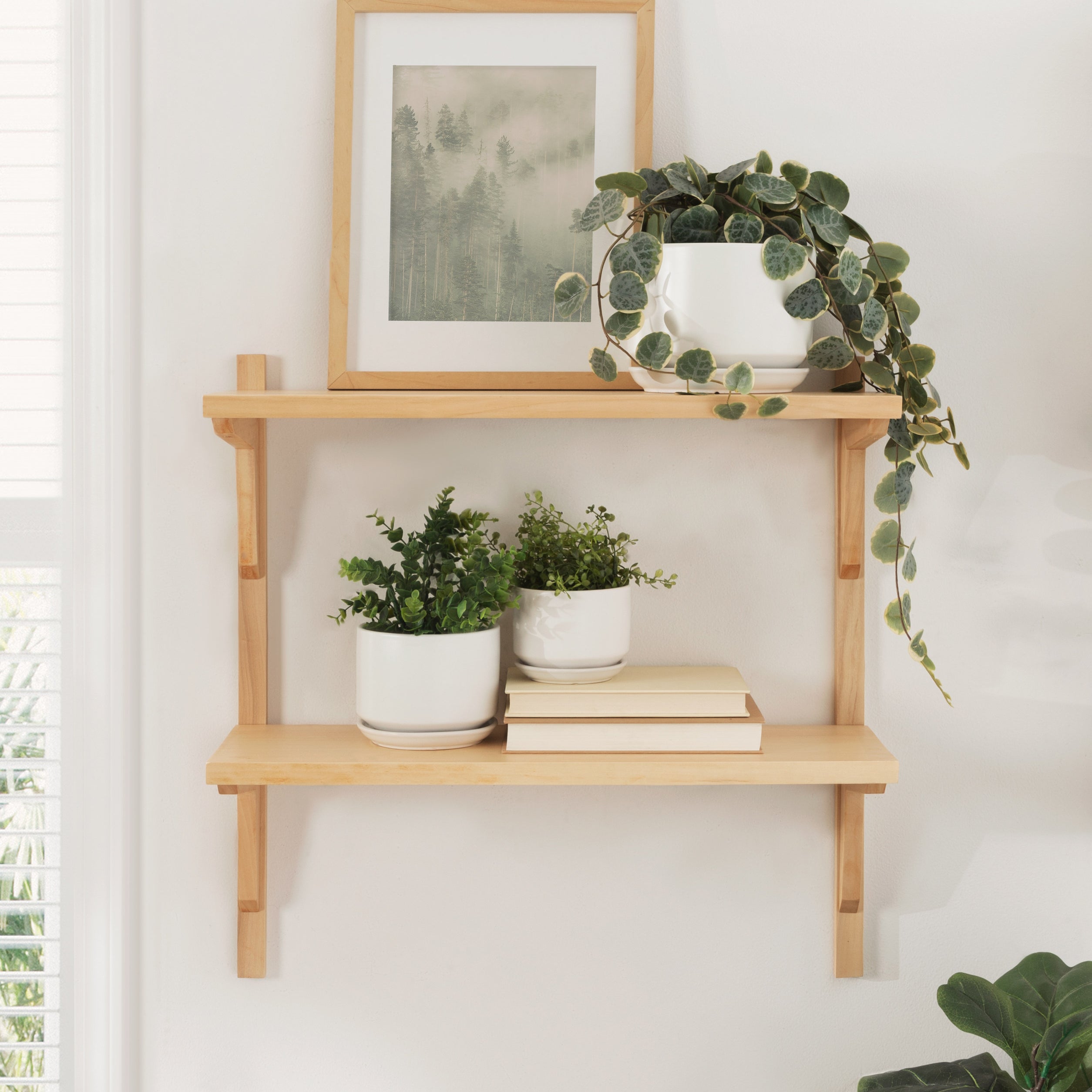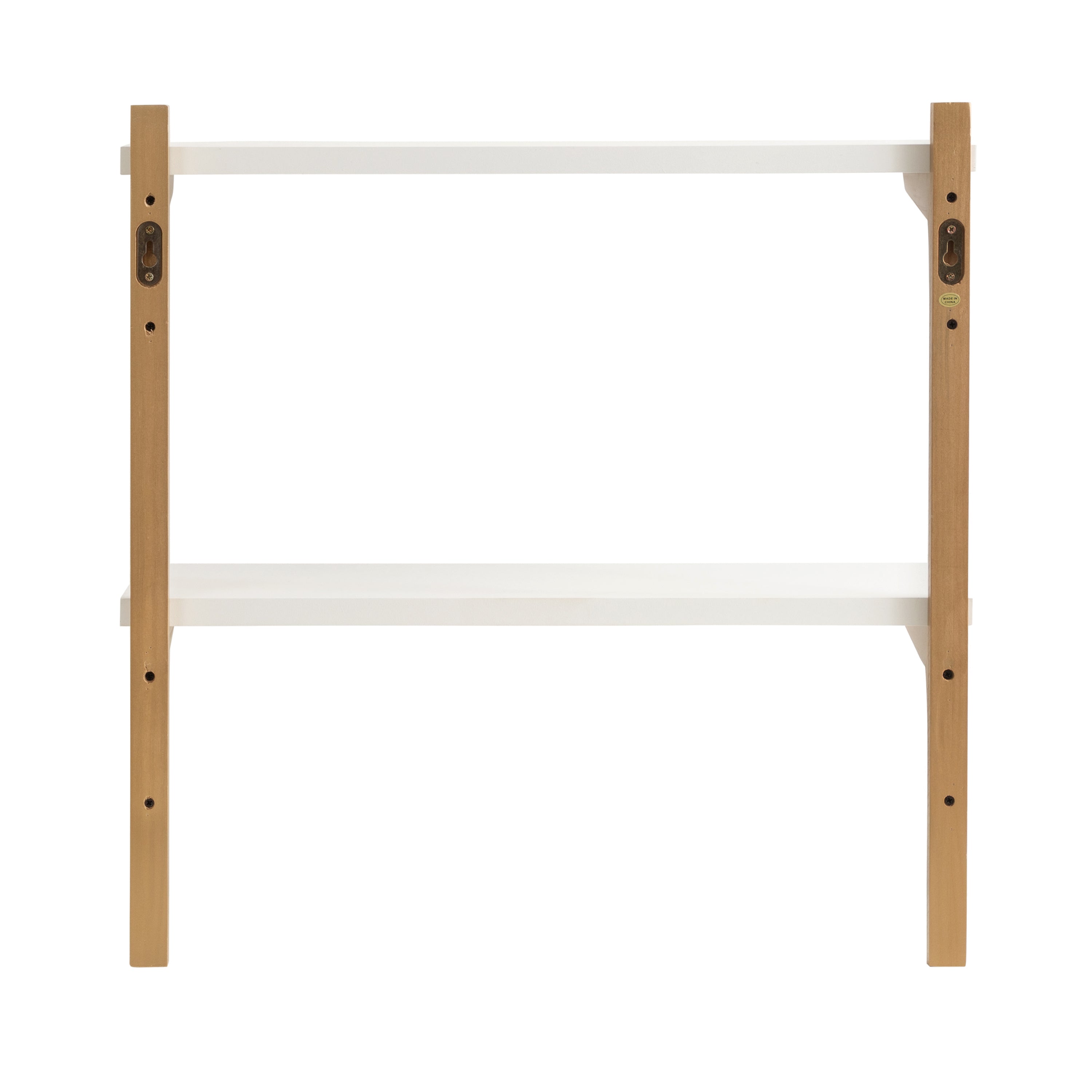 Add classic style to your home with the Meridian shelf. The transitional-yet-modern design features two tiers within brackets, giving you a refined, minimal quality. The sleek finish gives it a transitional look that makes it blend seamlessly into any entryway, living room, dining room, bedroom, bathroom, or kitchen decor. Use it to display your favorite small plants, keepsakes, and photos, or use it as a kitchen spice rack and baking shelf.