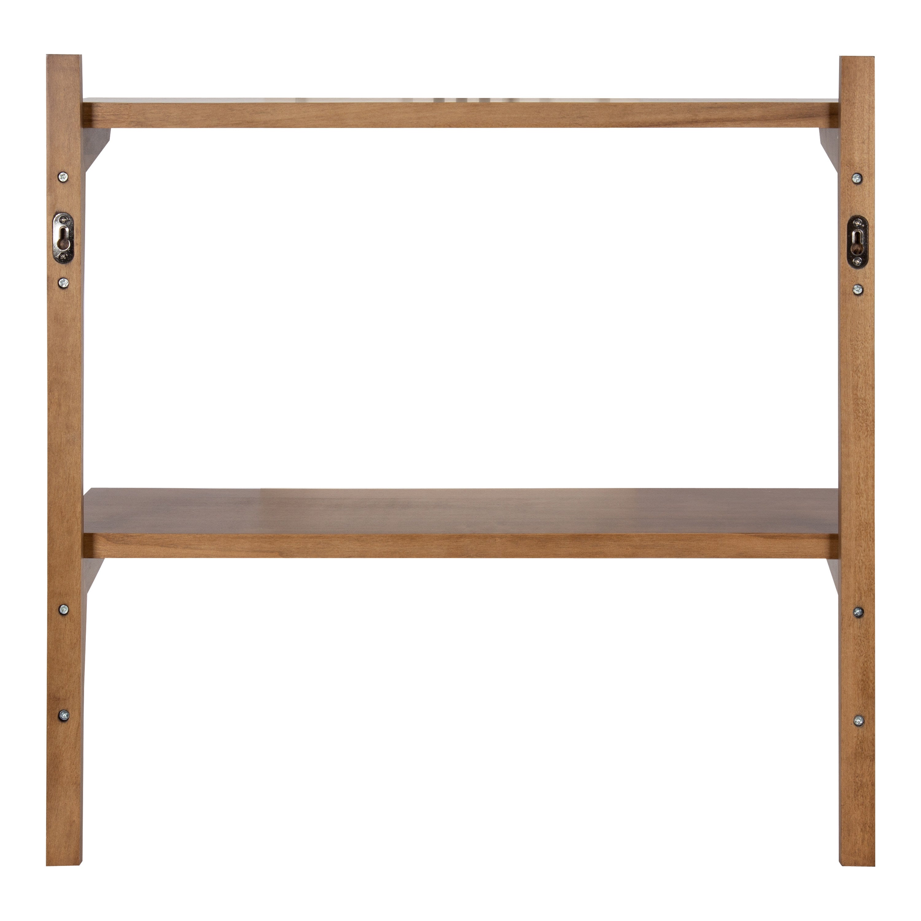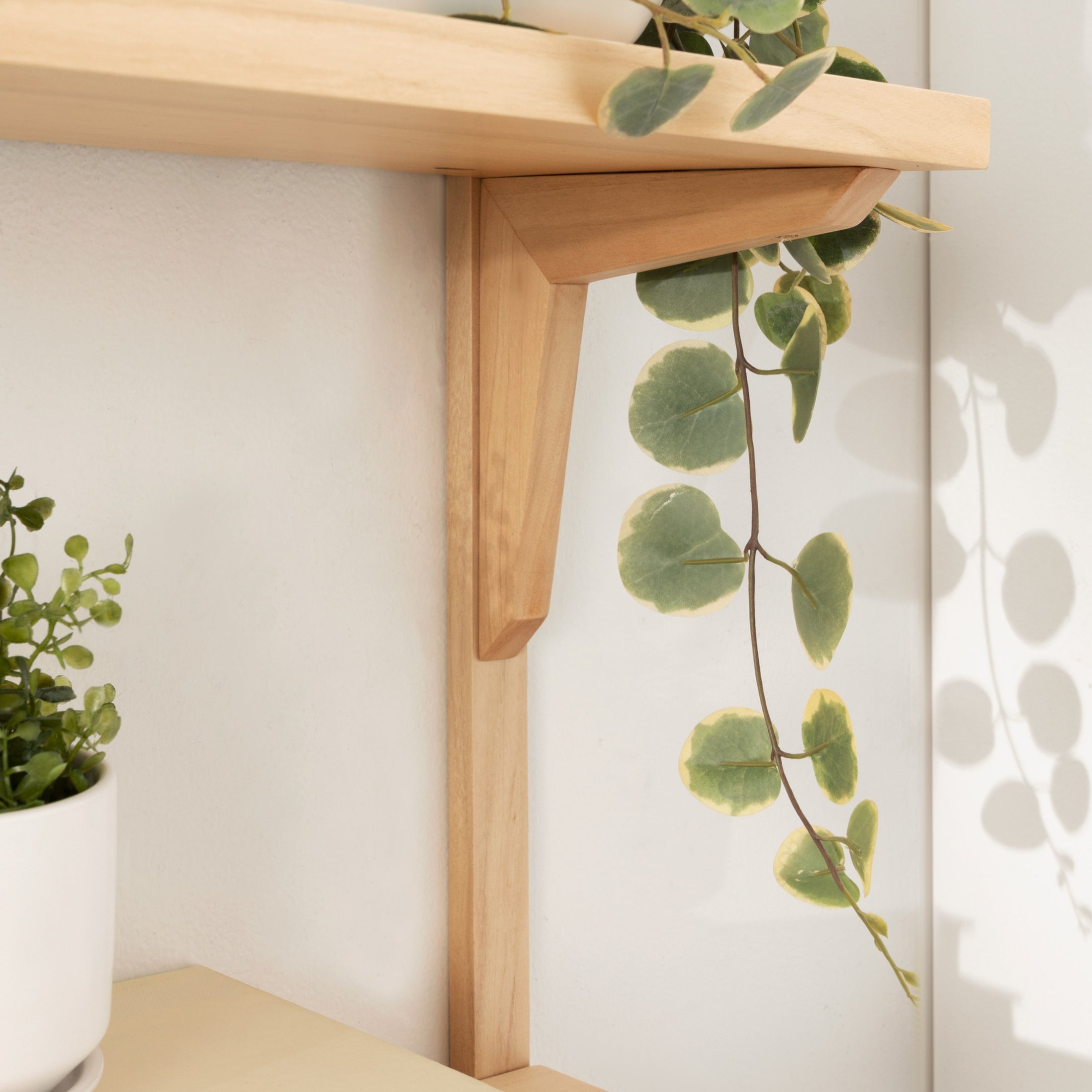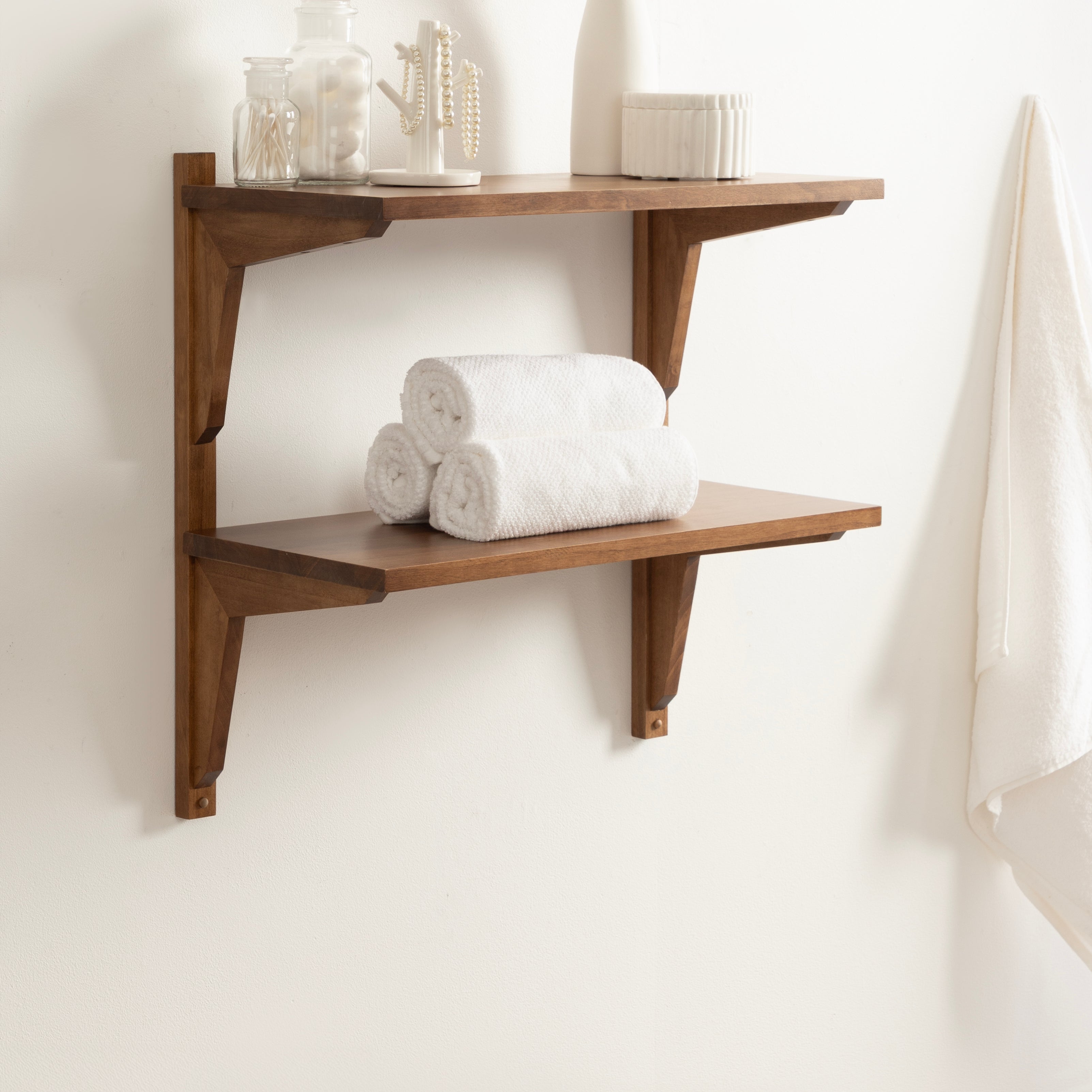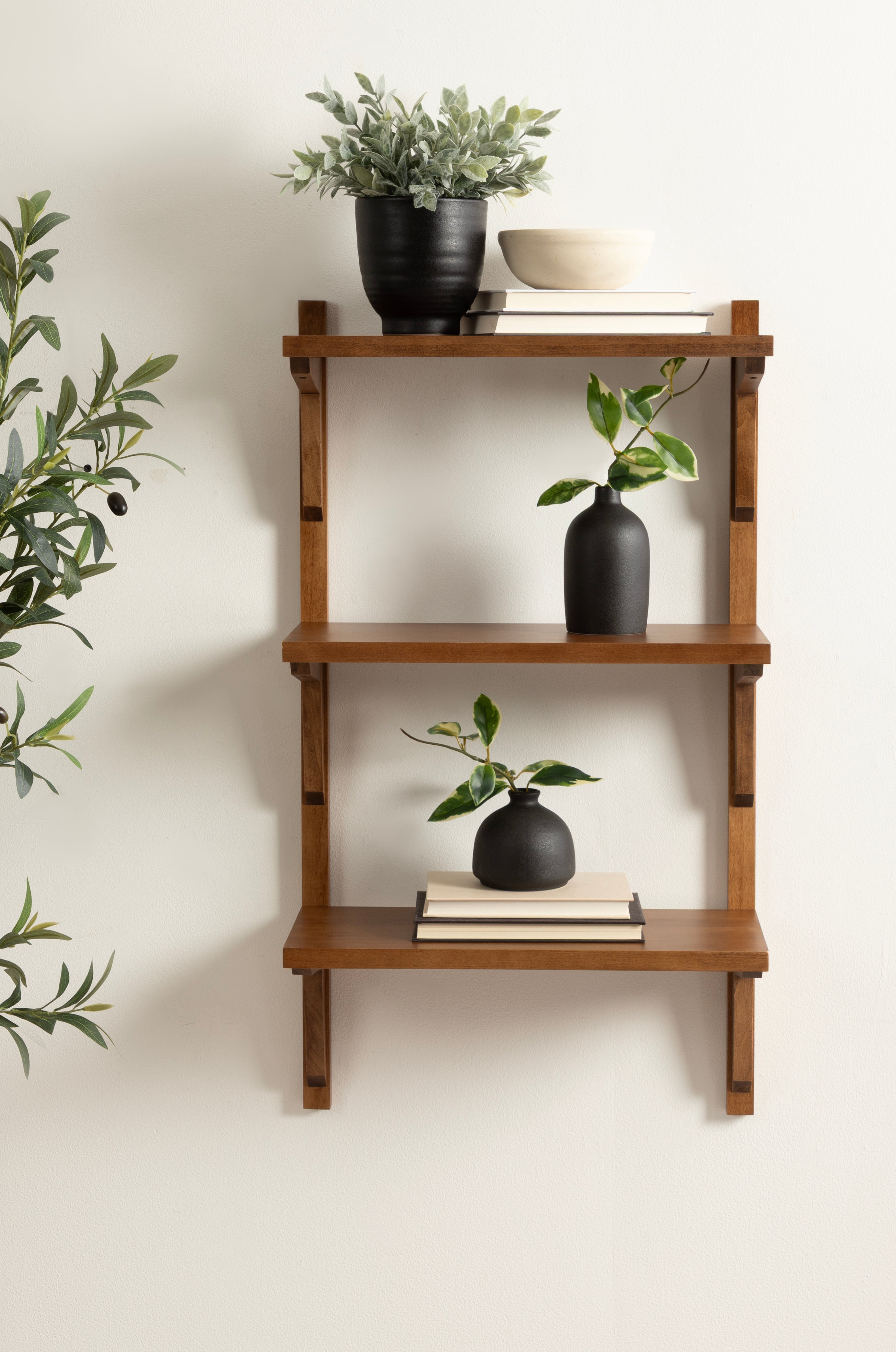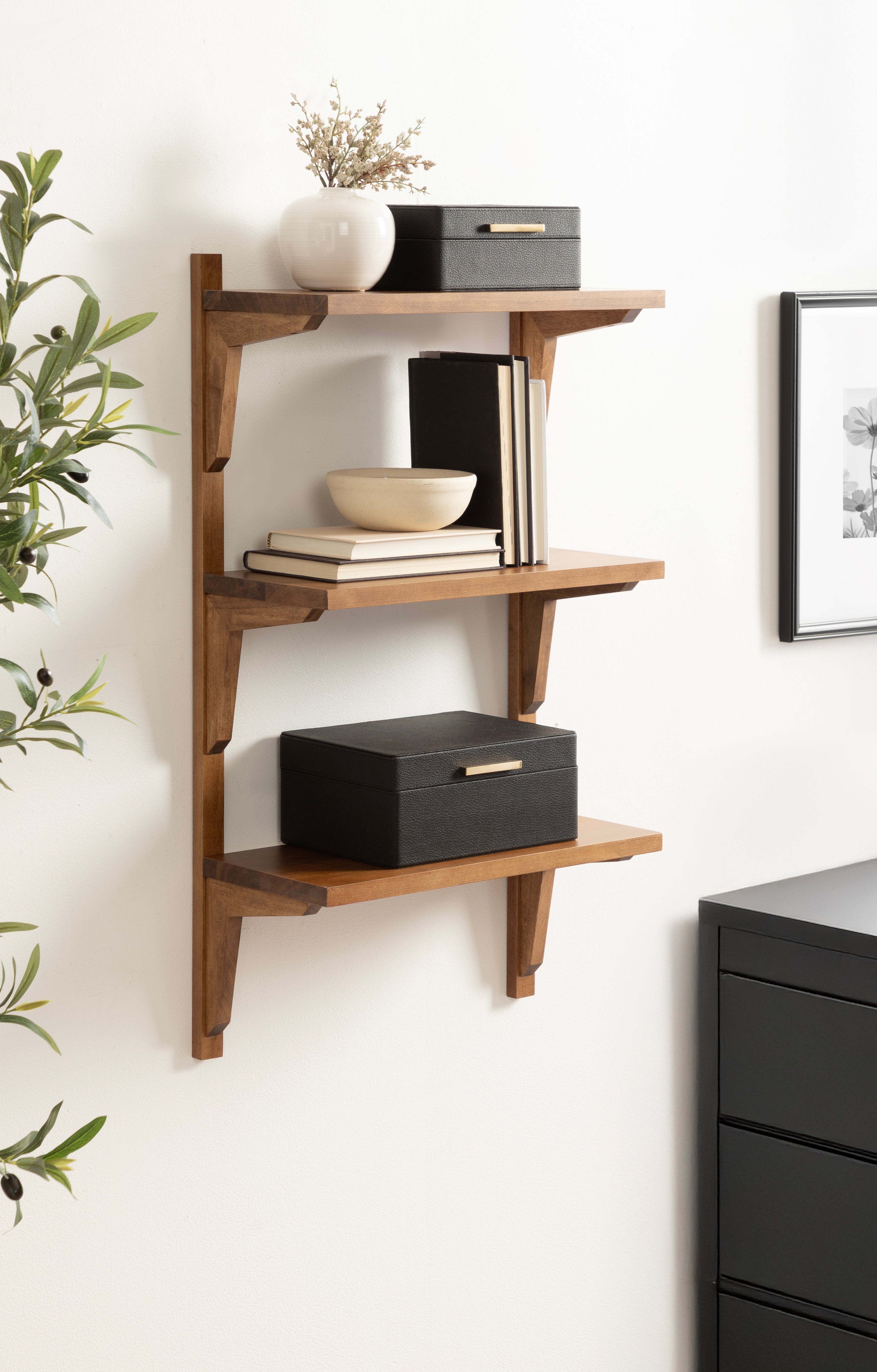 Add classic style to your home with the Meridian shelf. The transitional-yet-modern design features two tiers within brackets, giving you a refined, minimal quality. The sleek finish gives it a transitional look that makes it blend seamlessly into any entryway, living room, dining room, bedroom, bathroom, or kitchen decor. Use it to display your favorite small plants, keepsakes, and photos, or use it as a kitchen spice rack and baking shelf.