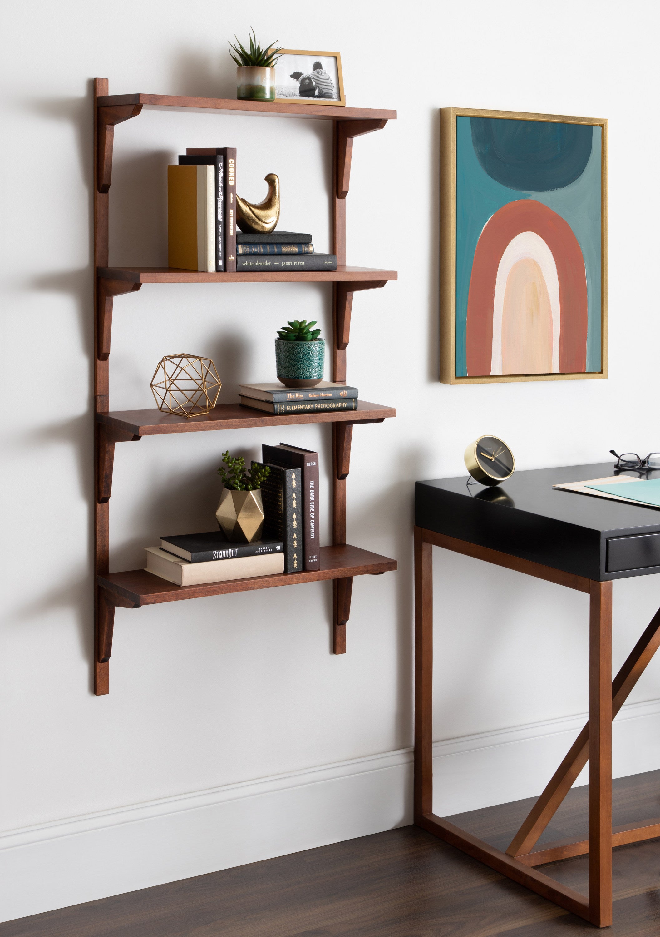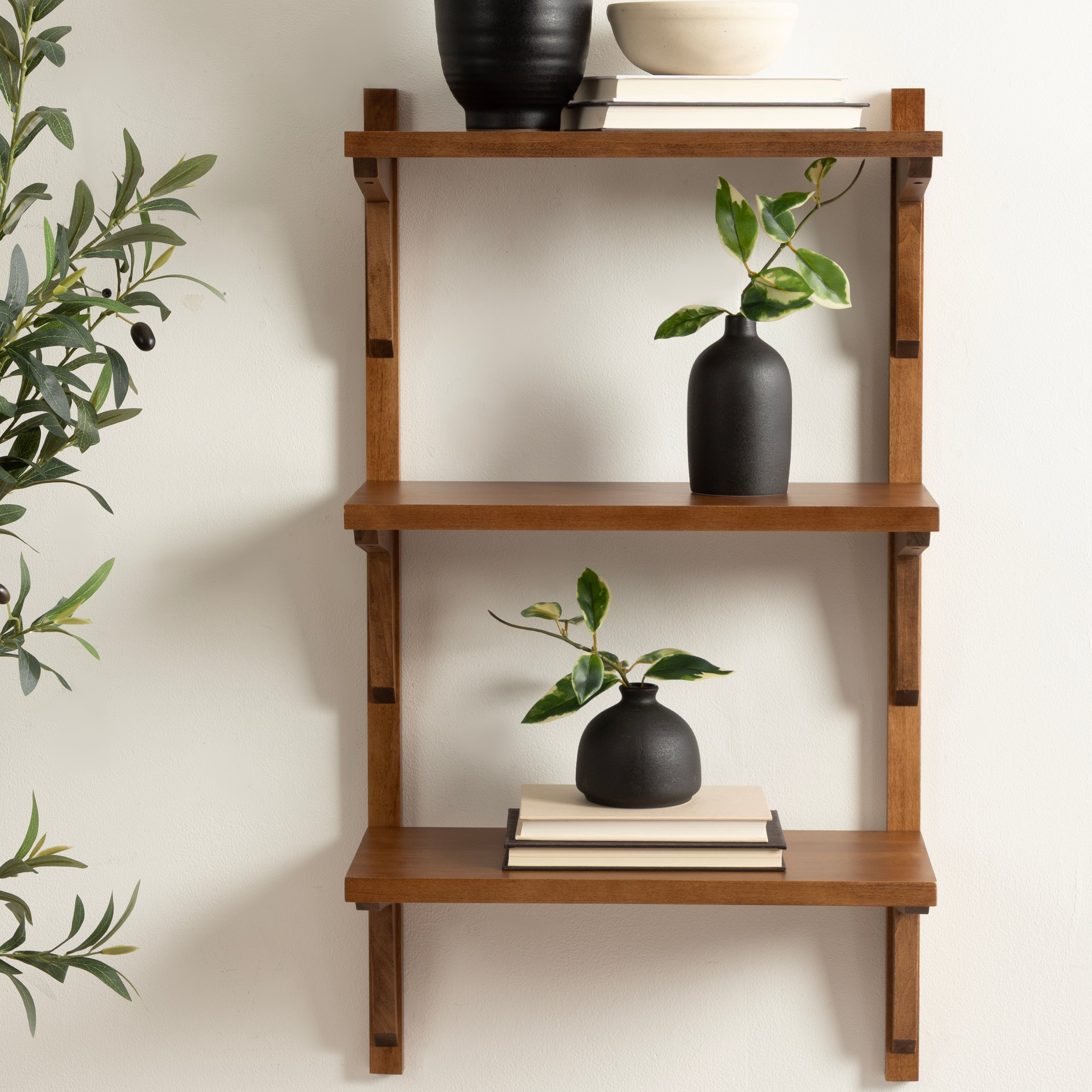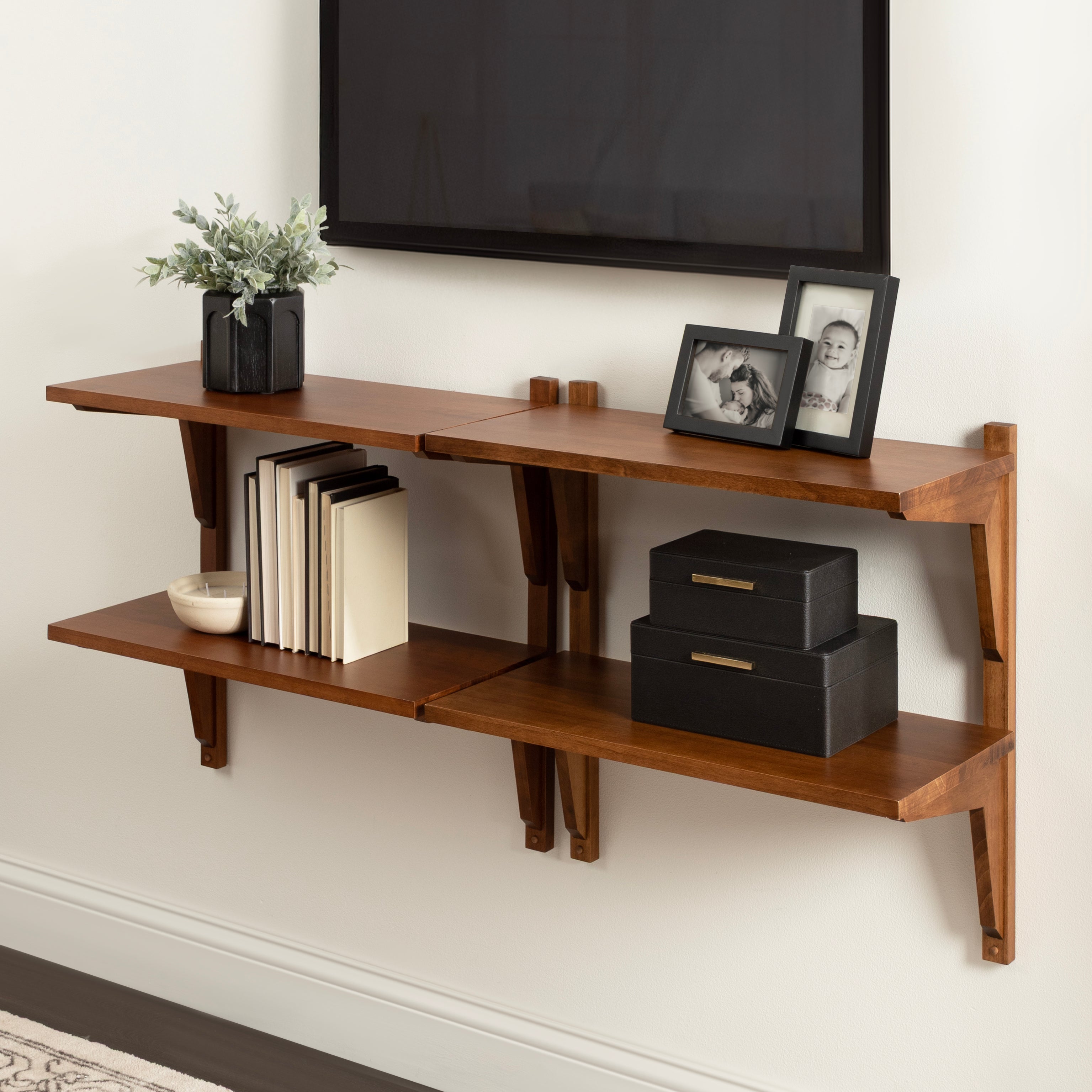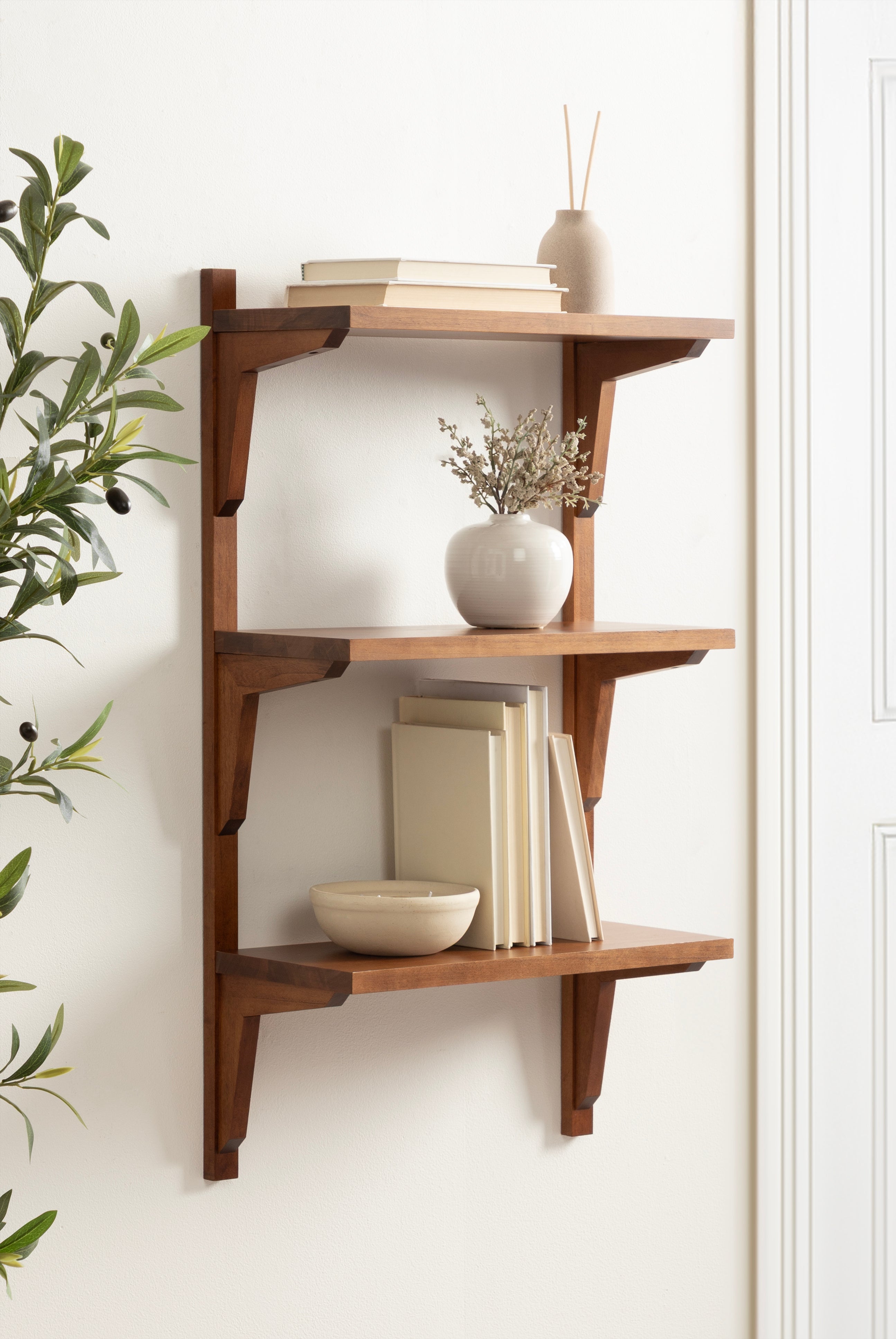 Add classic style to your home with the Meridian shelf. The transitional-yet-modern design features two tiers within brackets, giving you a refined, minimal quality. The sleek finish gives it a transitional look that makes it blend seamlessly into any entryway, living room, dining room, bedroom, bathroom, or kitchen decor. Use it to display your favorite small plants, keepsakes, and photos, or use it as a kitchen spice rack and baking shelf.