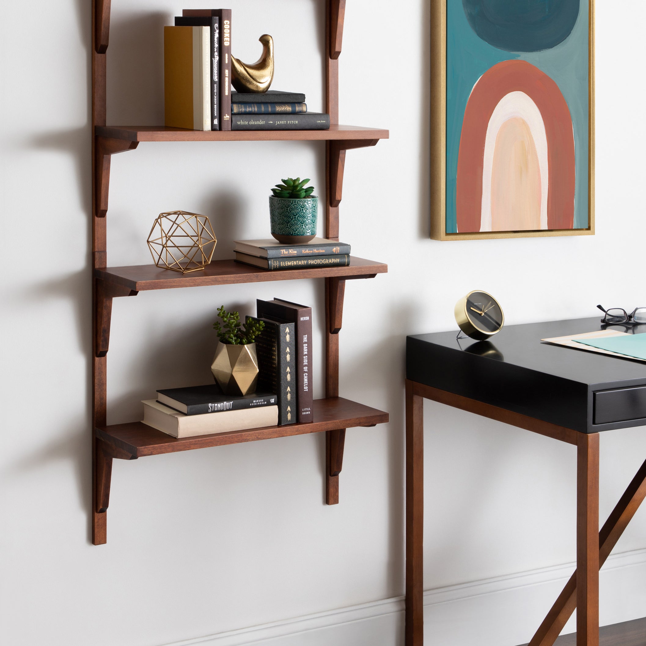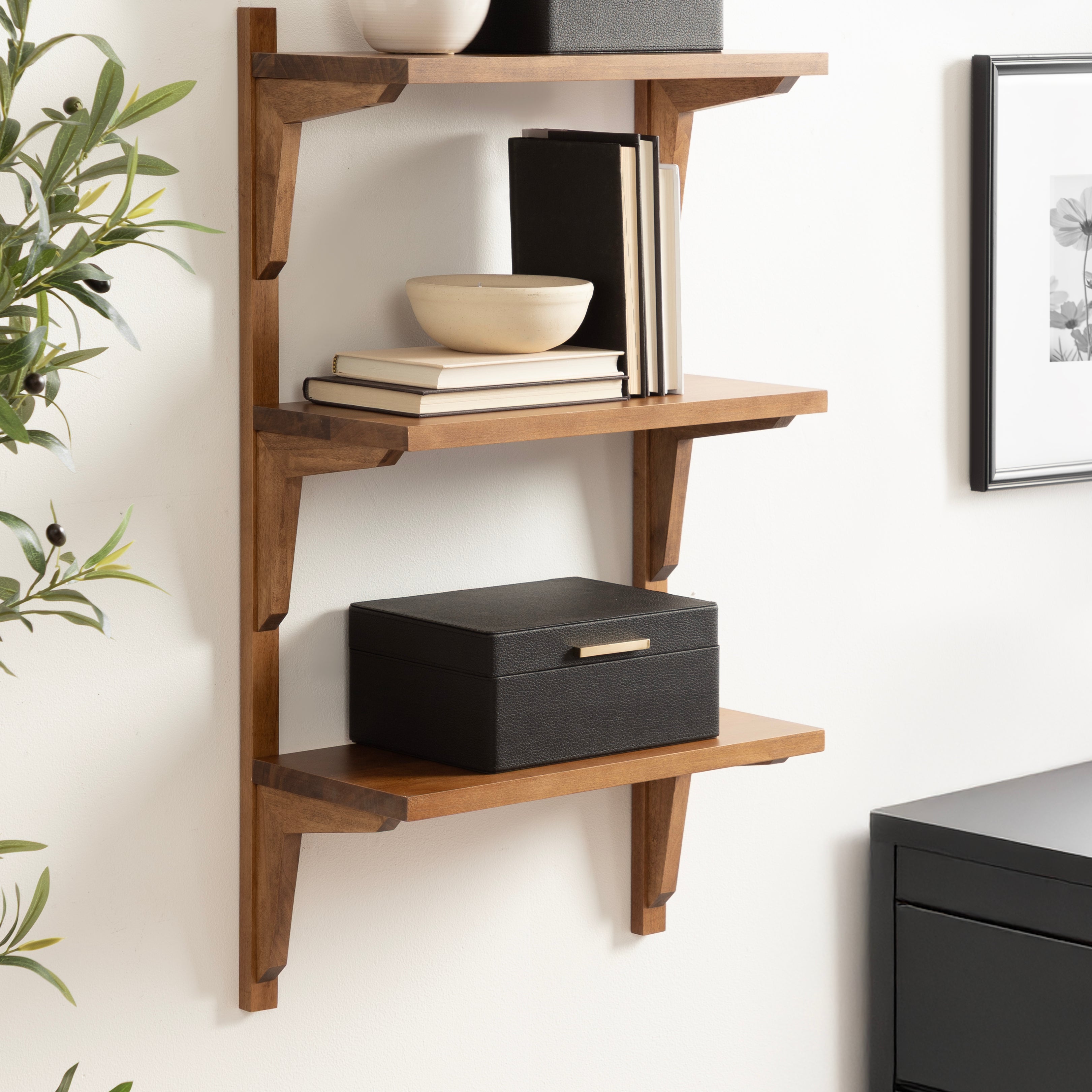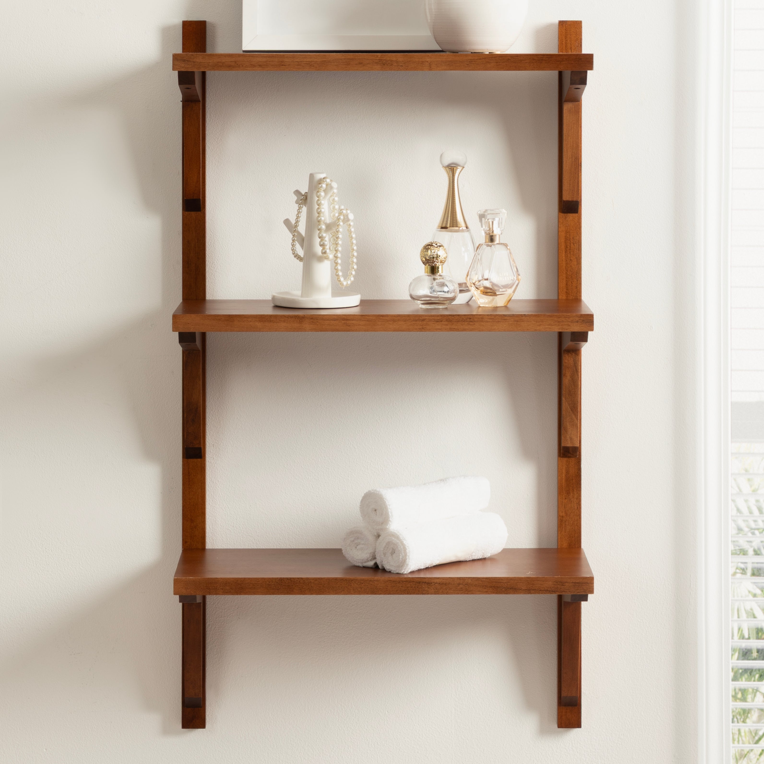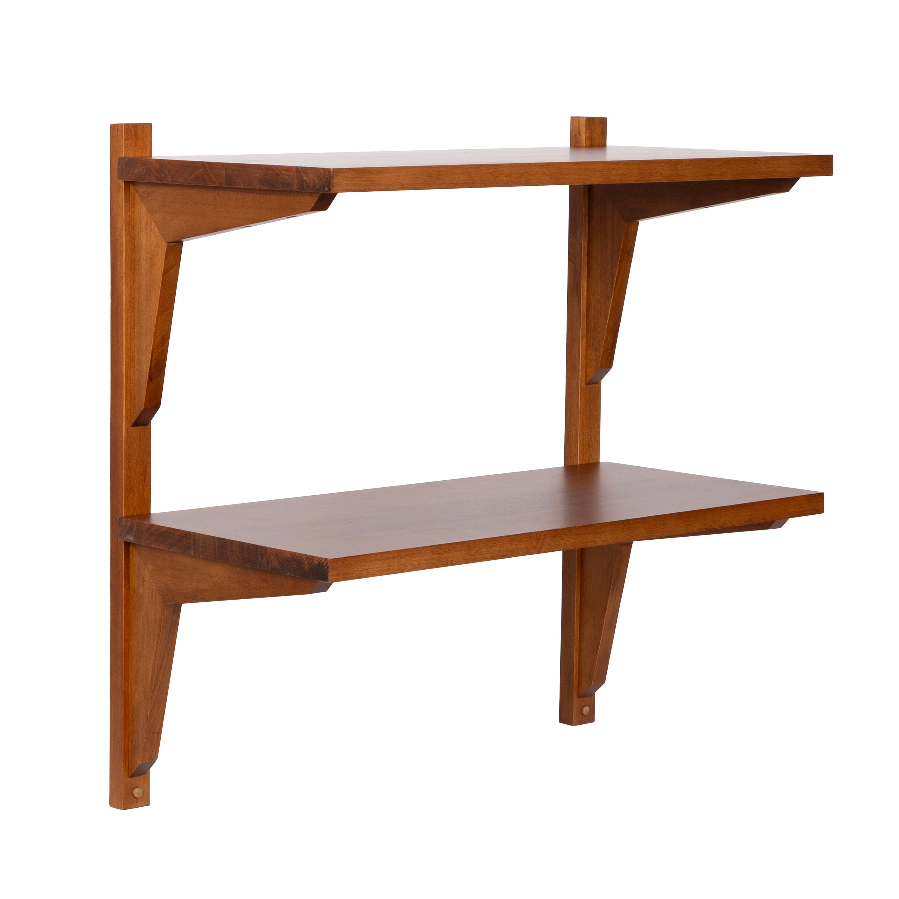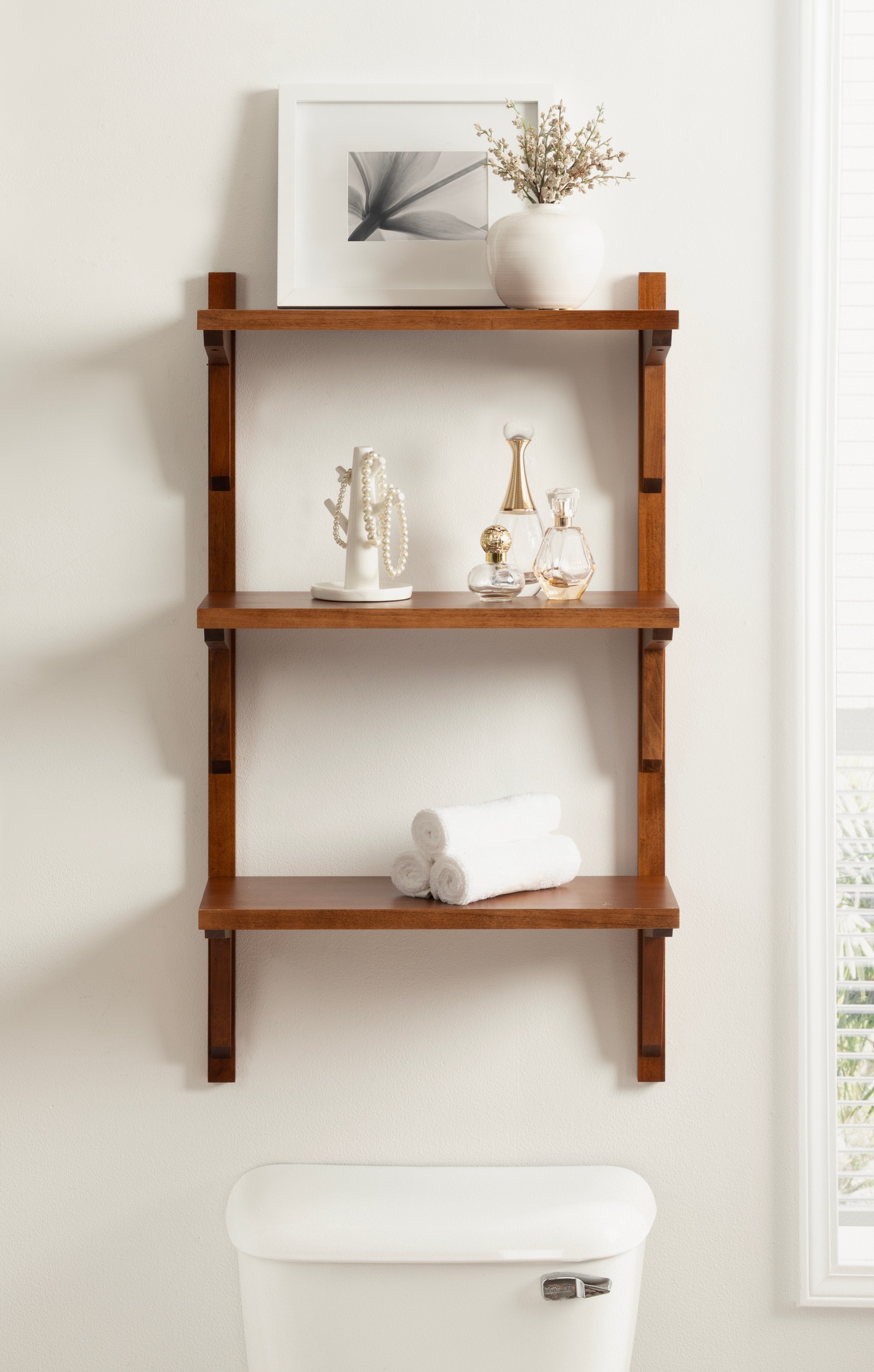 Add classic style to your home with the Meridian shelf. The transitional-yet-modern design features two tiers within brackets, giving you a refined, minimal quality. The sleek finish gives it a transitional look that makes it blend seamlessly into any entryway, living room, dining room, bedroom, bathroom, or kitchen decor. Use it to display your favorite small plants, keepsakes, and photos, or use it as a kitchen spice rack and baking shelf.