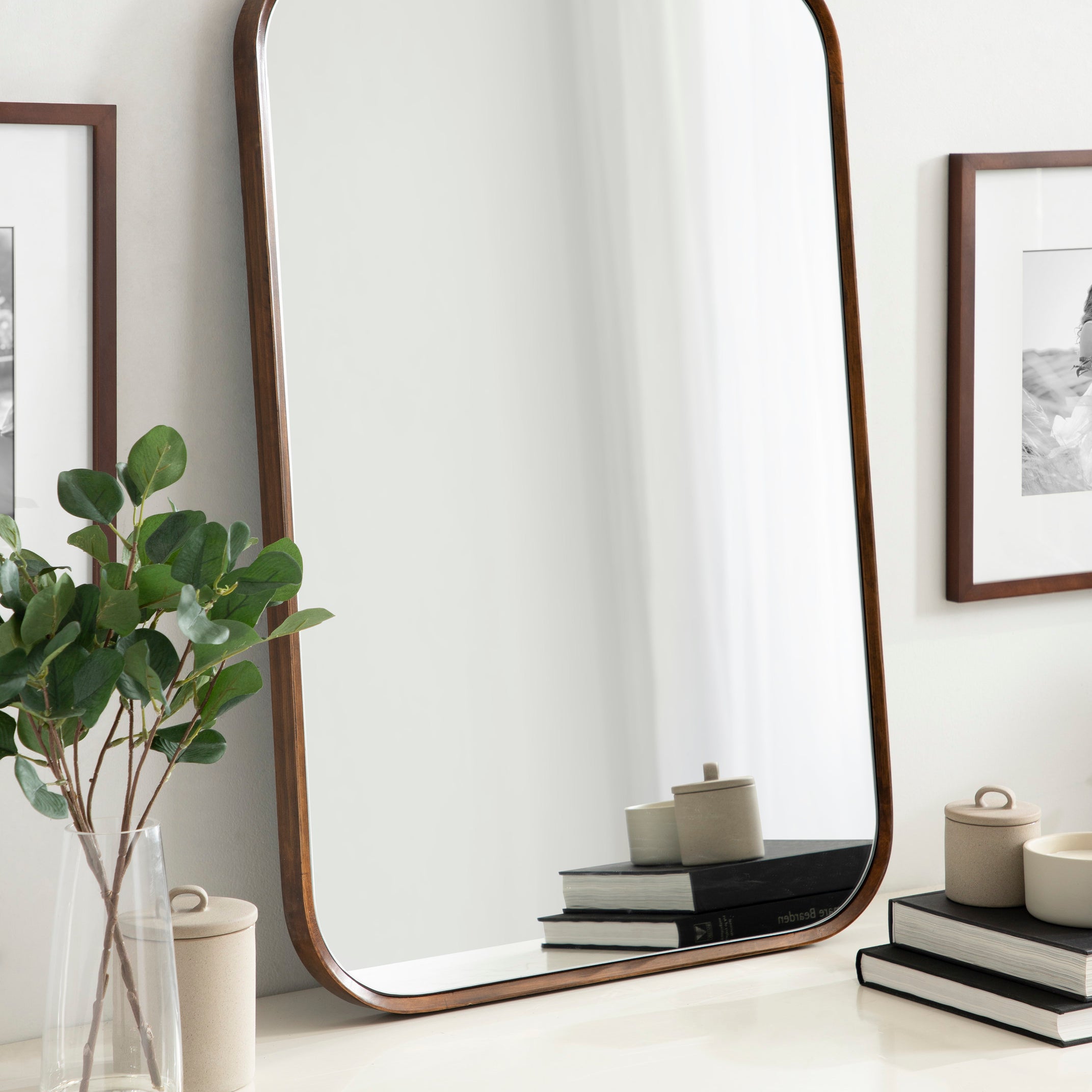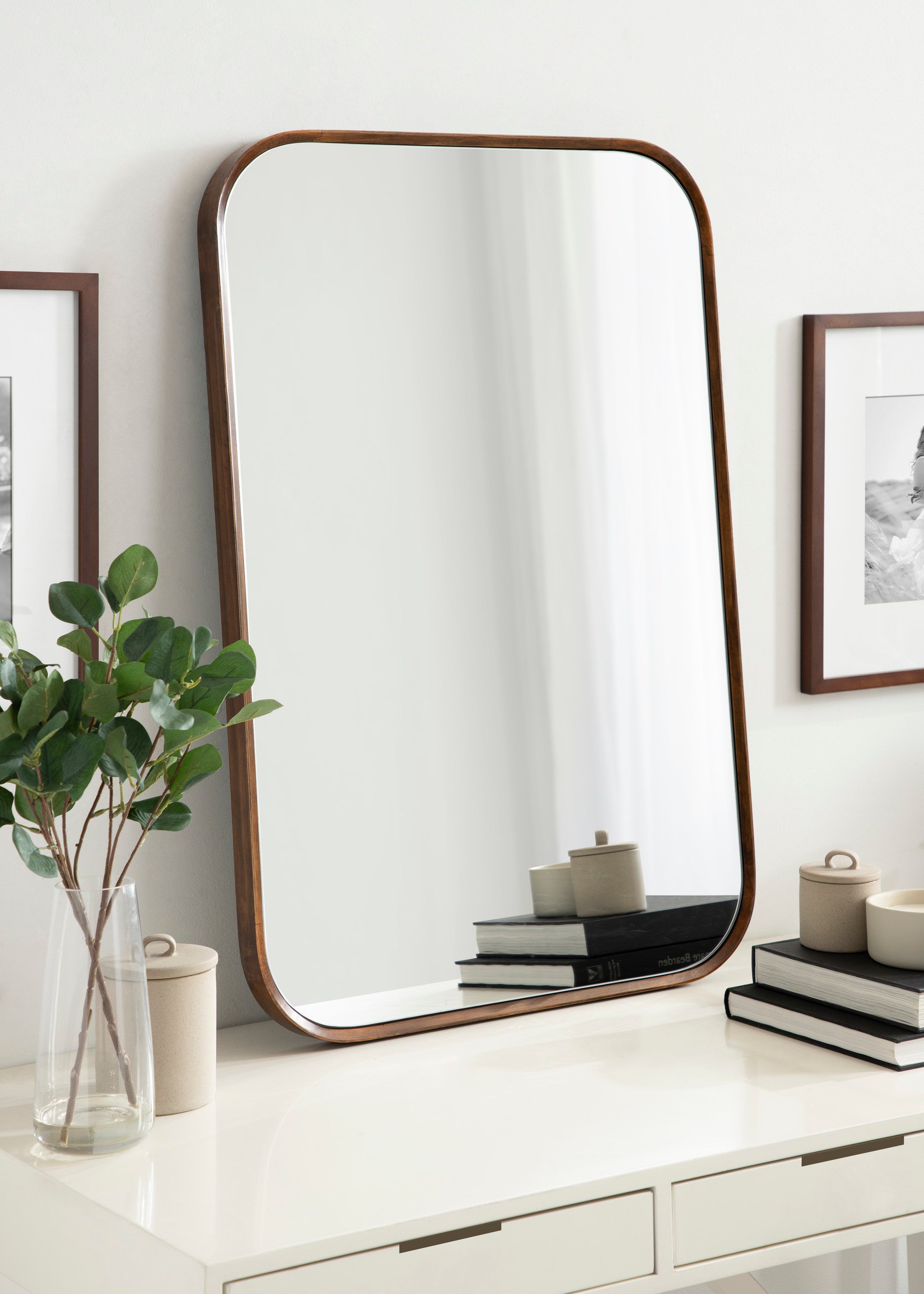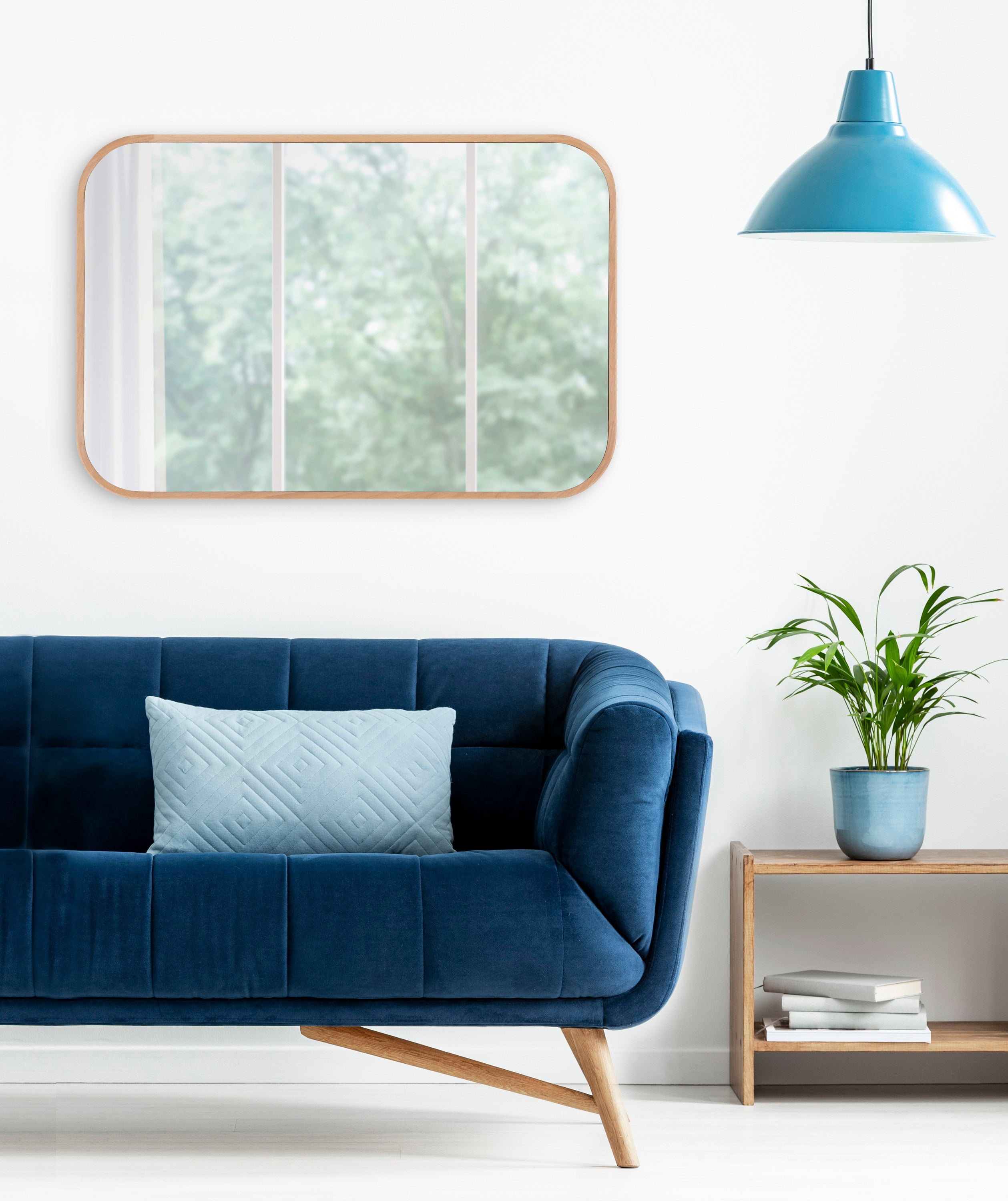 The Scandinavian simplicity of this beautiful wall mirror accentuates your home decor with a minimalist edge. The Nordlund wall mirror offers a large surface area, spreading more light throughout your room and bringing in more dimension. As a softer, rounded rectangle mirror, it's easy to imagine in any modern living room, kitchen, bedroom, entryway, office, or dining room. Its metal D-ring hangers make it easy to hang both vertically and horizontally for multiple display opportunities.