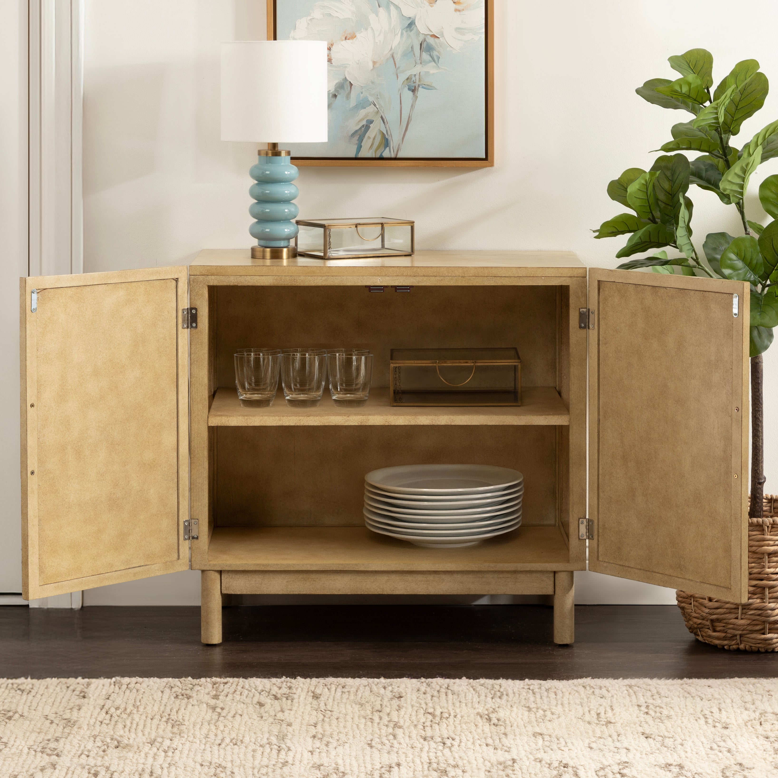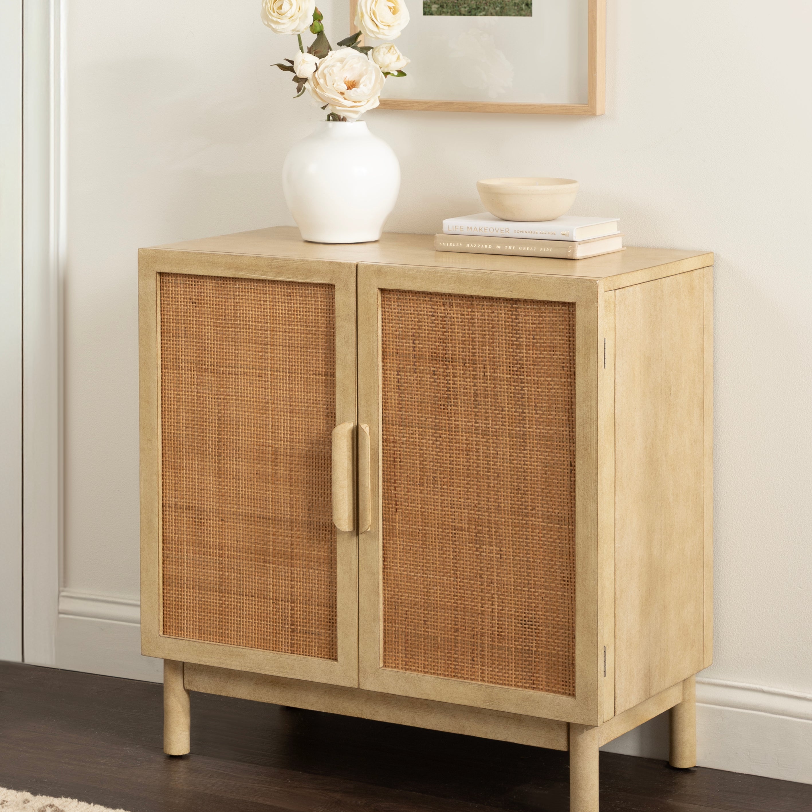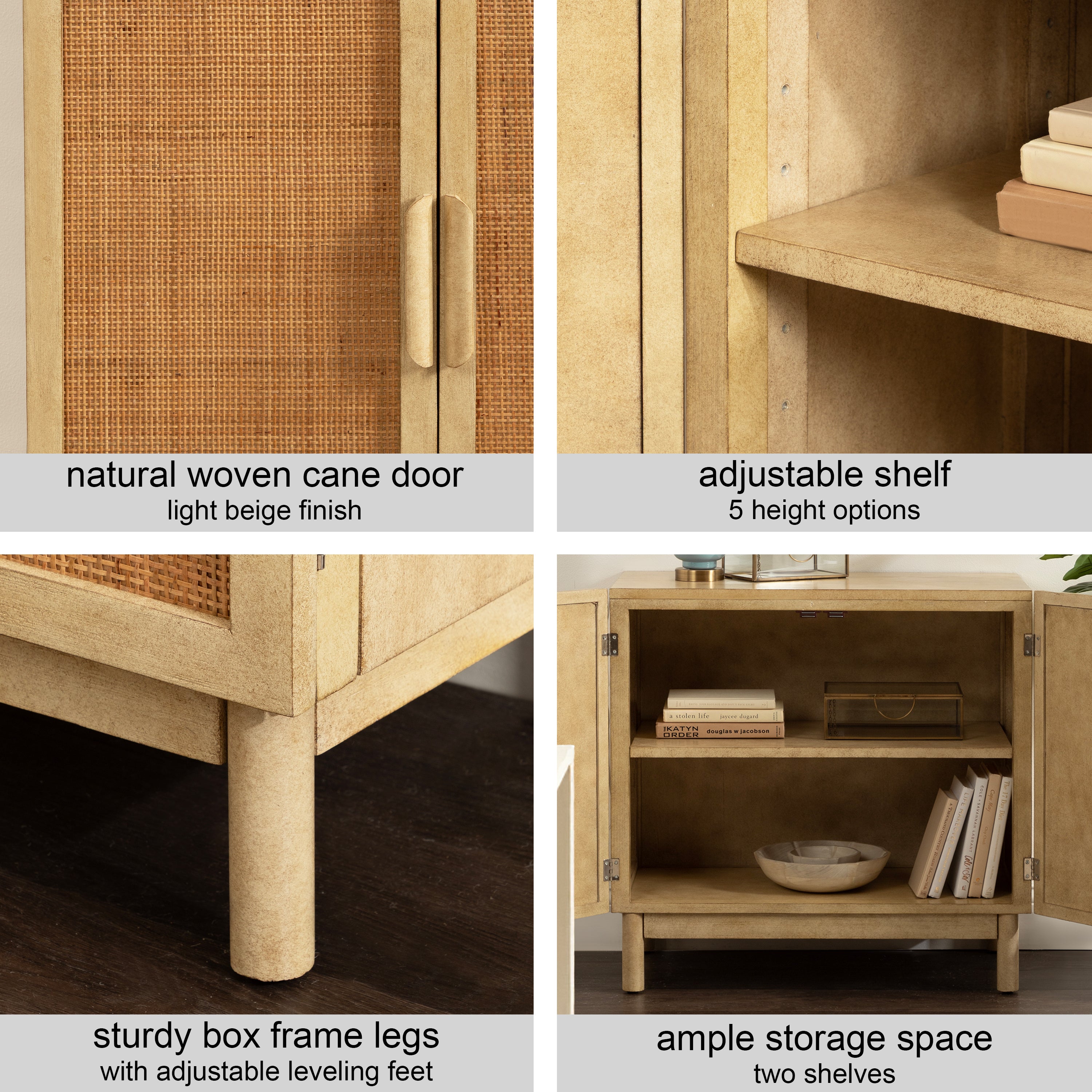 Elevate your home with the Kate and Laurel Ori rattan storage cabinet, a statement piece that blends timeless craftsmanship with versatile functionality. This boho cabinet is expertly constructed from a careful blend of sturdy wooden material, solid wood, and natural rattan, offering natural durability and a warm, organic texture that enhances any space. Use it as a TV stand, sideboard buffet, or bar storage cabinet—the adjustable interior shelf provides flexible organization for media components, serveware, or bar essentials. Whether styled beneath a wall-mounted television, used to anchor a dining area, or serving as a refined storage buffet, this versatile console delivers beauty and practicality in one. Use the included instructions to assemble this accent cabinet simply and securely.