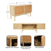 Elevate your home with the Kate and Laurel Ori low media cabinet, a statement piece that blends timeless craftsmanship with versatile functionality. The cabinet is crafted from wood veneer, resilient wooden material, and rattan facing. Designed with a transitional aesthetic, the Ori cabinet complements both modern and classic interiors. Use it as a TV stand, sideboard buffet, or bar storage cabinet—the adjustable interior shelf provides flexible organization for media components, serveware, or bar essentials. Whether styled beneath a wall-mounted television, used to anchor a dining area, or serving as a refined storage buffet, this versatile console delivers beauty and practicality in one. Use the included instructions to assemble this accent cabinet simply and securely.