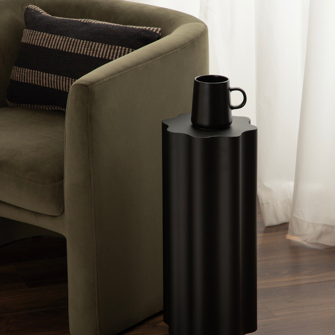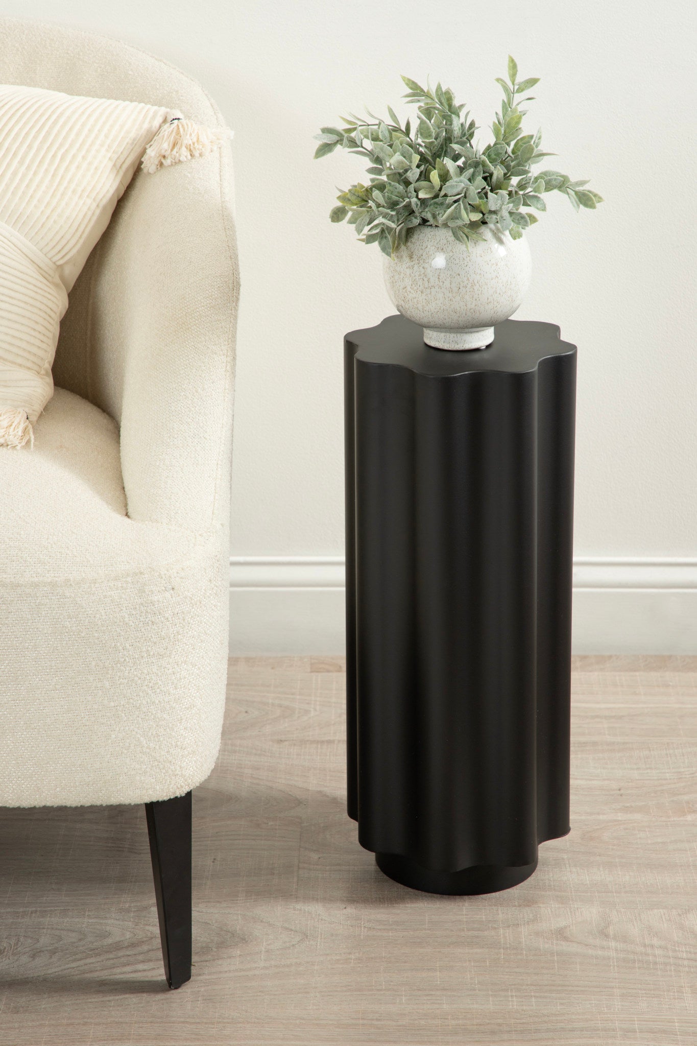 Add a charming accent to your home with this Pandey wavy drink table. Between its solid metal construction and unique "ribbed" design, this mini table serves as the most delightful display accent. Crafted from resilient iron, this table features a charming scalloped shape that adds fun dimension to your decor. The optimal accent table for your living room, bedroom, or home office area. The small tabletop gives your space a quaint spot for a couple of drinks or small plants without claiming too much real estate on your floor. This small table comes fully assembled, so you're able to integrate it into your home decor right out of the packaging.