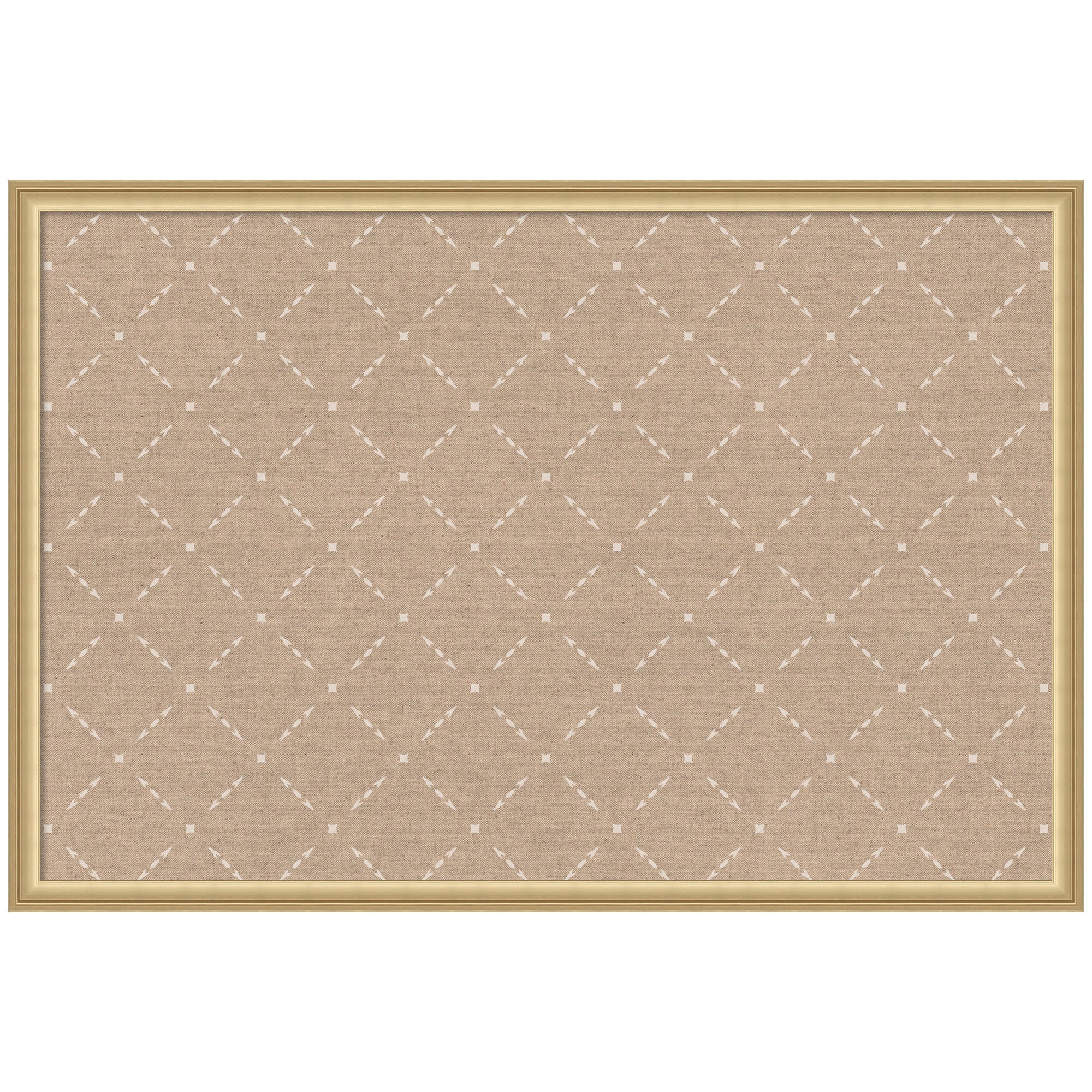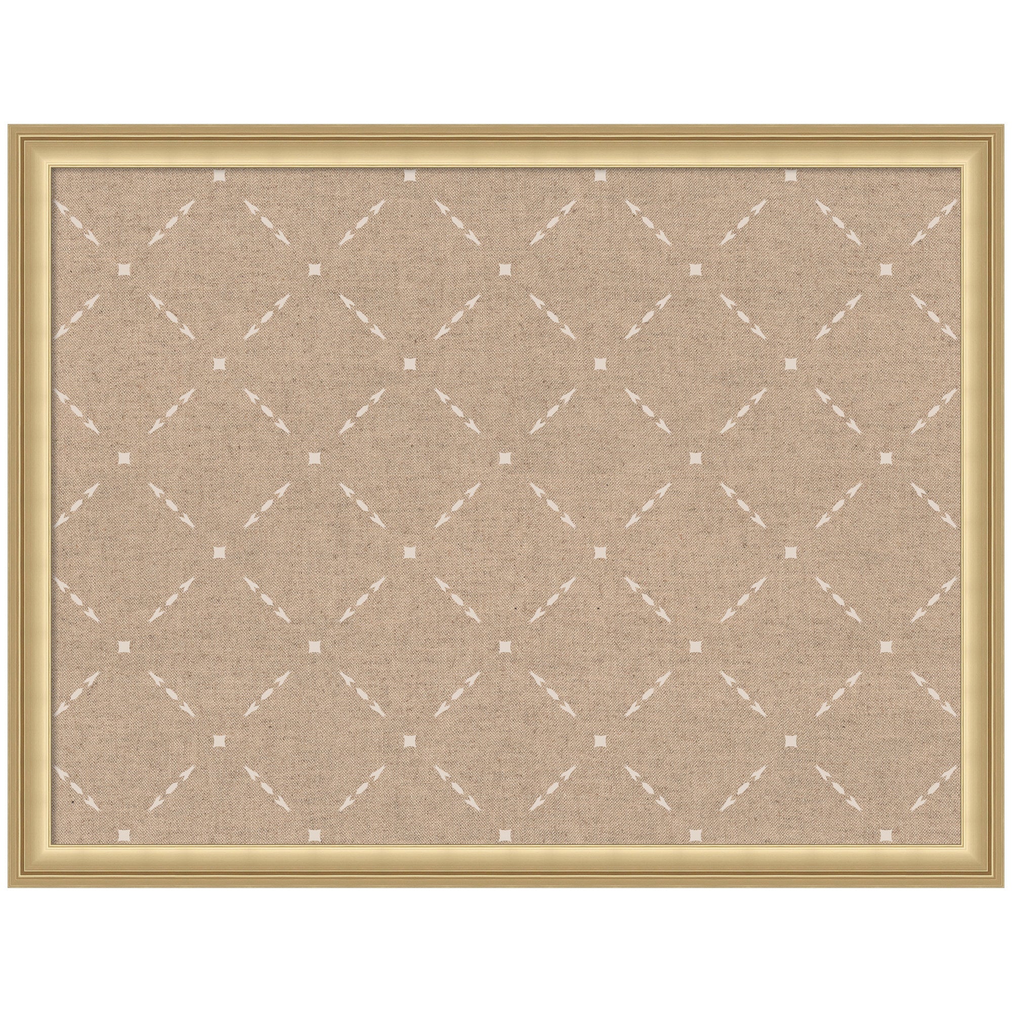 Organize your home in style with a fabric pinboard that has a sophisticated appeal. The neutral linen textile pattern accented with a beige lattice print is inspired by the belief that organization doesn't have to be boring. The decorative pinboard has a lightweight construction with a high-quality, fabric pinning surface that allows pin to push fully in to showcase all your meaningful keepsakes. Use this functional, designer pinboard for hanging photos, wedding invitations, holiday cards, or even stellar report cards. As an stylish accent, the beautiful framed bulletin board looks excellent in any entryway, living room, bedroom, mudroom, or kitchen