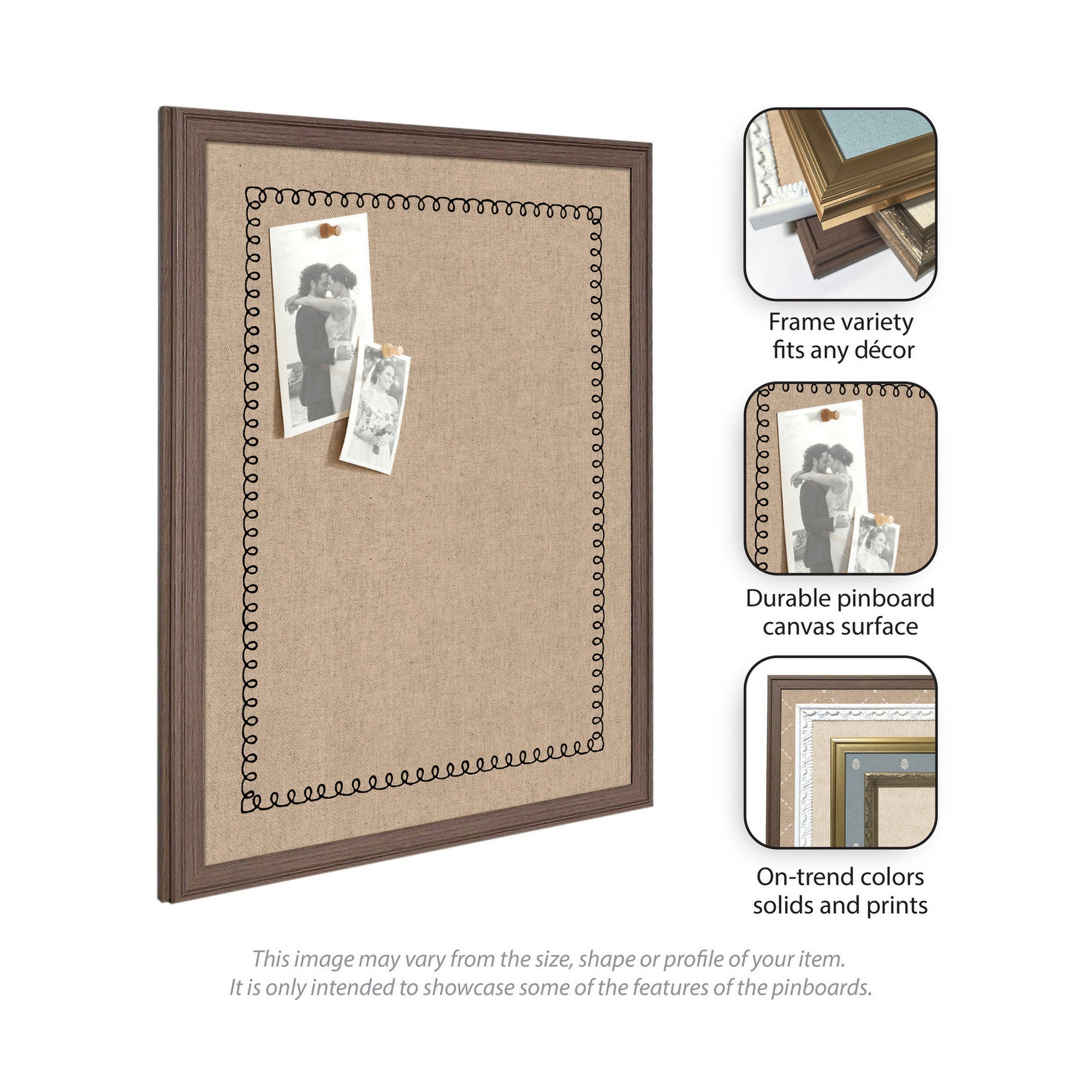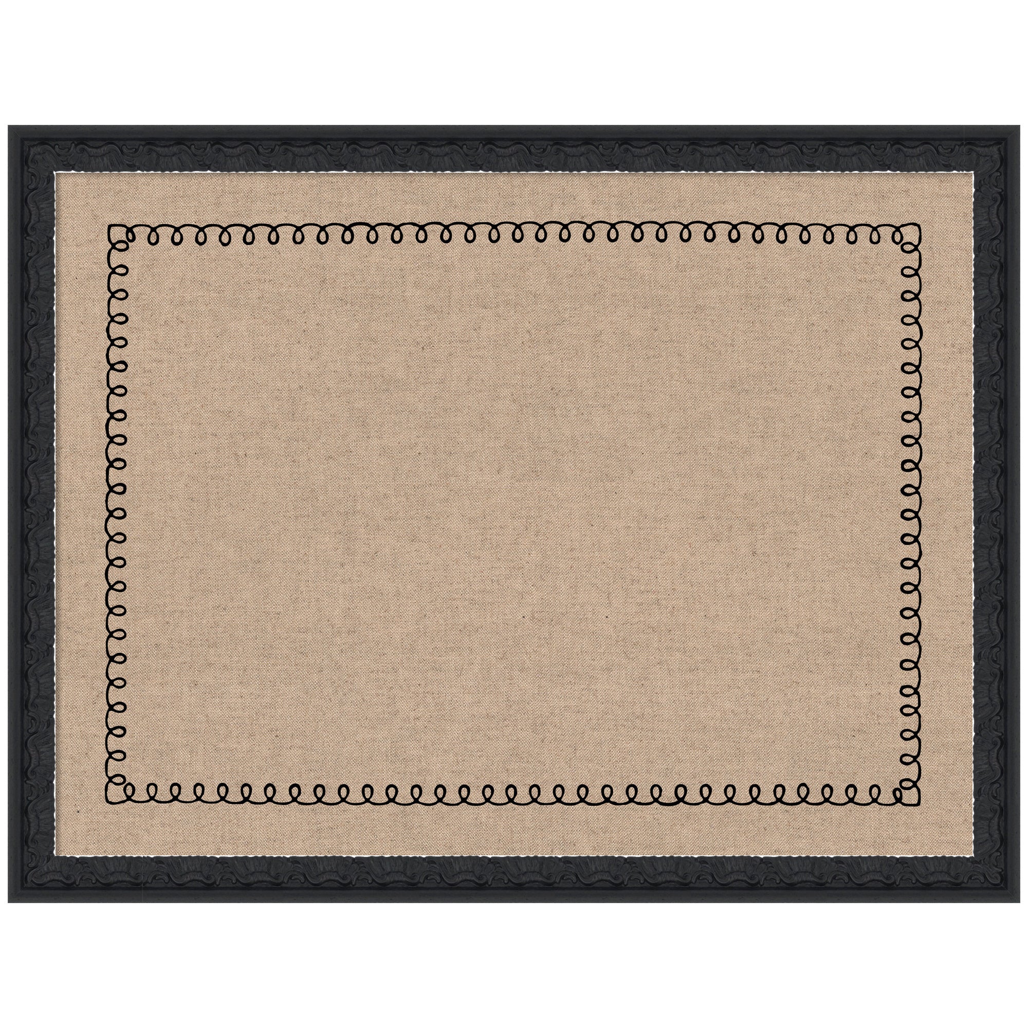Organize your home in style with a fabric pinboard that has a sophisticated appeal. The neutral linen textile pattern accented with a delicate black scalloped border is inspired by the belief that organization doesn't have to be boring. The decorative pinboard has a lightweight construction with a high-quality, fabric pinning surface that allows pin to push fully in to showcase all your meaningful keepsakes. Use this functional, designer pinboard for hanging photos, wedding invitations, holiday cards, or even stellar report cards. As an stylish accent, the beautiful framed bulletin board looks excellent in any entryway, living room, bedroom, mudroom, or kitchen