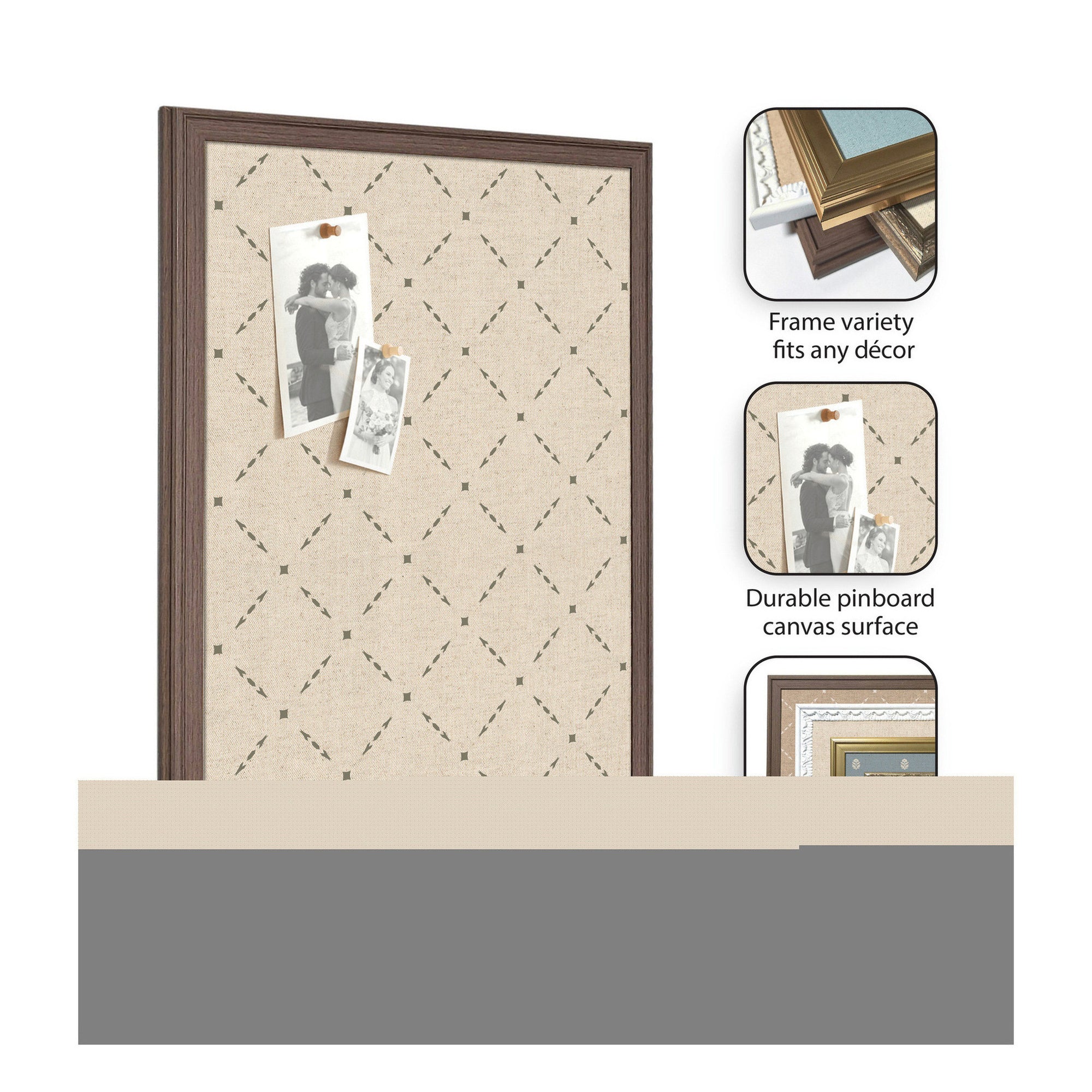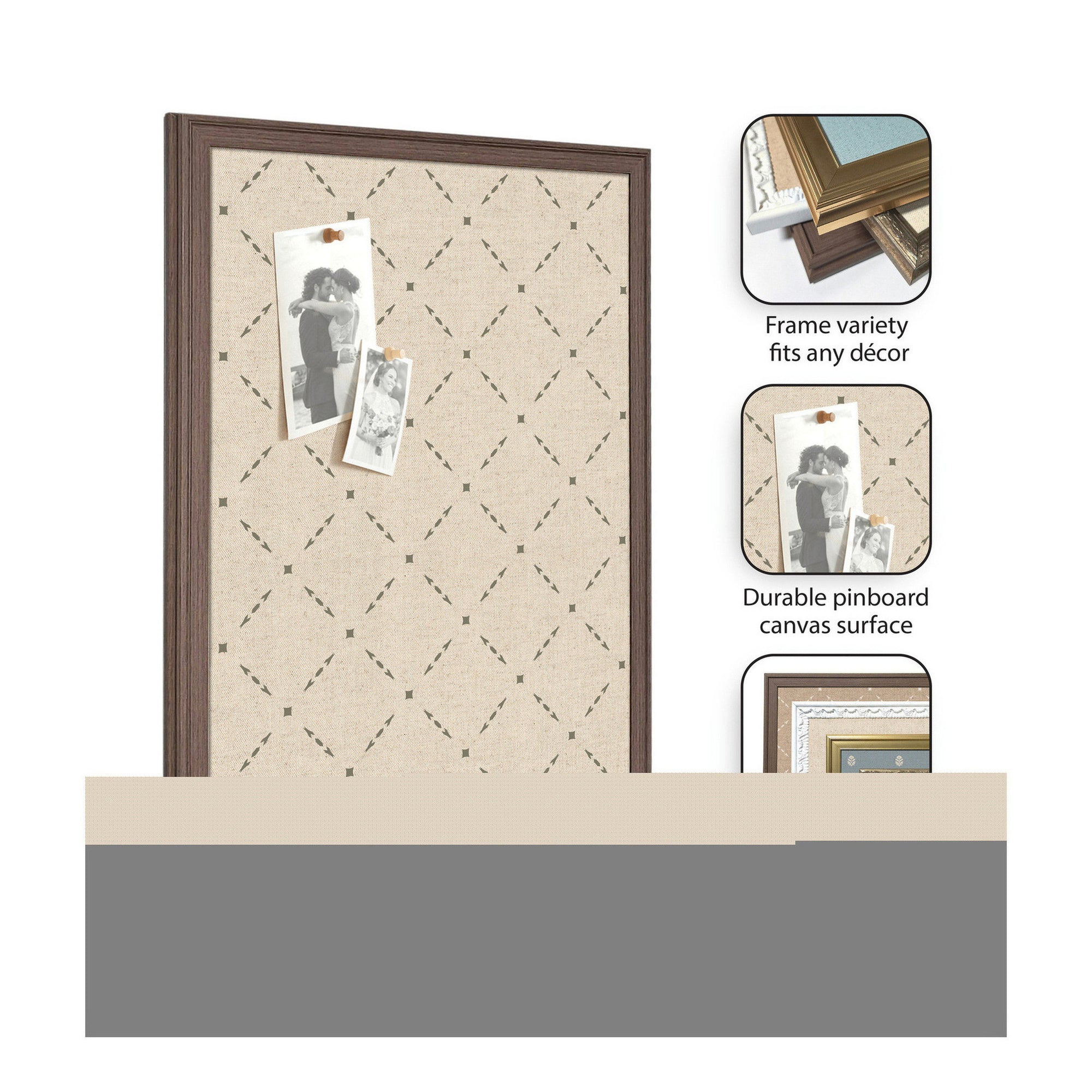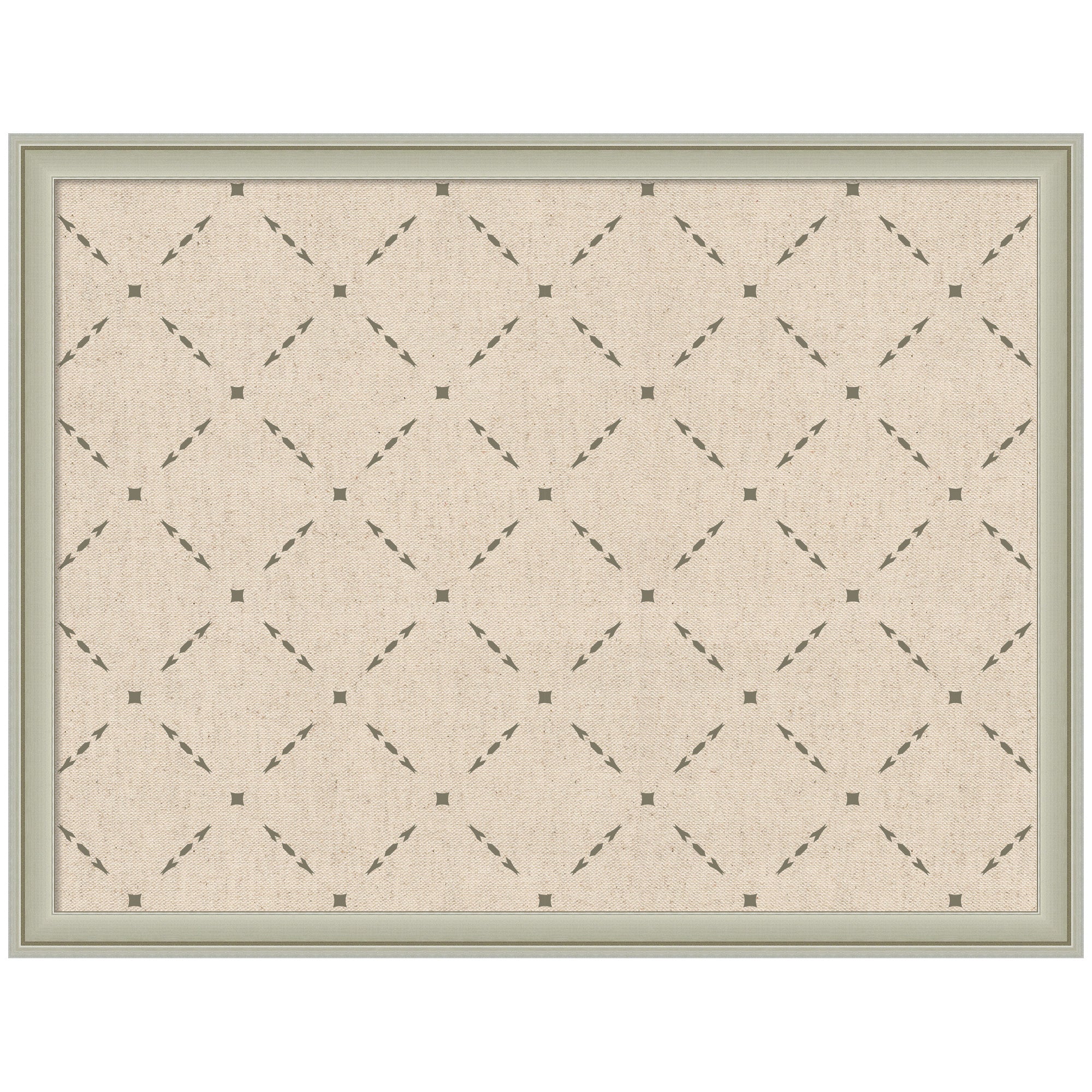 Organize your home in style with a fabric pinboard that has a sophisticated appeal. The neutral linen textile pattern accented with a green lattice print is inspired by the belief that organization doesn't have to be boring. The decorative pinboard has a lightweight construction with a high-quality, fabric pinning surface that allows pin to push fully in to showcase all your meaningful keepsakes. Use this functional, designer pinboard for hanging photos, wedding invitations, holiday cards, or even stellar report cards. As an stylish accent, the beautiful framed bulletin board looks excellent in any entryway, living room, bedroom, mudroom, or kitchen