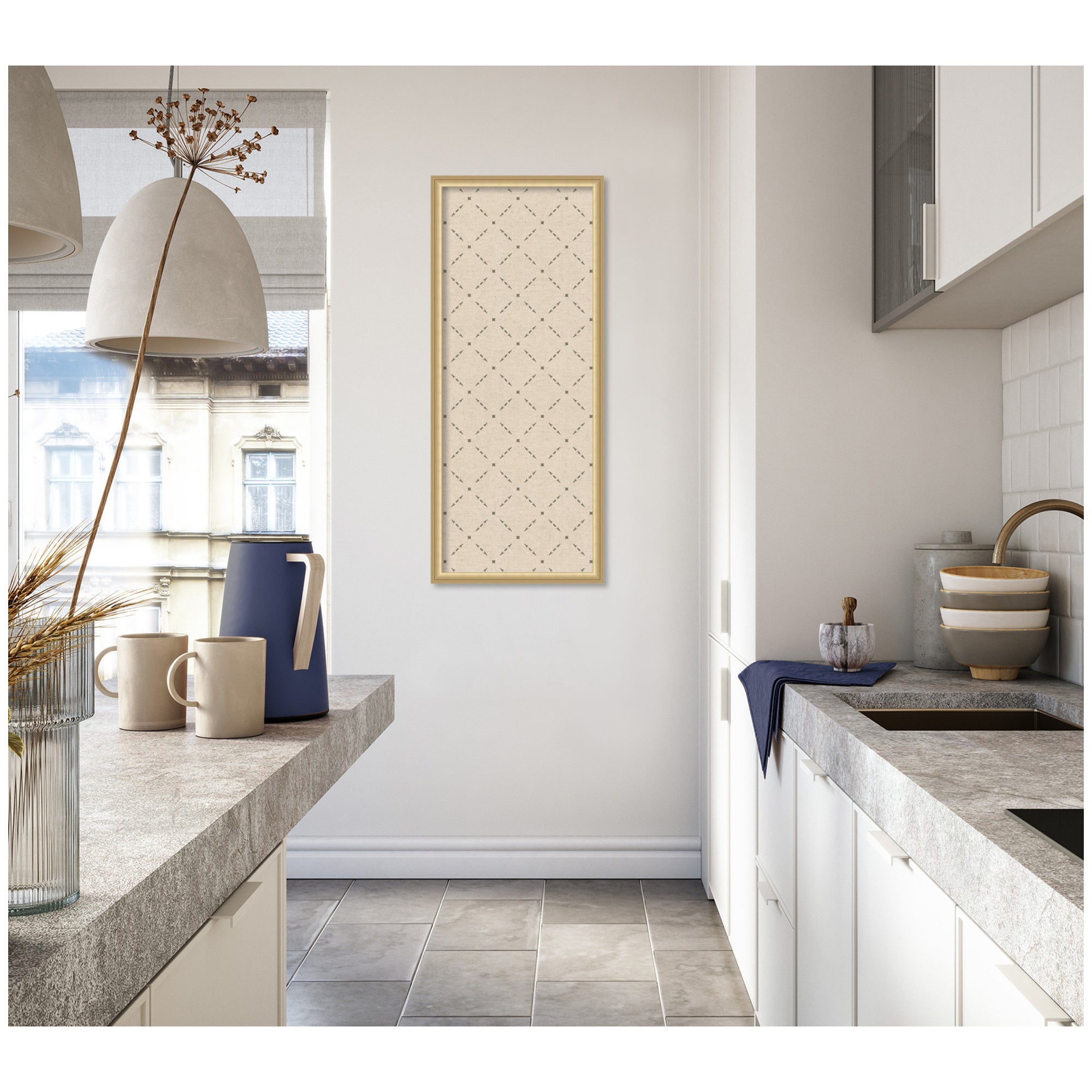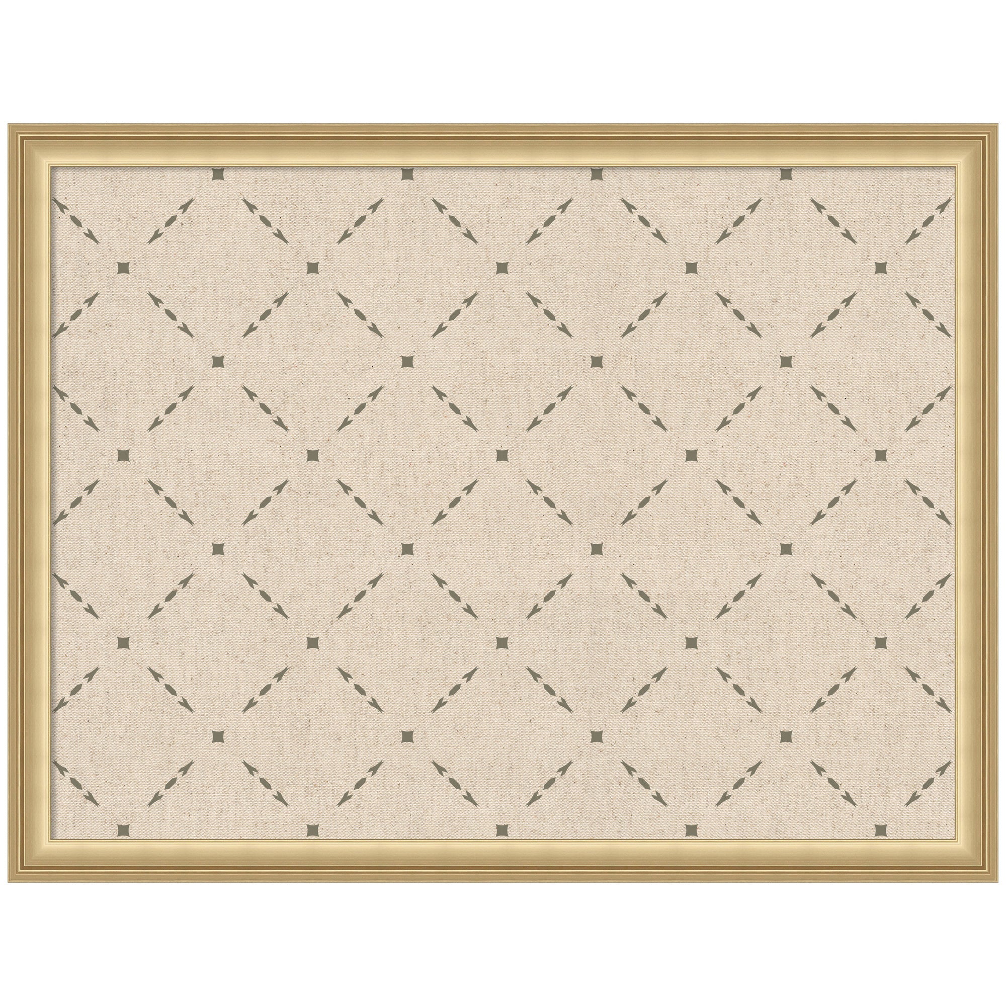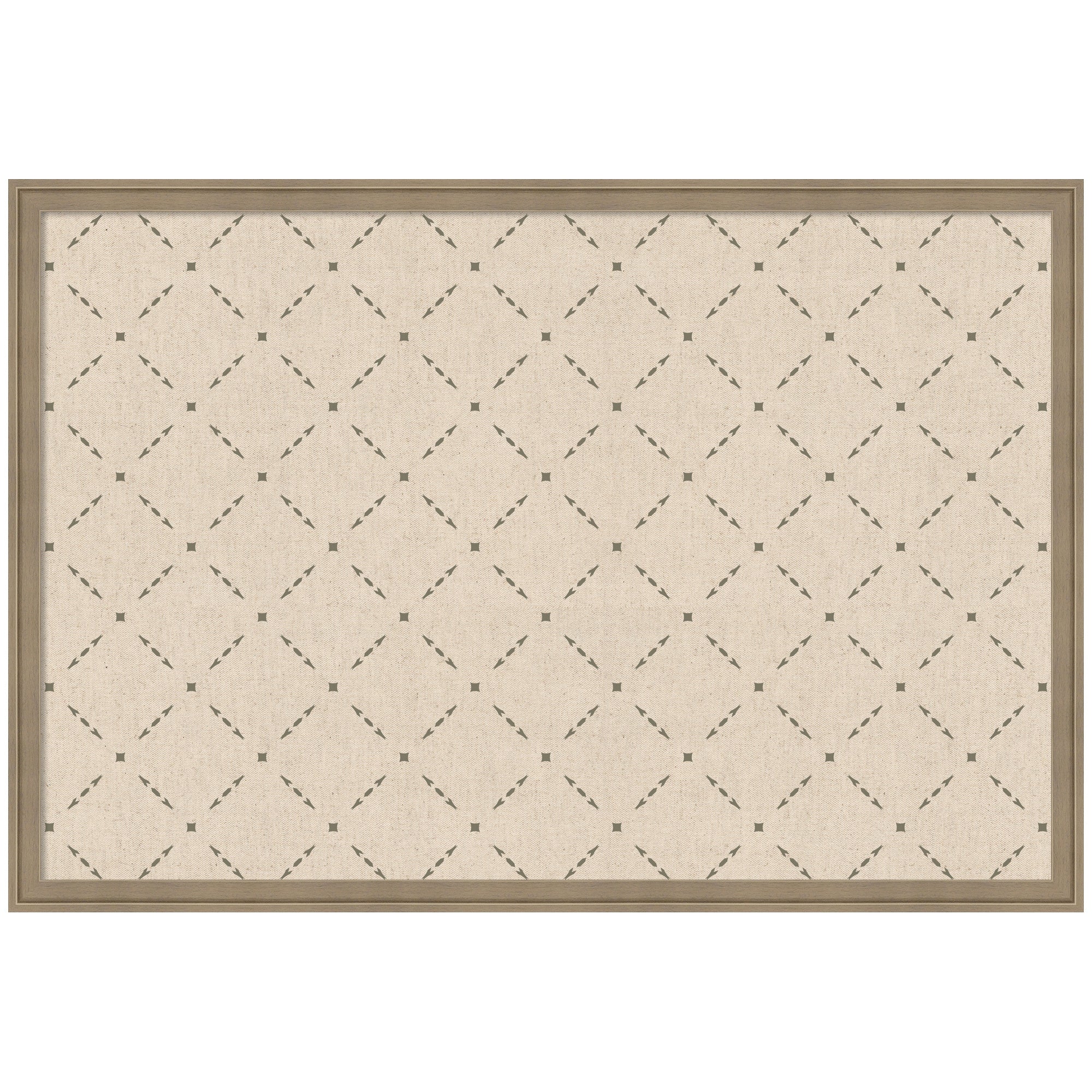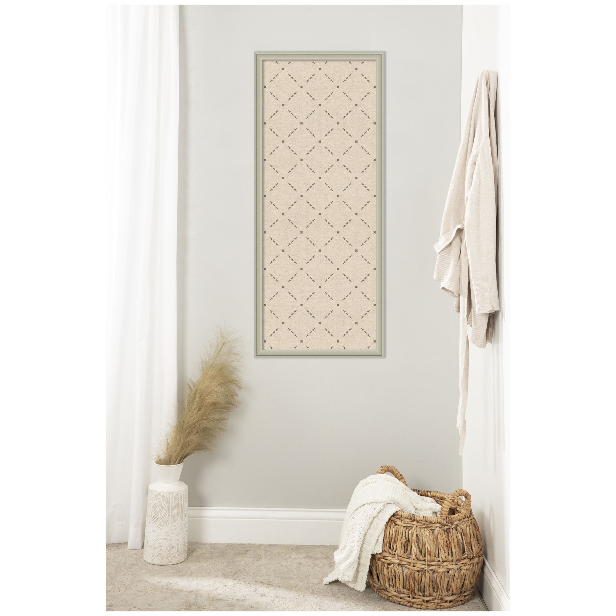 Organize your home in style with a fabric pinboard that has a sophisticated appeal. The neutral linen textile pattern accented with a green lattice print is inspired by the belief that organization doesn't have to be boring. The decorative pinboard has a lightweight construction with a high-quality, fabric pinning surface that allows pin to push fully in to showcase all your meaningful keepsakes. Use this functional, designer pinboard for hanging photos, wedding invitations, holiday cards, or even stellar report cards. As an stylish accent, the beautiful framed bulletin board looks excellent in any entryway, living room, bedroom, mudroom, or kitchen