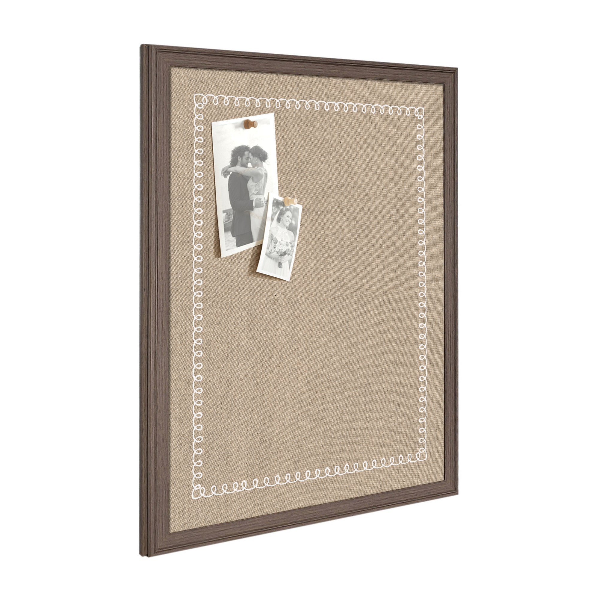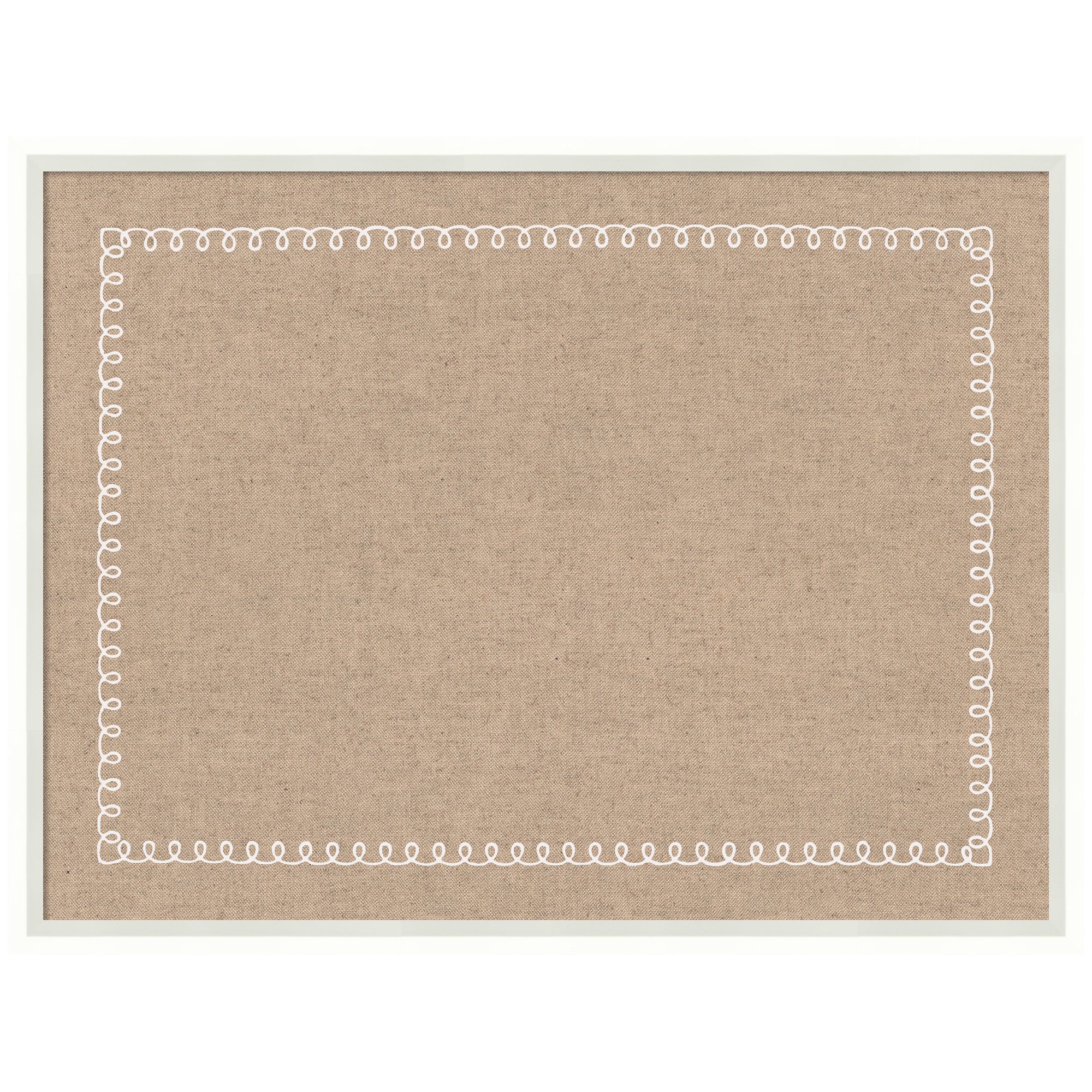 Organize your home in style with a fabric pinboard that has a sophisticated appeal. The neutral linen textile pattern accented with a delicate white scalloped border is inspired by the belief that organization doesn't have to be boring. The decorative pinboard has a lightweight construction with a high-quality, fabric pinning surface that allows pin to push fully in to showcase all your meaningful keepsakes. Use this functional, designer pinboard for hanging photos, wedding invitations, holiday cards, or even stellar report cards. As an stylish accent, the beautiful framed bulletin board looks excellent in any entryway, living room, bedroom, mudroom, or kitchen