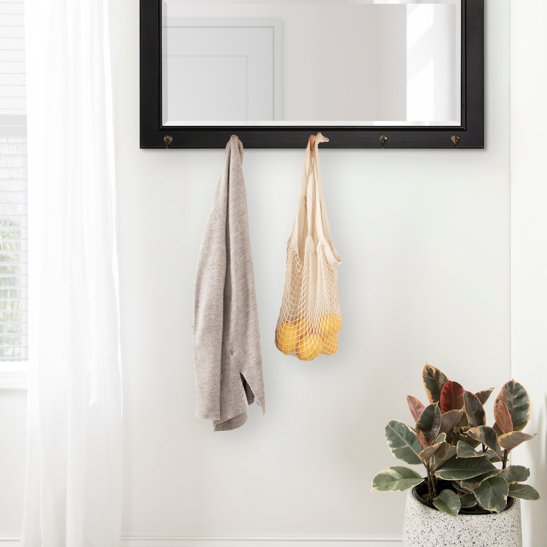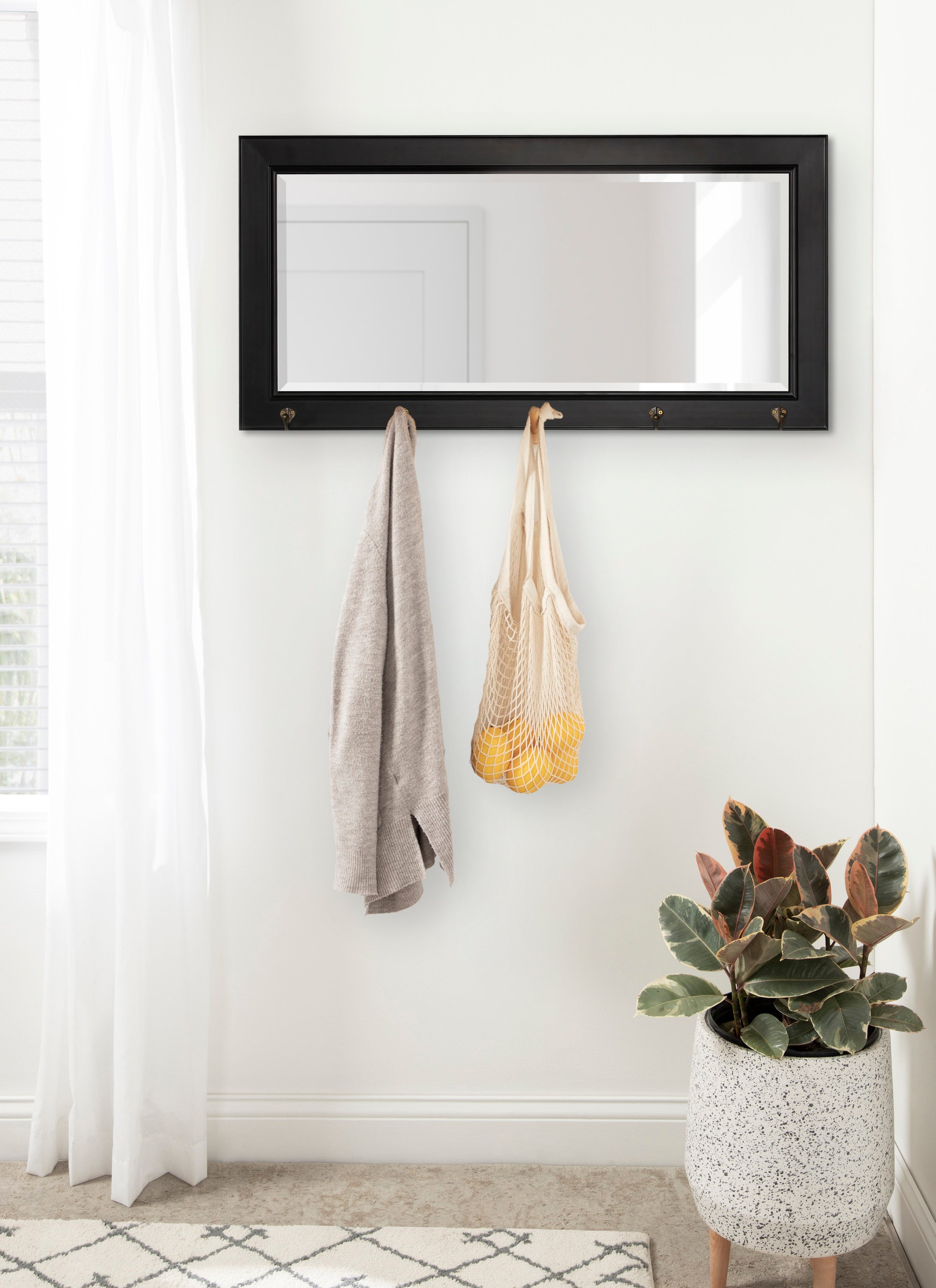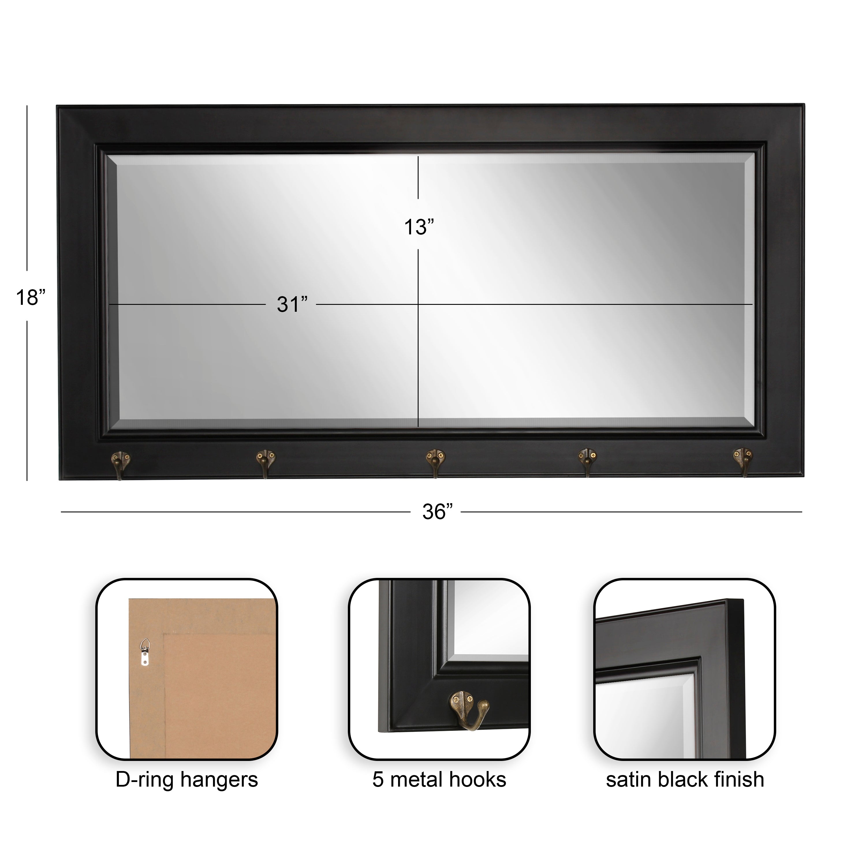 A traditional styled, classic framed mirror, the Kate and Laurel Pub mirror is made extra special with the addition of the five metal hooks. Now when you hang it in your kitchen, mudroom, or over your entryway bench you've got instant organization for coats, hats, scarves, dog leashes, or even keys. It's a handsome look and a great addition to your decor.