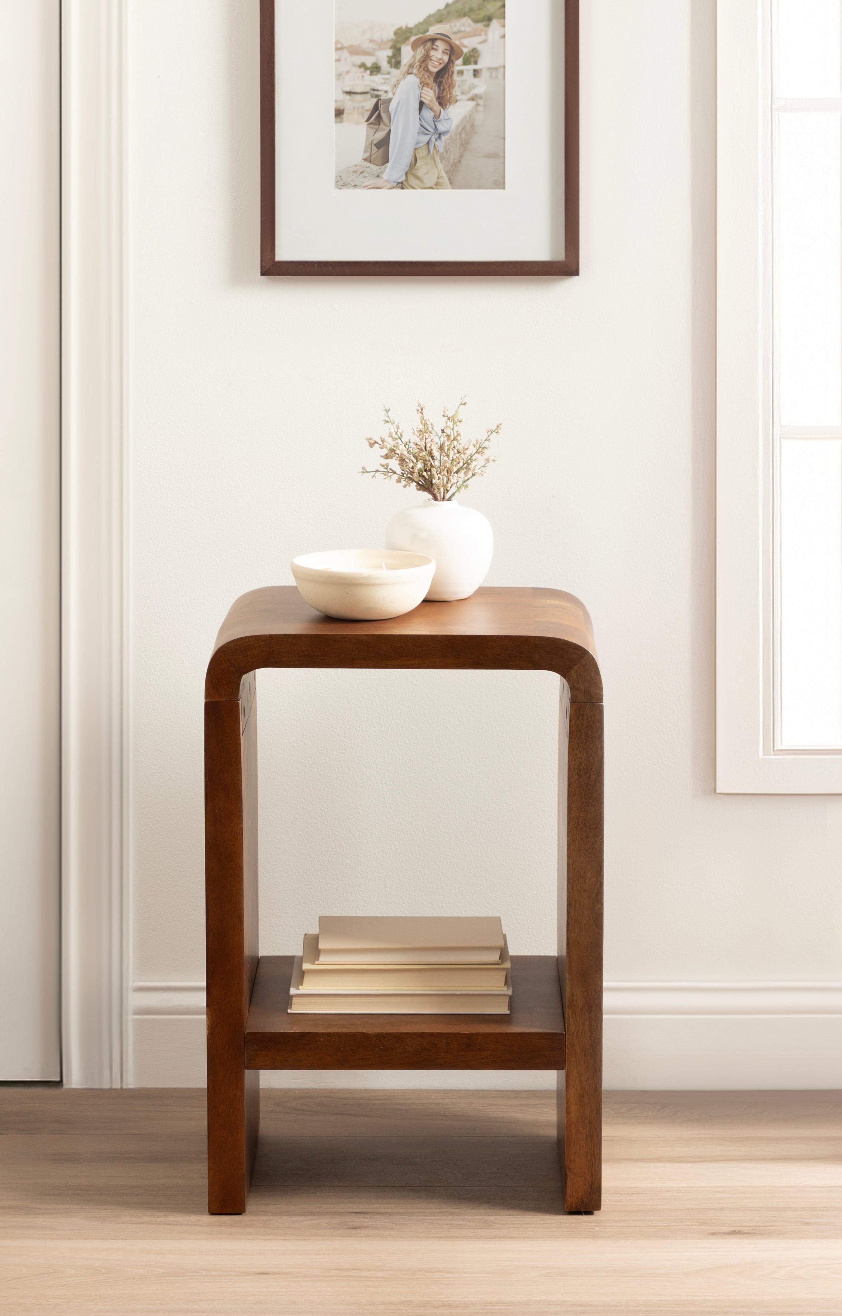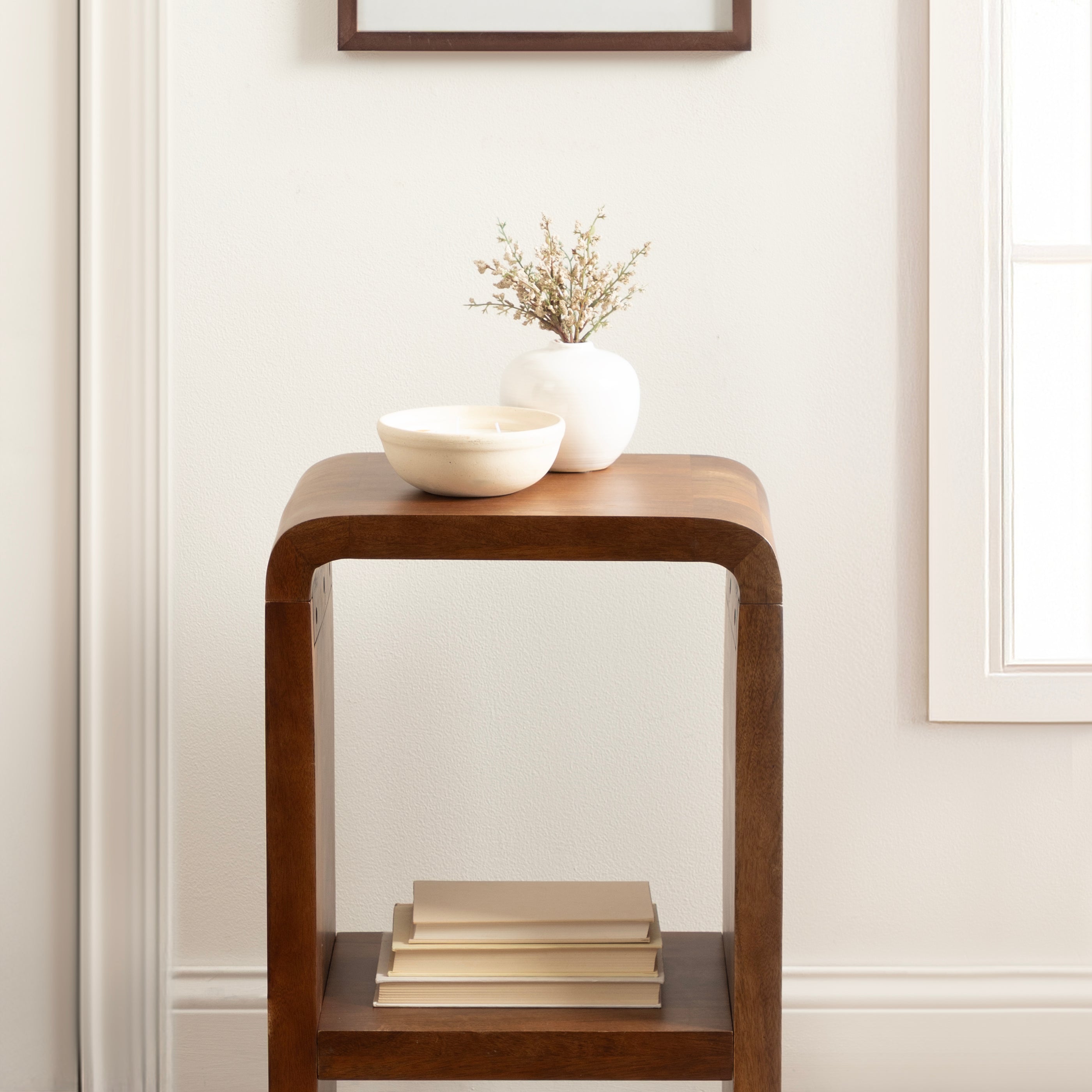 Discover your love of a variety of decor styles with the sophisticated Reddy table. This side table is crafted in India from robust mango wood, allowing each piece to have its own distinct finish and wood grain. Each Reddy table features two tiers of tabletops that are excellent for serving cocktails on coasters, displaying your decorative accent pieces, or storing your basic household necessities. It's perfect as a side table in your living room, a catch-all near the entryway, or simply by your bed.