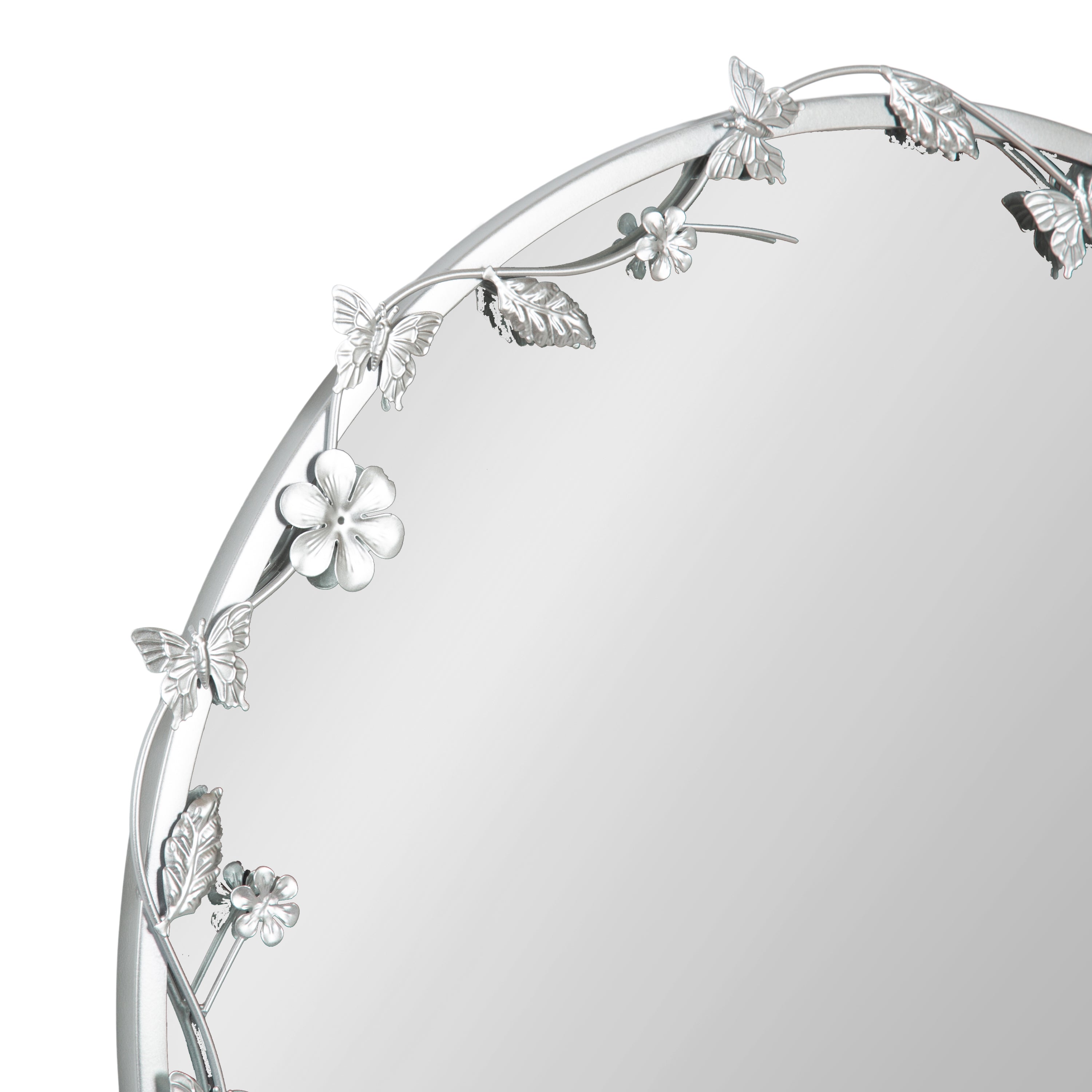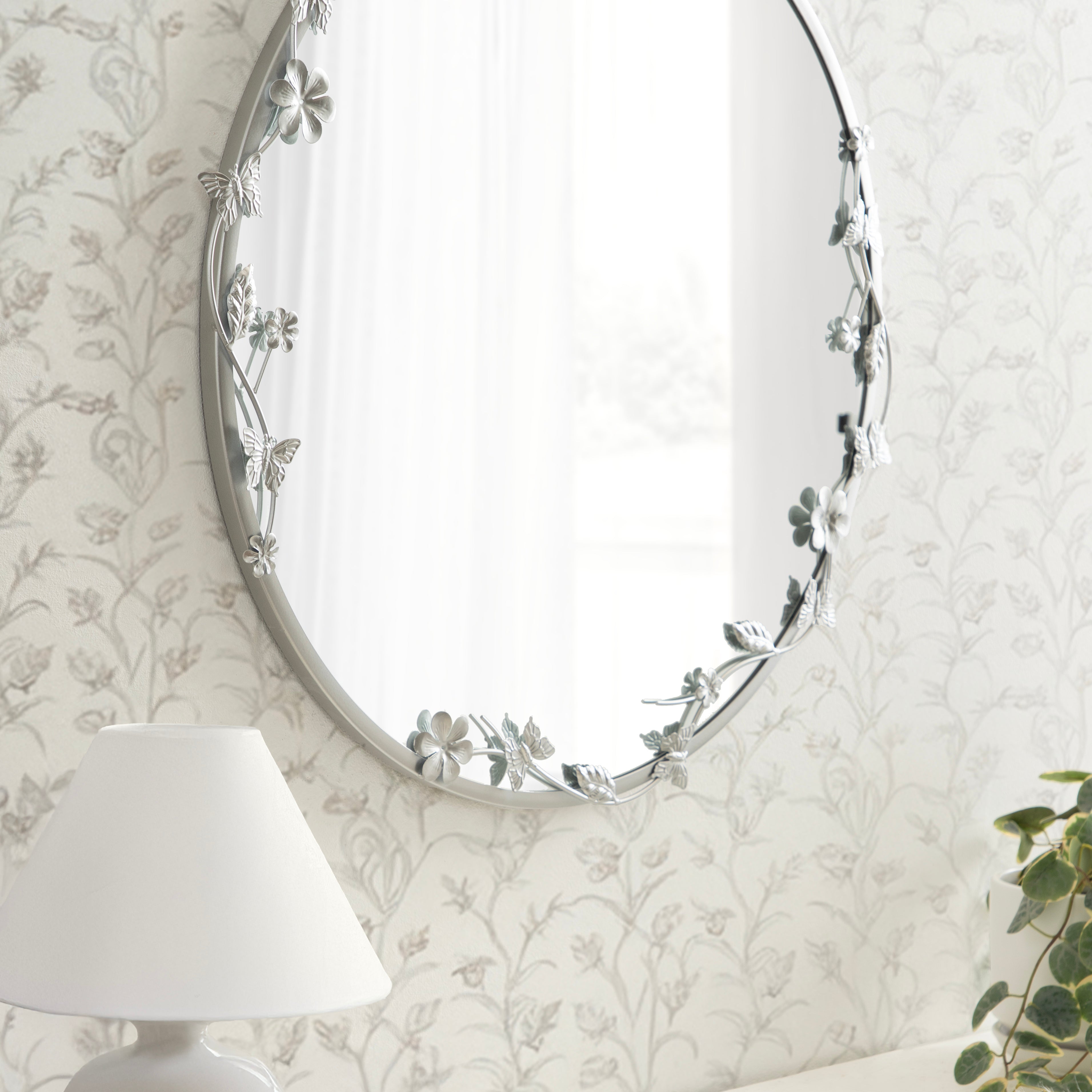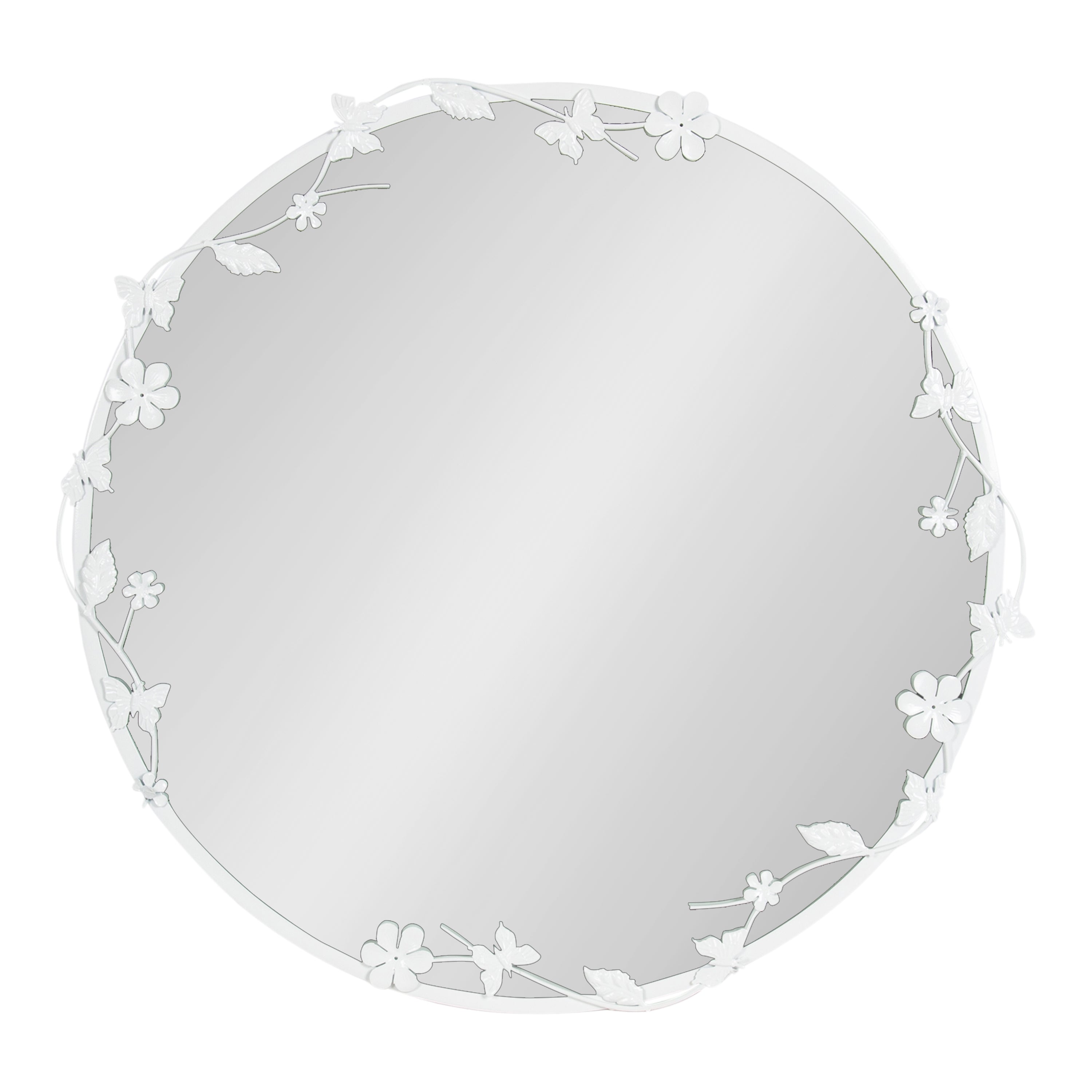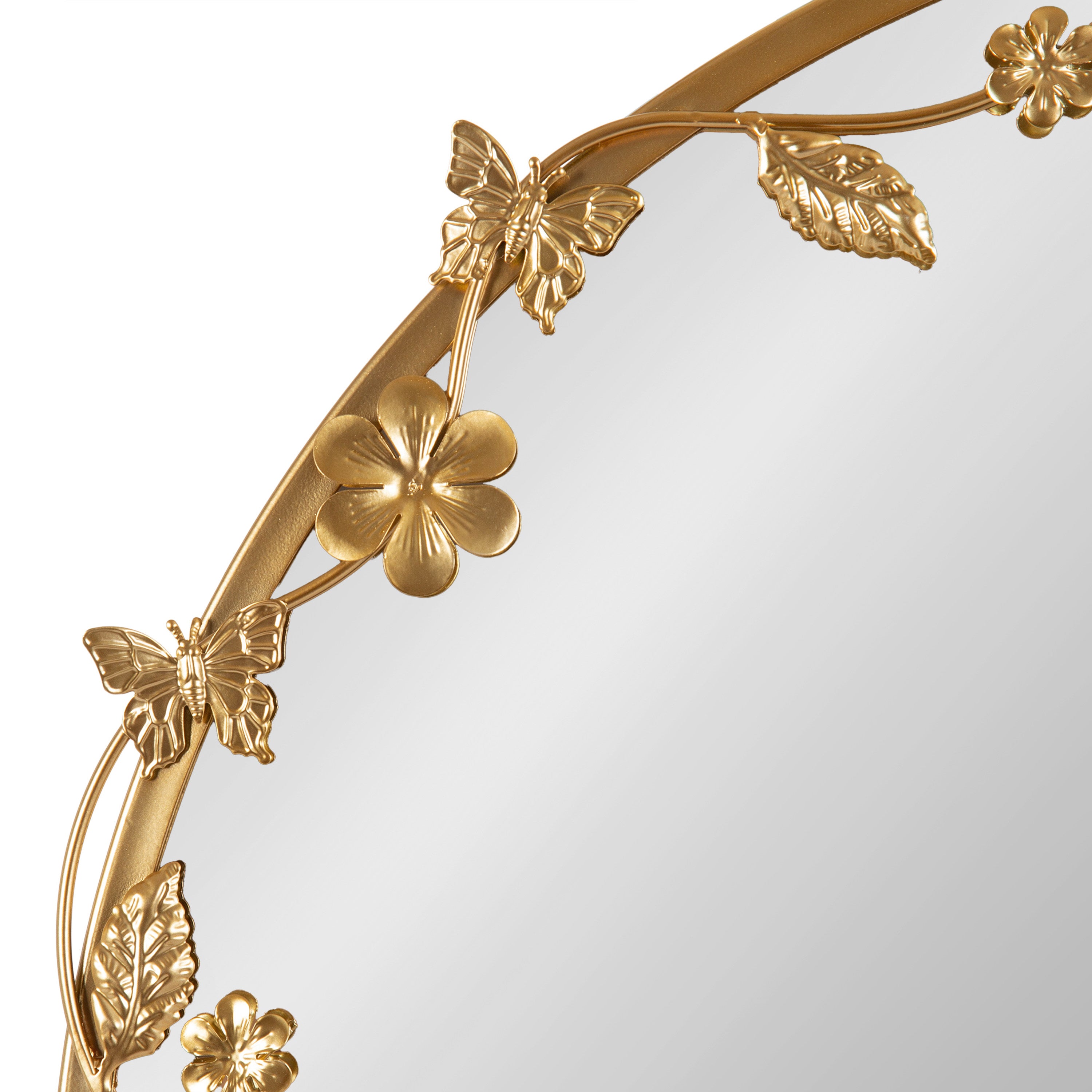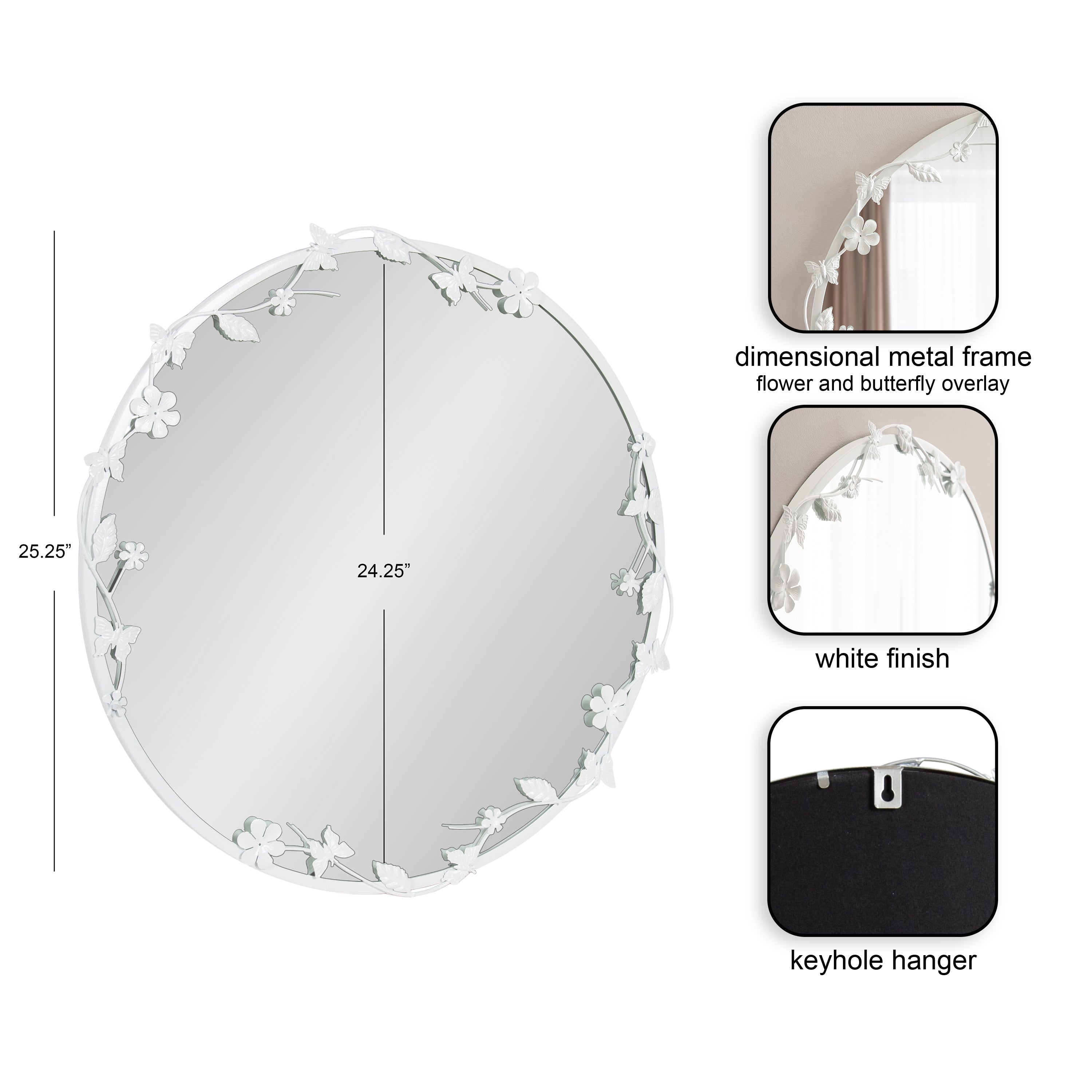 Enhance the glamorous aesthetic of your home by featuring the beautiful Rosella wall mirror in your home. Inspired by modern design and glam style, the ornate mirror has a round shape with a floral and butterfly details, creating a fascinating visual piece with an elegant presence. Hang this beautiful piece of wall decor over your entryway console, above a living room mantel, or a bedroom dresser. If you're looking to renovate your powder room or master bath, the Rosella mirror also looks excellent as a bathroom mirror above a vanity! To hang the gorgeous Rosella mirror, use the metal keyhole hanger attached to the back of the frame.