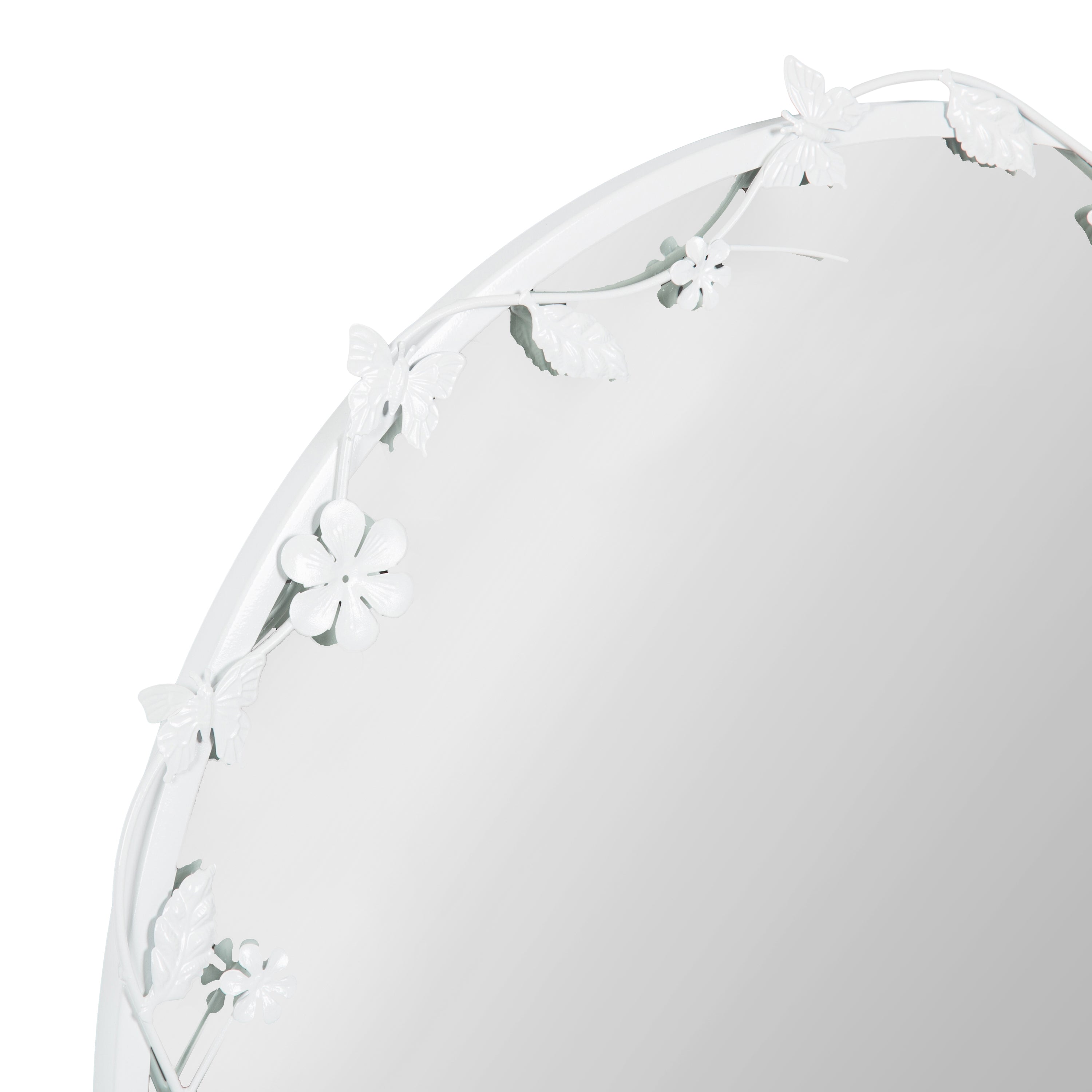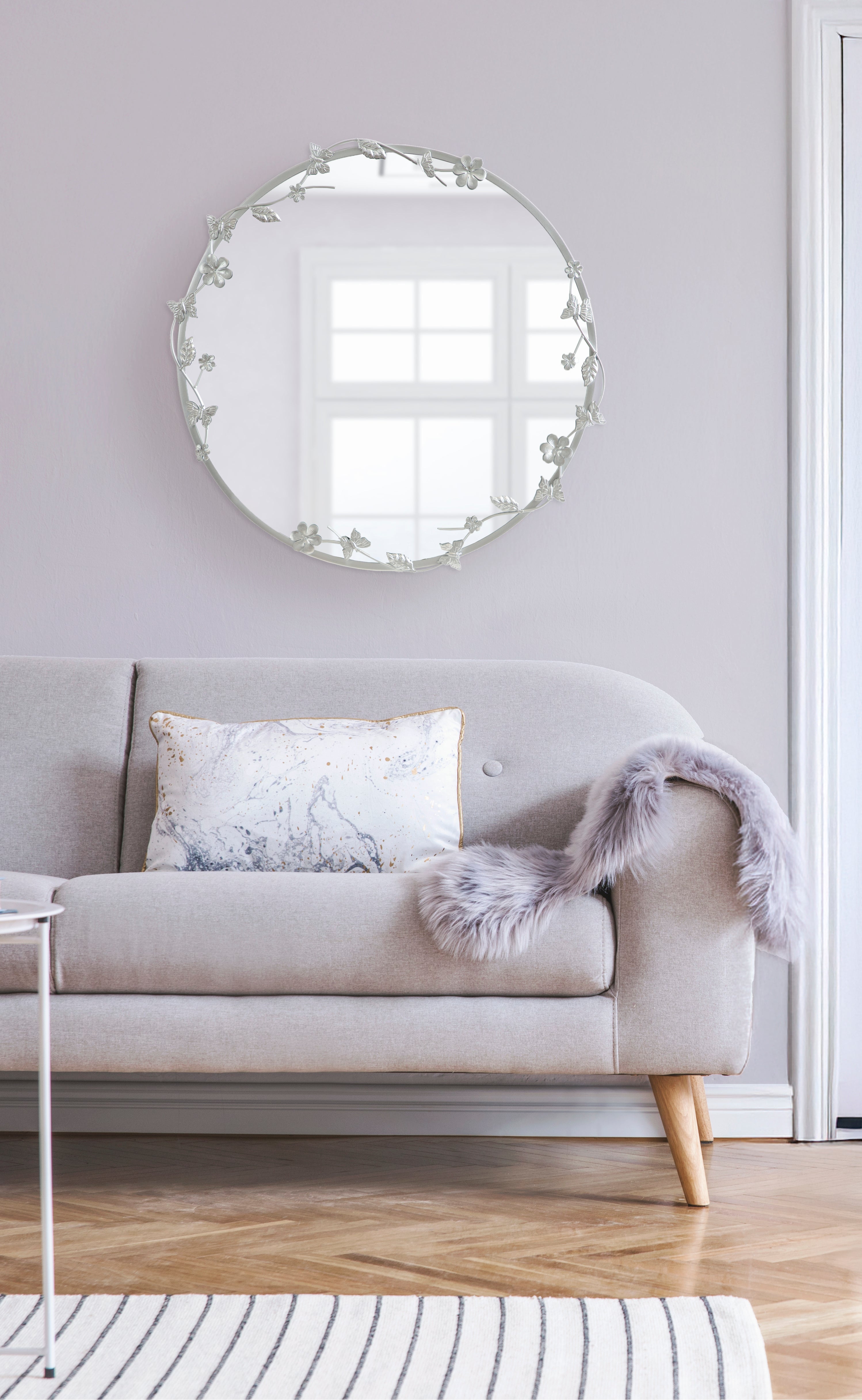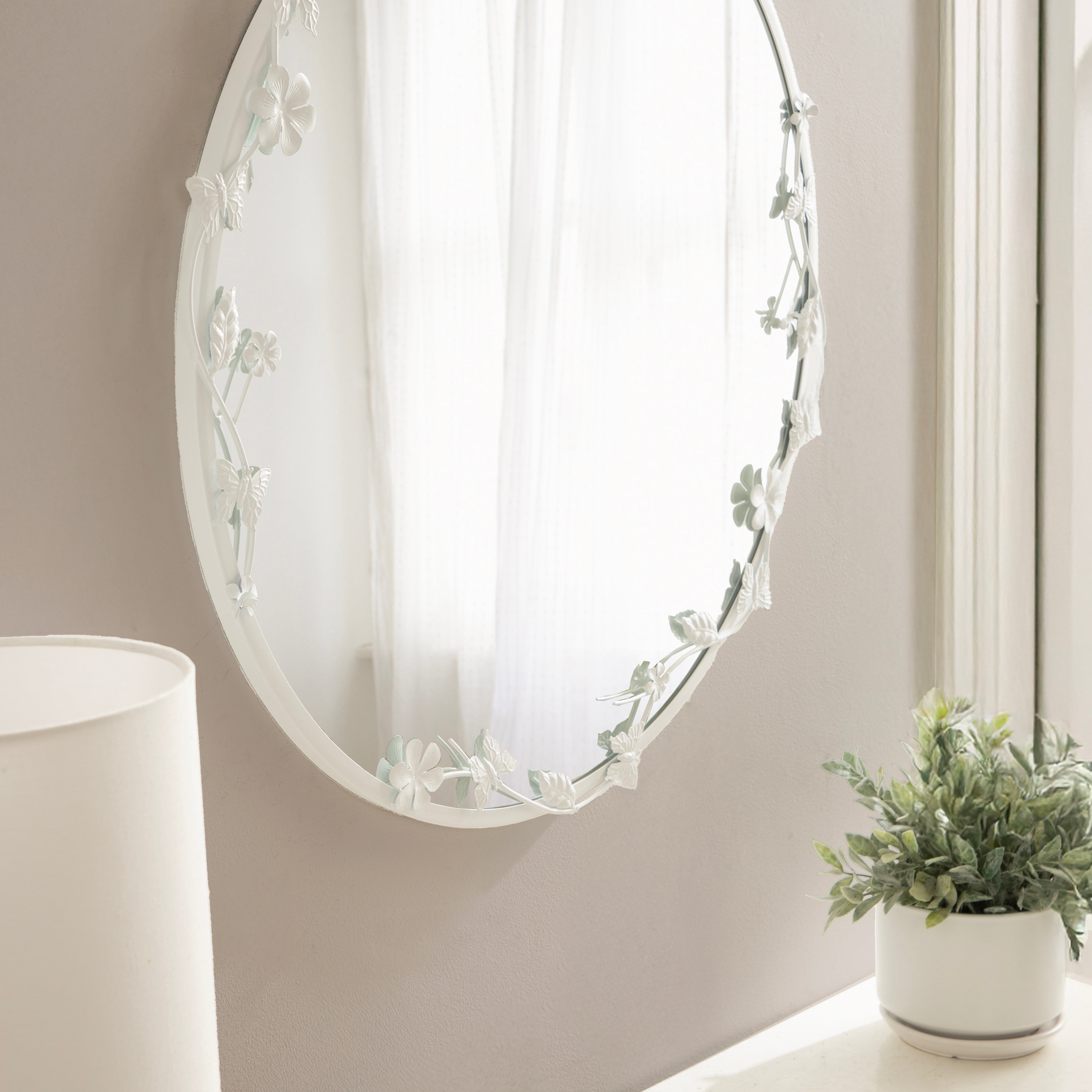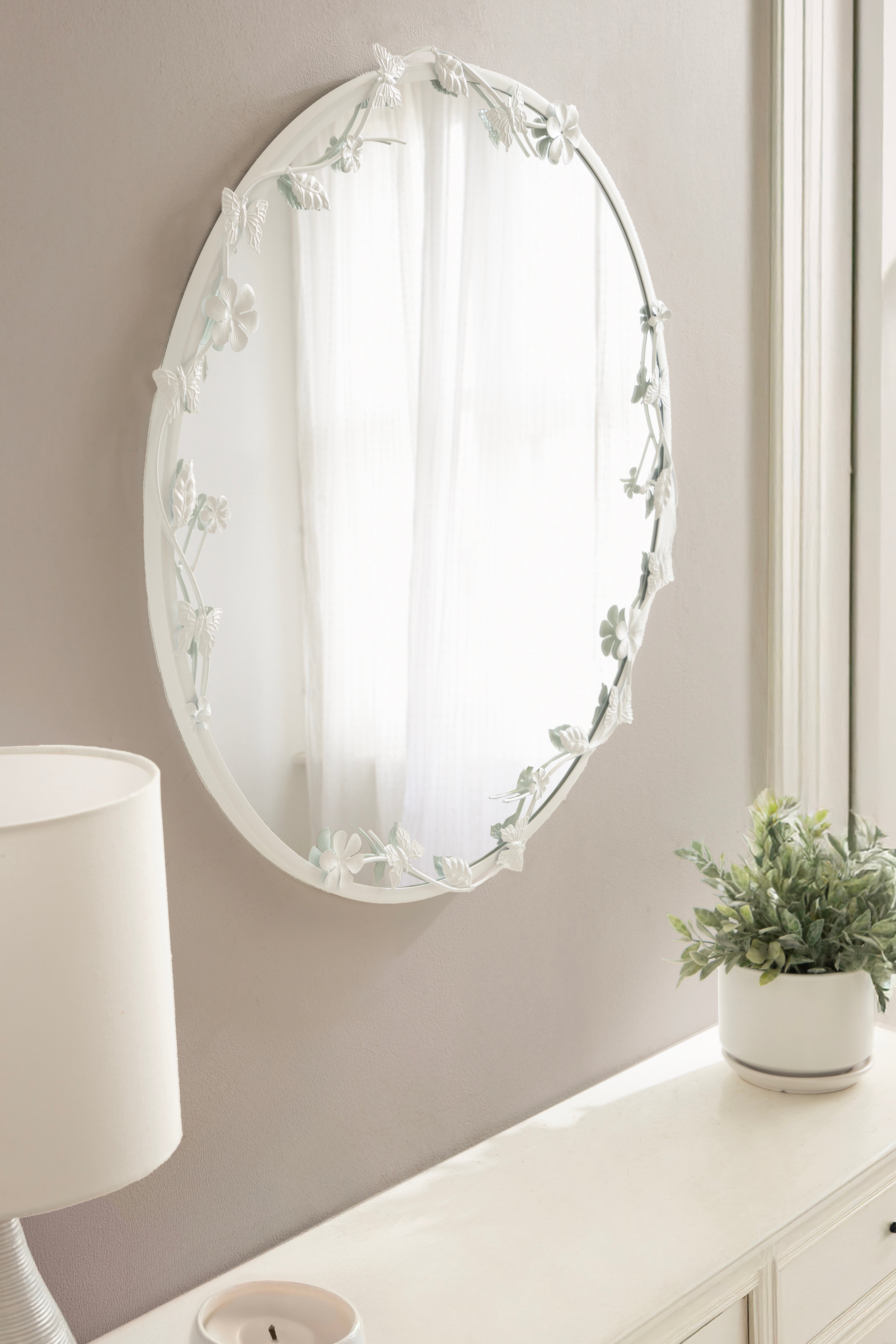 Enhance the glamorous aesthetic of your home by featuring the beautiful Rosella wall mirror in your home. Inspired by modern design and glam style, the ornate mirror has a round shape with a floral and butterfly details, creating a fascinating visual piece with an elegant presence. Hang this beautiful piece of wall decor over your entryway console, above a living room mantel, or a bedroom dresser. If you're looking to renovate your powder room or master bath, the Rosella mirror also looks excellent as a bathroom mirror above a vanity! To hang the gorgeous Rosella mirror, use the metal keyhole hanger attached to the back of the frame.