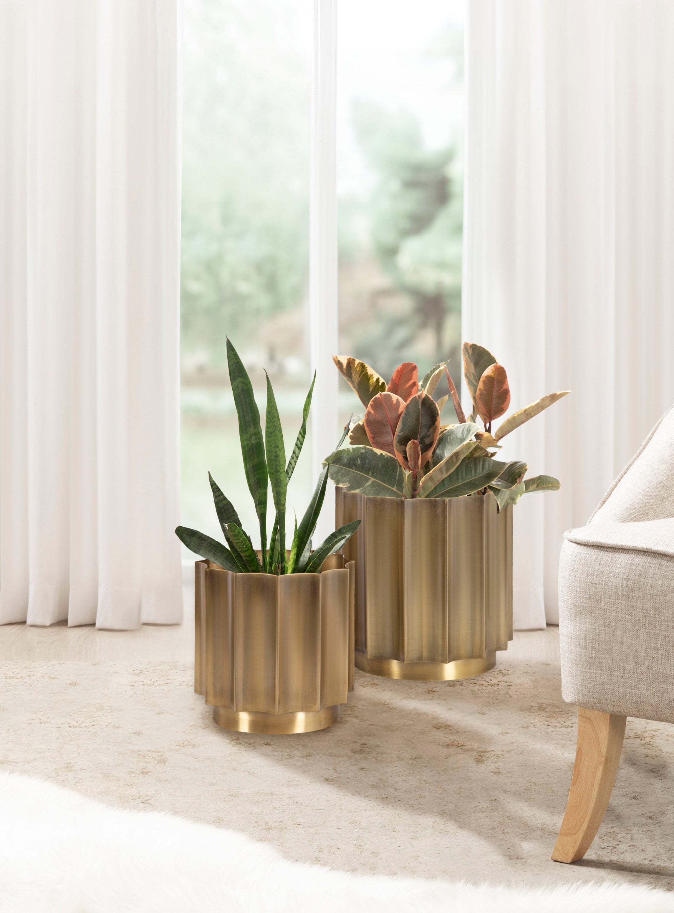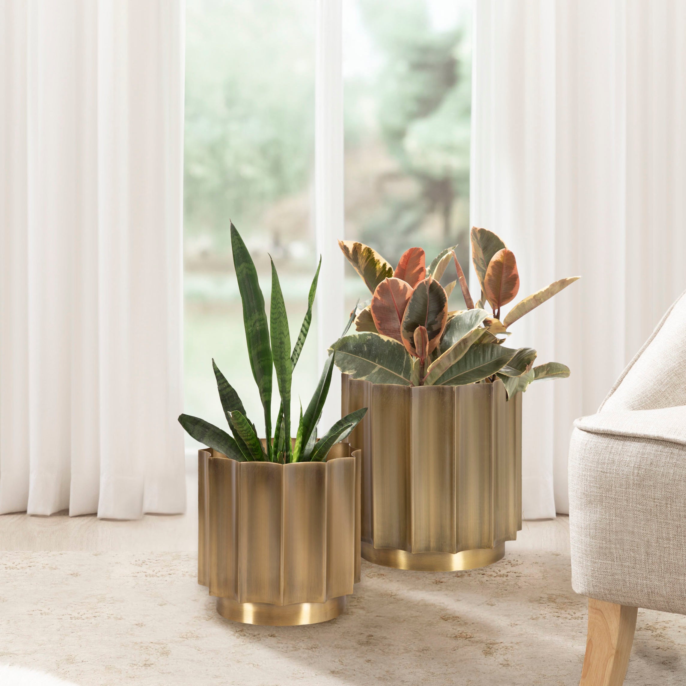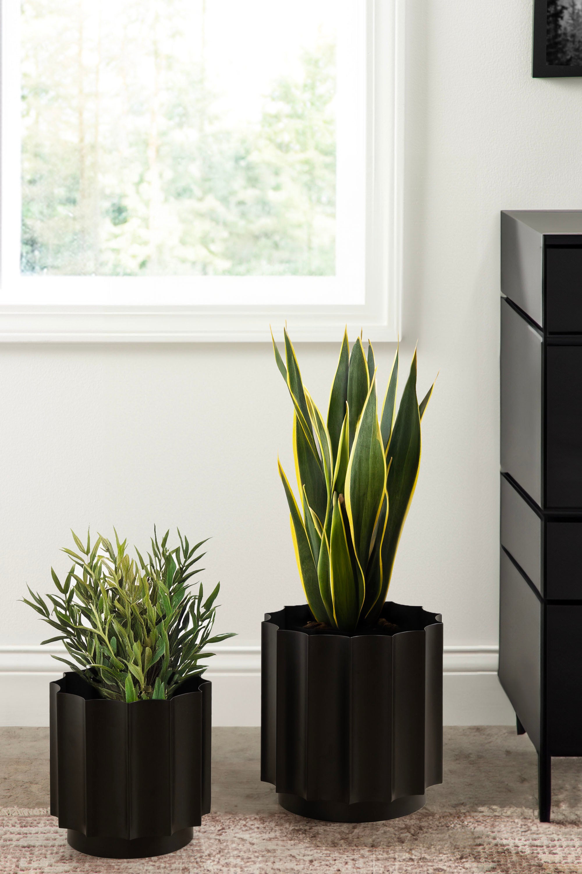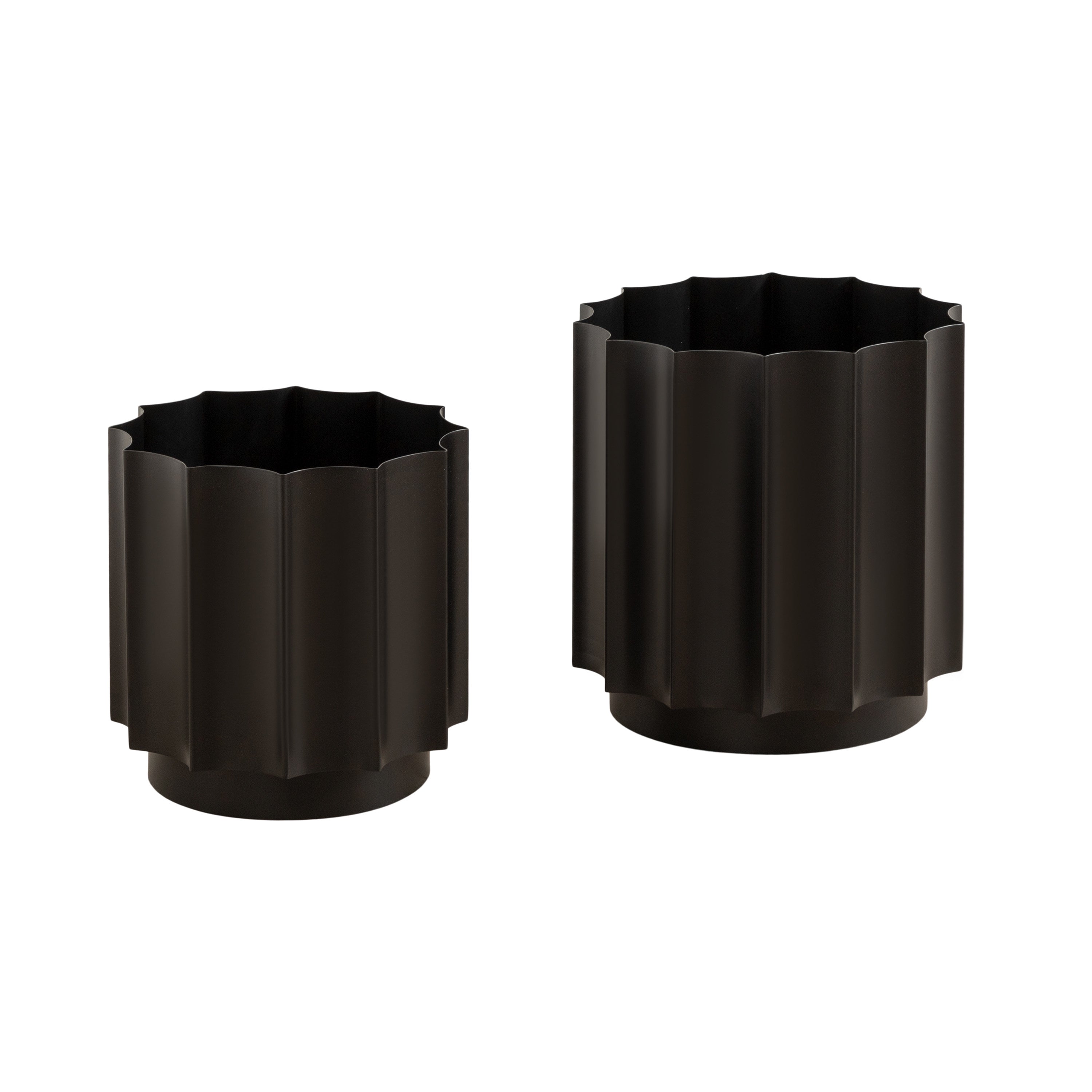 Remake your home into a space of modern simplicity and unique design with the Scalone planter set. This collection of sophisticated, freestanding planters showcase a unique style with their geometric, scalloped pots built with fluted panes. Each planter pot was forged in iron to take on years of use. The staggered sizes of this collection make it easy to showcase them together or spread throughout your living room, bedroom, bathroom, entryway, sunroom, patio, or front porch. They can easily be used to add some refinement to your living room, bedroom, or entryway decor scheme.