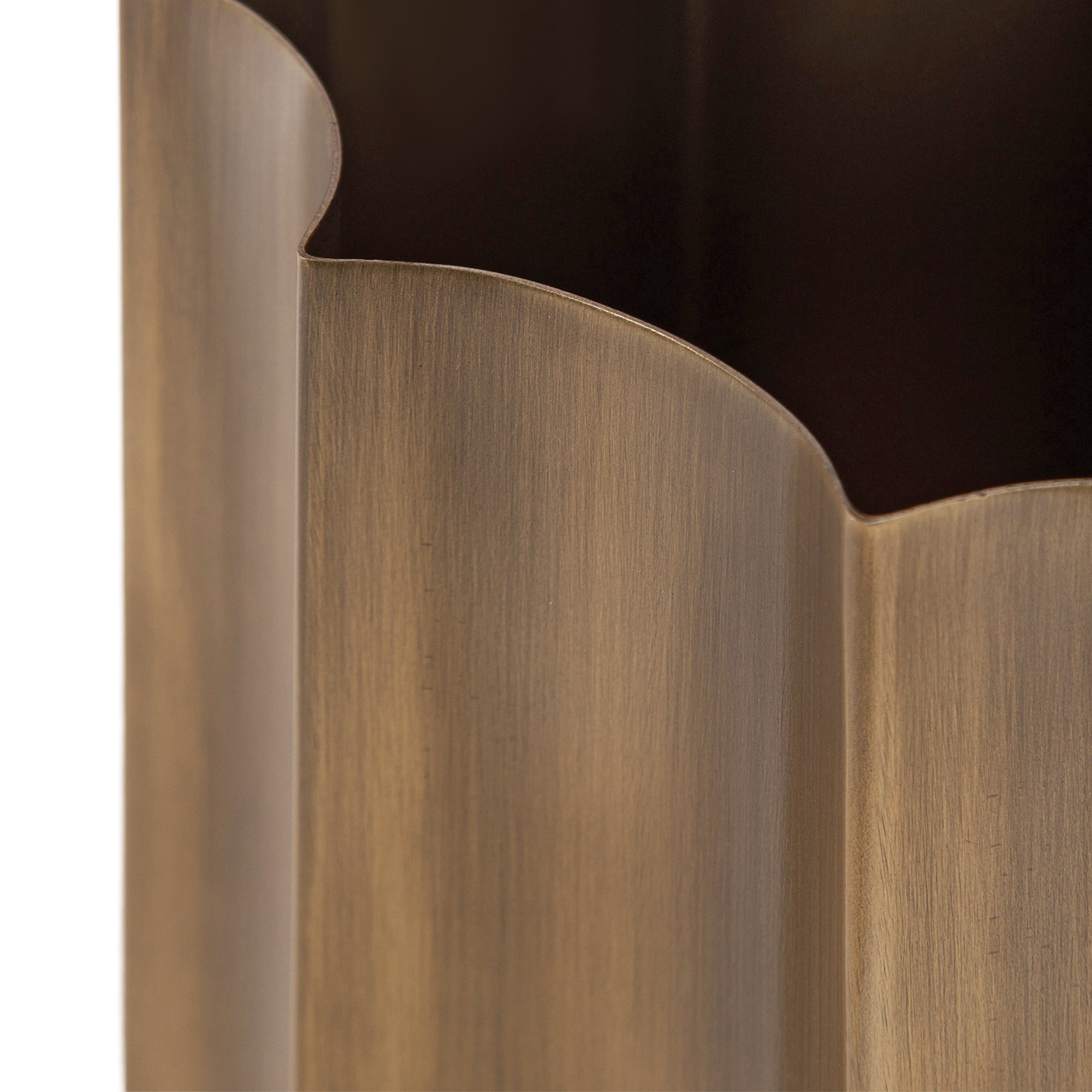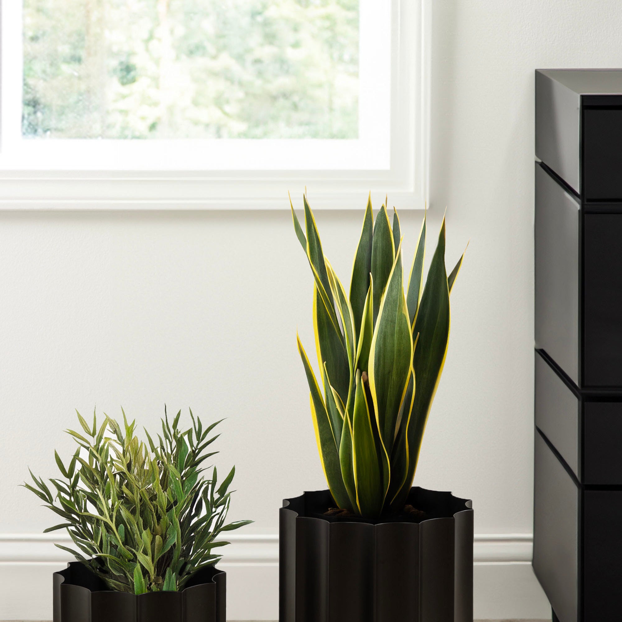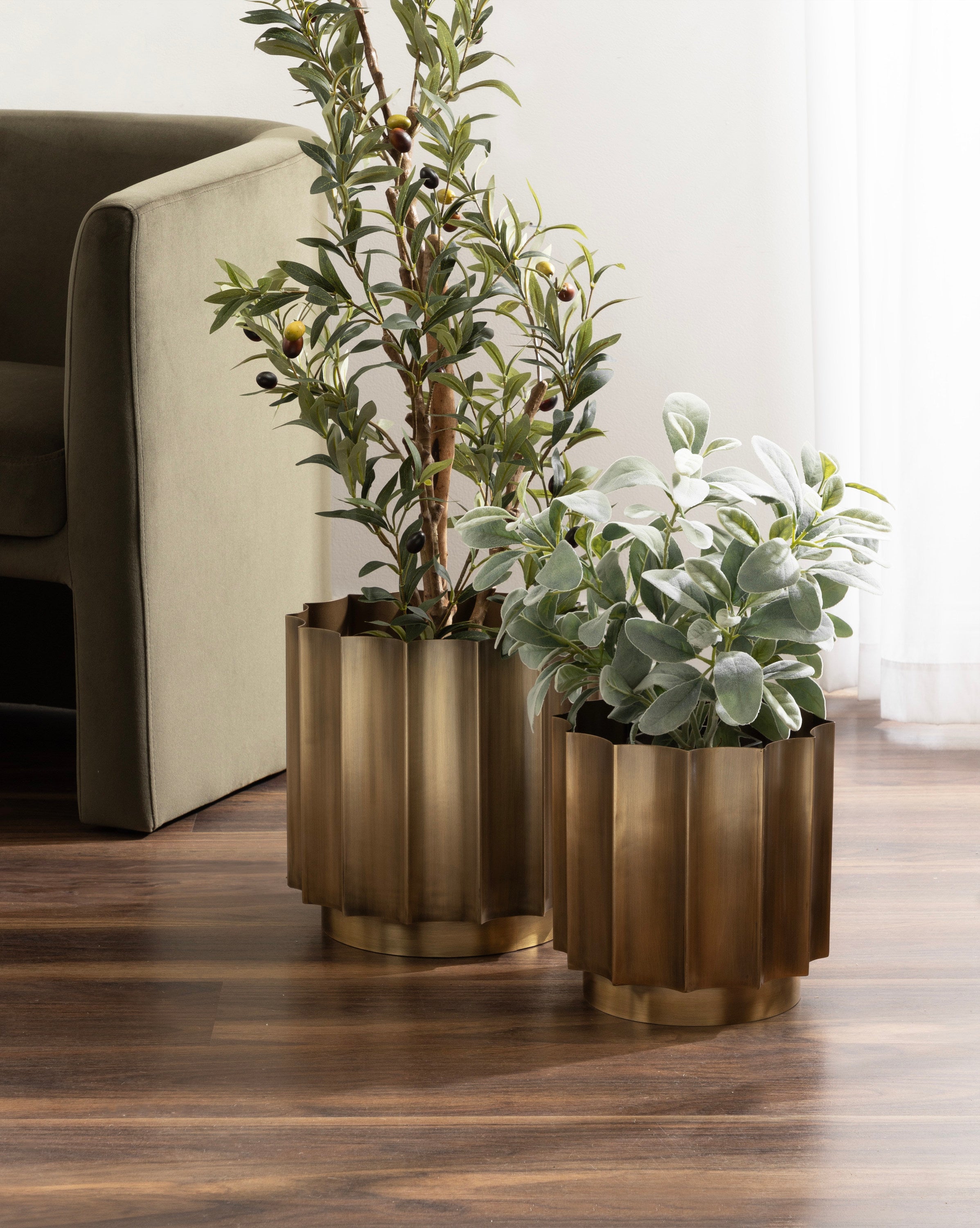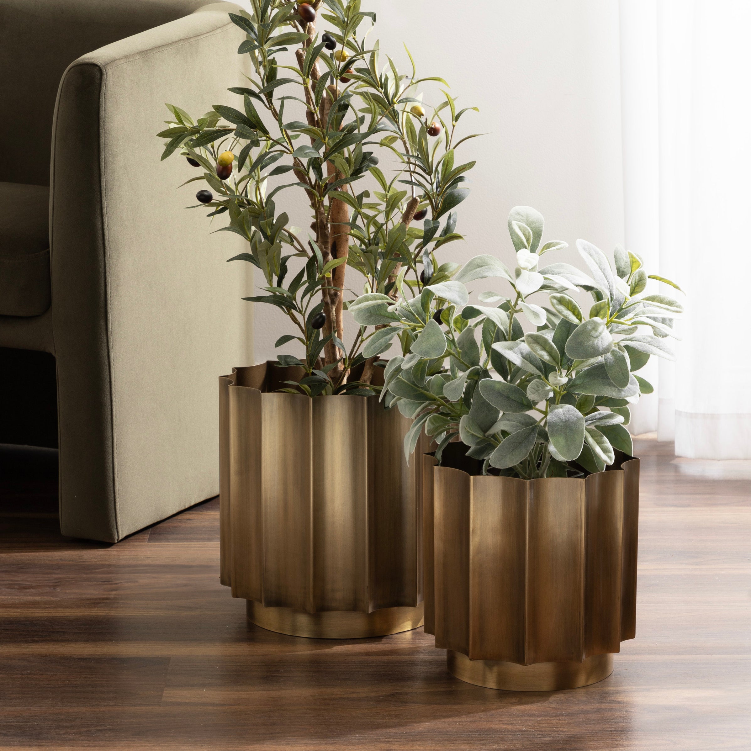 Remake your home into a space of modern simplicity and unique design with the Scalone planter set. This collection of sophisticated, freestanding planters showcase a unique style with their geometric, scalloped pots built with fluted panes. Each planter pot was forged in iron to take on years of use. The staggered sizes of this collection make it easy to showcase them together or spread throughout your living room, bedroom, bathroom, entryway, sunroom, patio, or front porch. They can easily be used to add some refinement to your living room, bedroom, or entryway decor scheme.