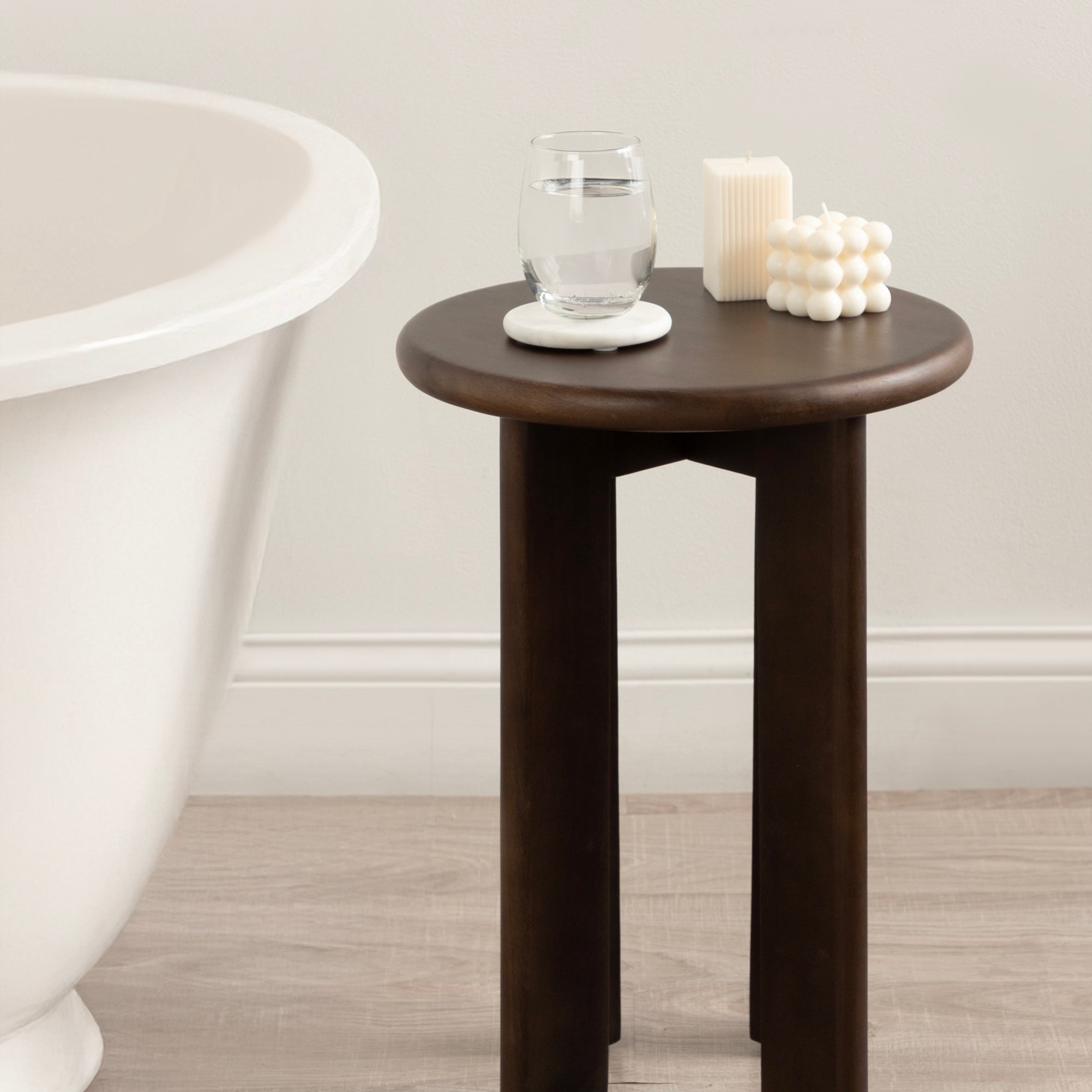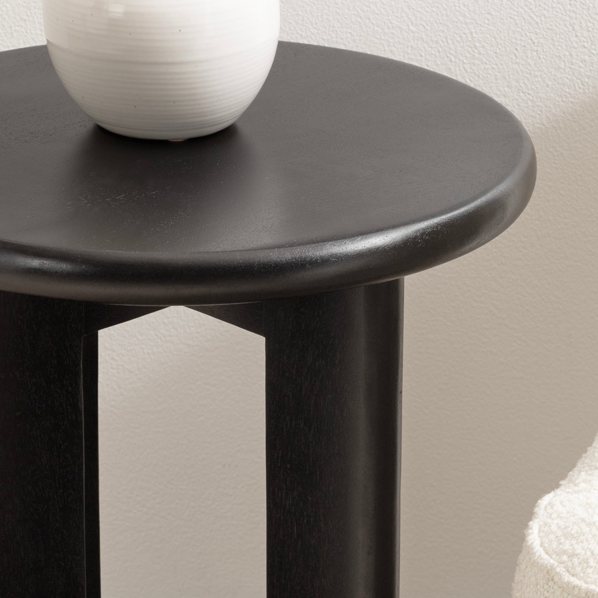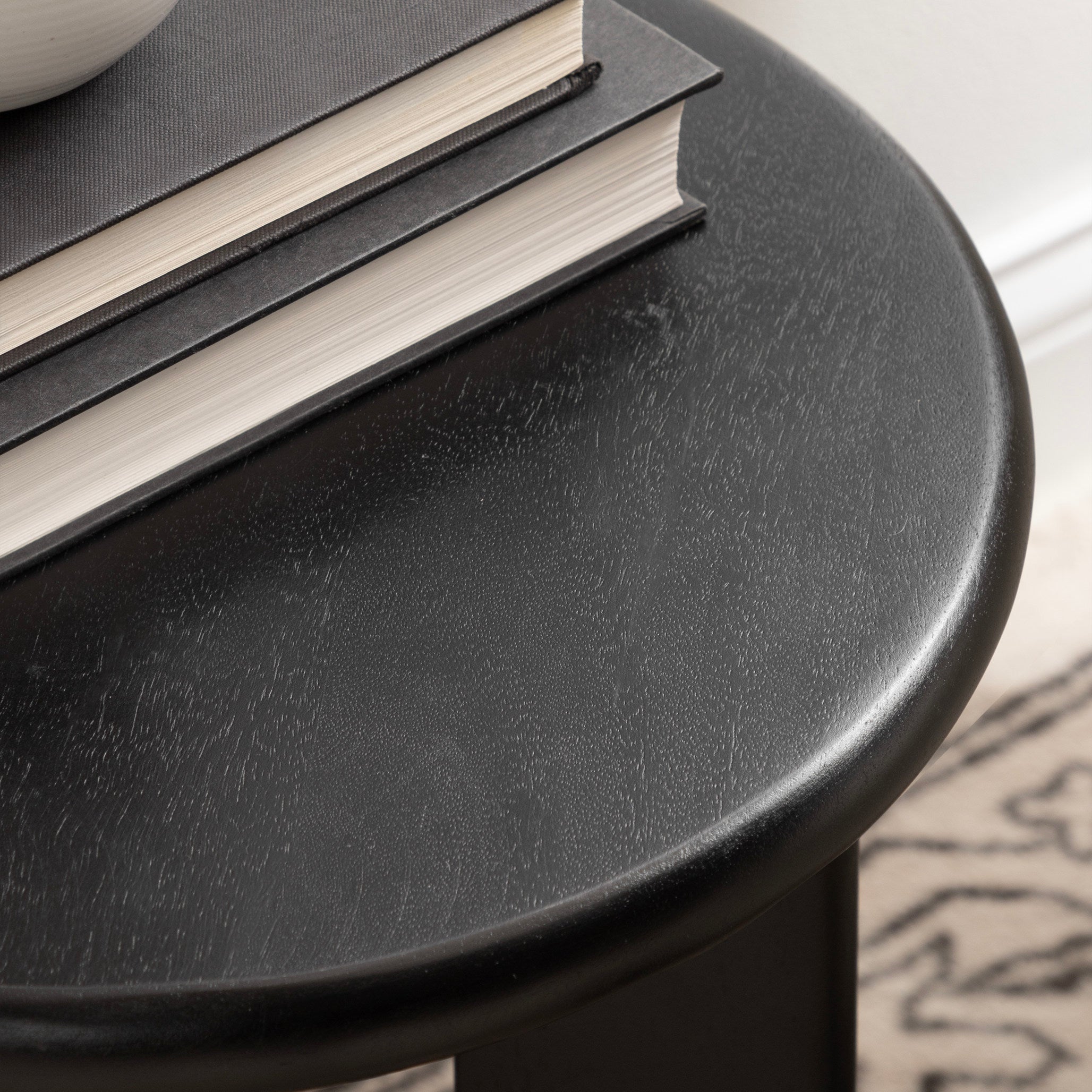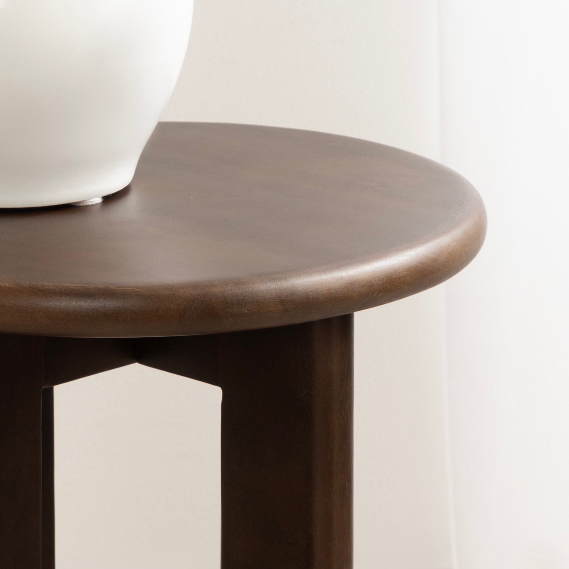 Showcase your modern-inspired style with the Seebeck round side table from Kate and Laurel. The delightful finish of the wood adds a touch of sophistication to any space, while the soft curvature of the design makes it easy to blend seamlessly with any decor style. However, the fun yet stable table legs make it a youthful living room accent table. A careful selection of solid mango wood was used to create this beautiful side table, creating a statement that is as durable as it is beautiful. The round tabletop boasts a soft bullnosed edge and is perfect for creating a curated display area for candles, small lamps, and other accents. Assemble this table in only a matter of minutes with a straightforward, two-step assembly process.